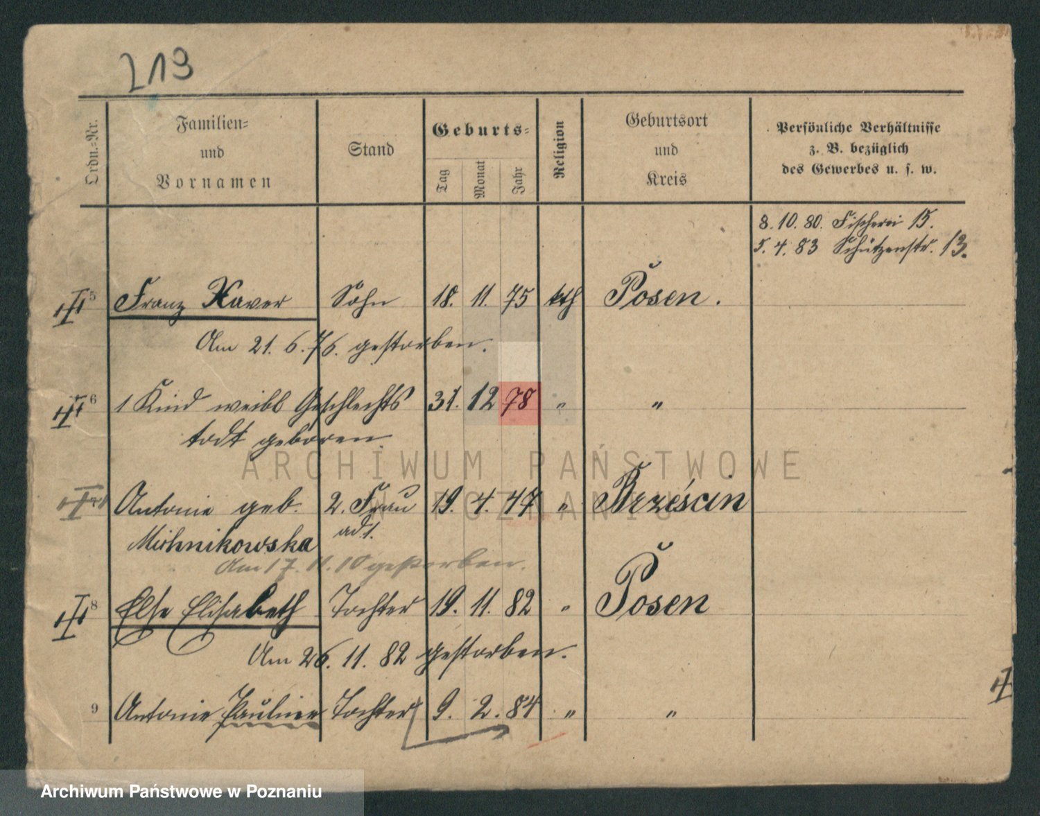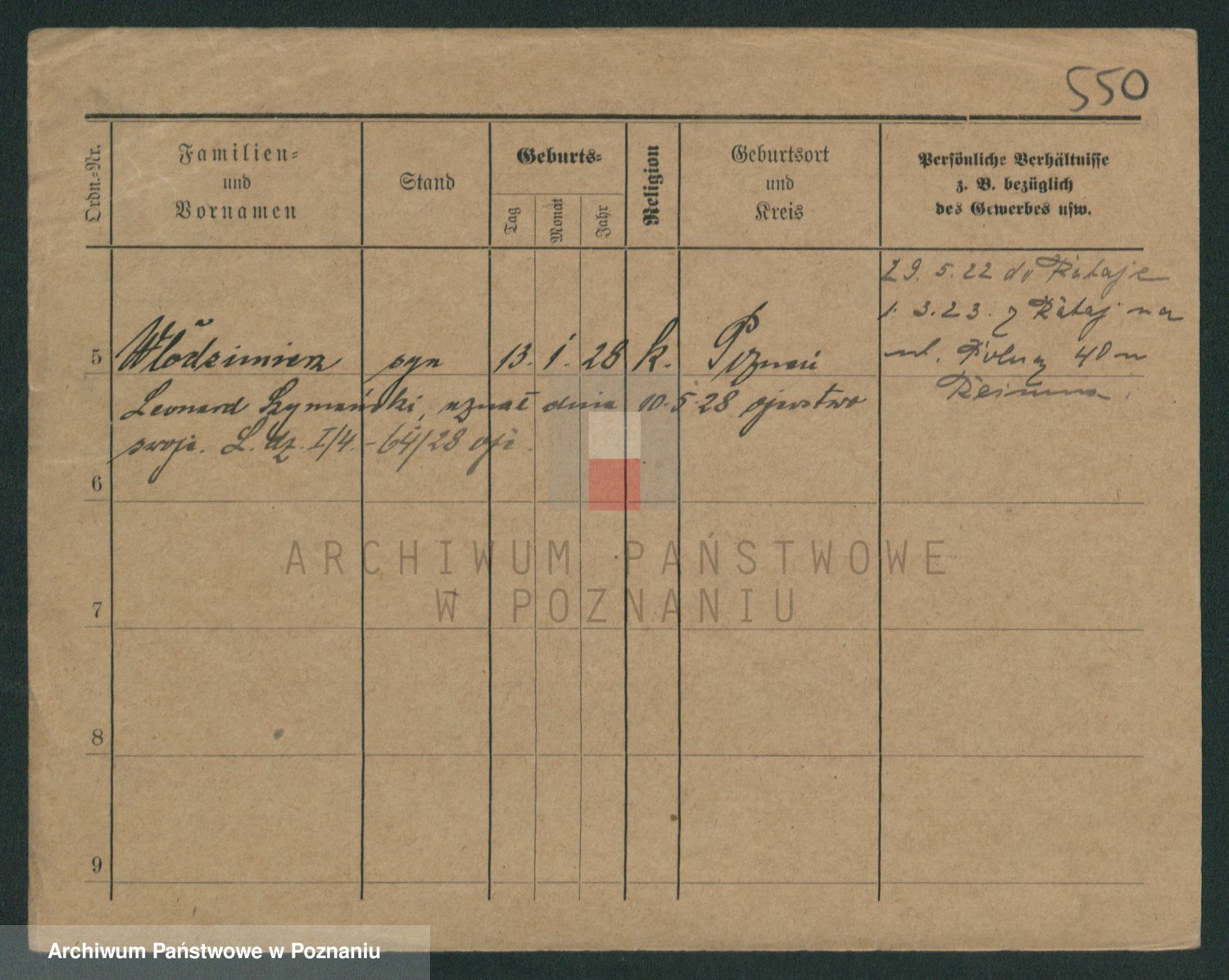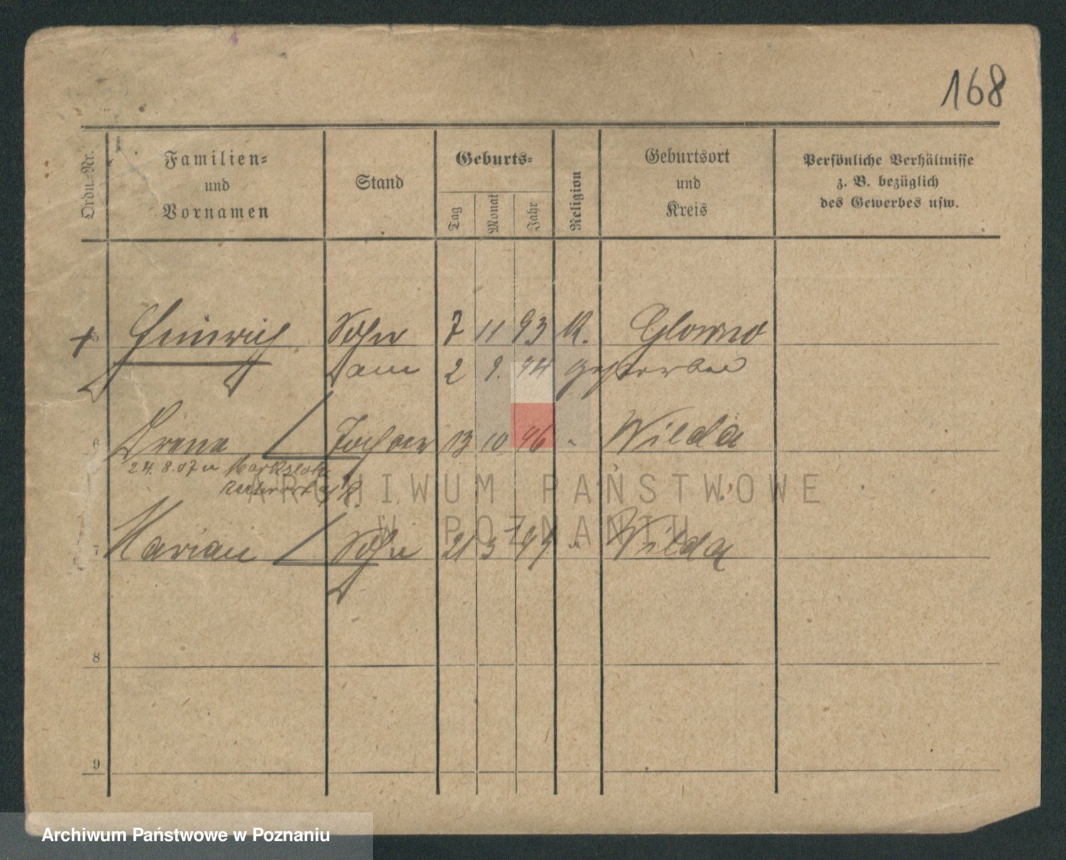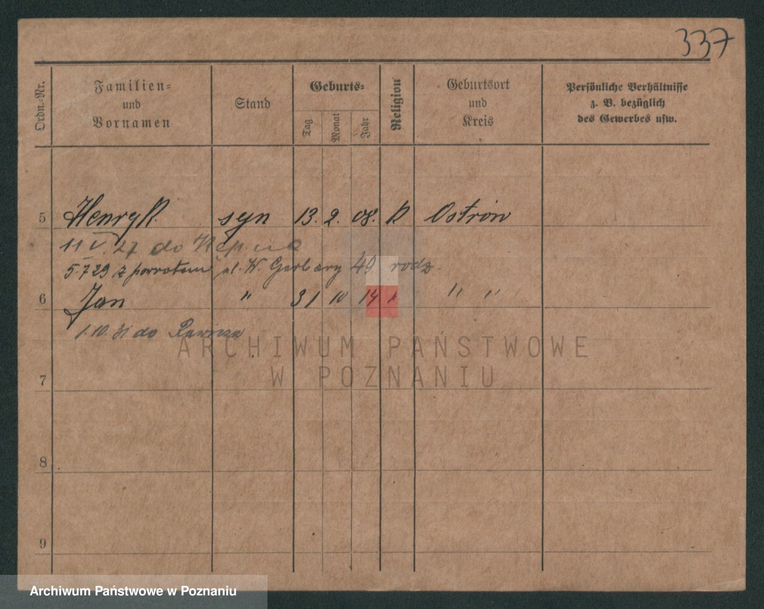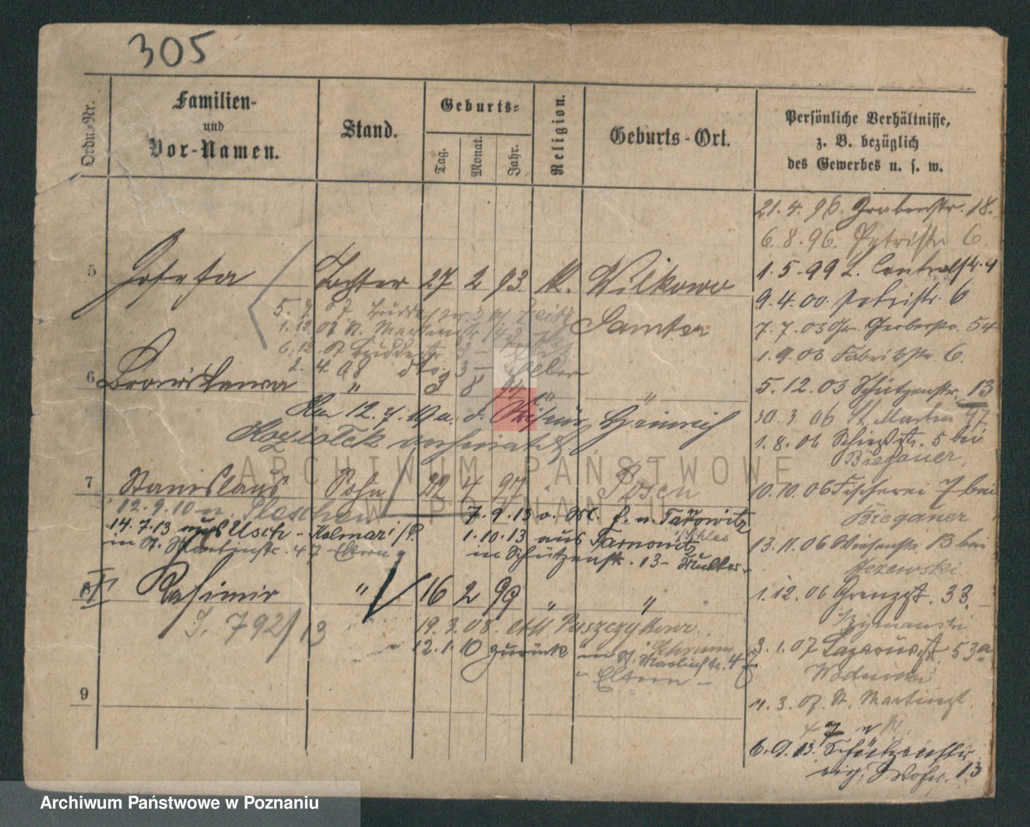 Podgląd karty osobowej dostępny jest po kliknięciu na nazwisko lub ikonkę karty. Można dokonywać powiększenia (ikony na górze) lub przechodzić między kolejnymi skanami (strzałki po bokach).
