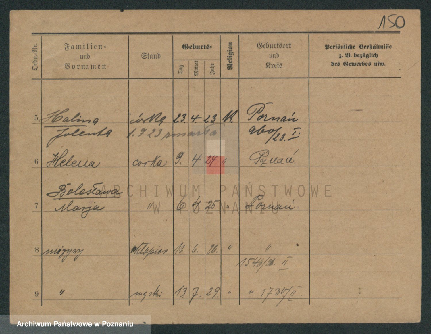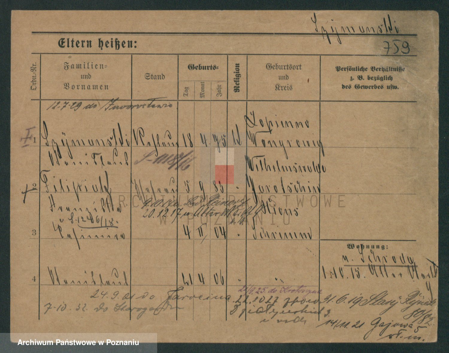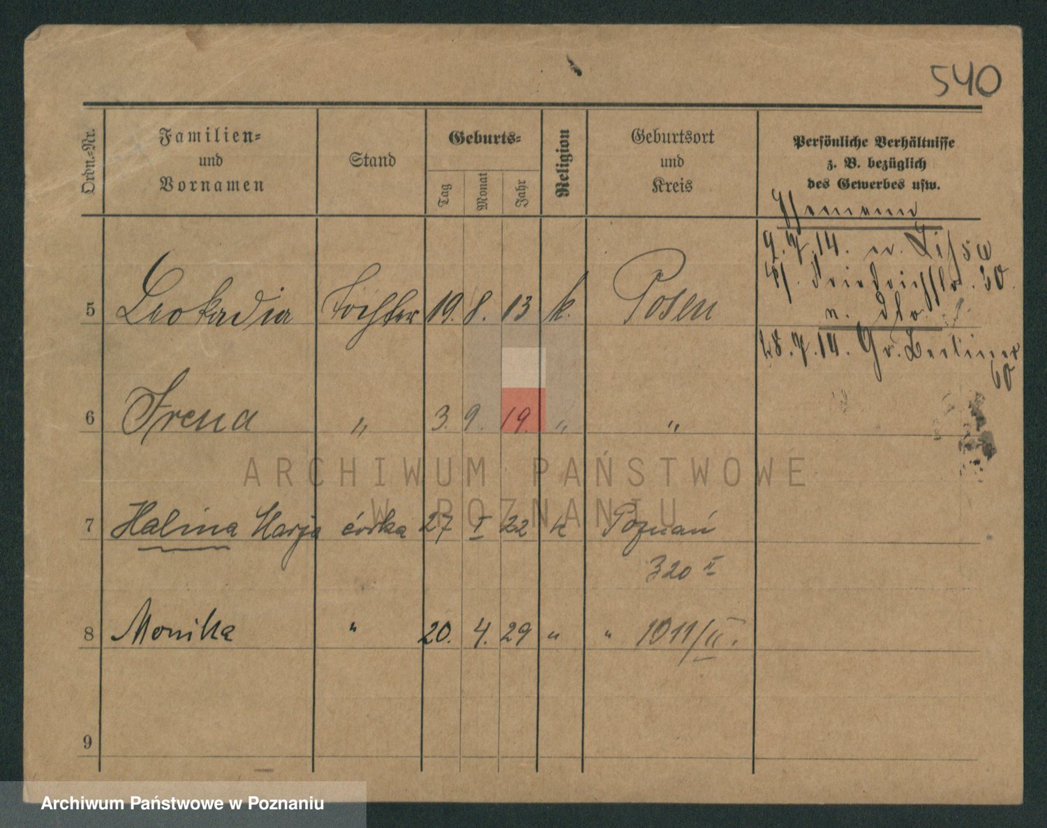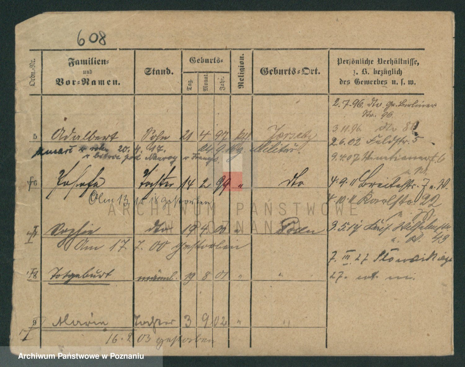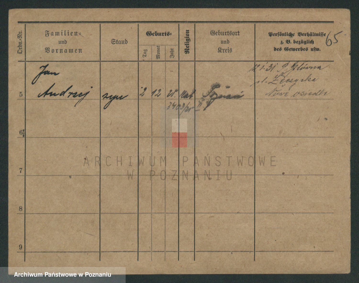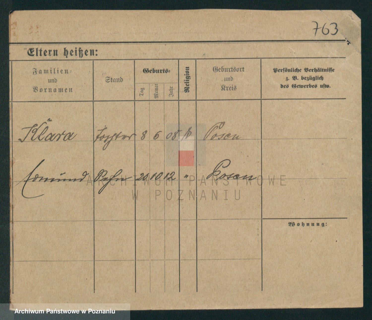 Podgląd karty osobowej dostępny jest po kliknięciu na nazwisko lub ikonkę karty. Można dokonywać powiększenia (ikony na górze) lub przechodzić między kolejnymi skanami (strzałki po bokach).