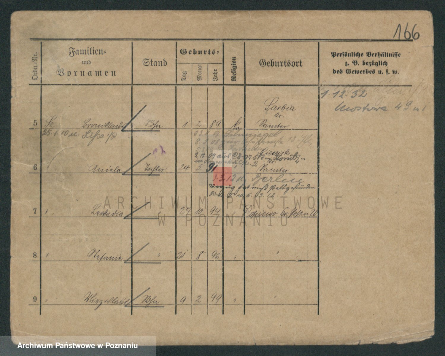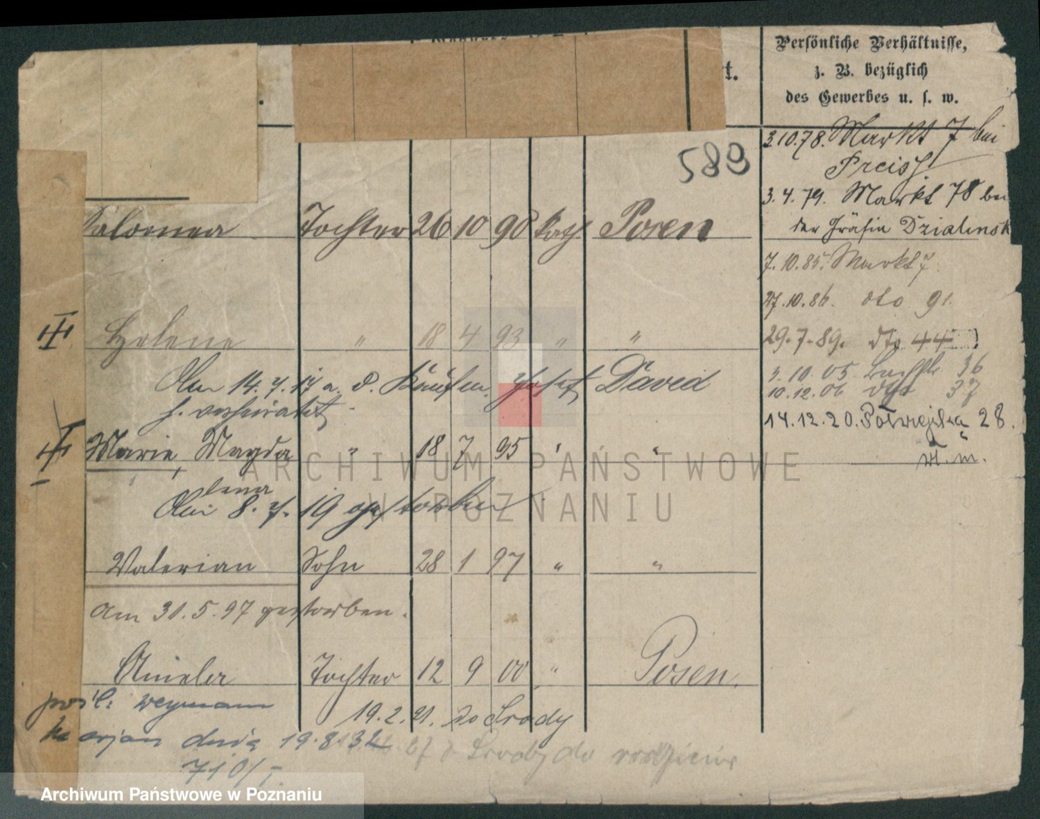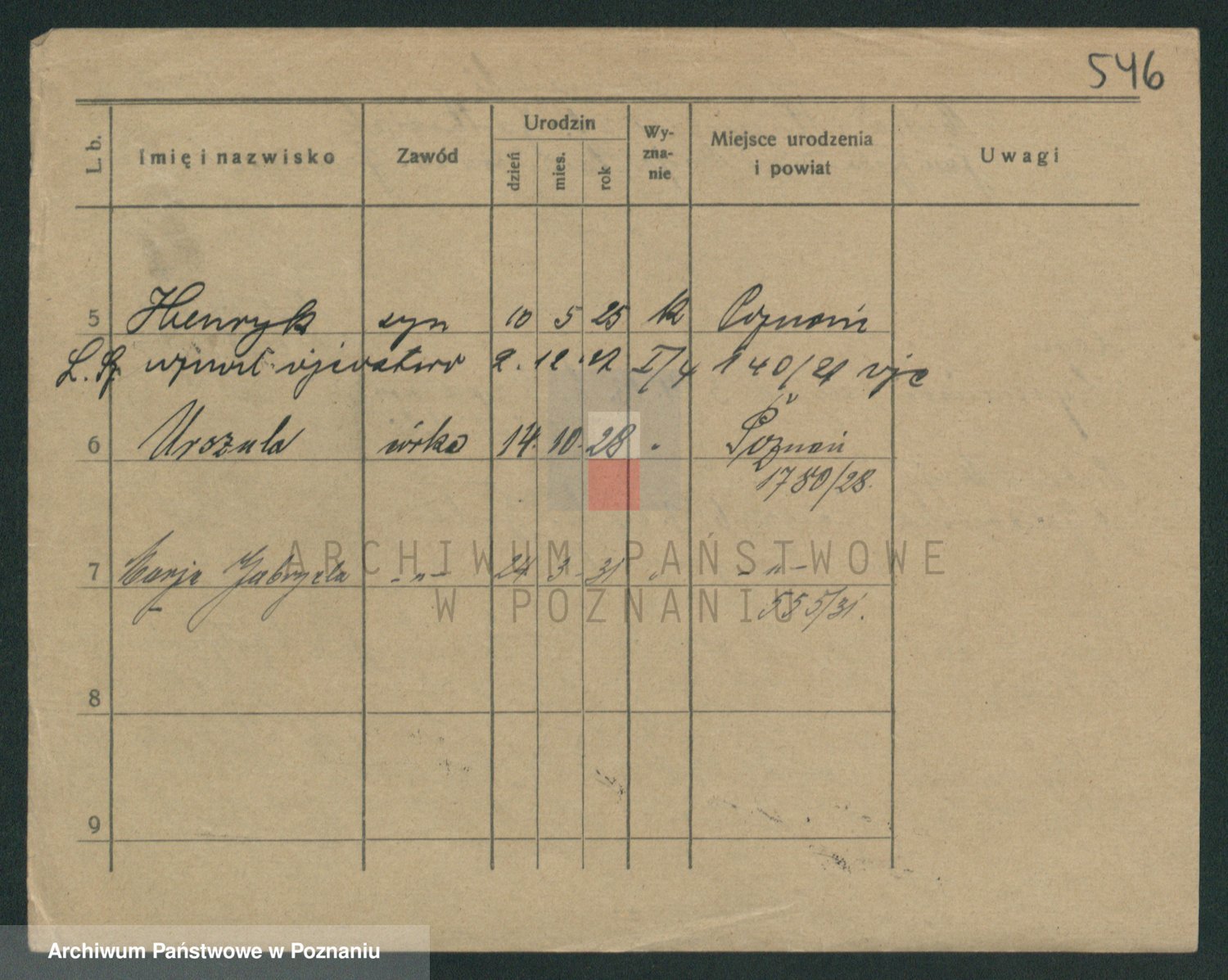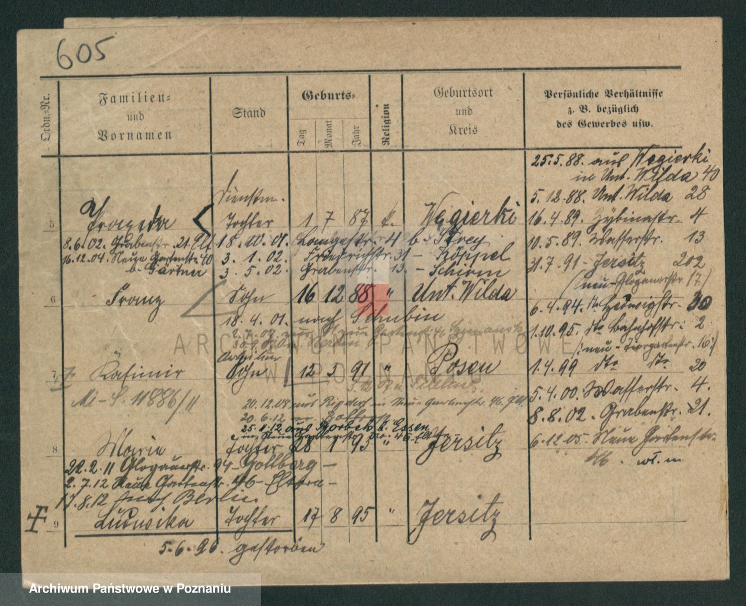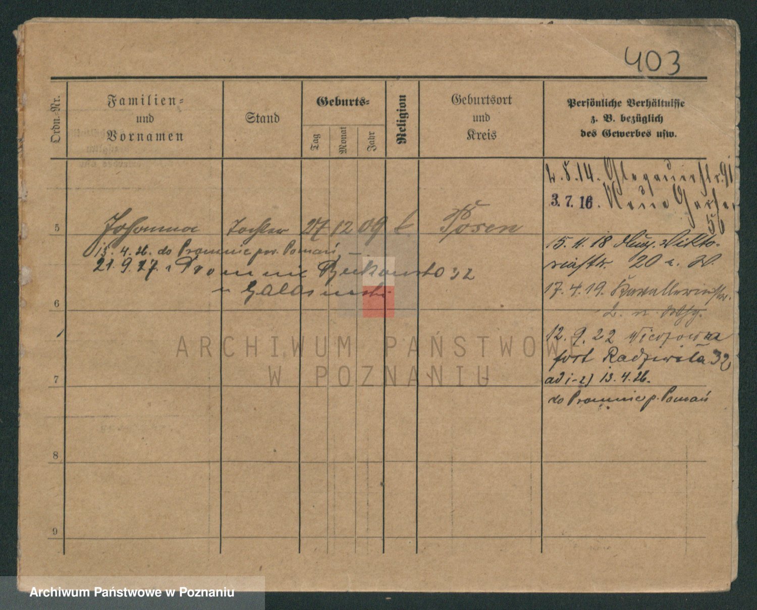 Podgląd karty osobowej dostępny jest po kliknięciu na nazwisko lub ikonkę karty. Można dokonywać powiększenia (ikony na górze) lub przechodzić między kolejnymi skanami (strzałki po bokach).