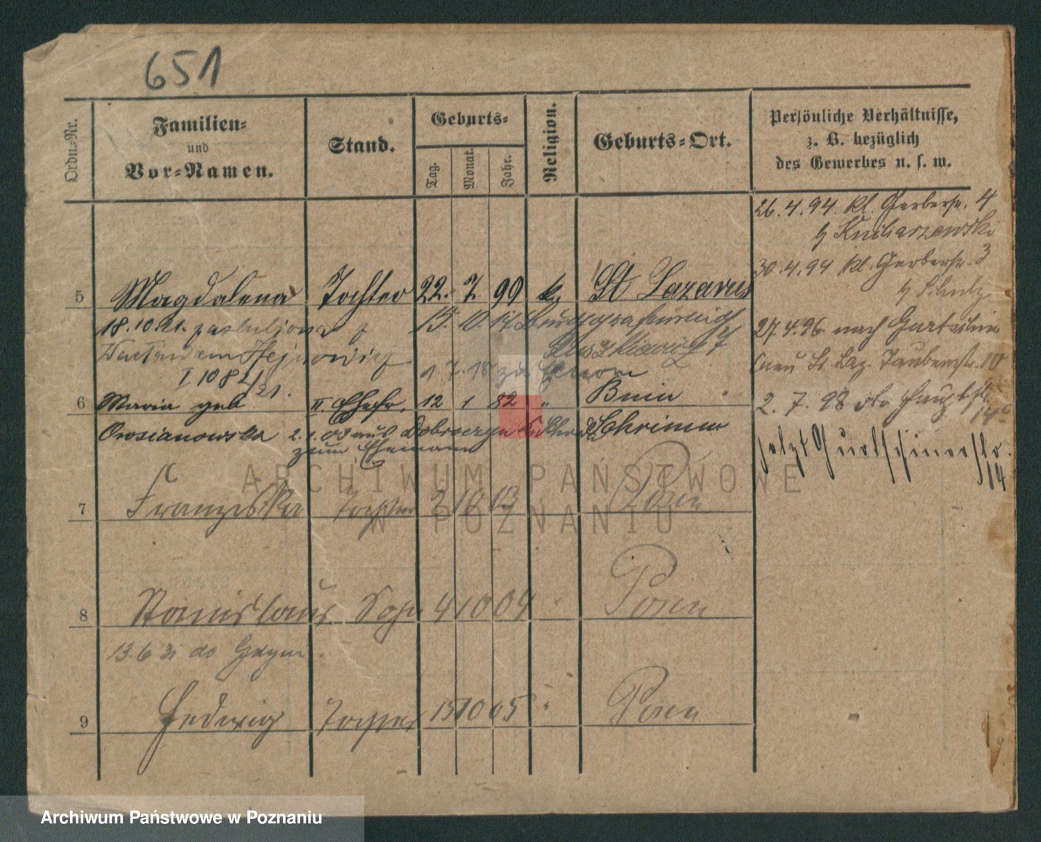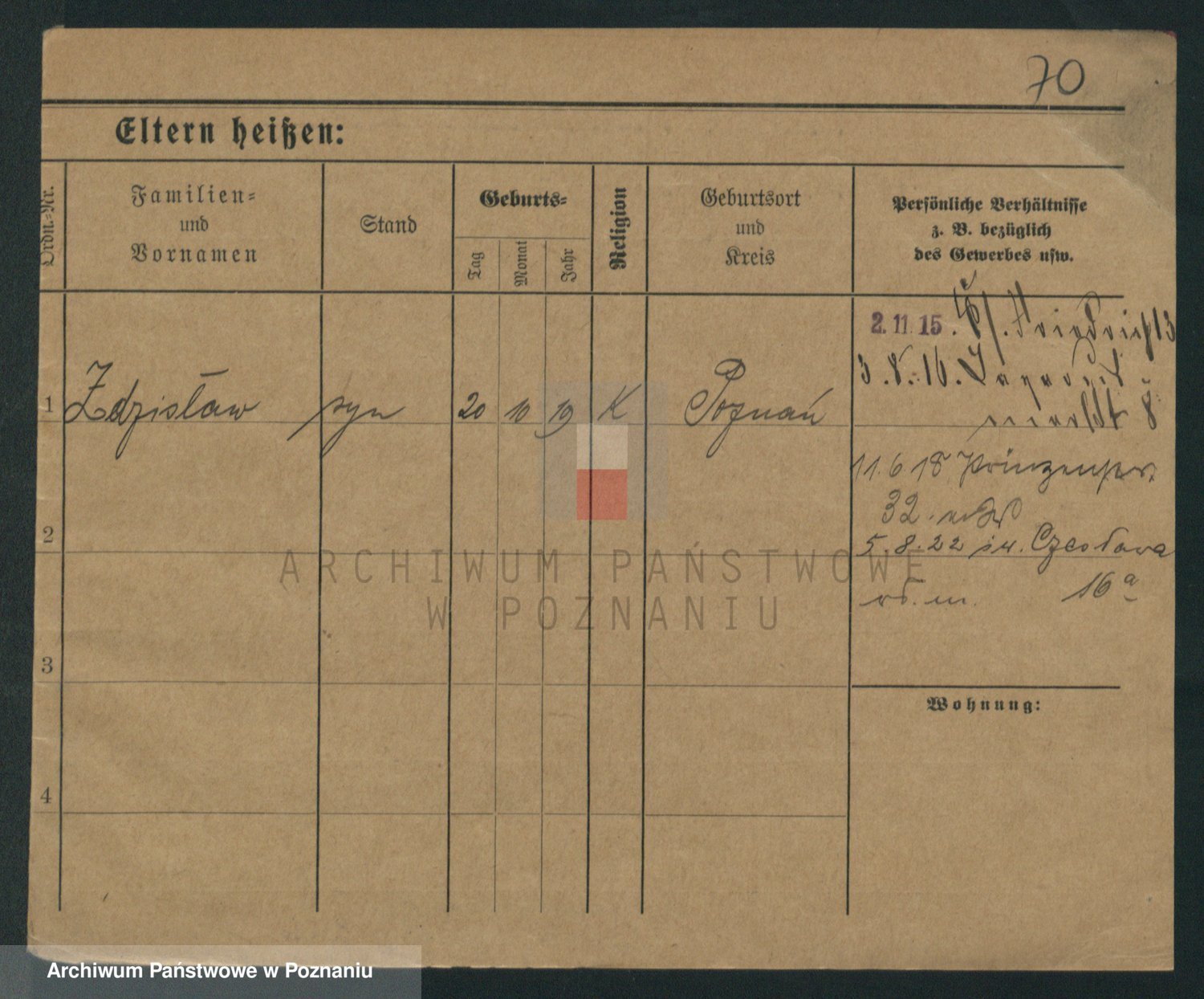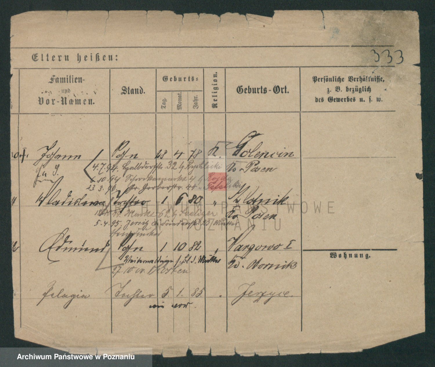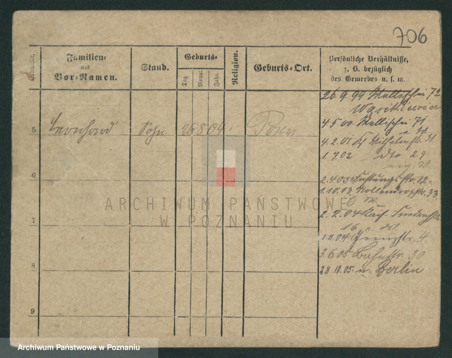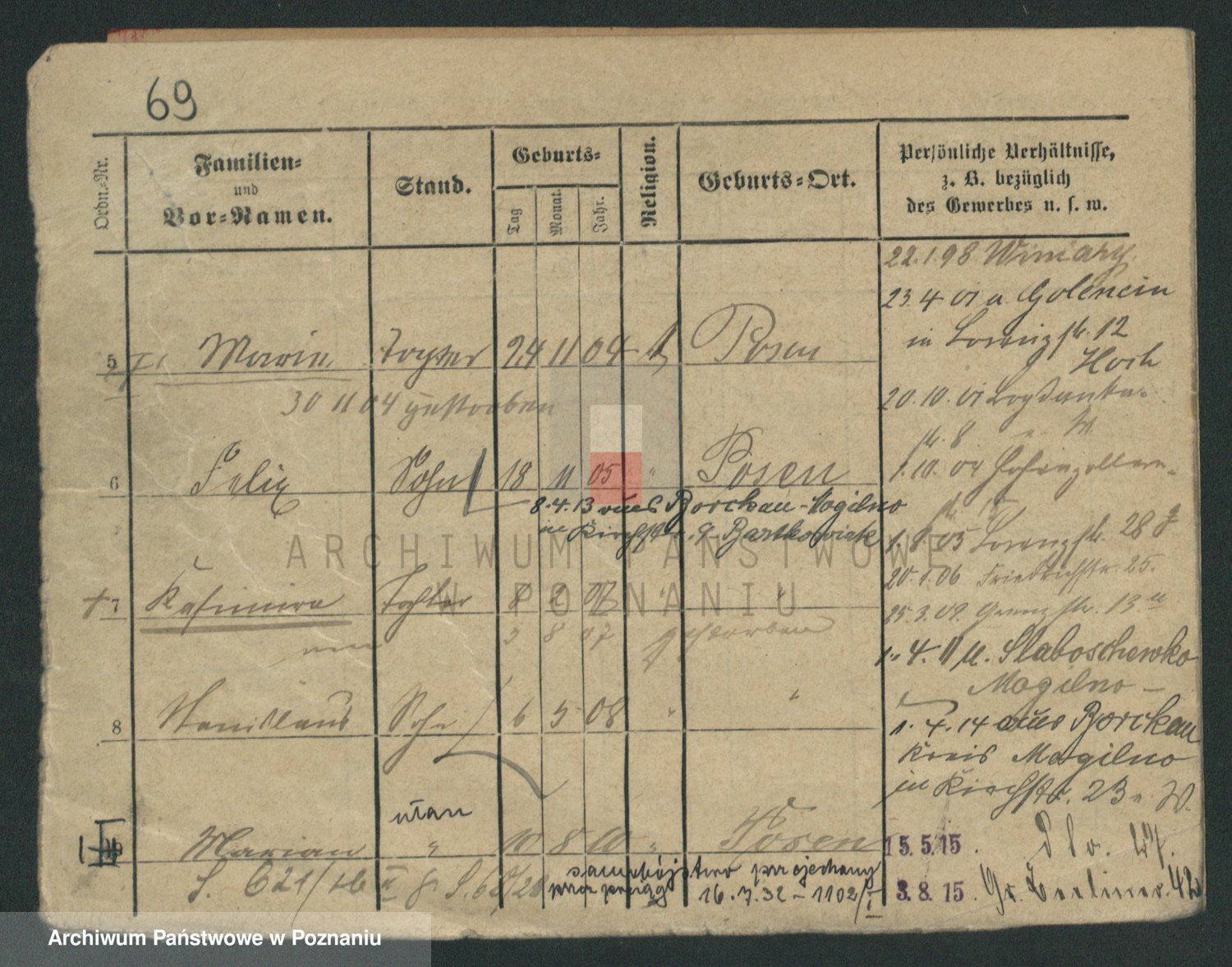 Podgląd karty osobowej dostępny jest po kliknięciu na nazwisko lub ikonkę karty. Można dokonywać powiększenia (ikony na górze) lub przechodzić między kolejnymi skanami (strzałki po bokach).