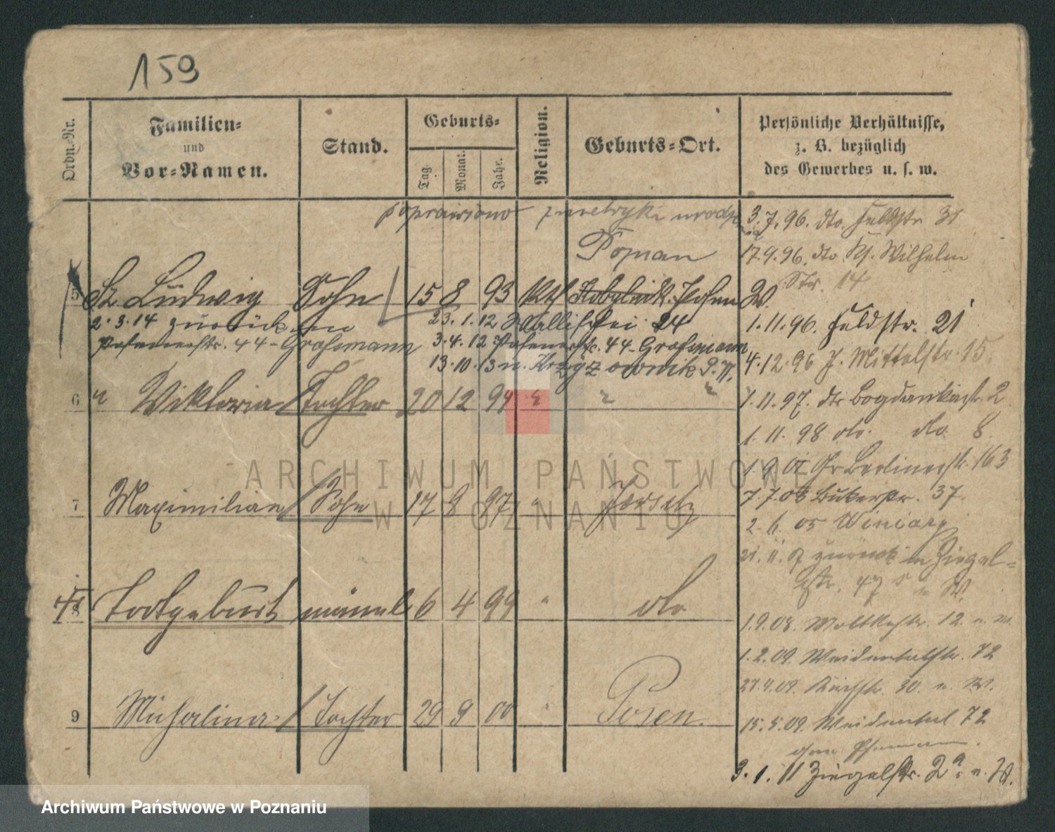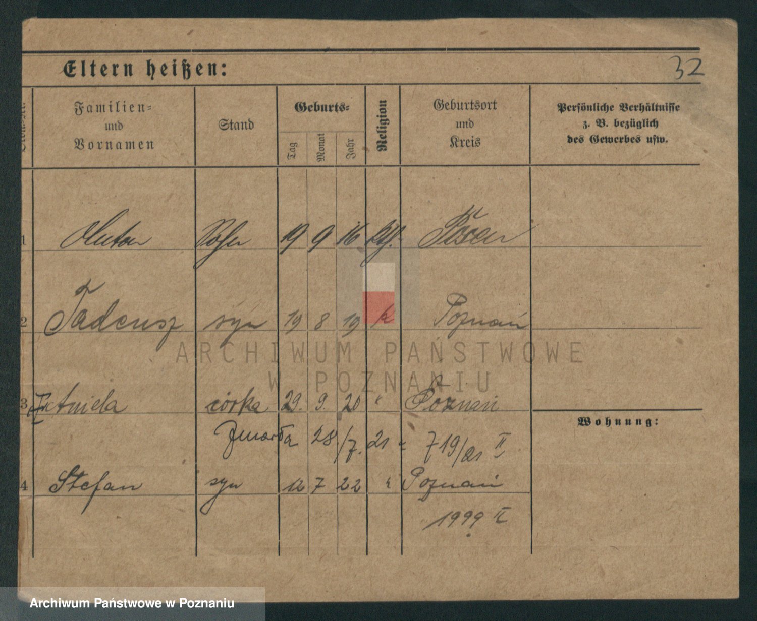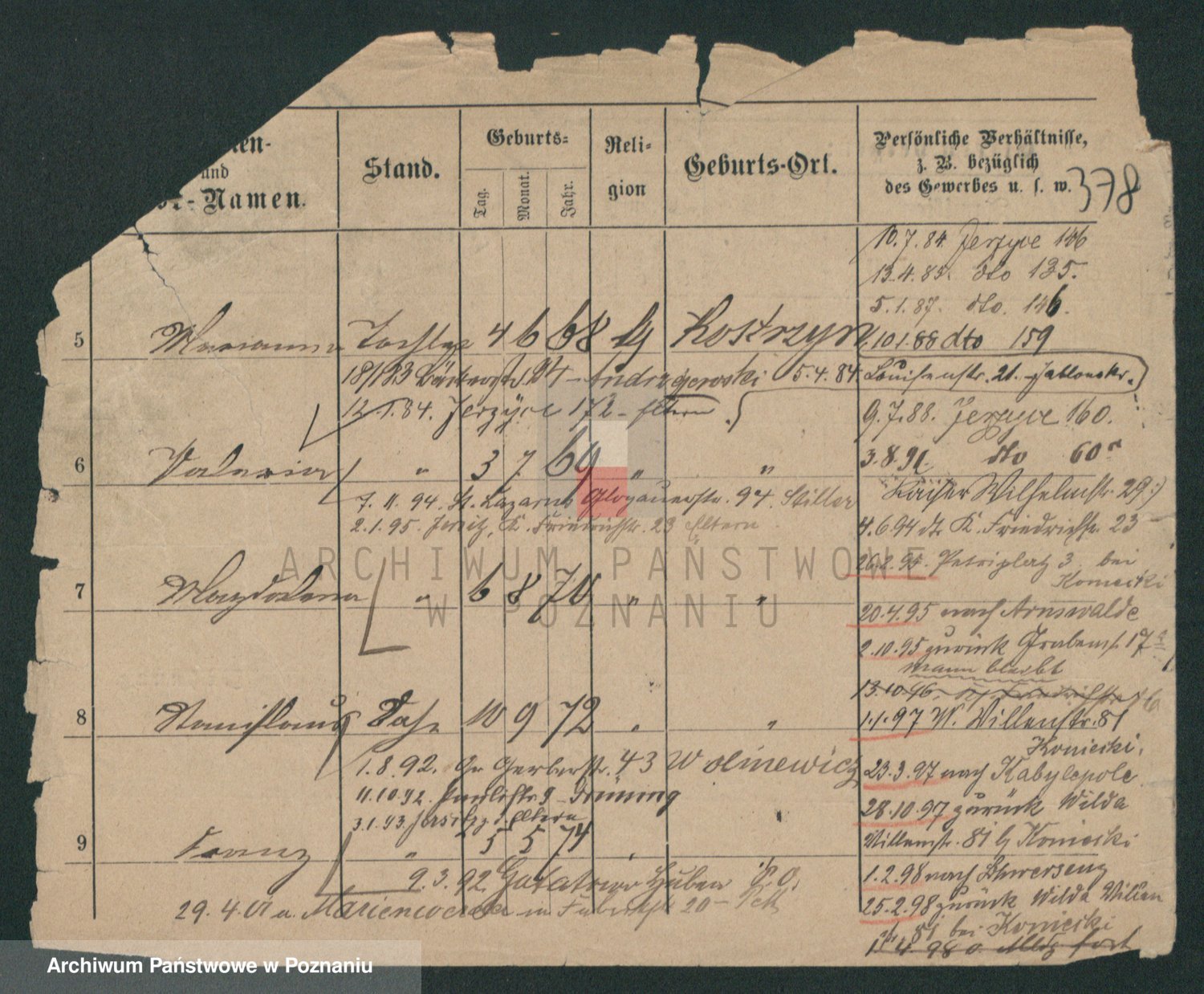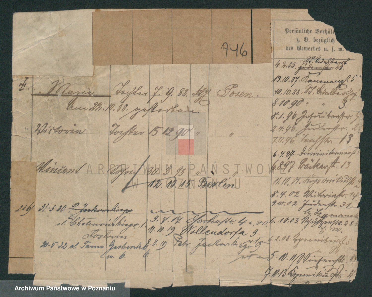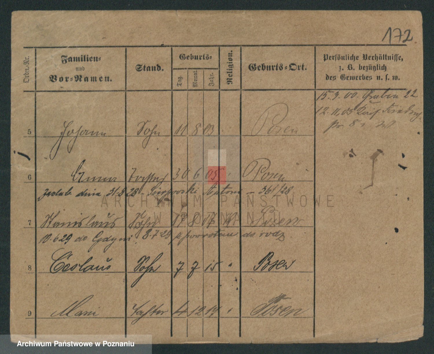 Podgląd karty osobowej dostępny jest po kliknięciu na nazwisko lub ikonkę karty. Można dokonywać powiększenia (ikony na górze) lub przechodzić między kolejnymi skanami (strzałki po bokach).