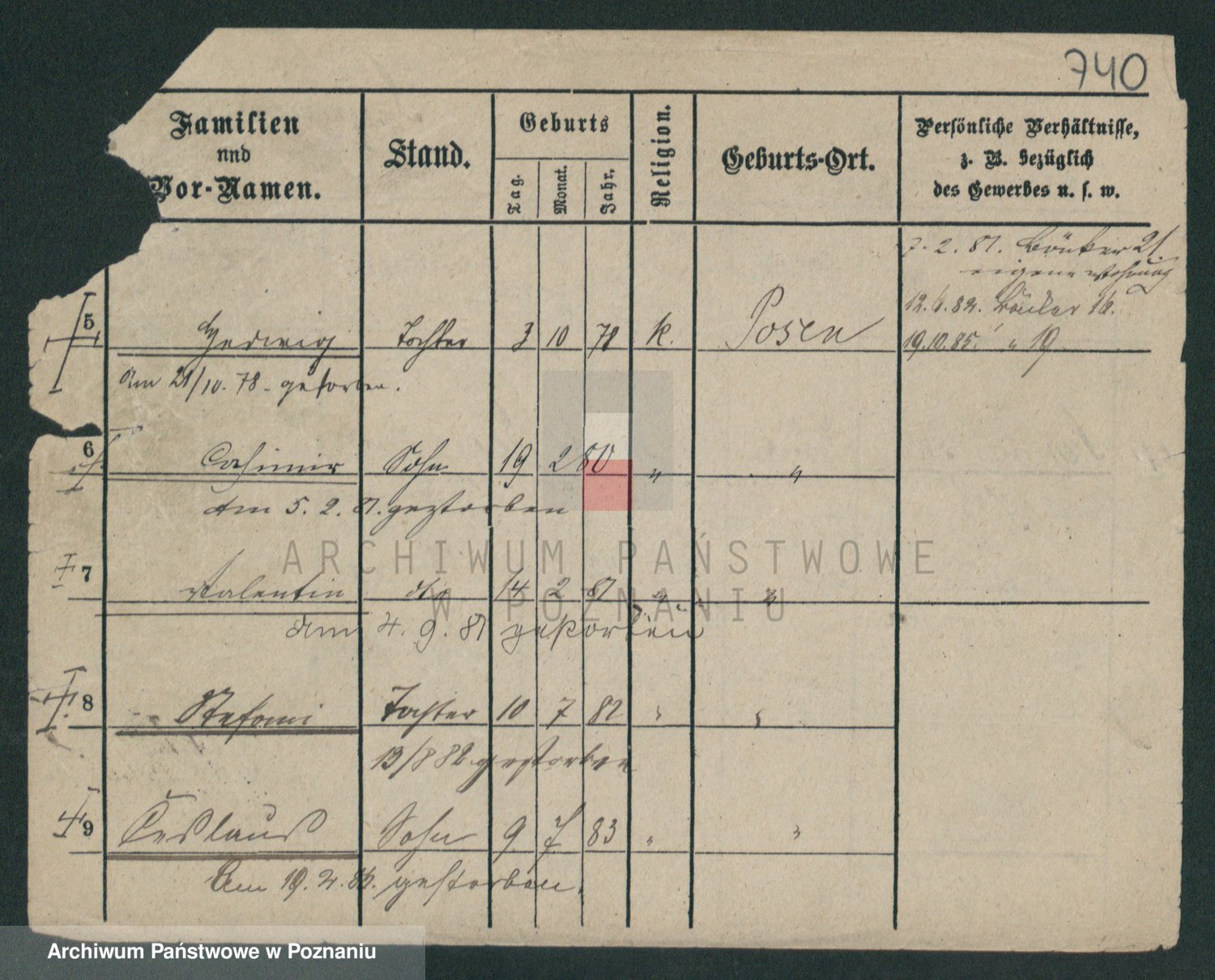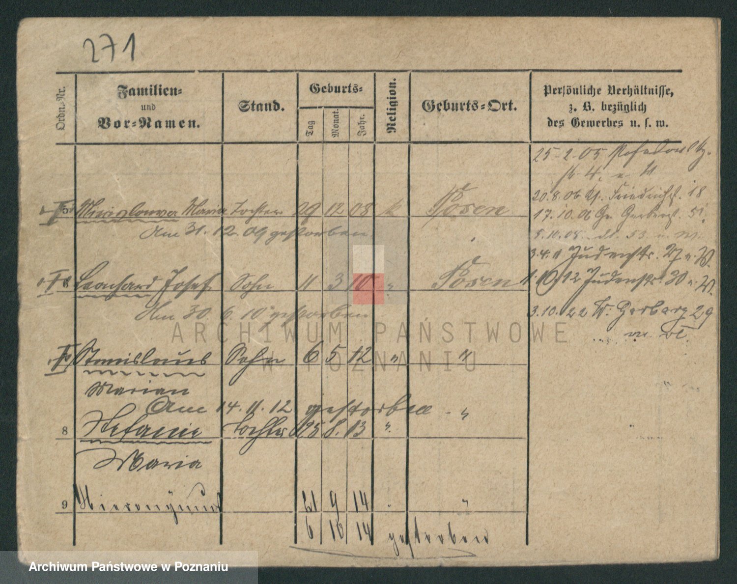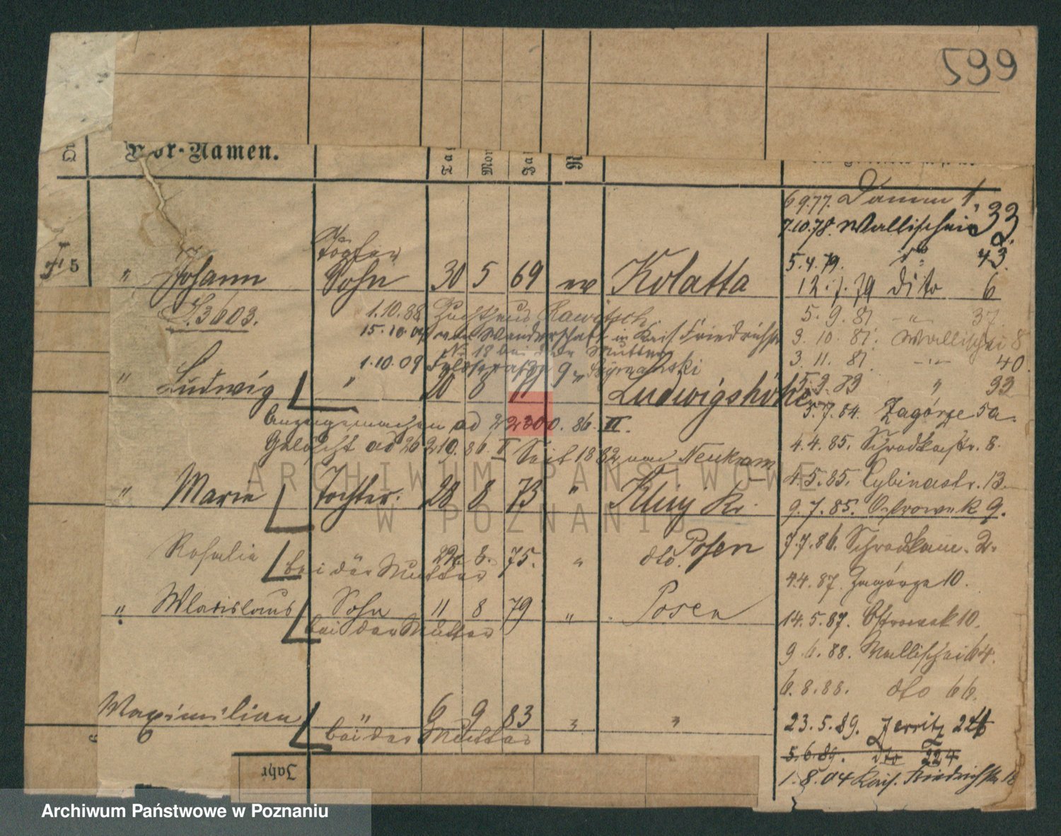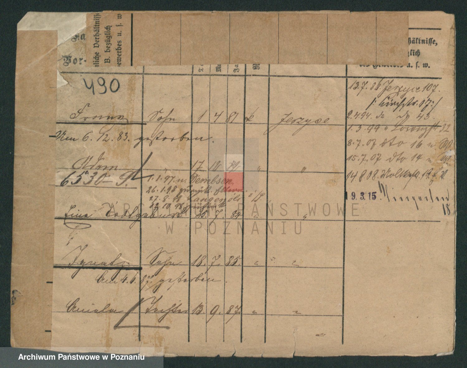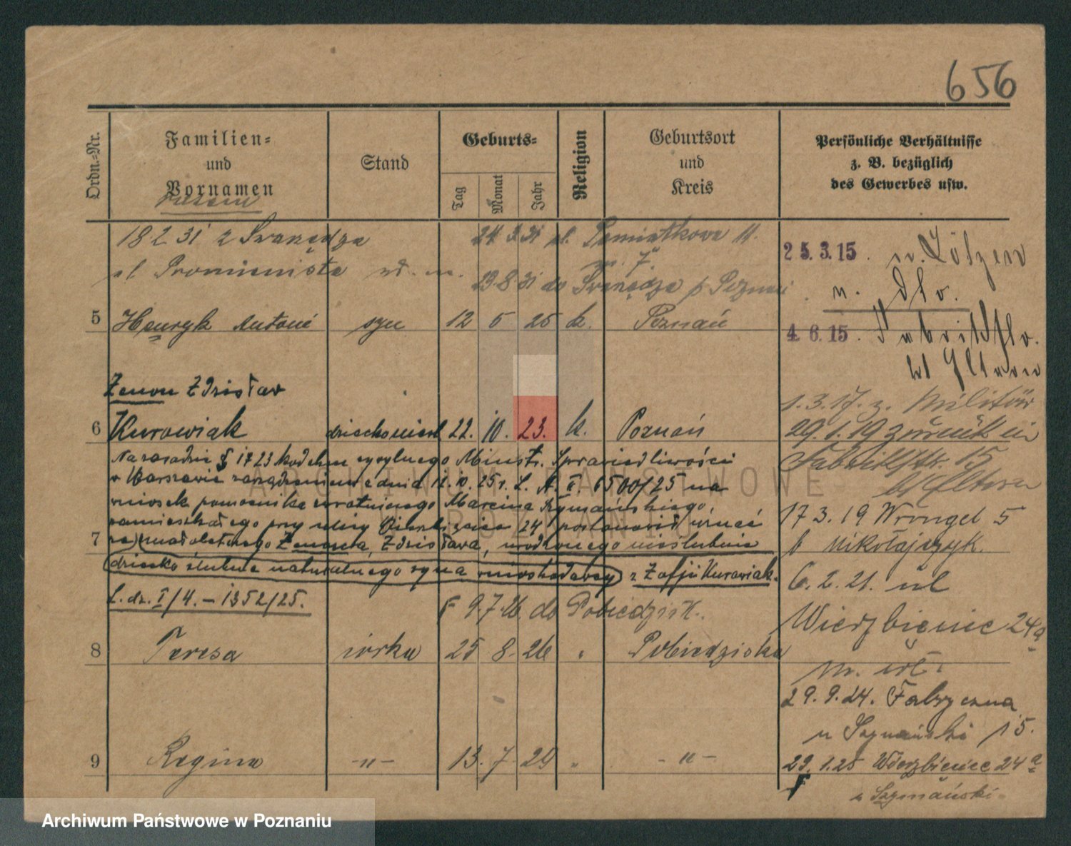 Podgląd karty osobowej dostępny jest po kliknięciu na nazwisko lub ikonkę karty. Można dokonywać powiększenia (ikony na górze) lub przechodzić między kolejnymi skanami (strzałki po bokach).