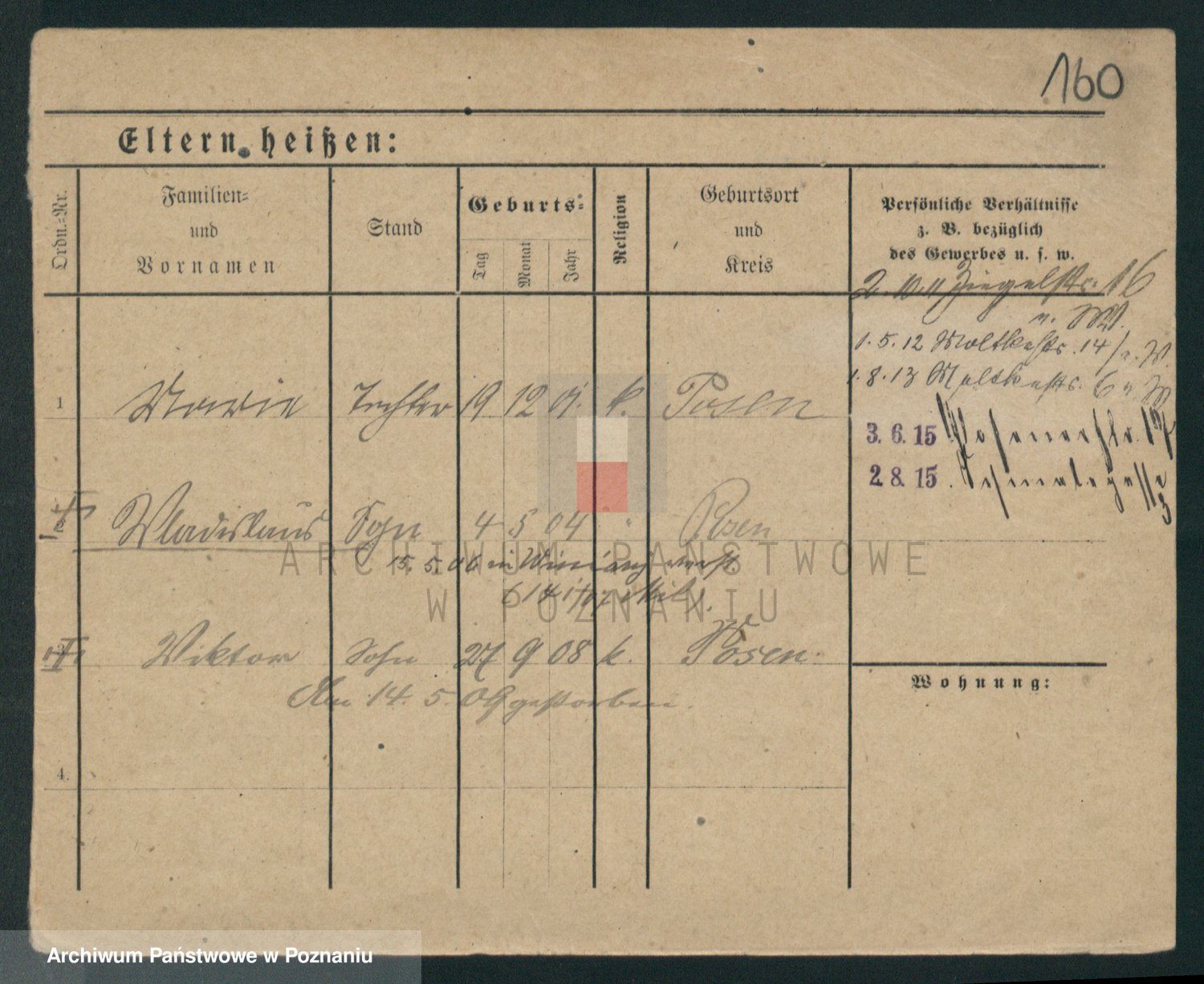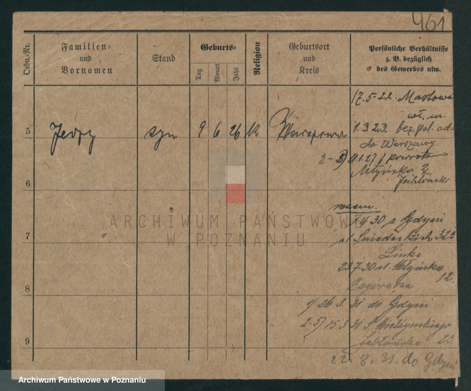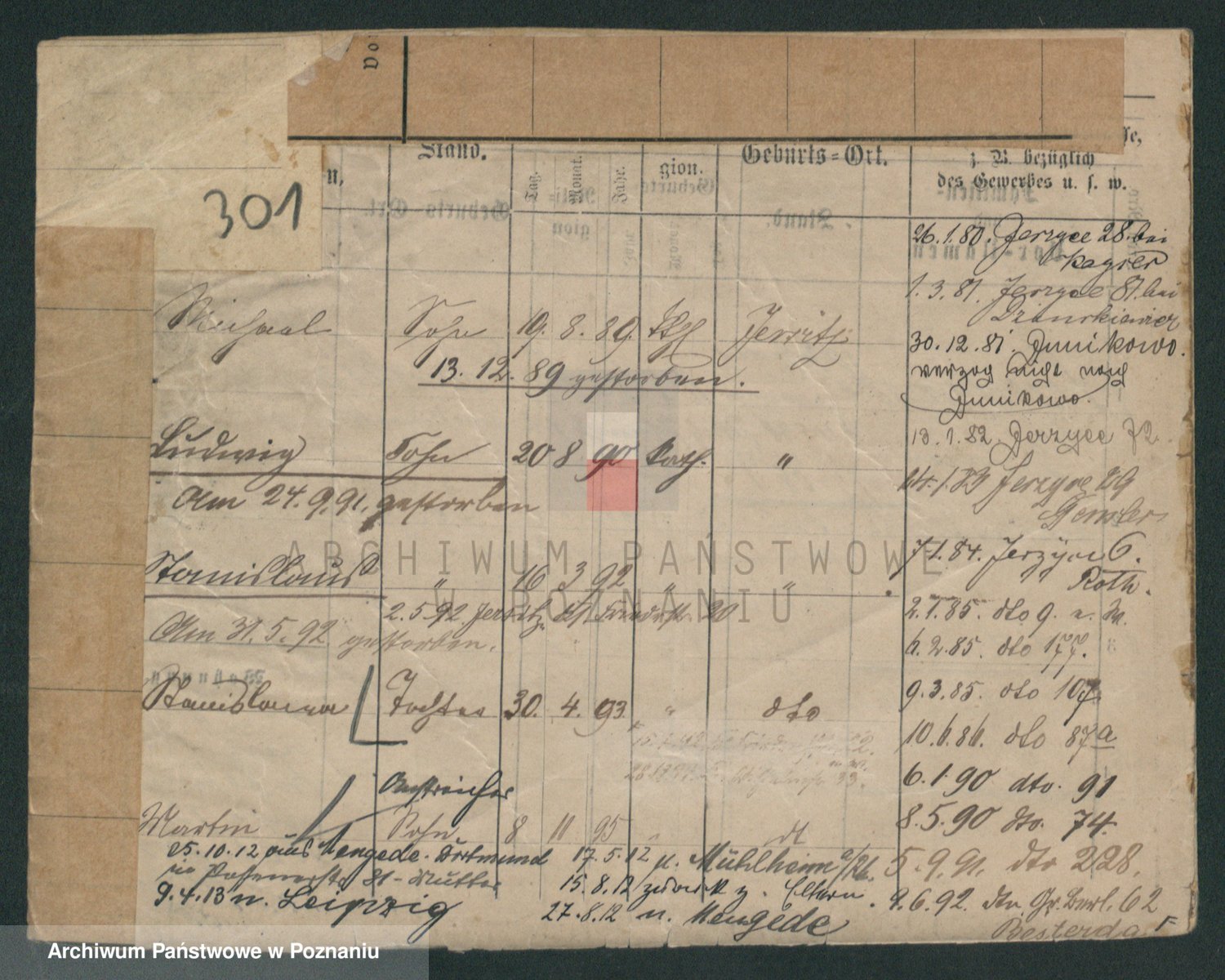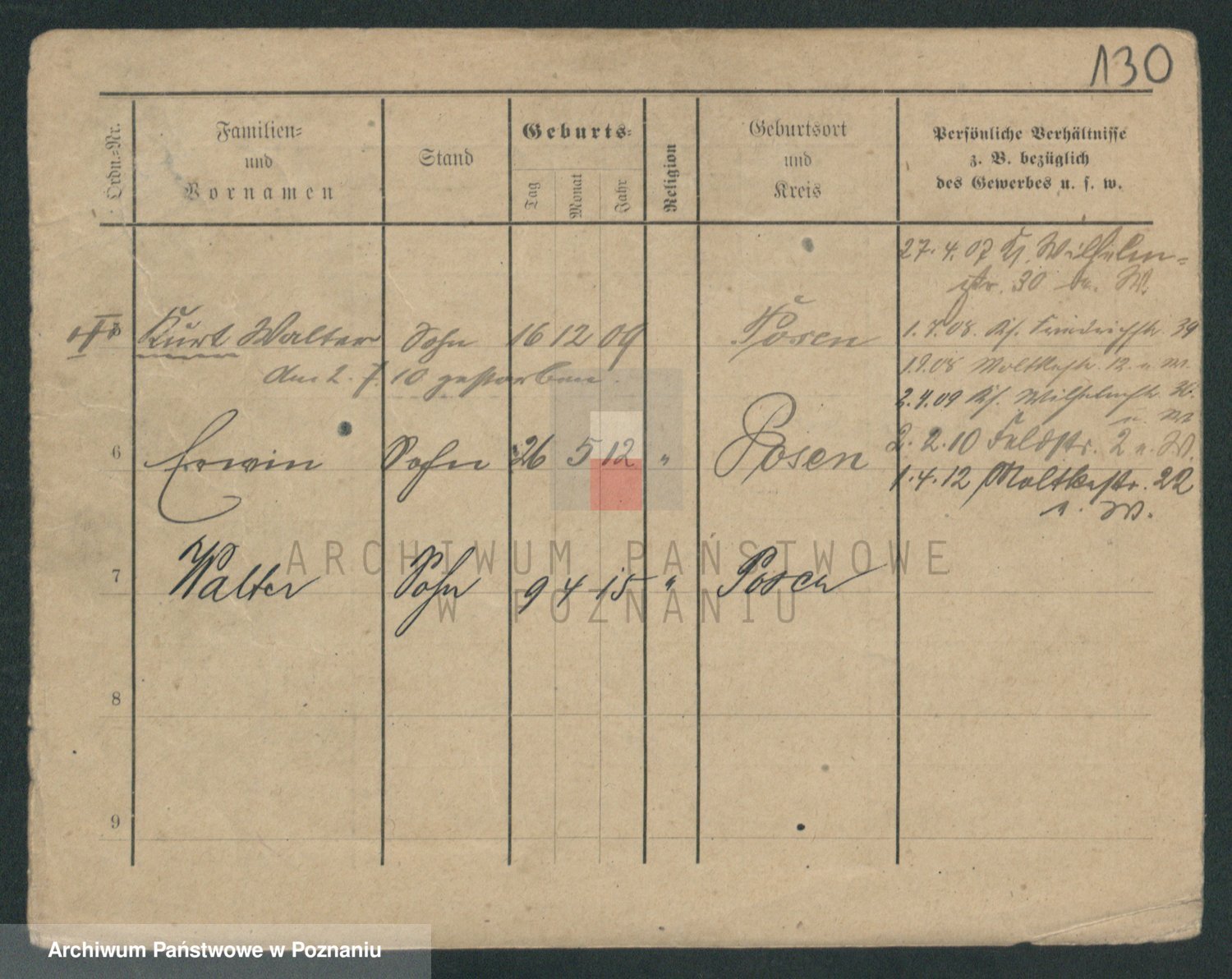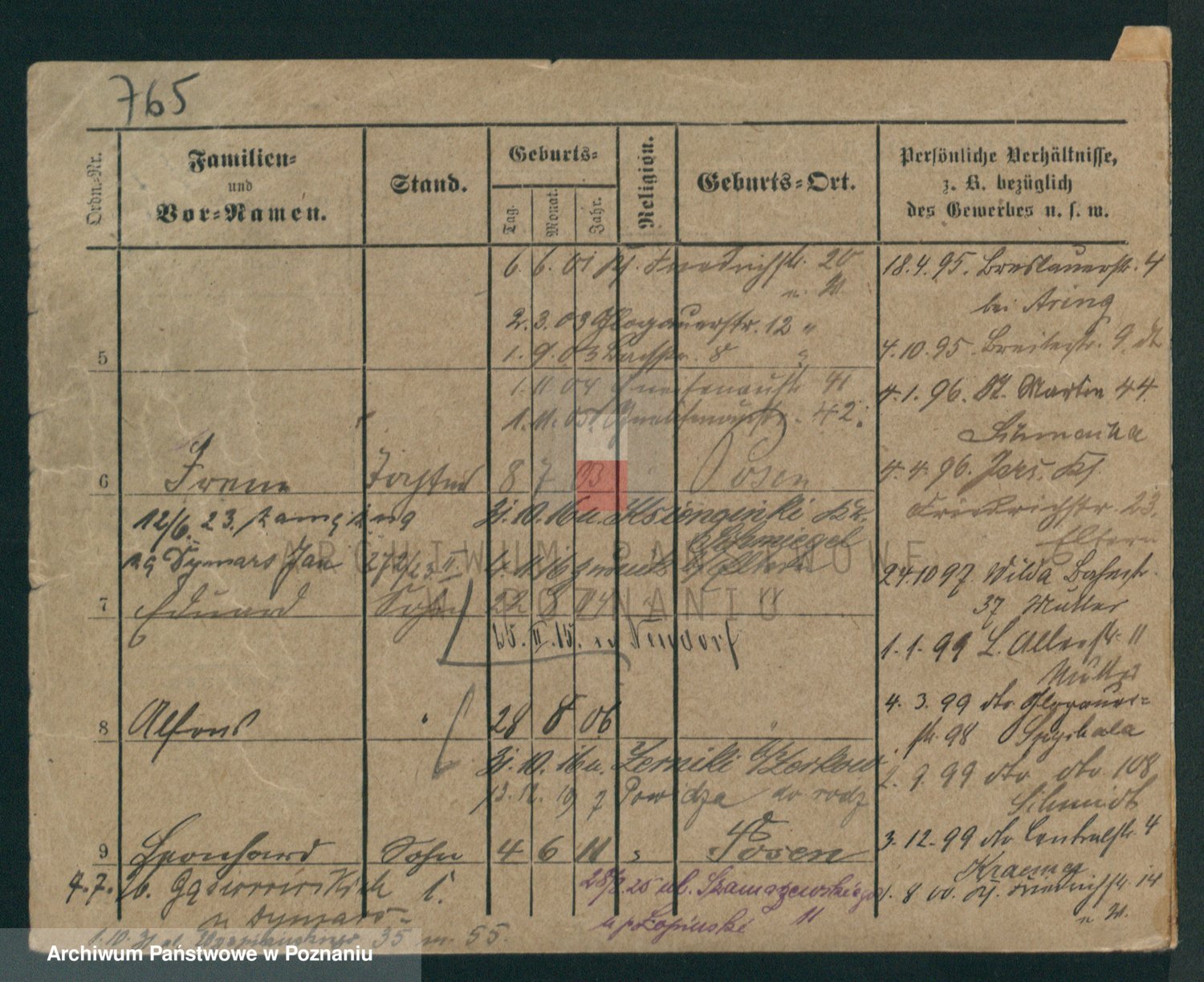 Podgląd karty osobowej dostępny jest po kliknięciu na nazwisko lub ikonkę karty. Można dokonywać powiększenia (ikony na górze) lub przechodzić między kolejnymi skanami (strzałki po bokach).