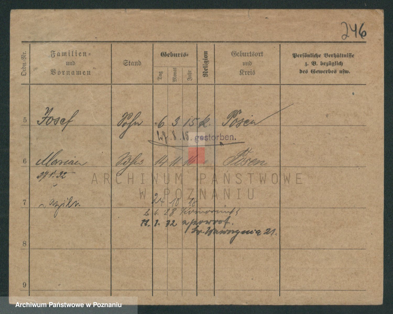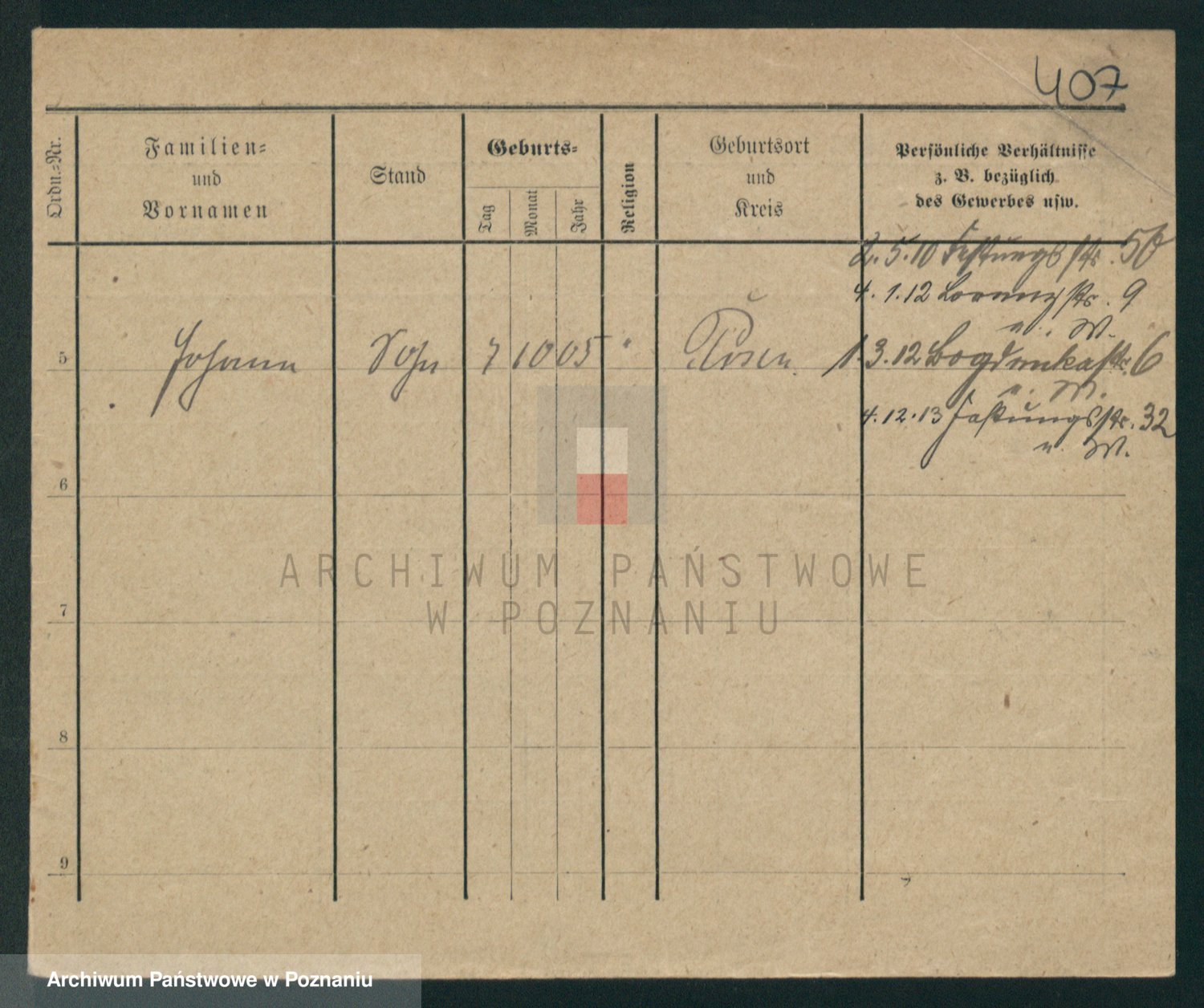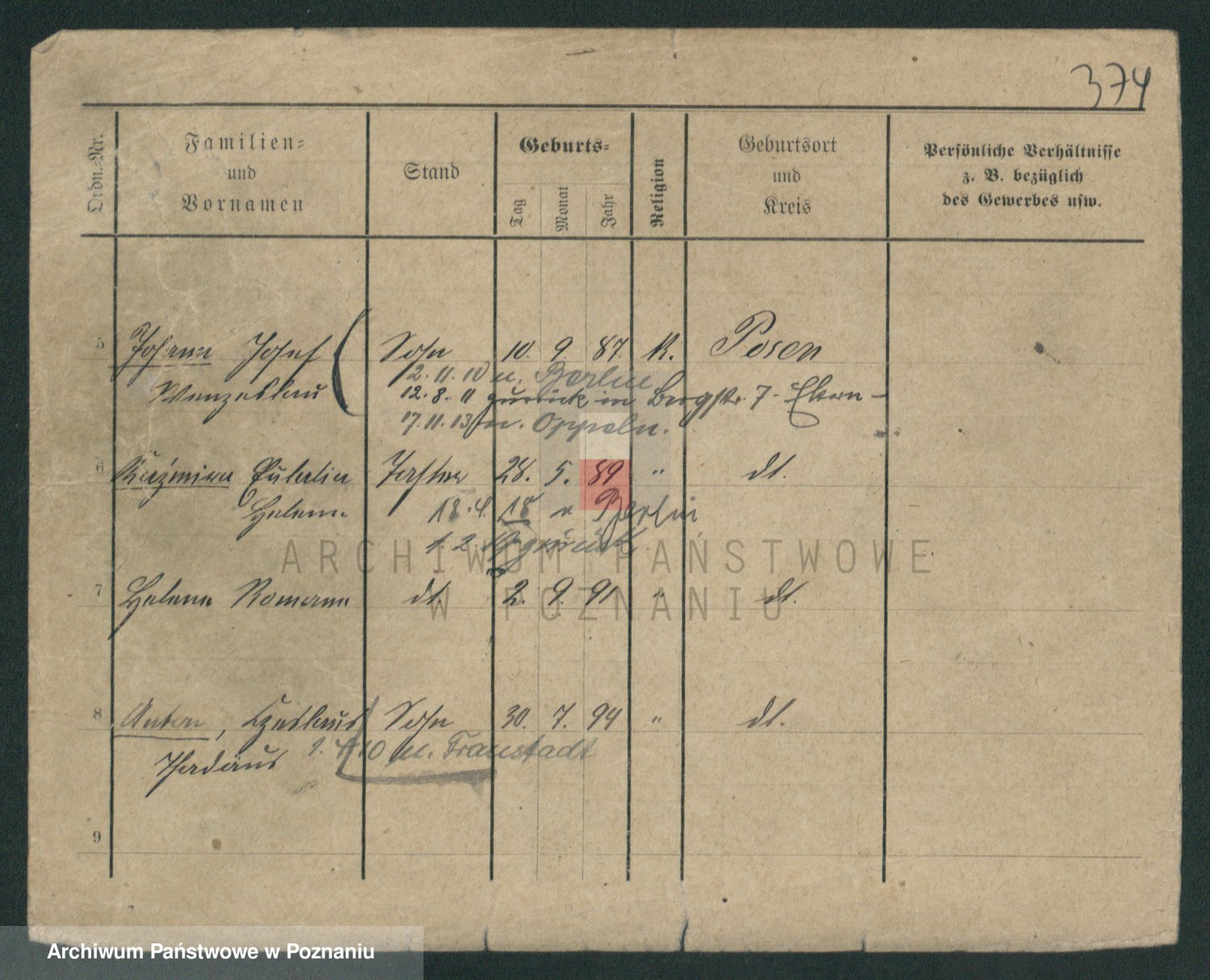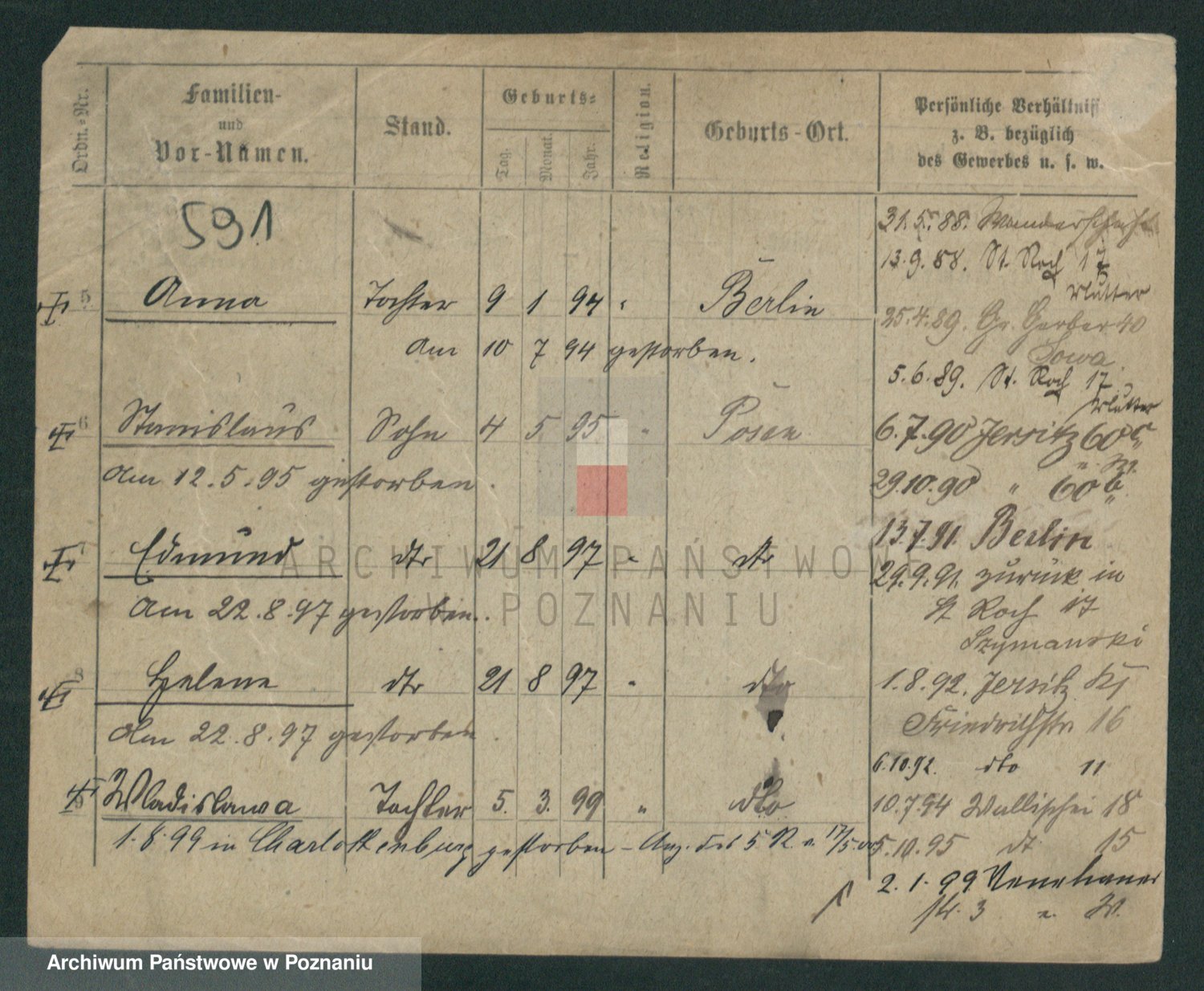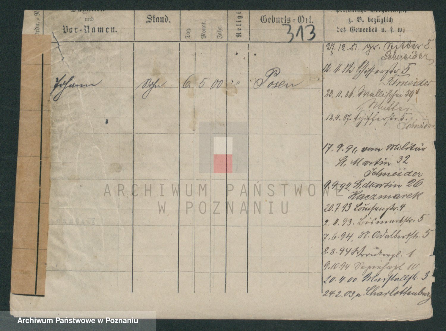 Podgląd karty osobowej dostępny jest po kliknięciu na nazwisko lub ikonkę karty. Można dokonywać powiększenia (ikony na górze) lub przechodzić między kolejnymi skanami (strzałki po bokach).