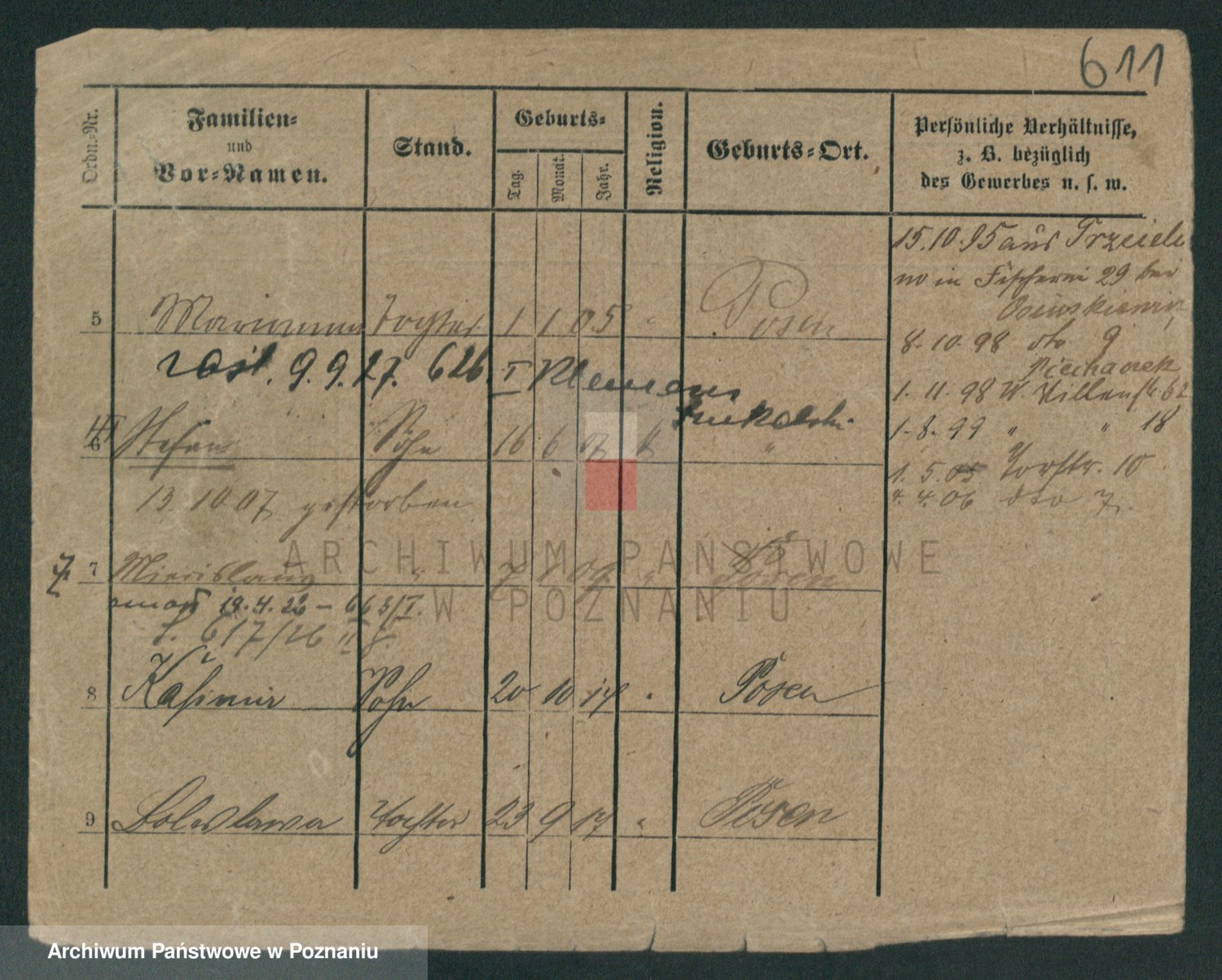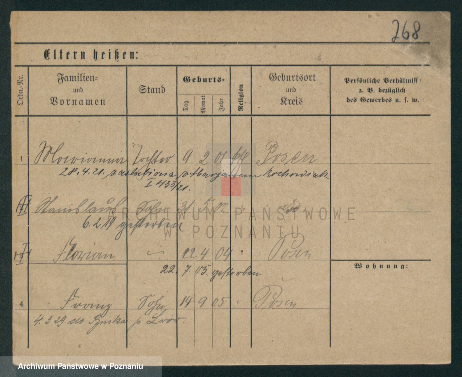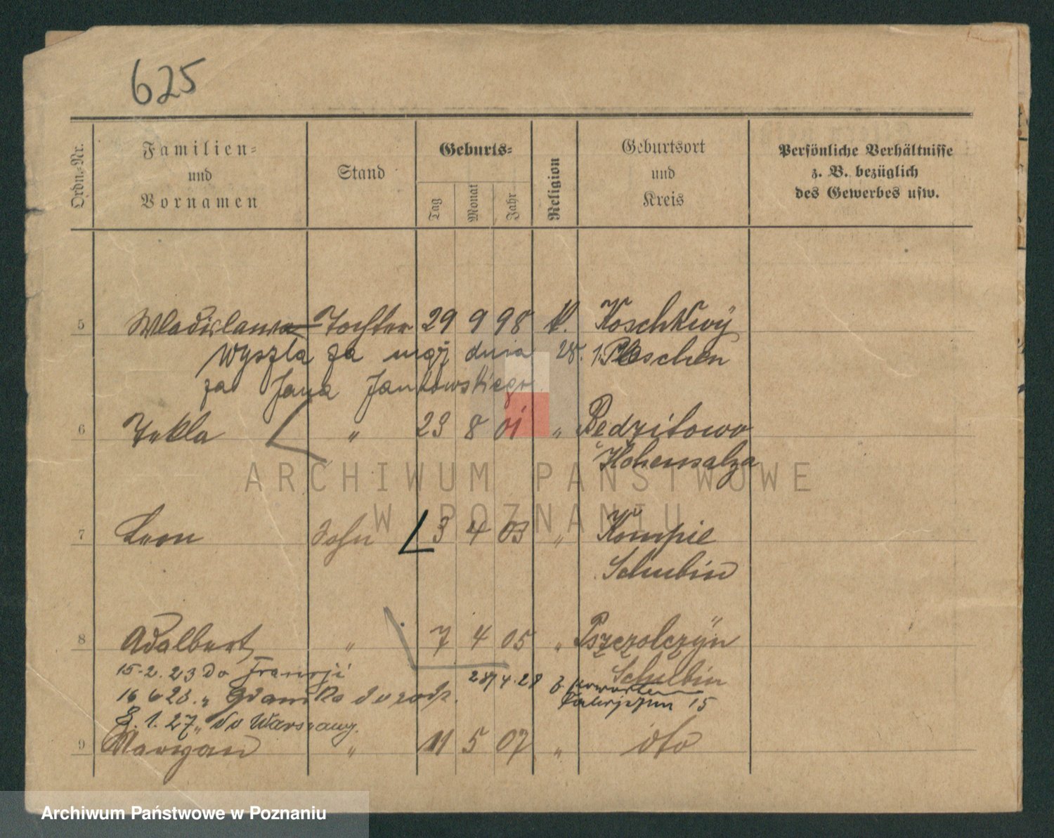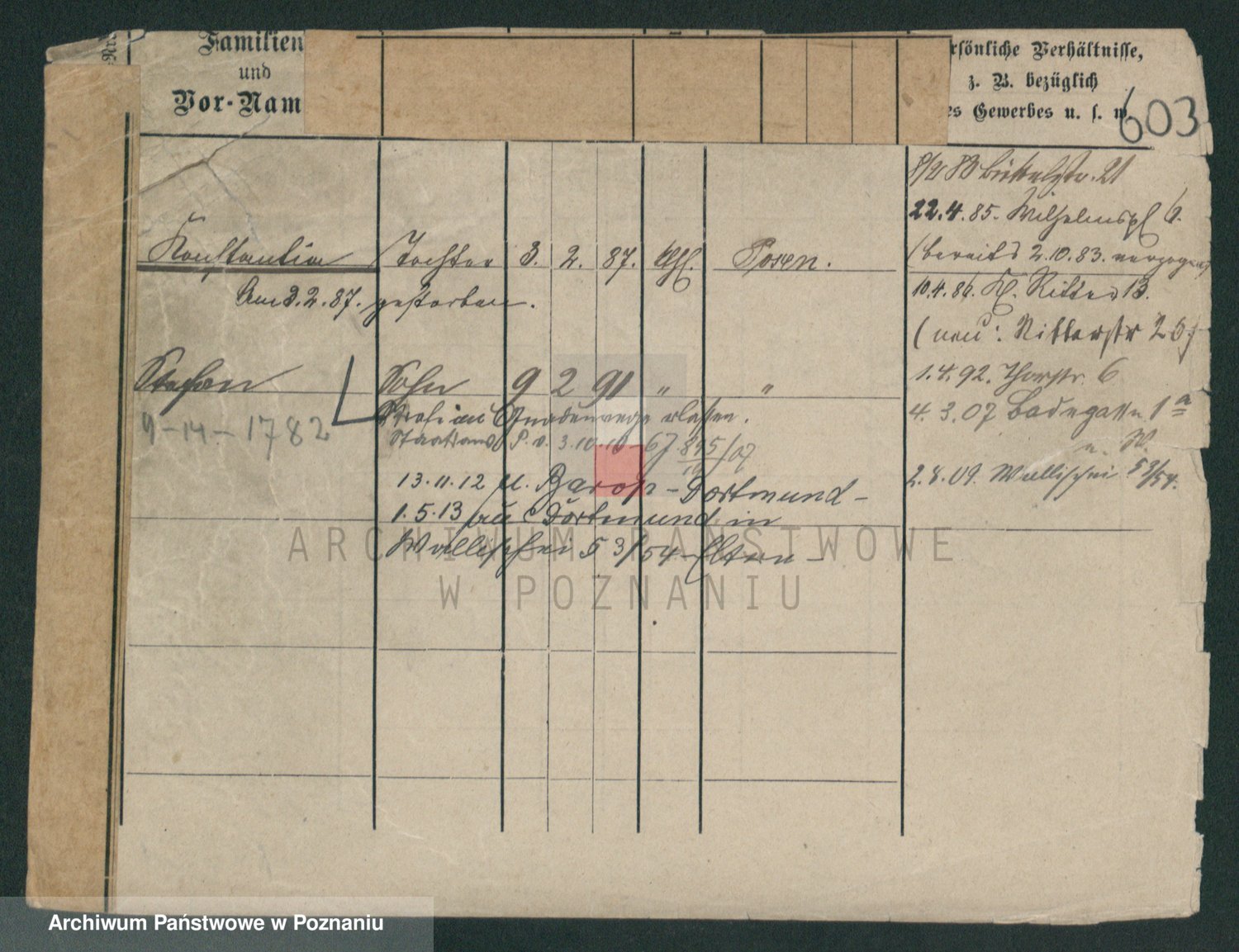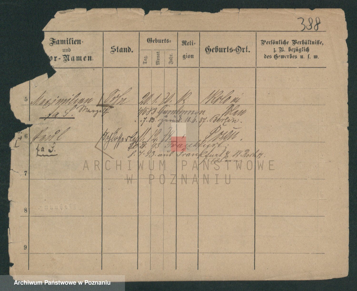 Podgląd karty osobowej dostępny jest po kliknięciu na nazwisko lub ikonkę karty. Można dokonywać powiększenia (ikony na górze) lub przechodzić między kolejnymi skanami (strzałki po bokach).