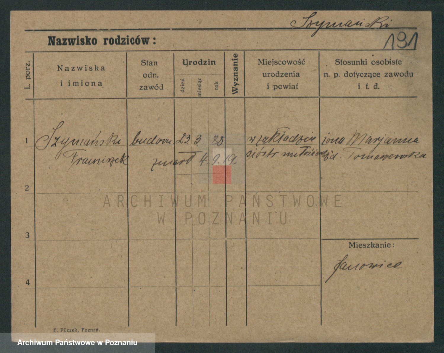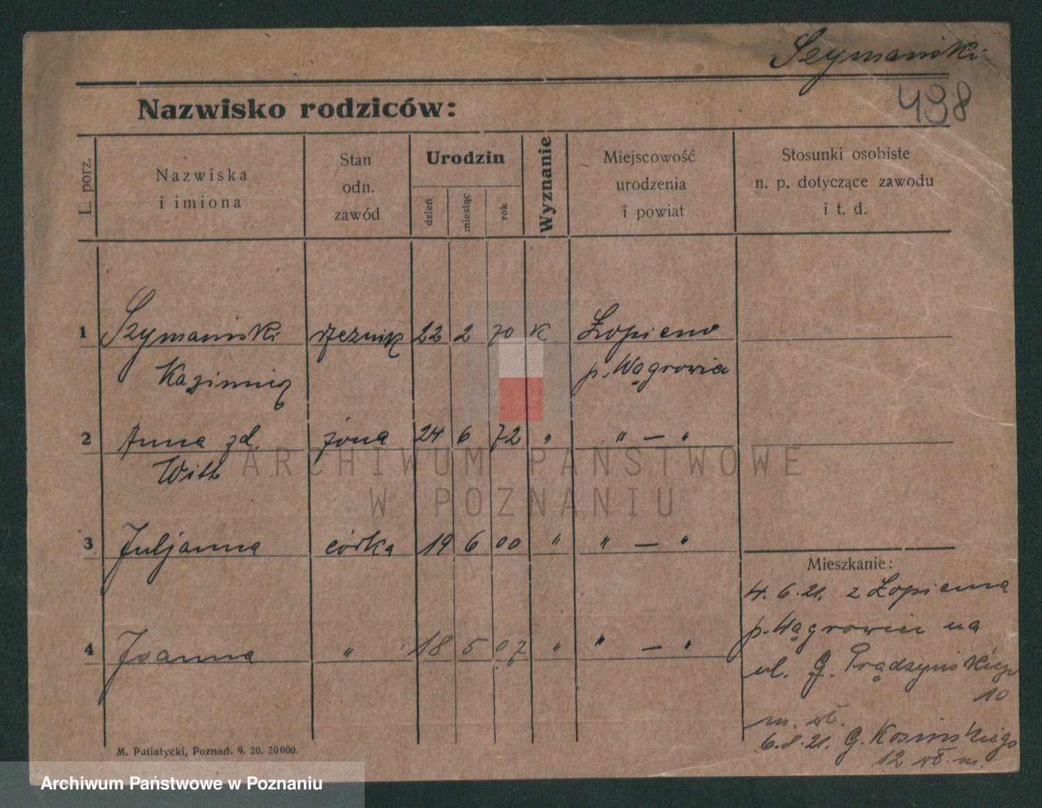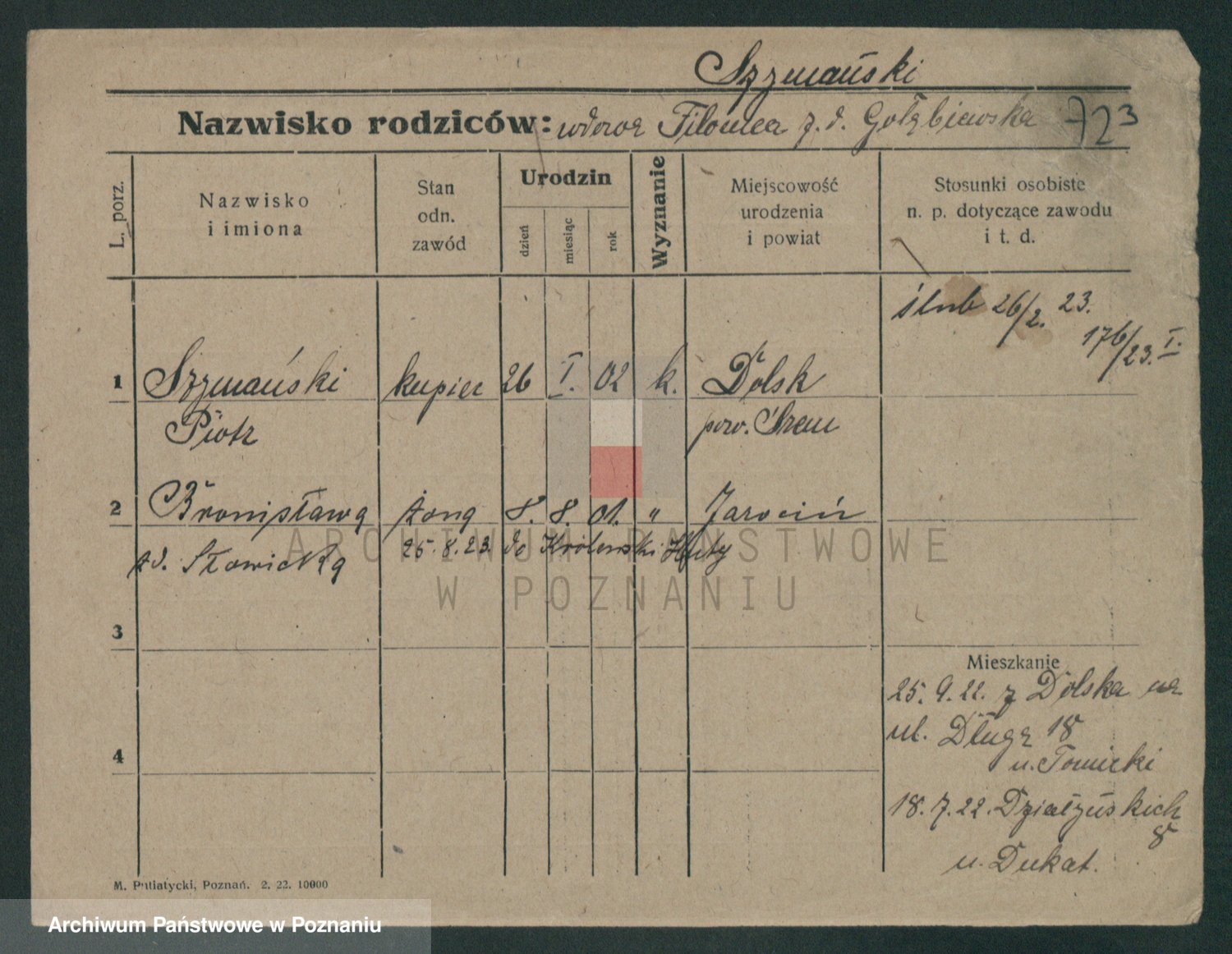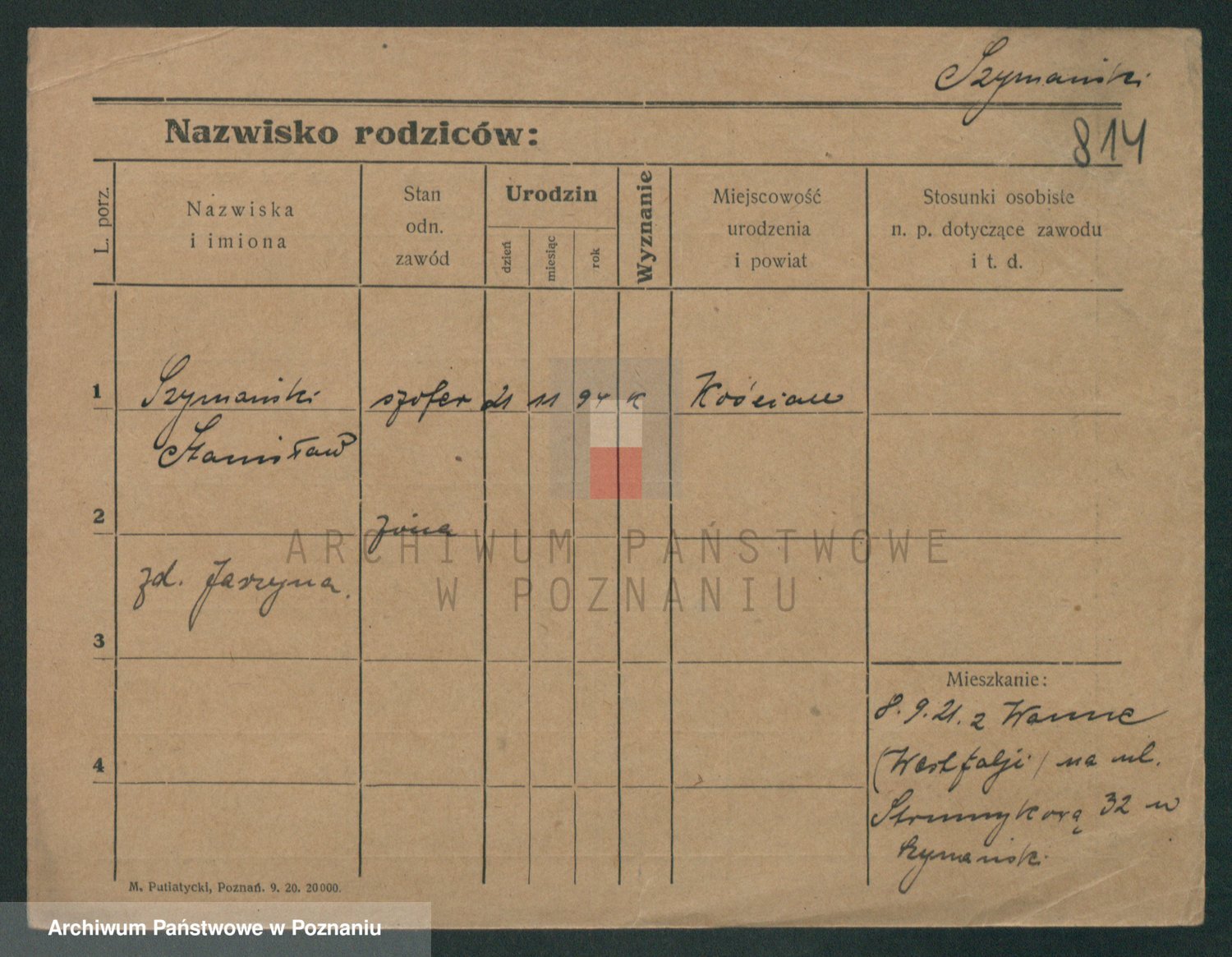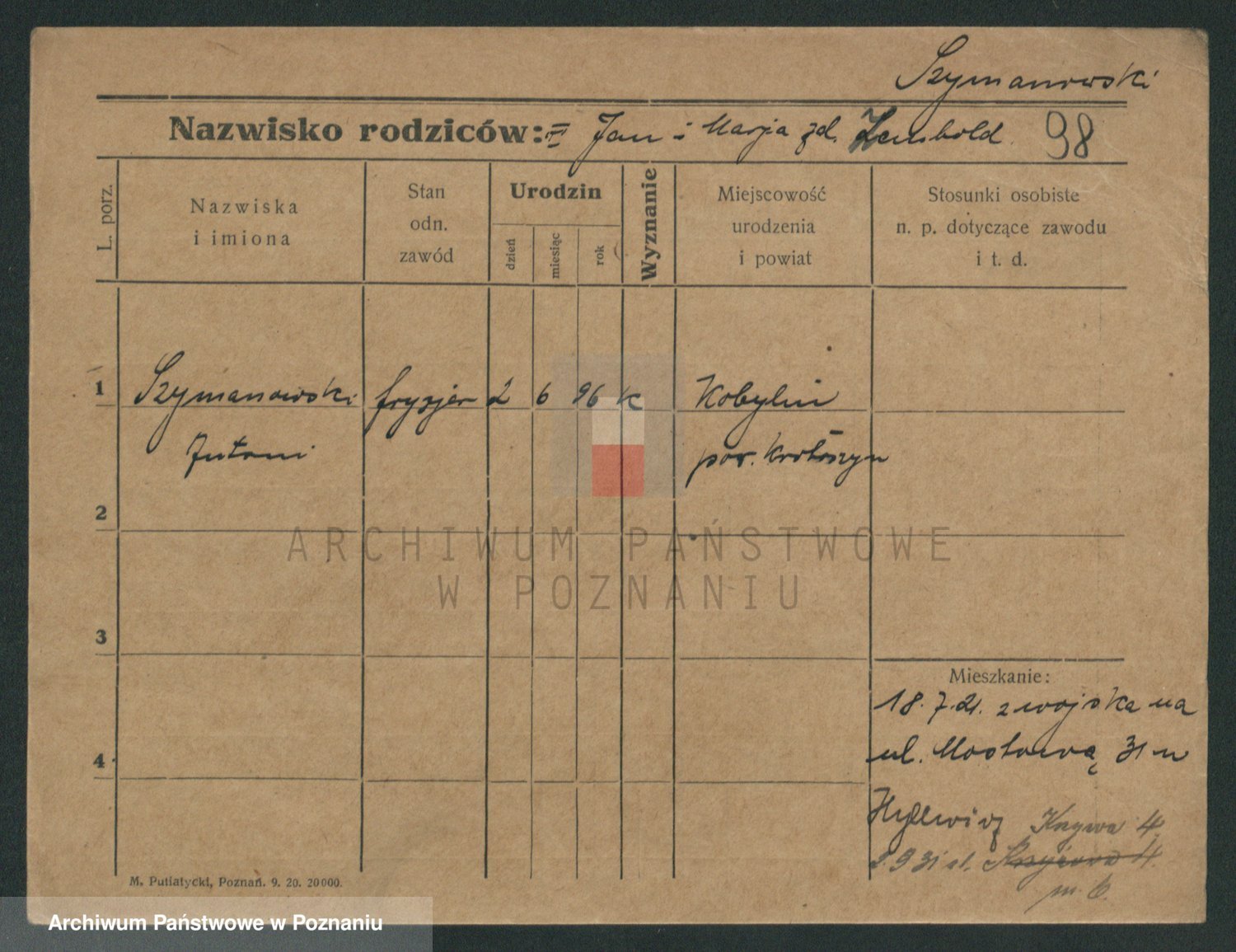 Szymański z d. Jarzyna, brak imienia