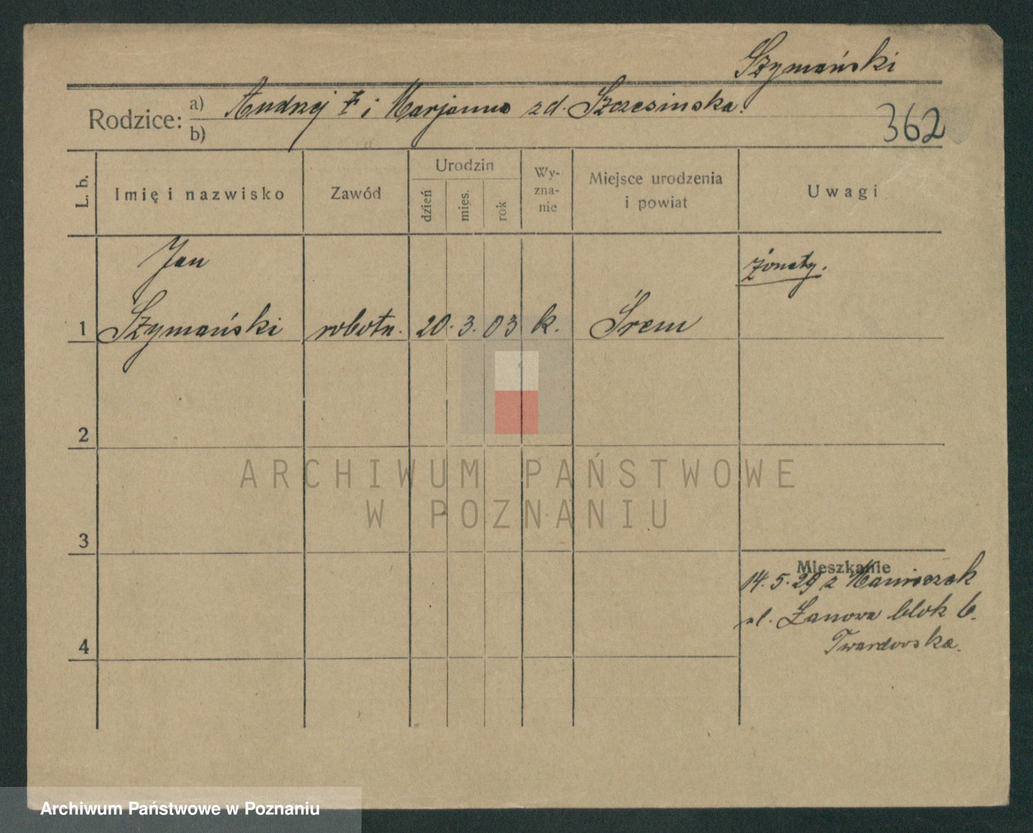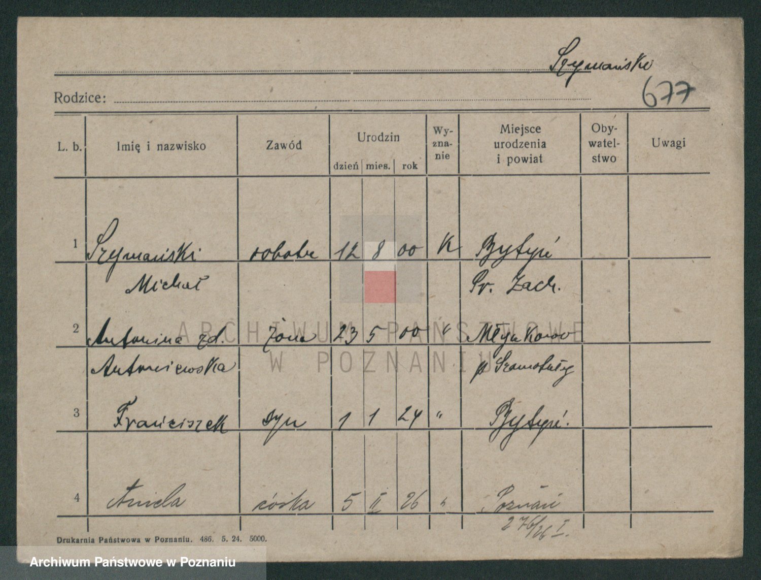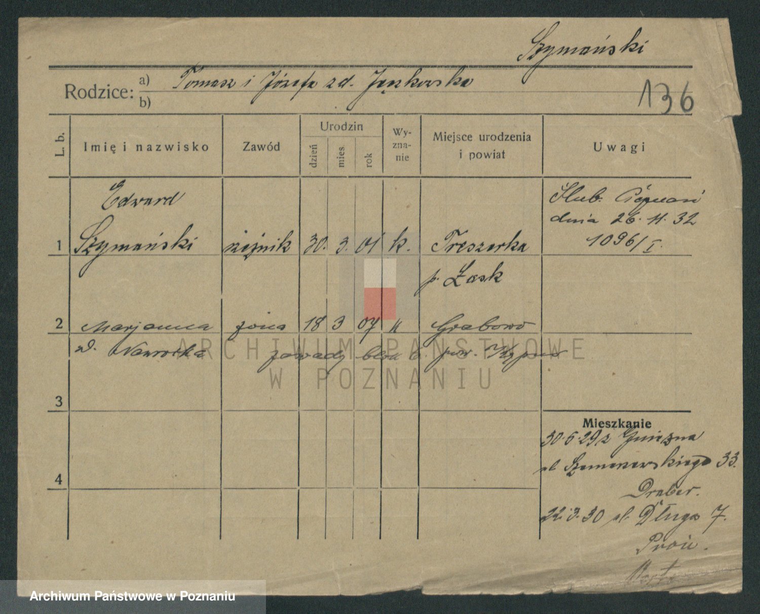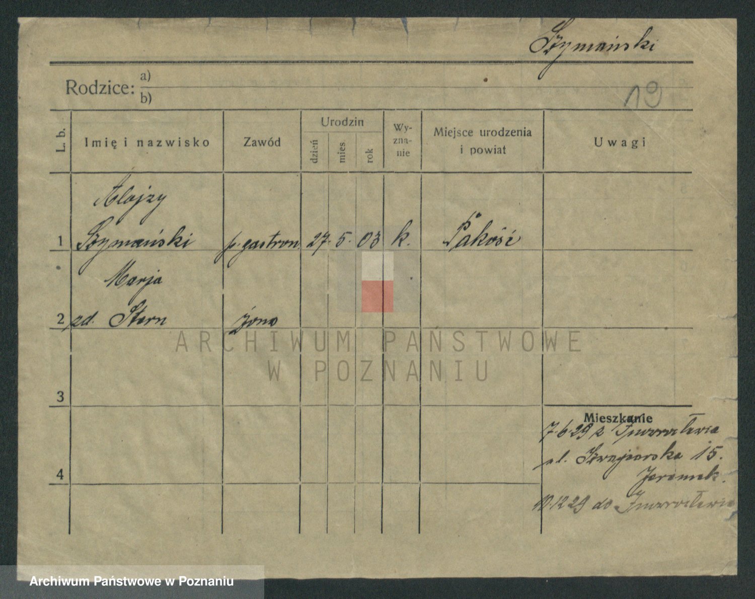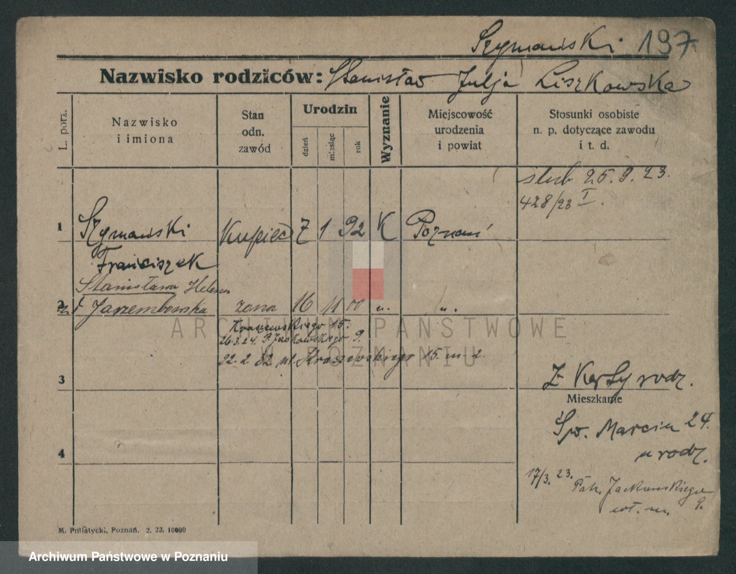 Szymański z d. Jarzyna, brak imienia
