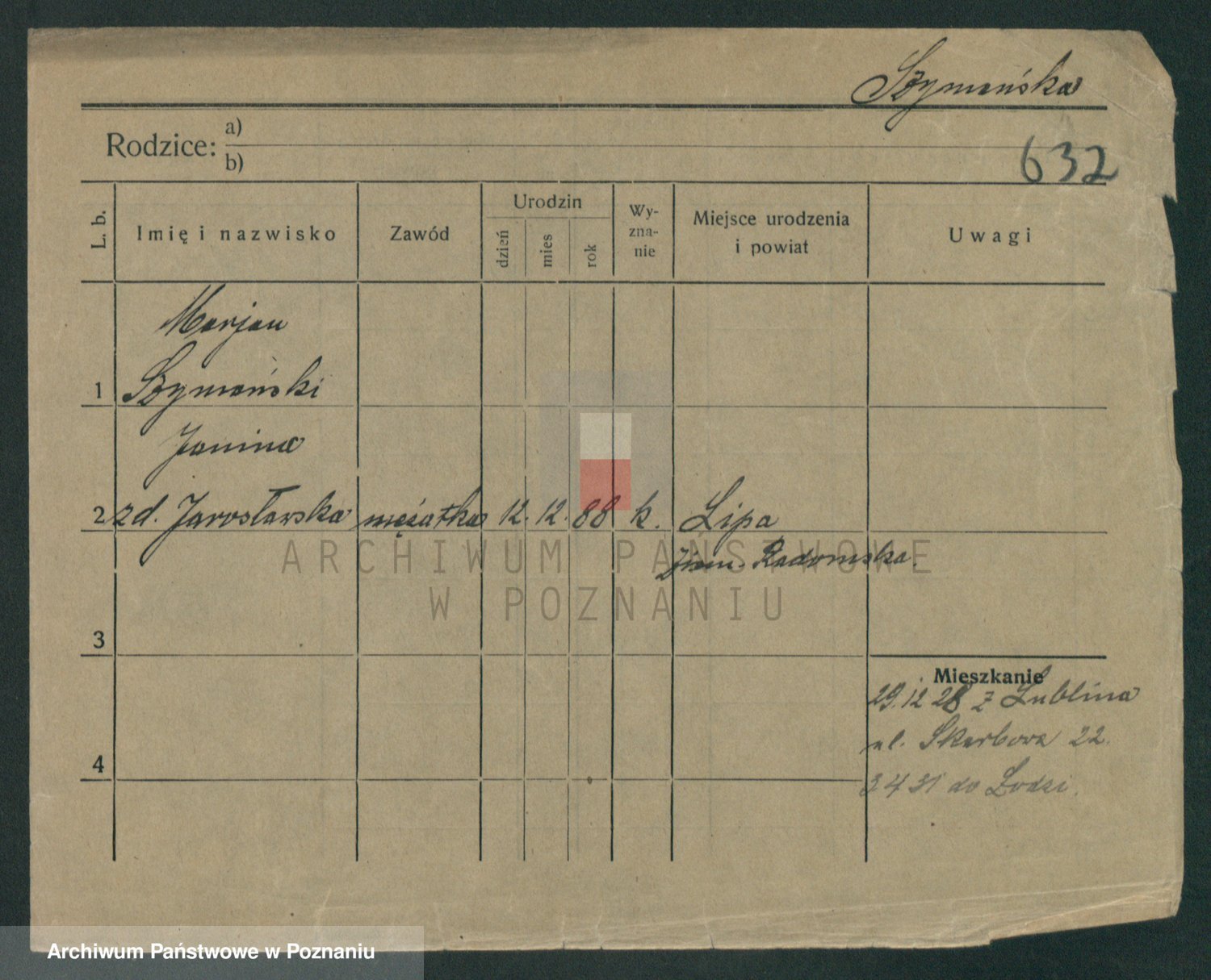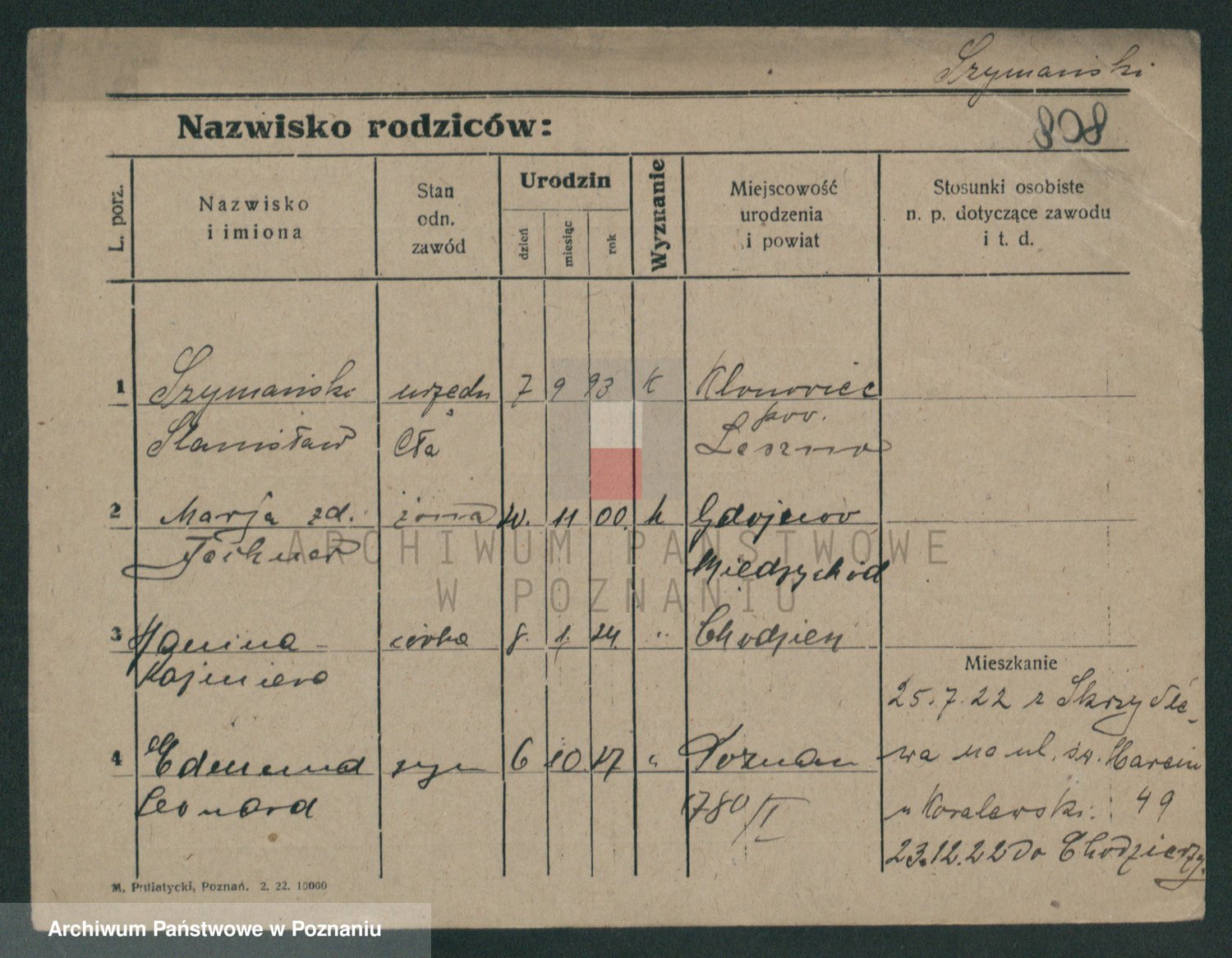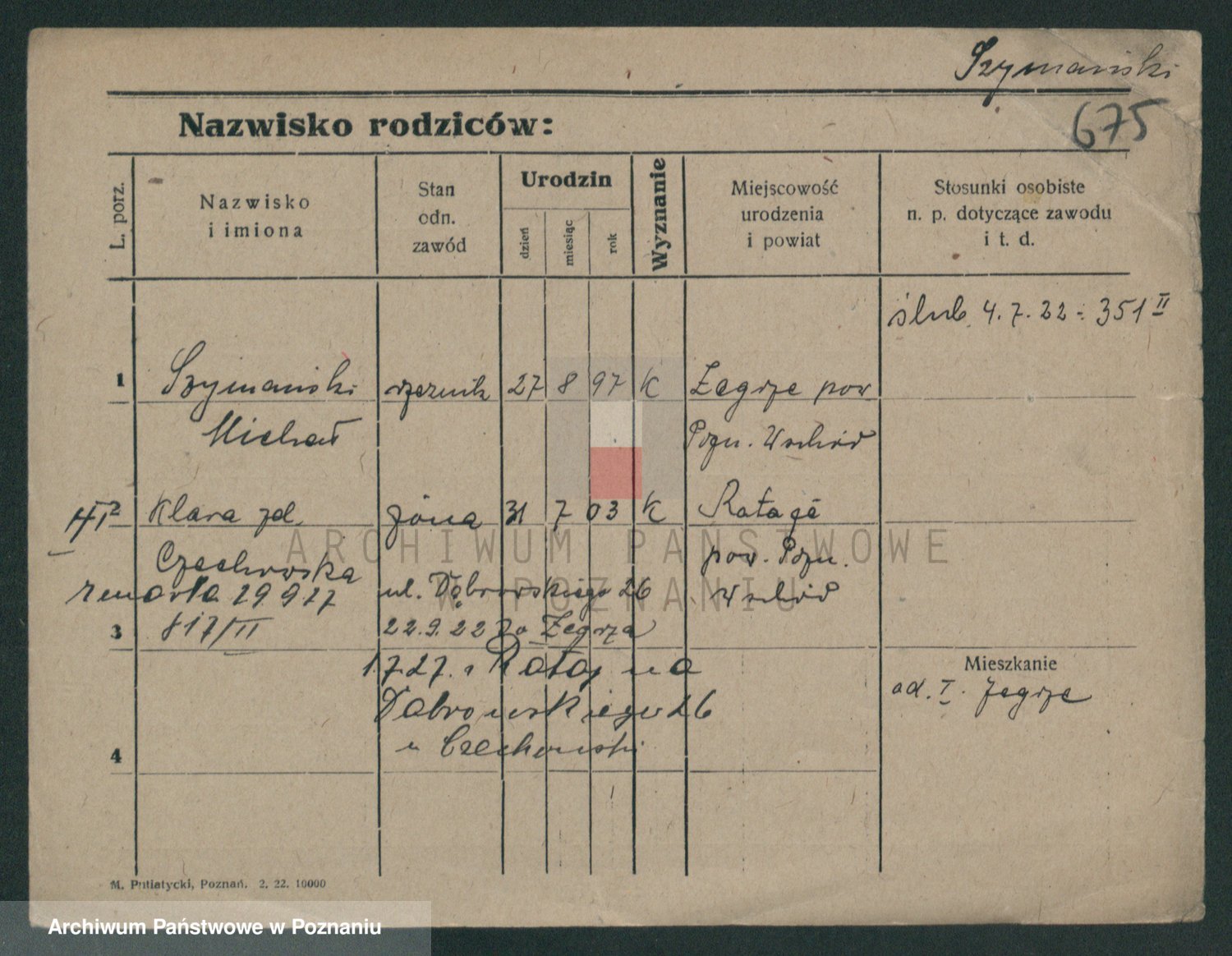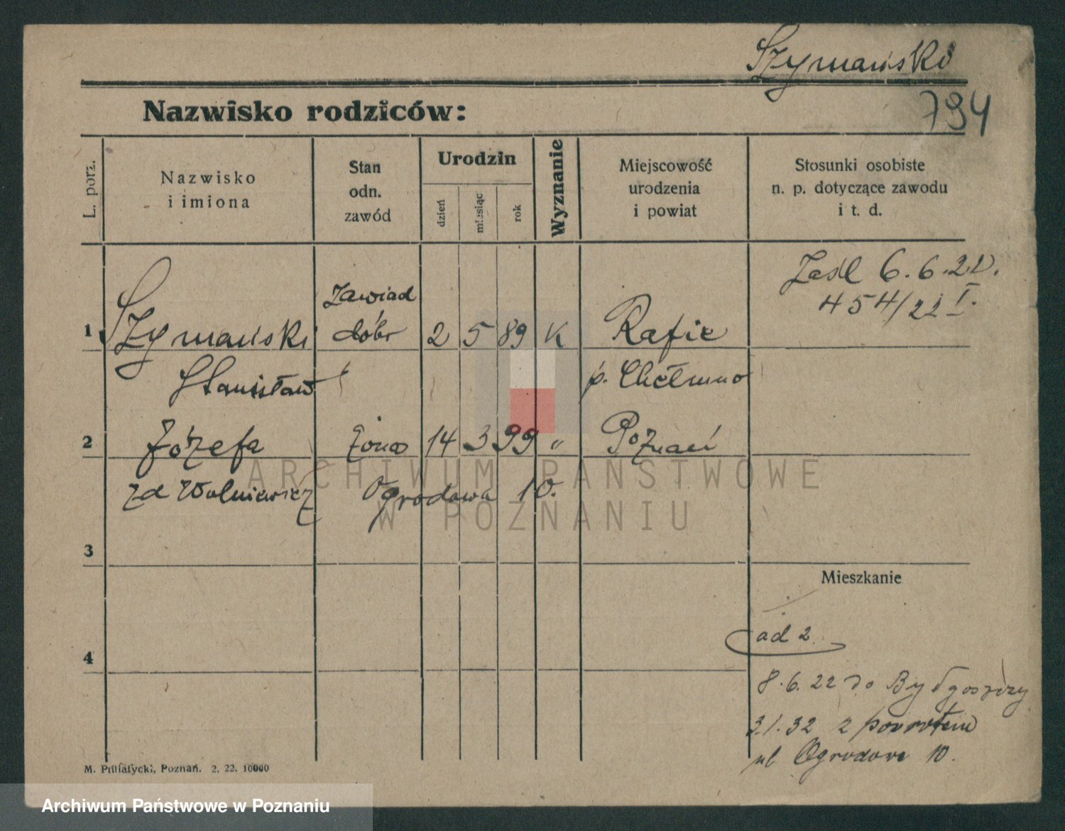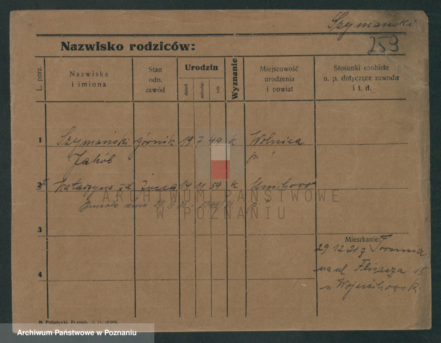 Szymański z d. Jarzyna, brak imienia