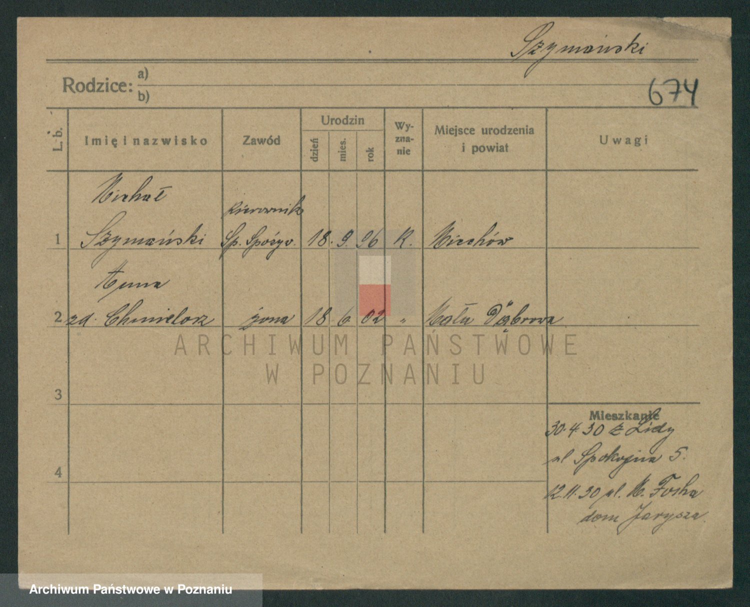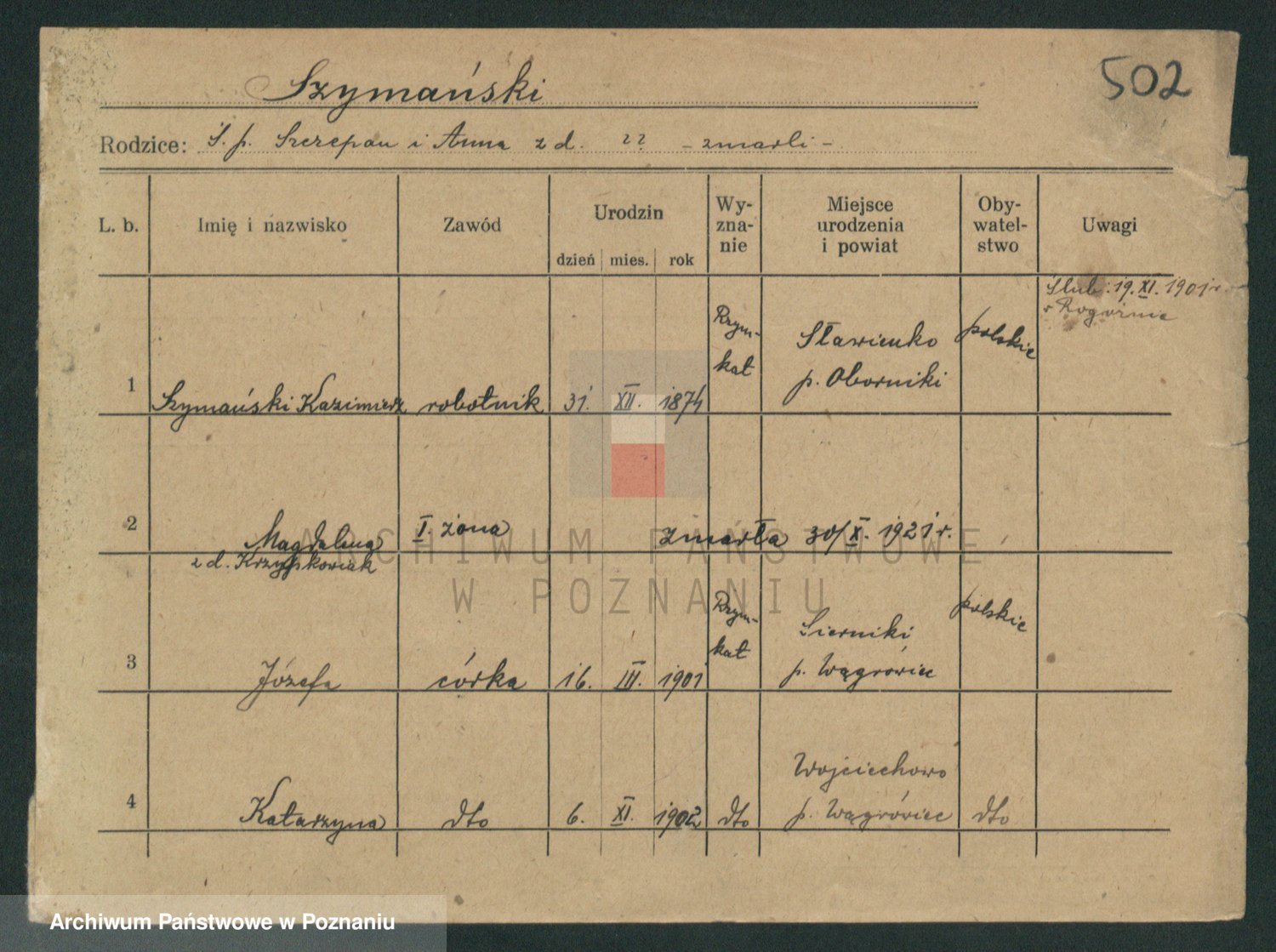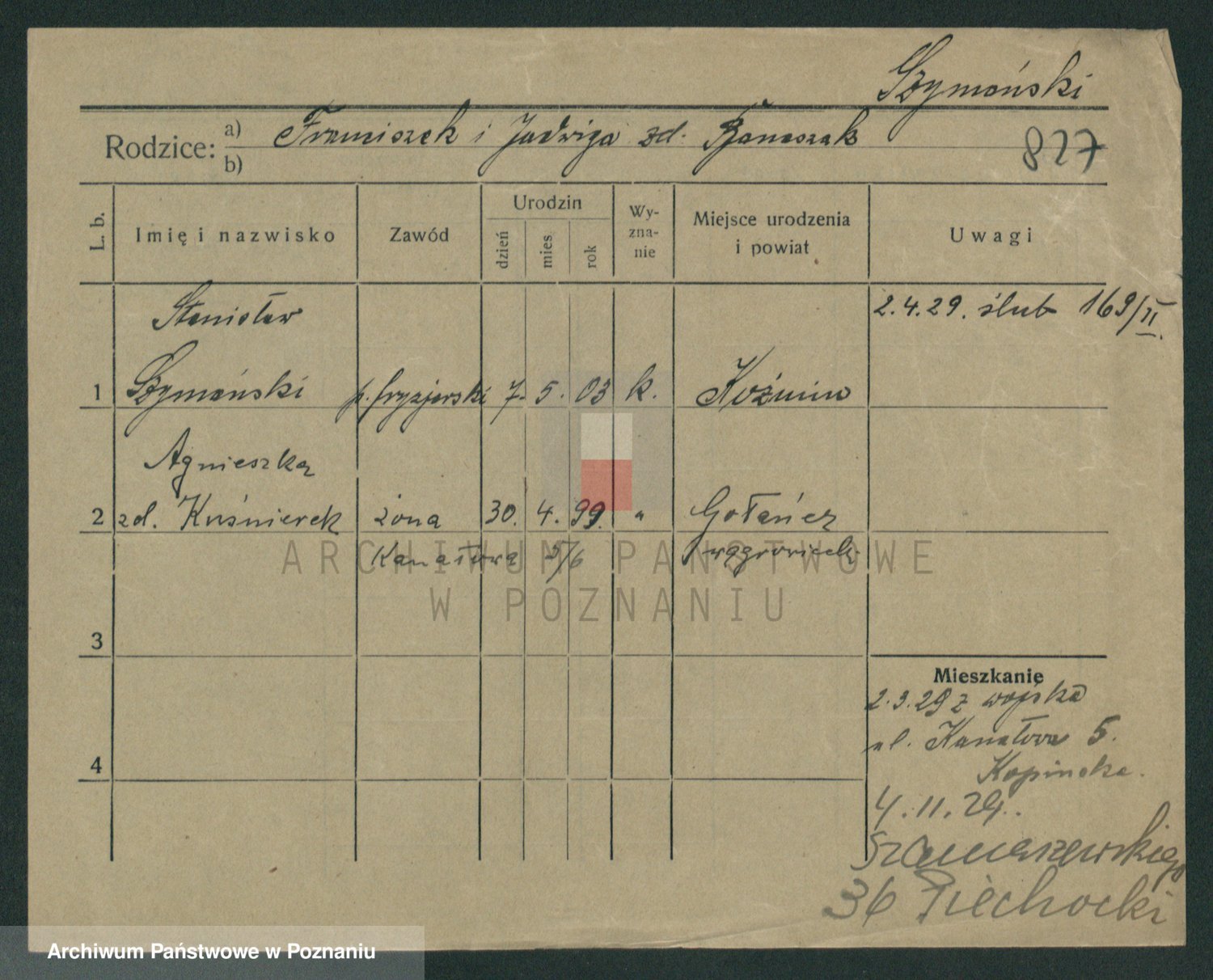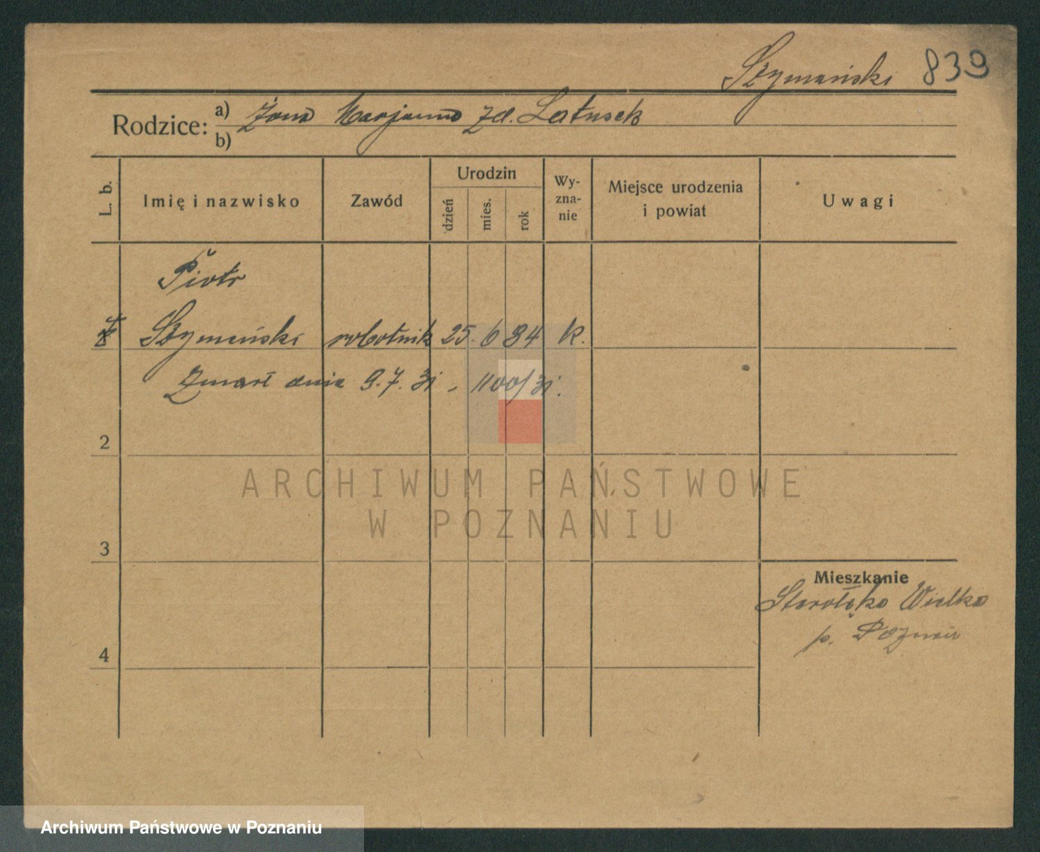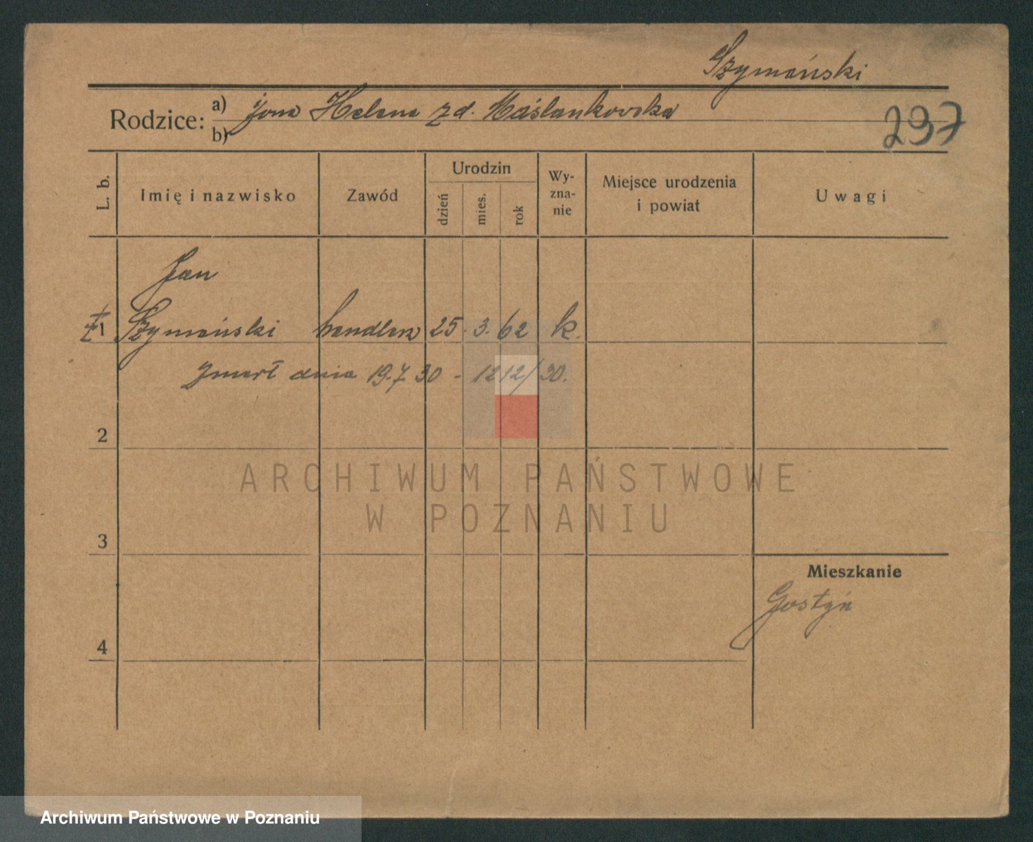 Szymański z d. Jarzyna, brak imienia