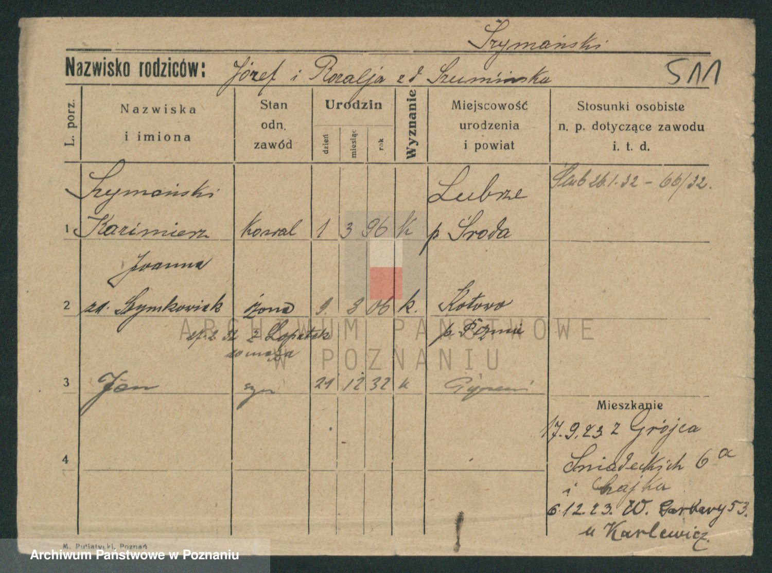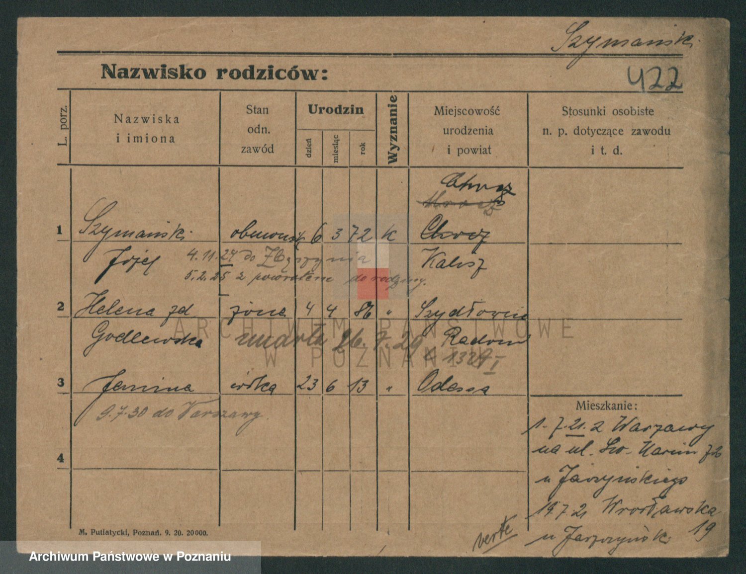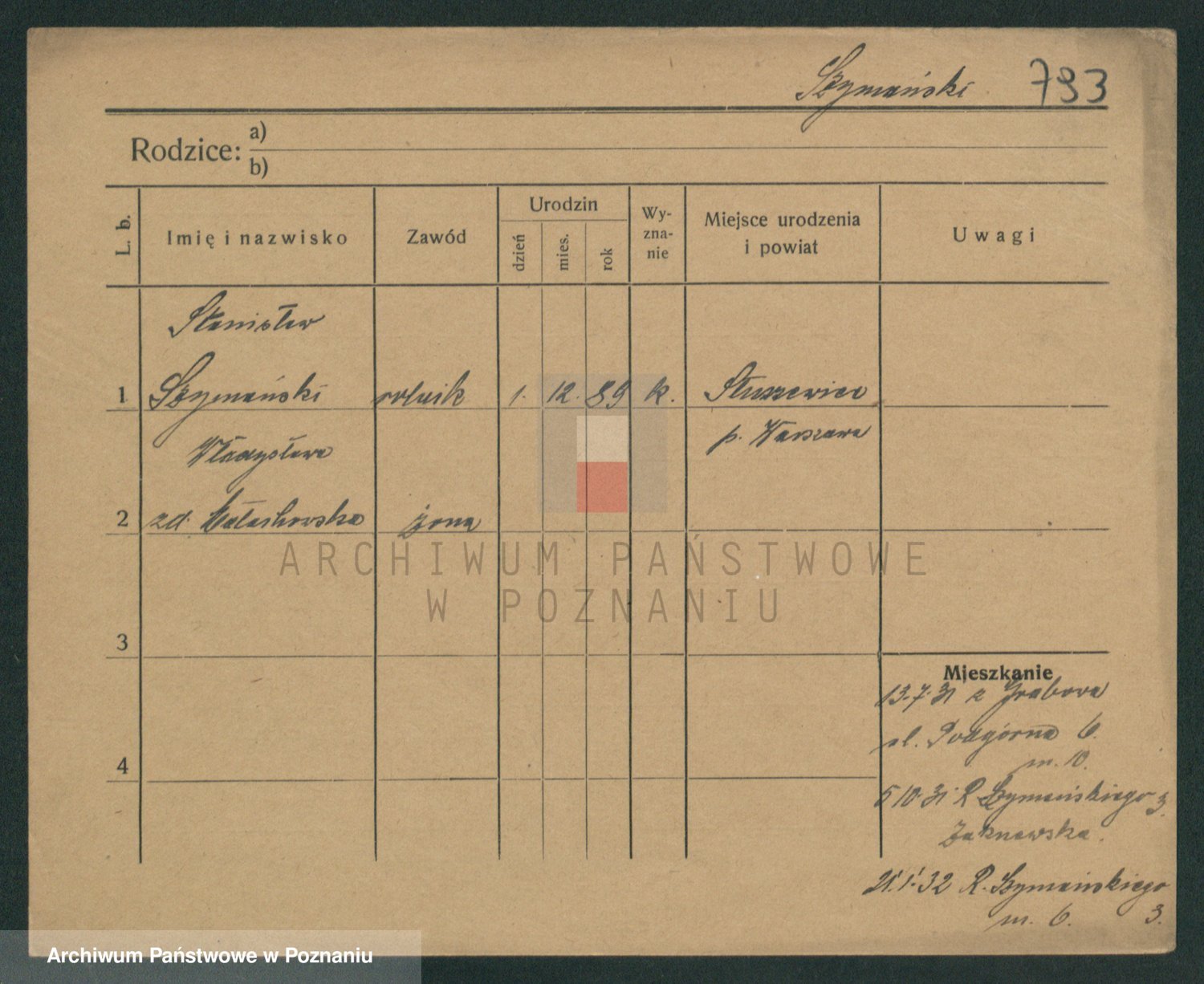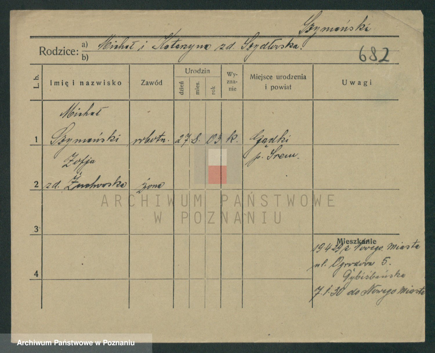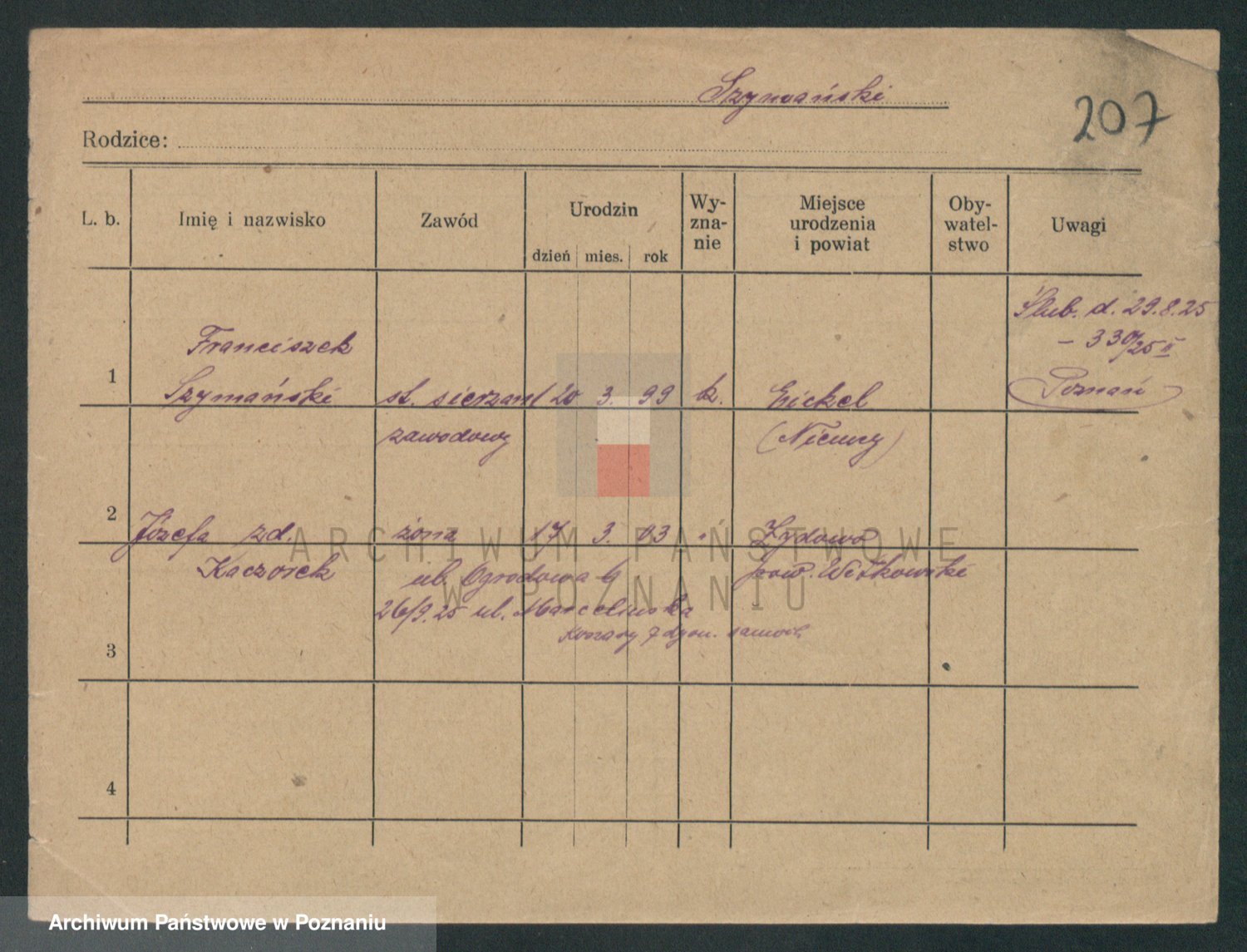Szymański z d. Jarzyna, brak imienia