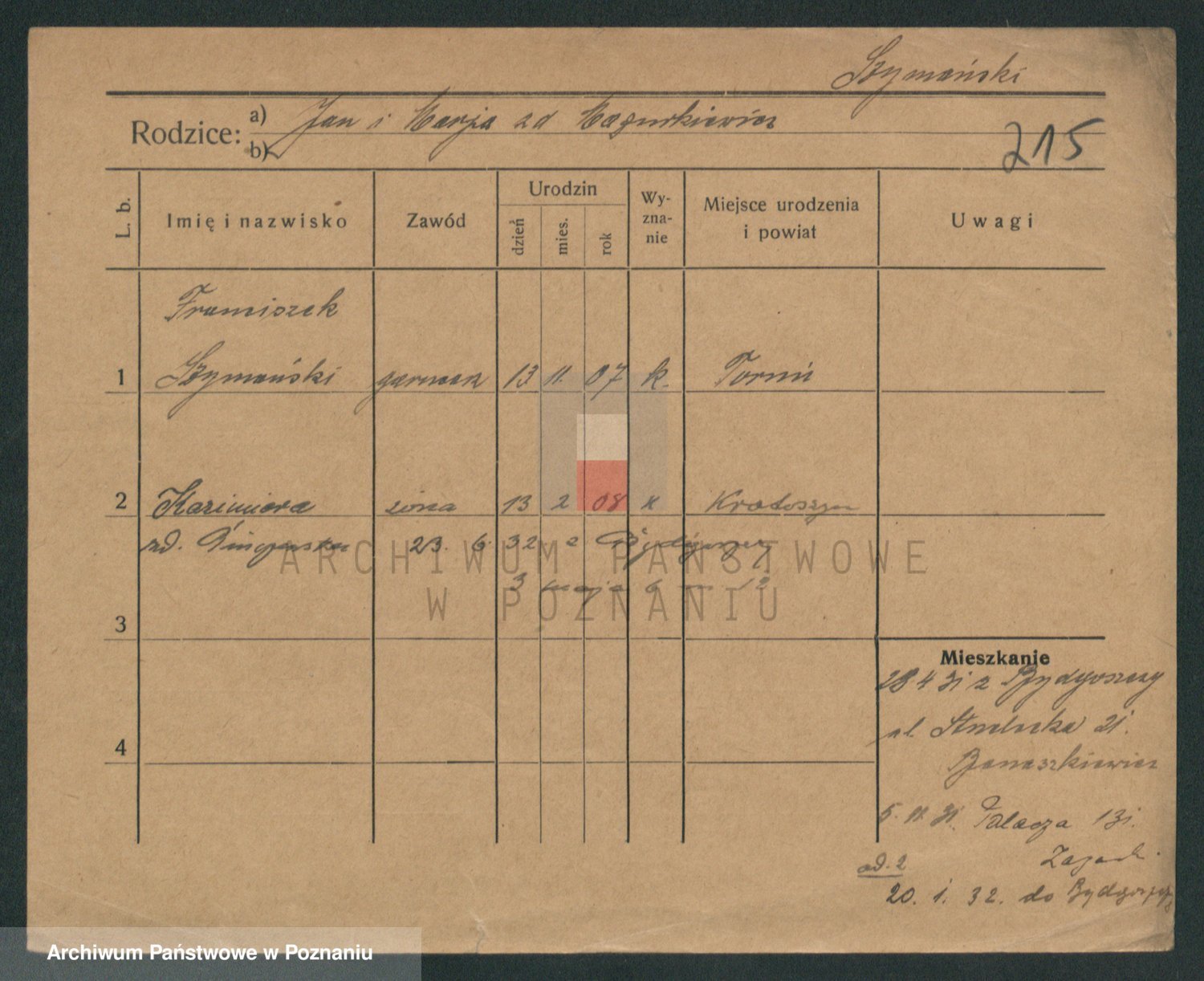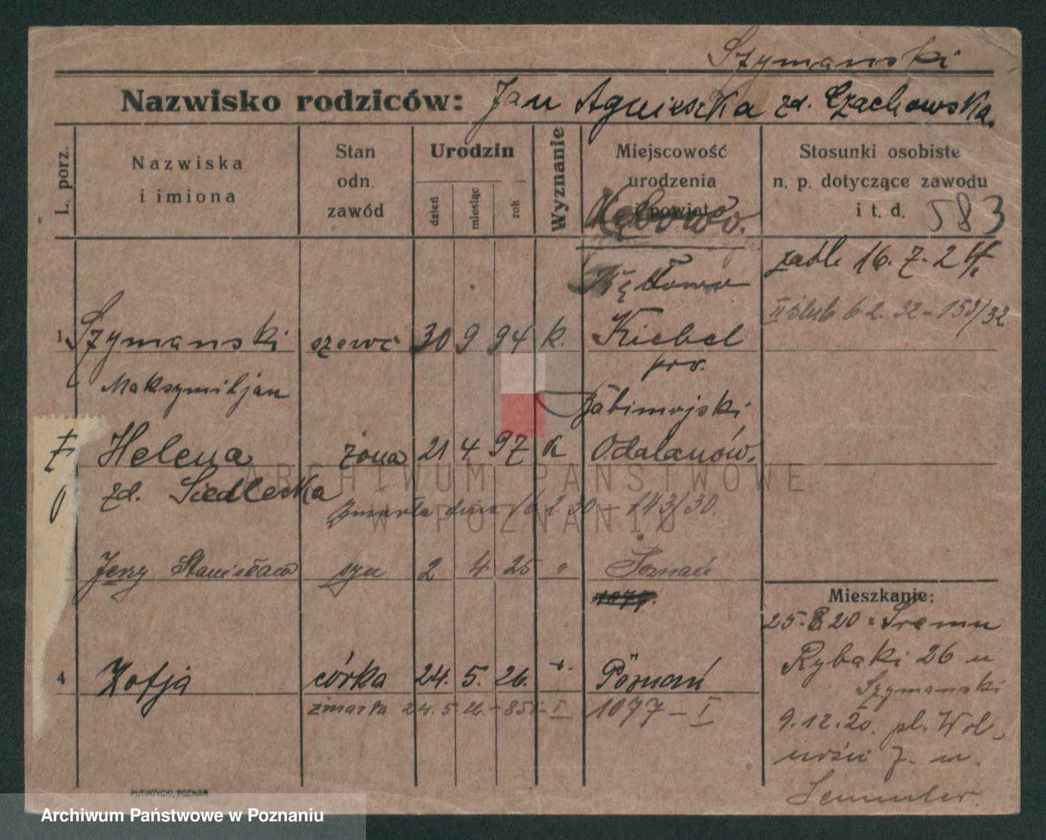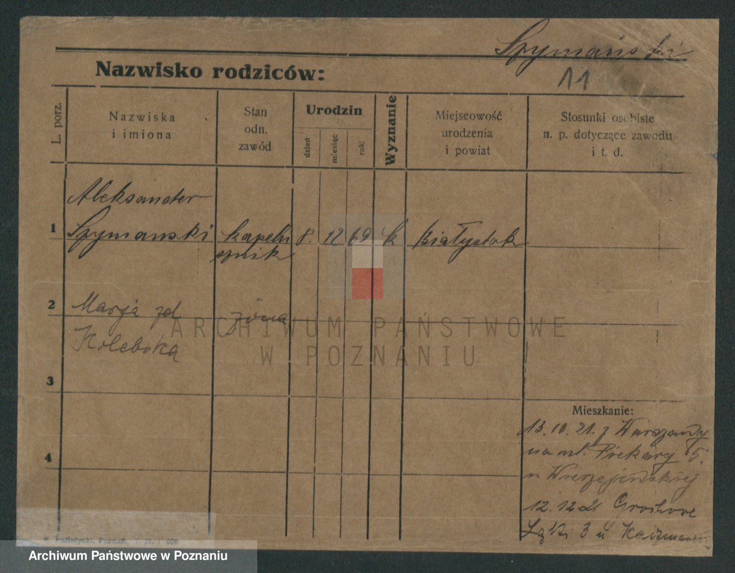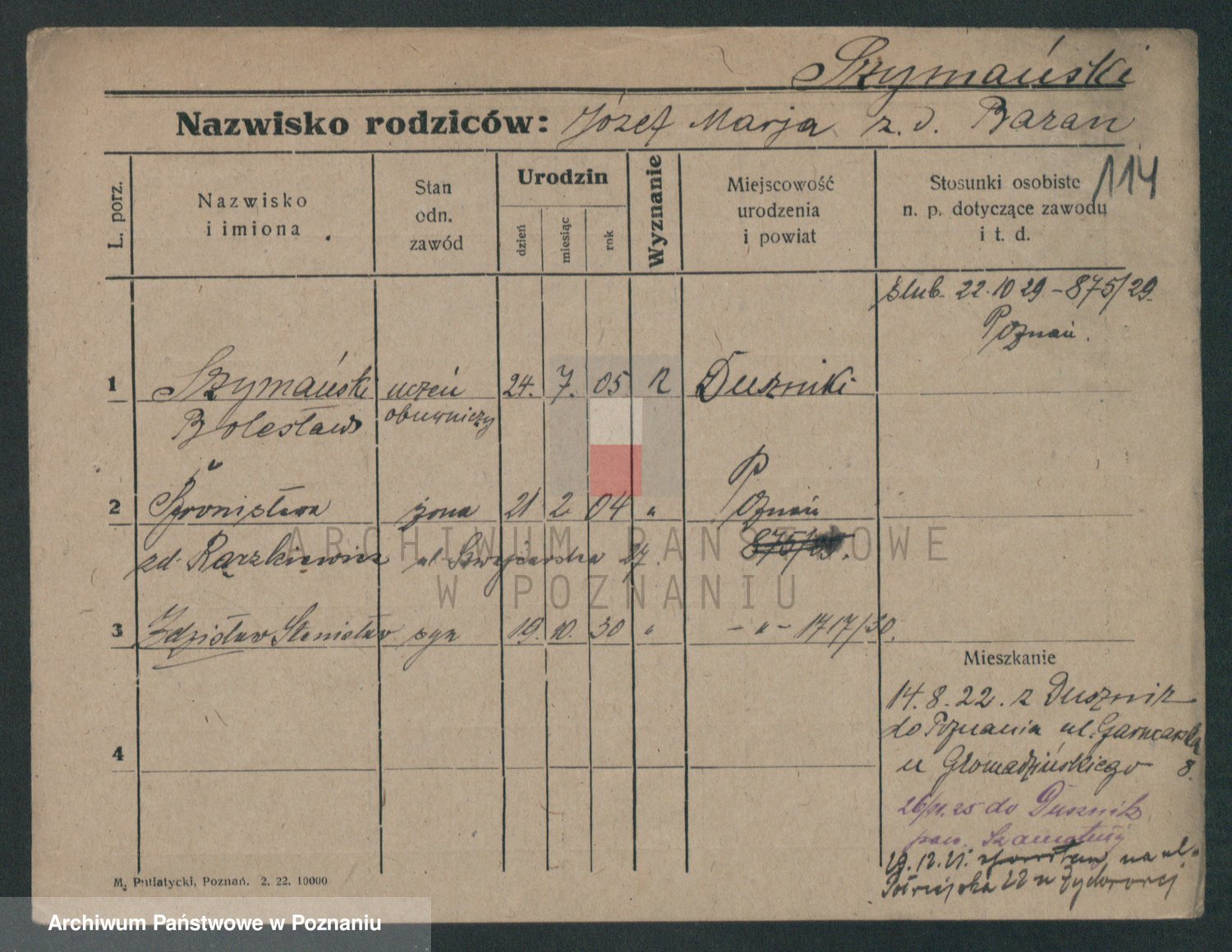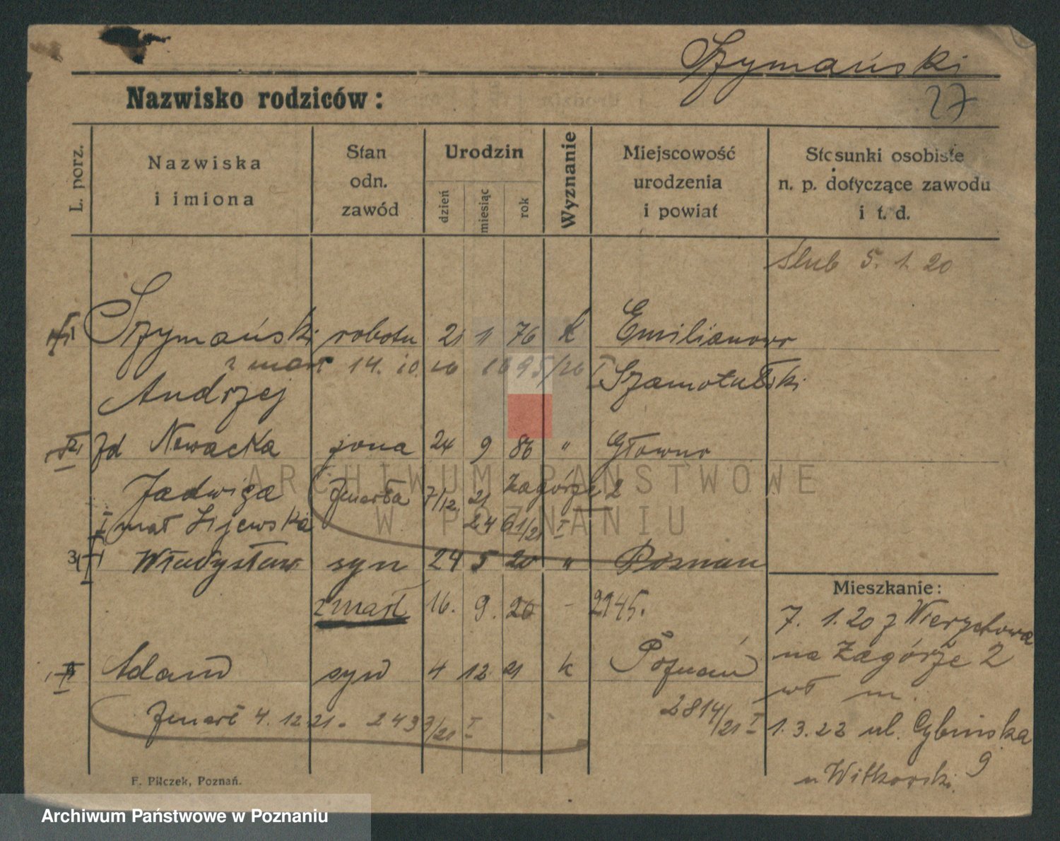 Szymański z d. Jarzyna, brak imienia