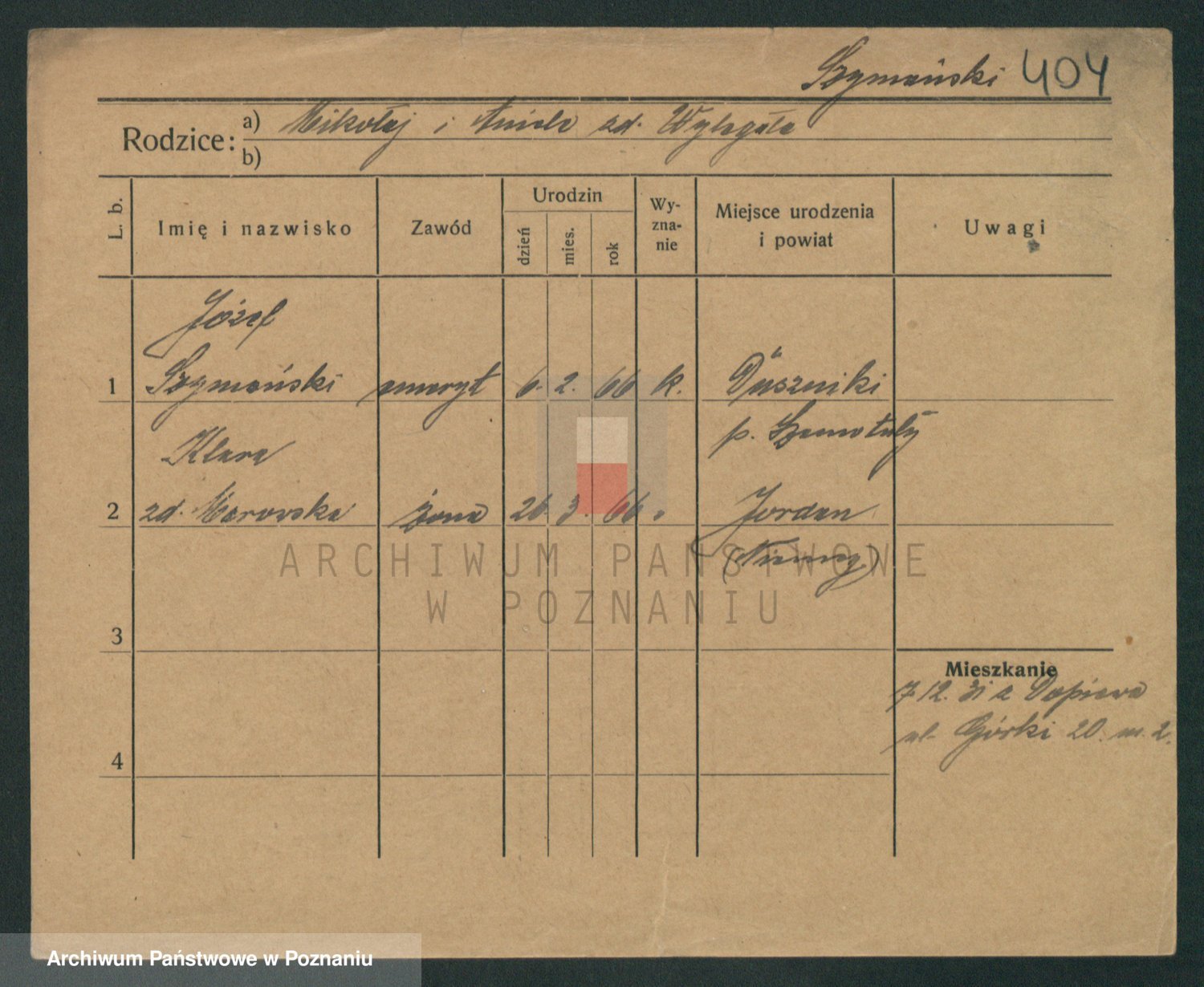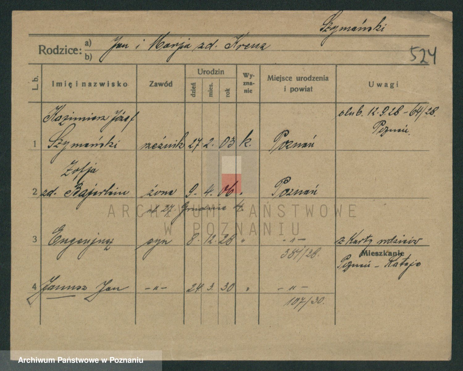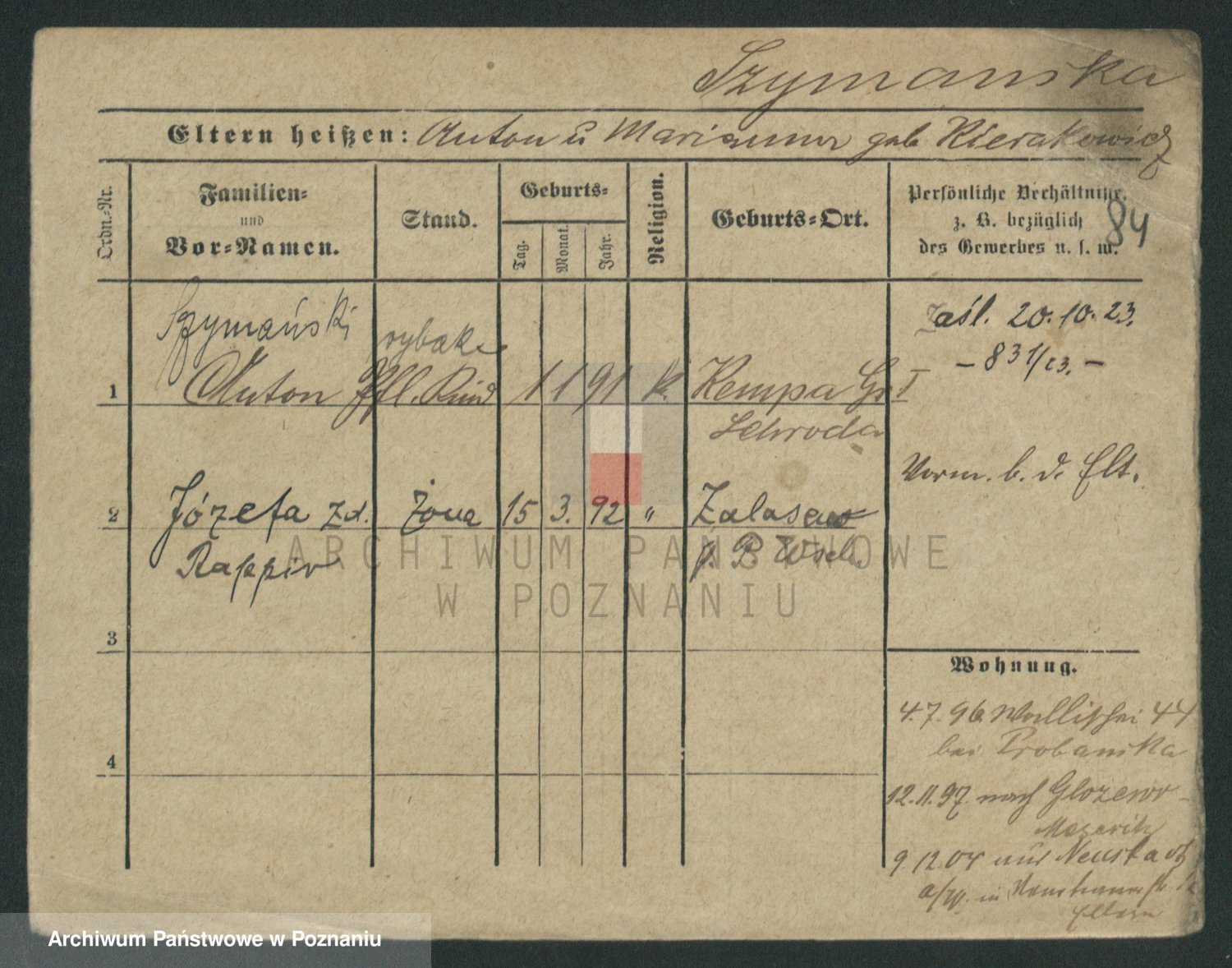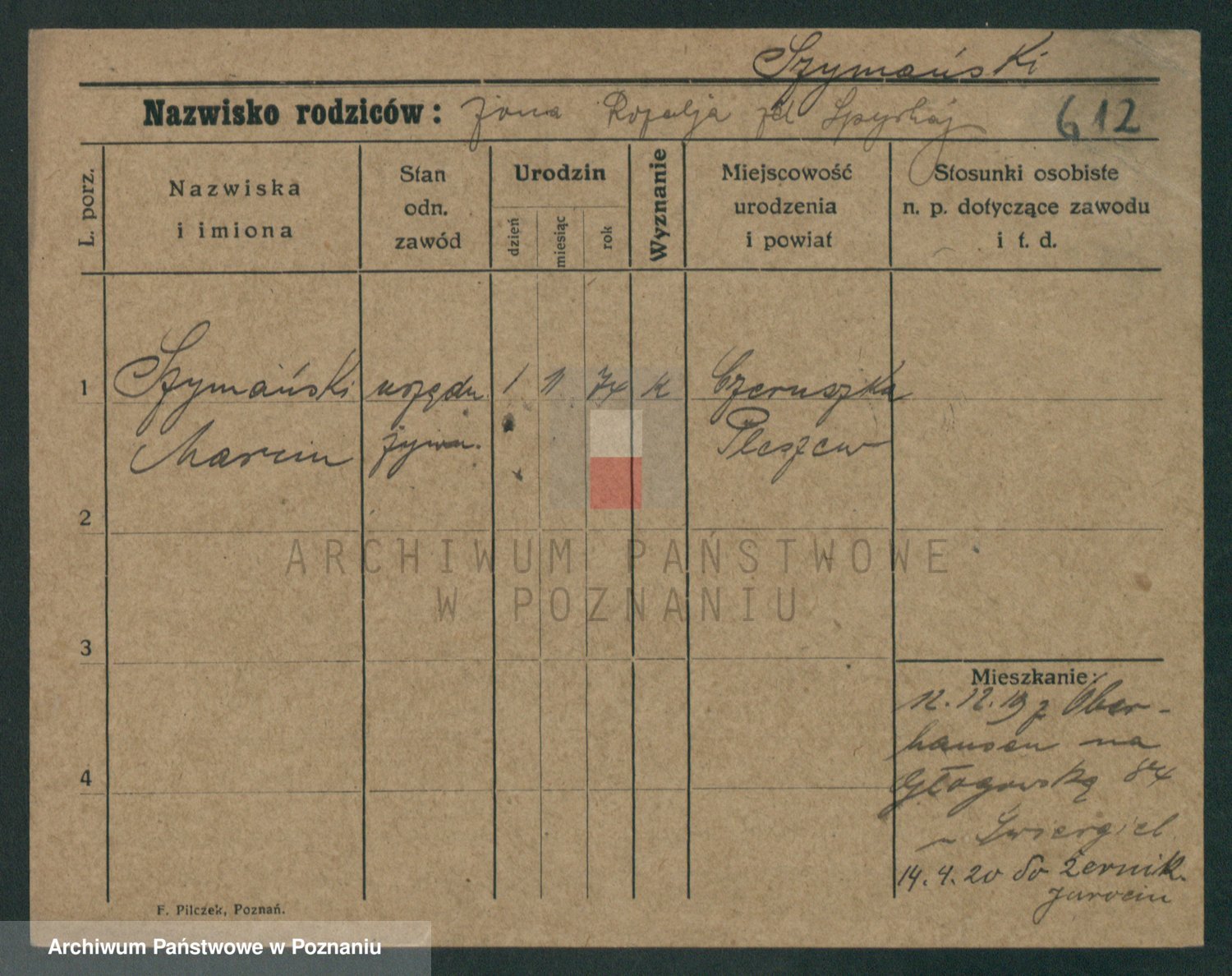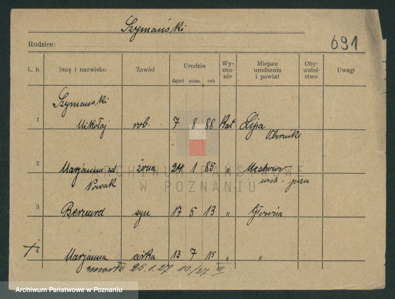 Szymański z d. Jarzyna, brak imienia