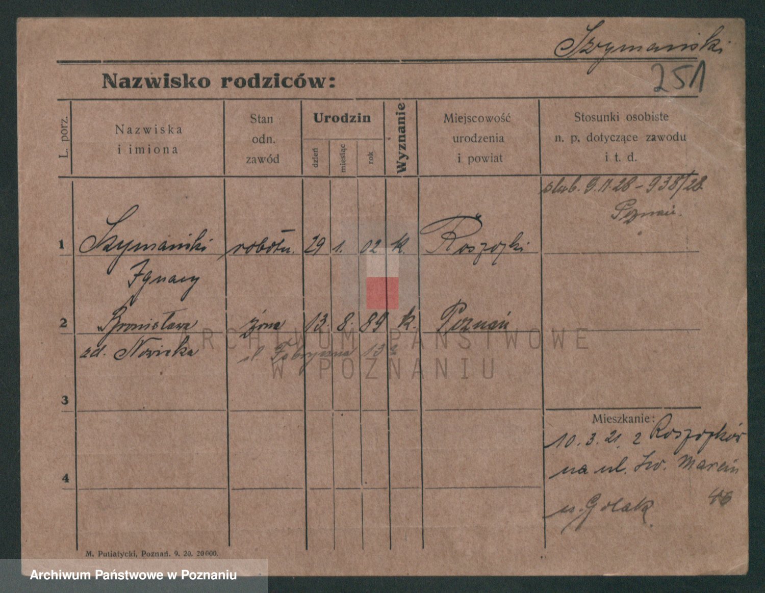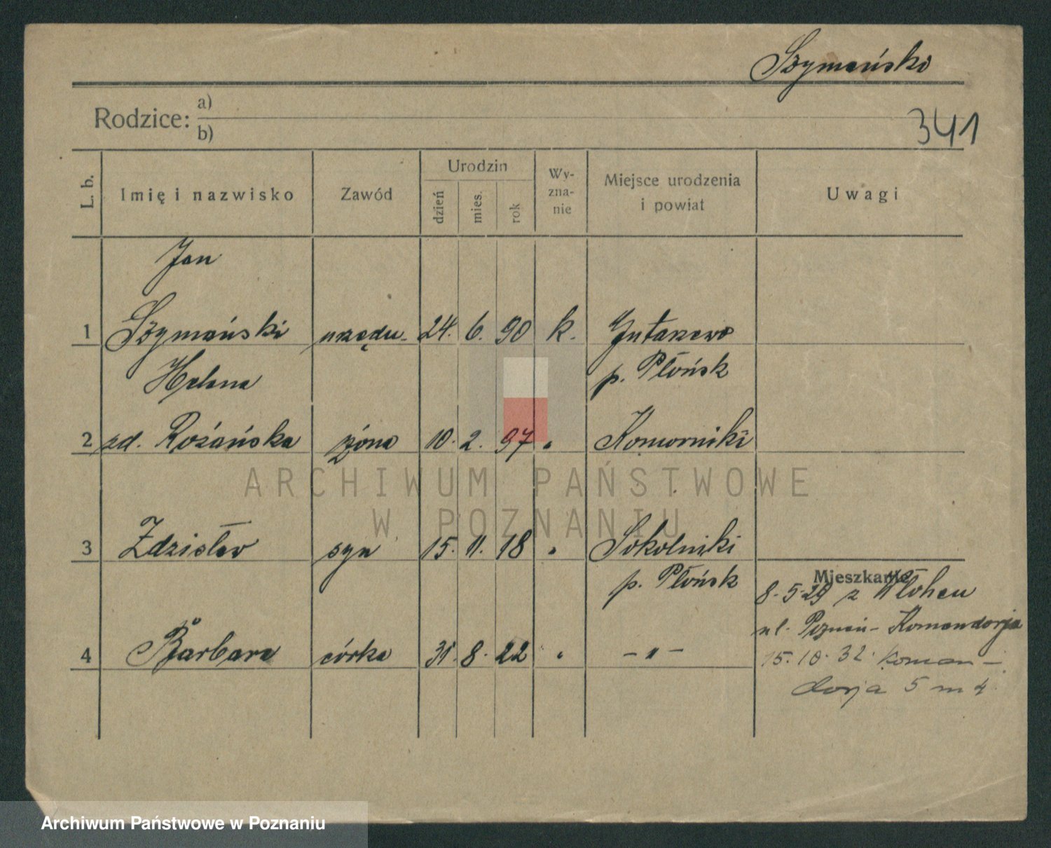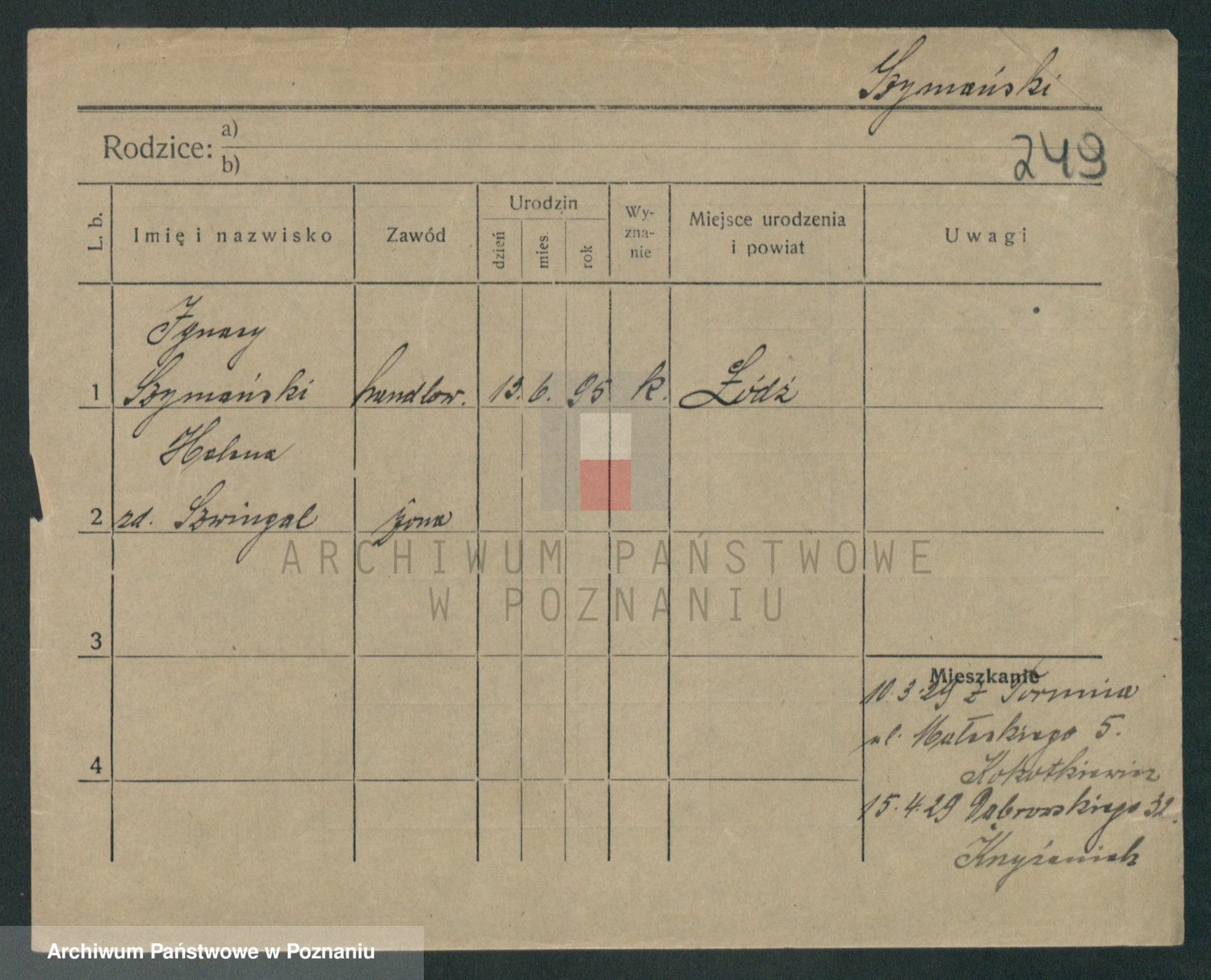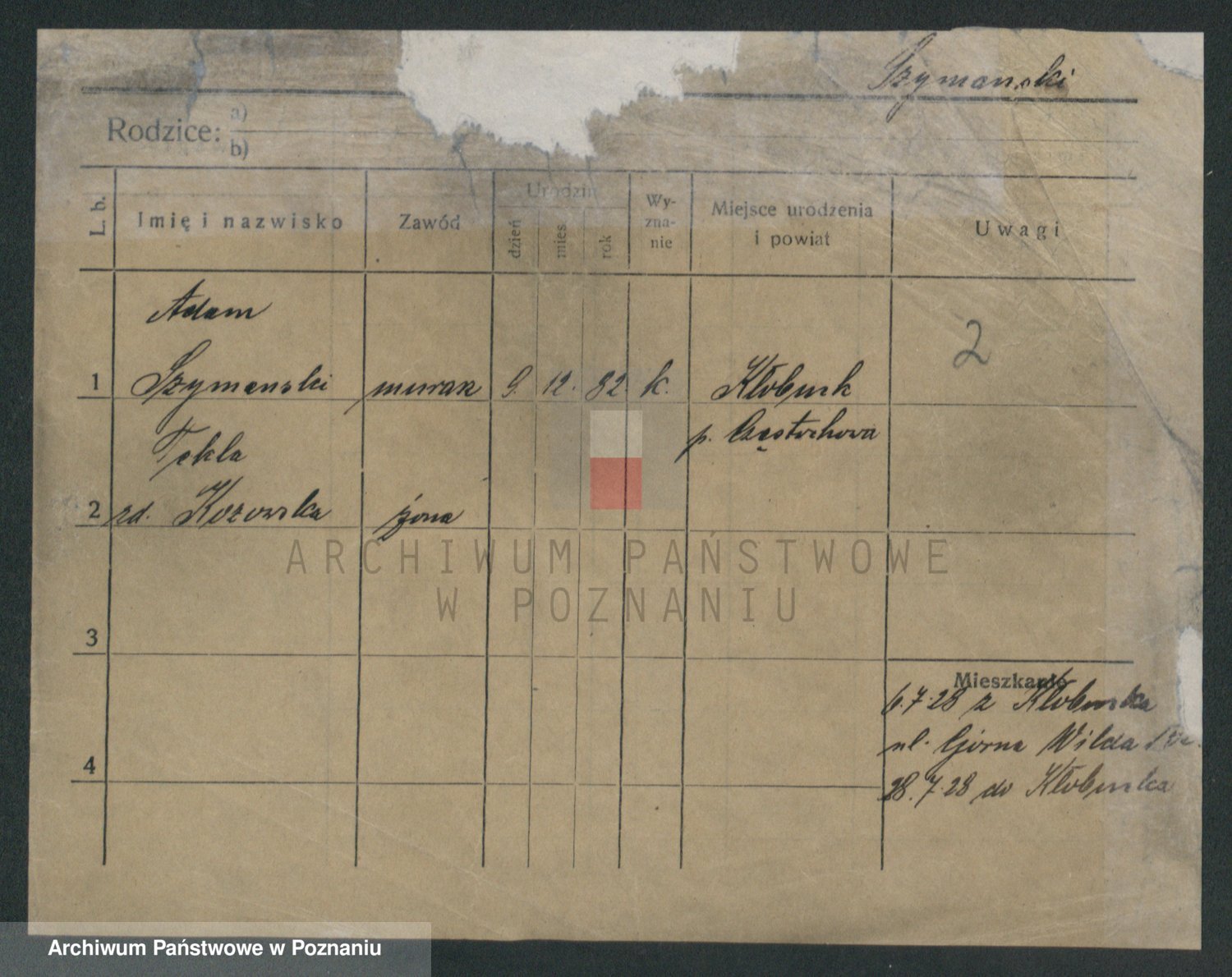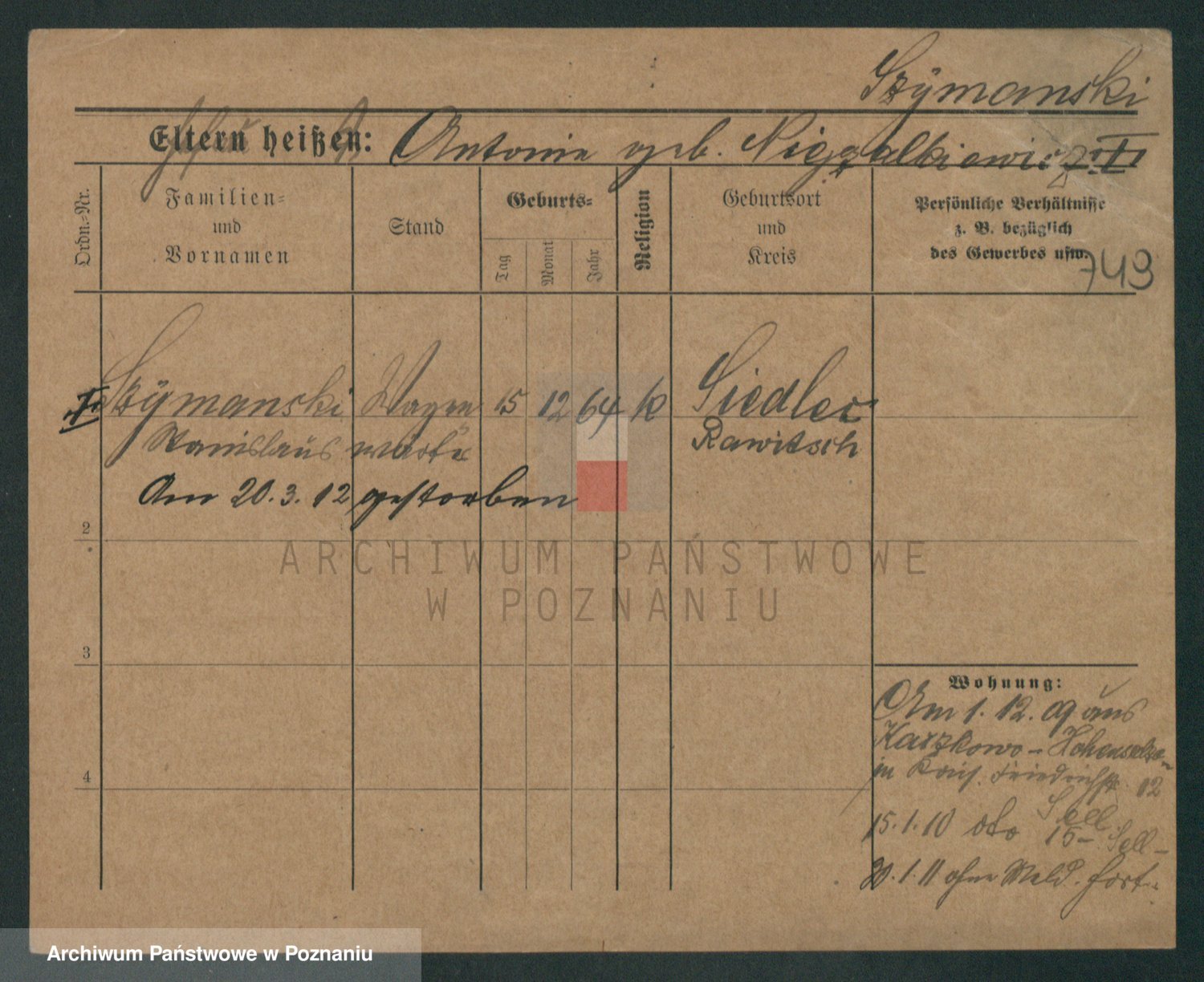 Szymański z d. Jarzyna, brak imienia