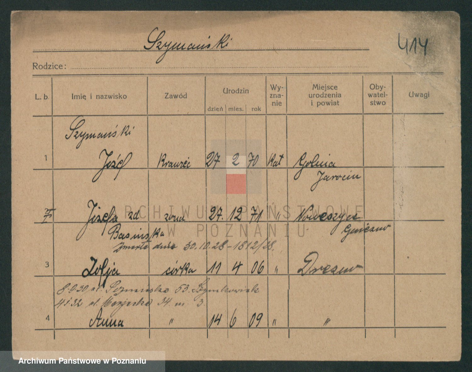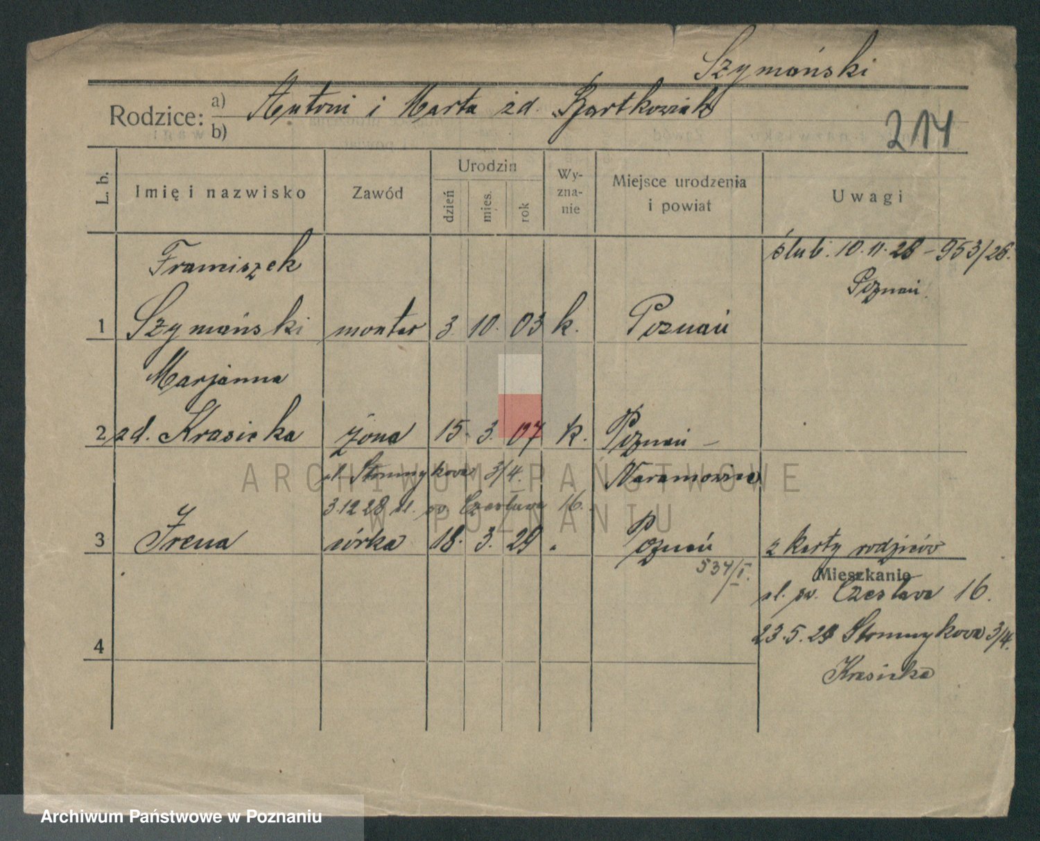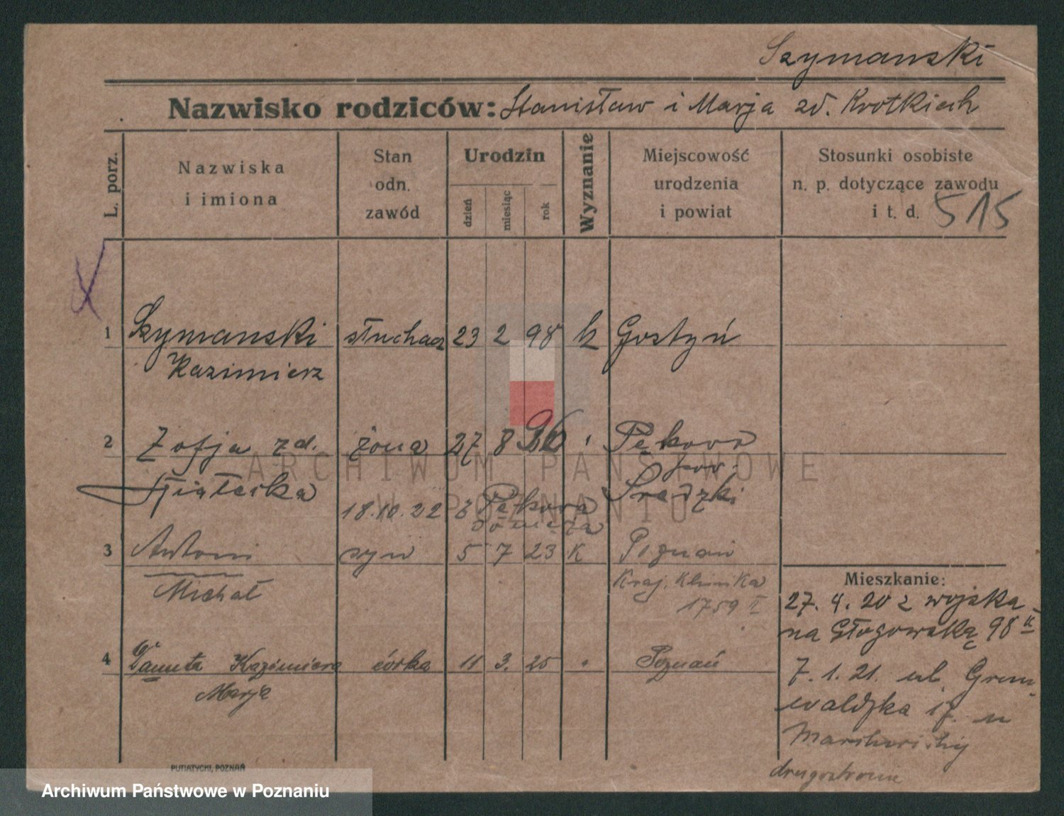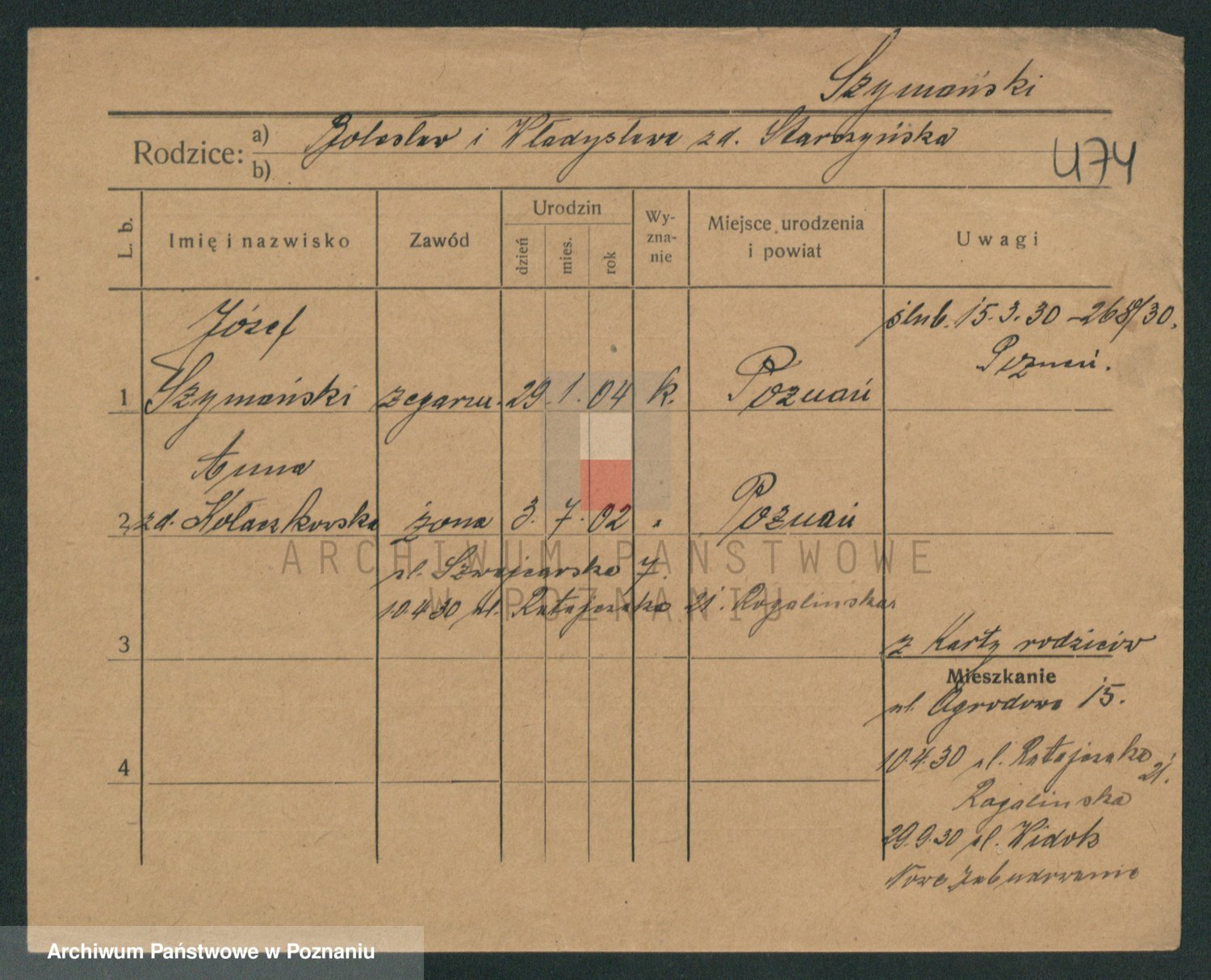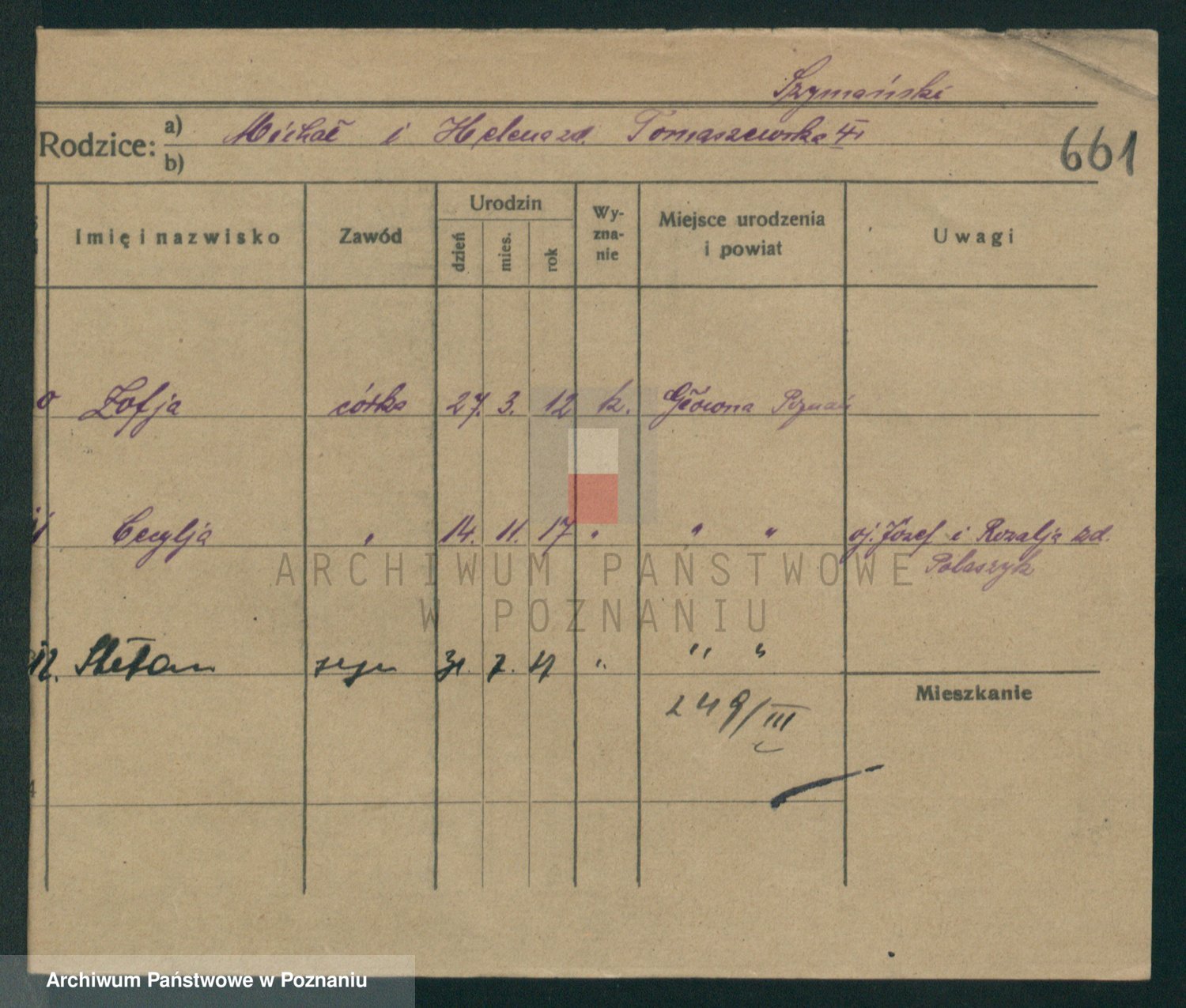 Szymański z d. Jarzyna, brak imienia