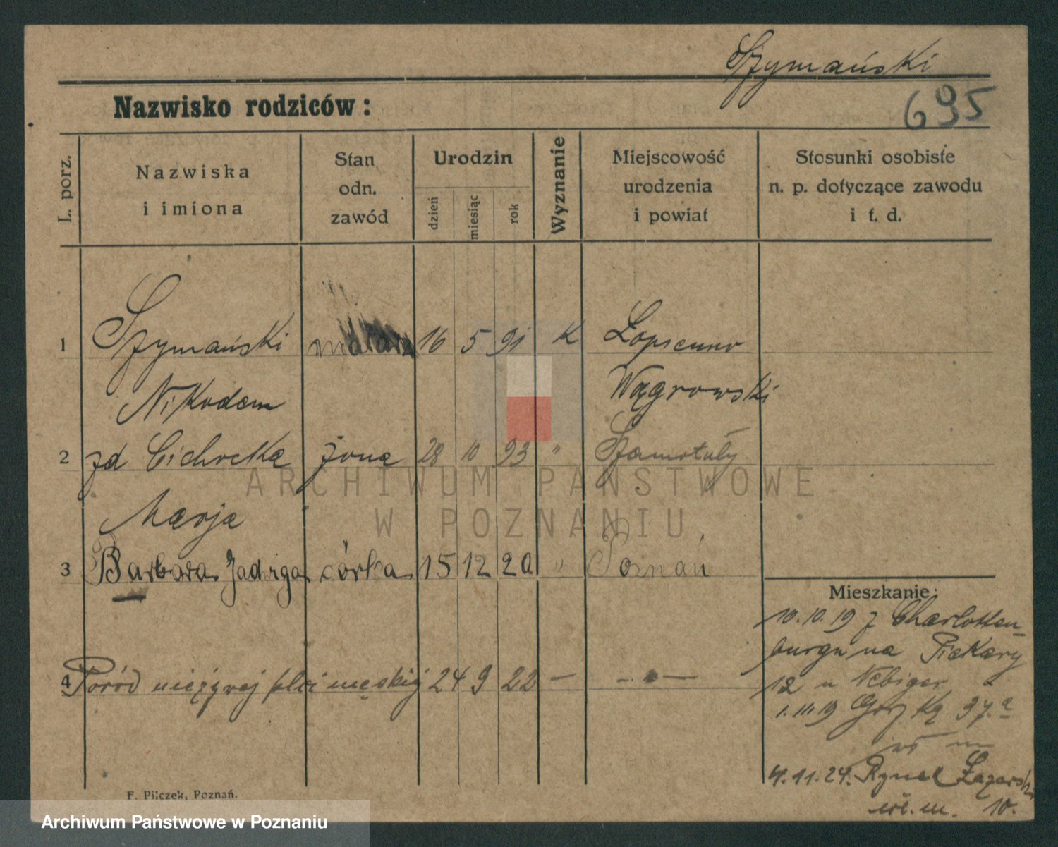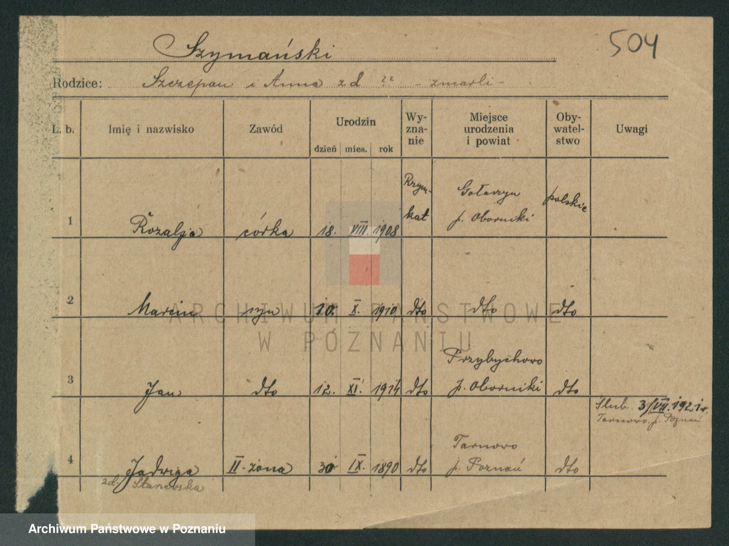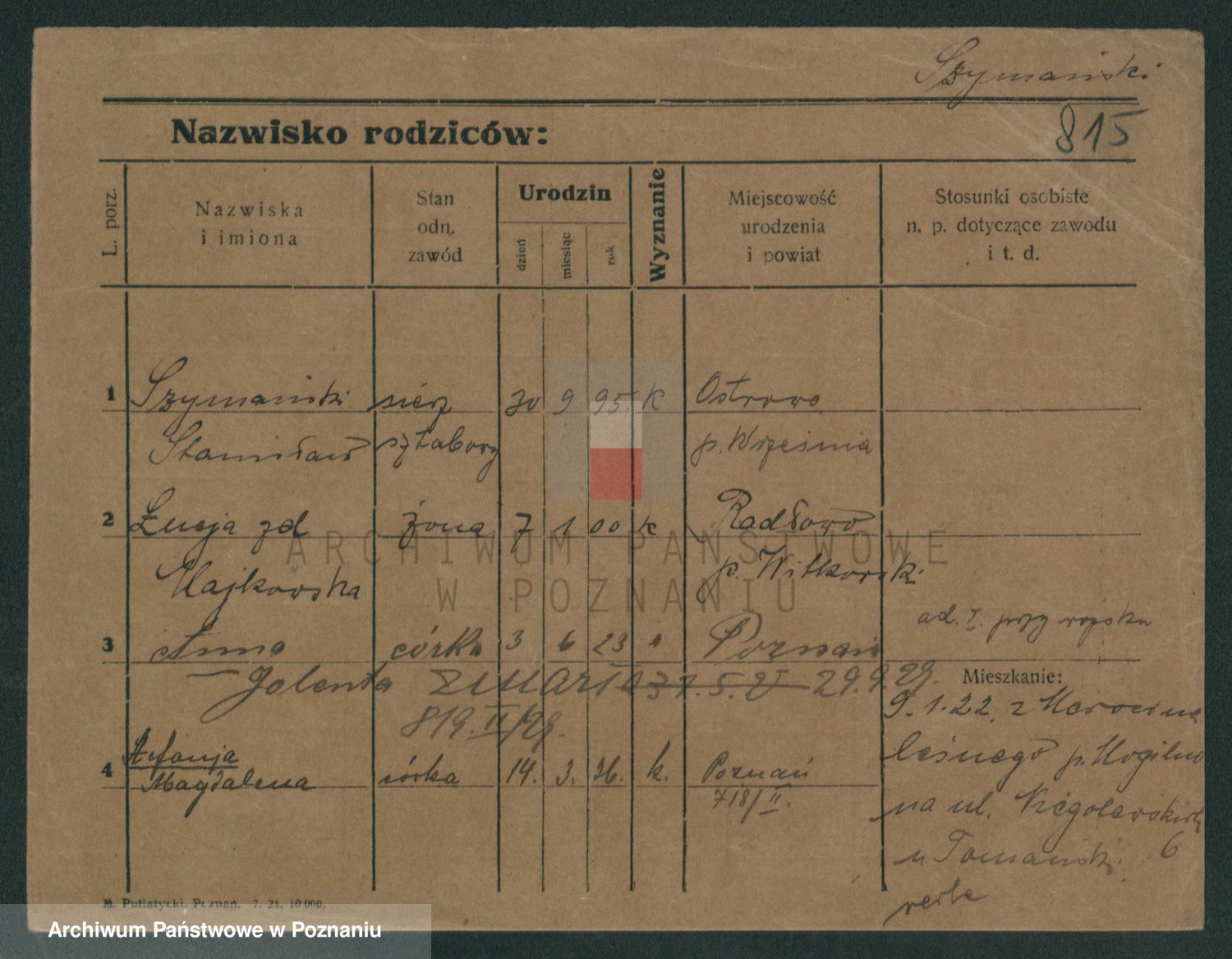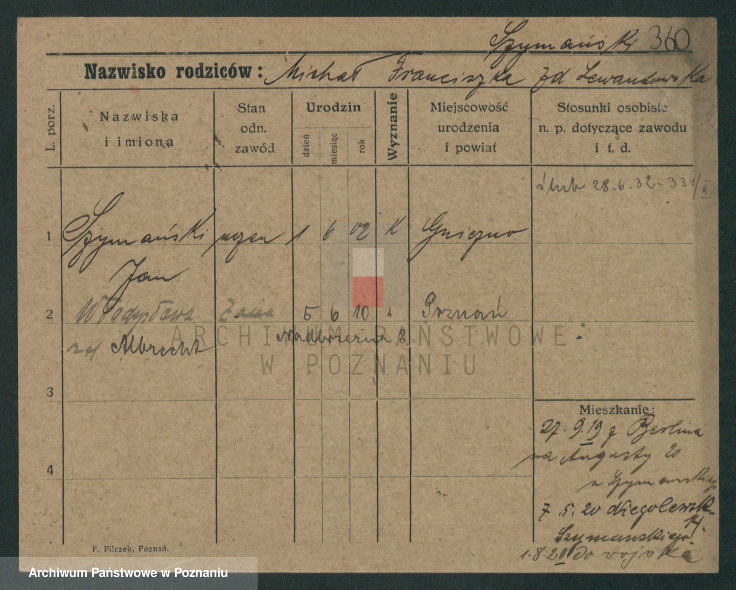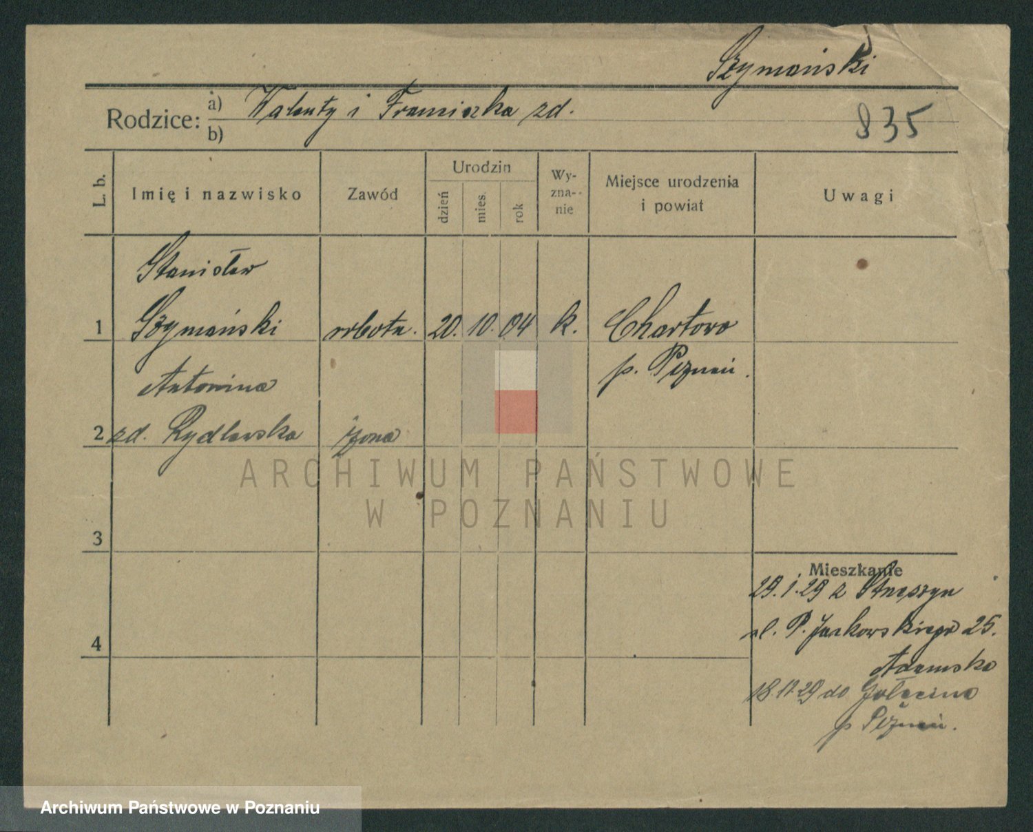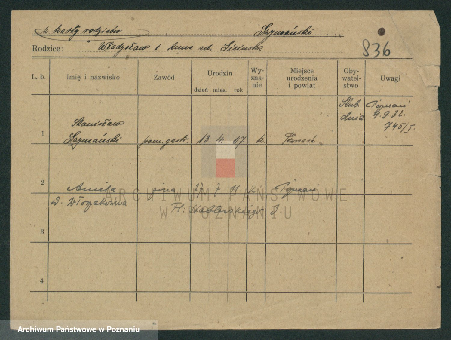Szymański z d. Jarzyna, brak imienia