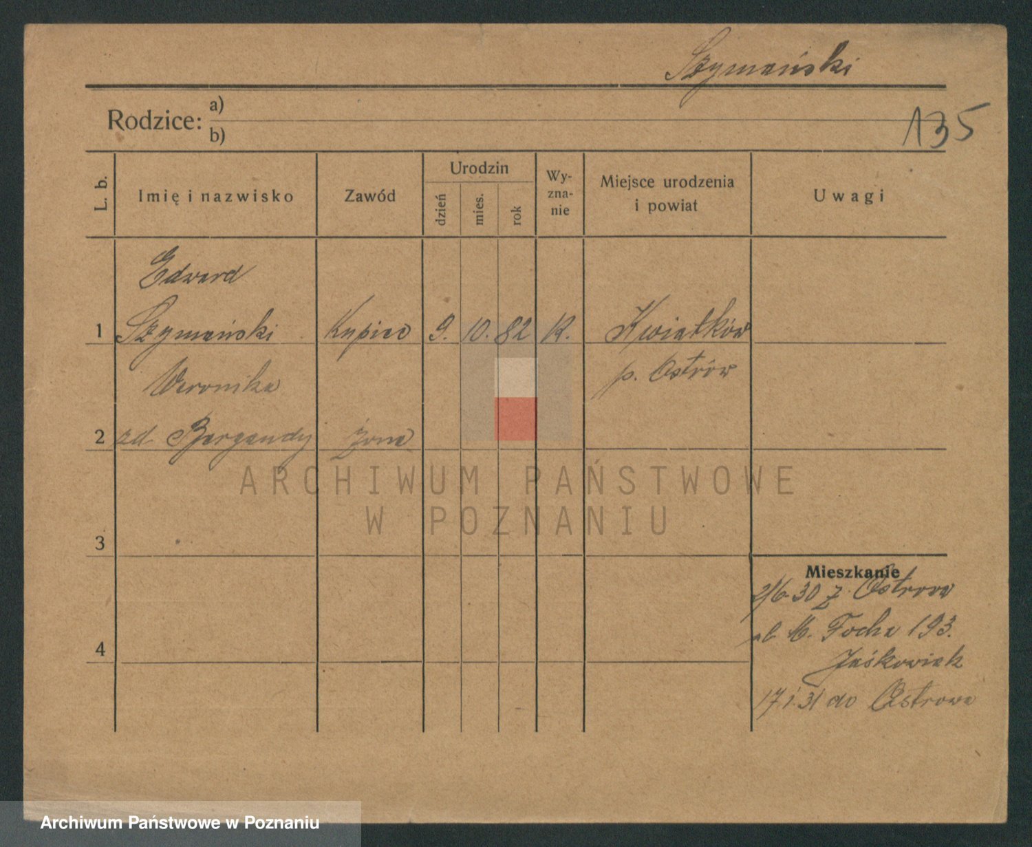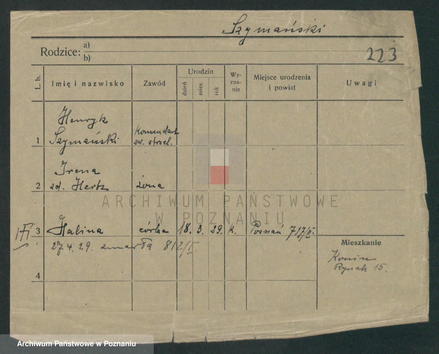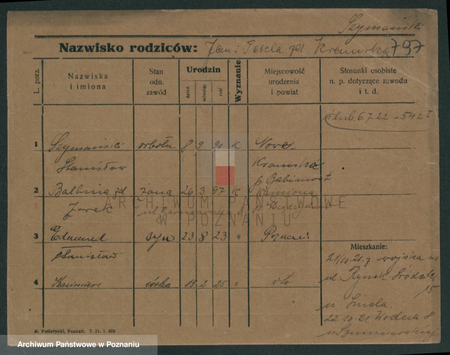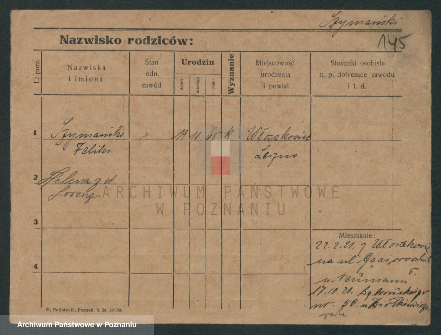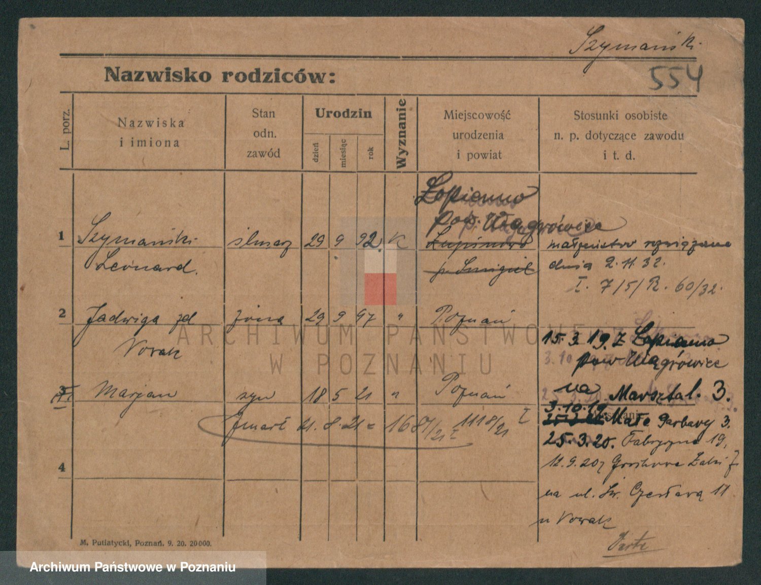 Szymański z d. Jarzyna, brak imienia