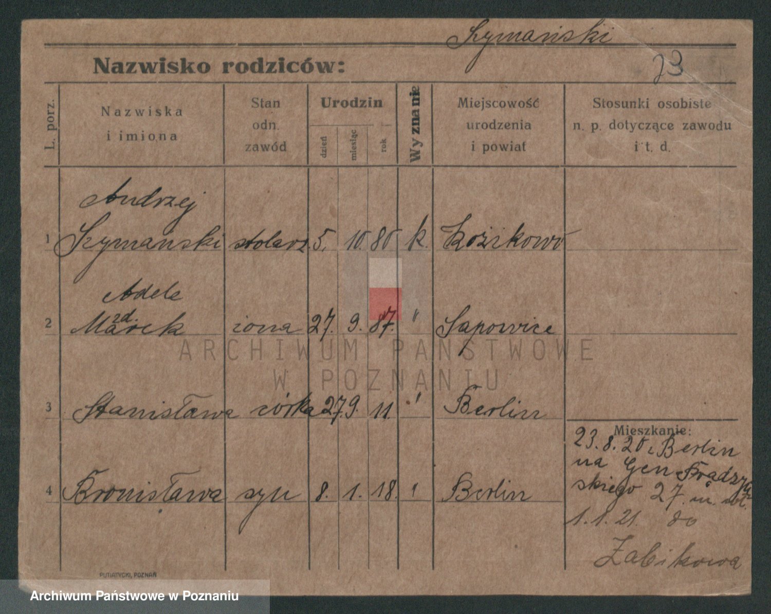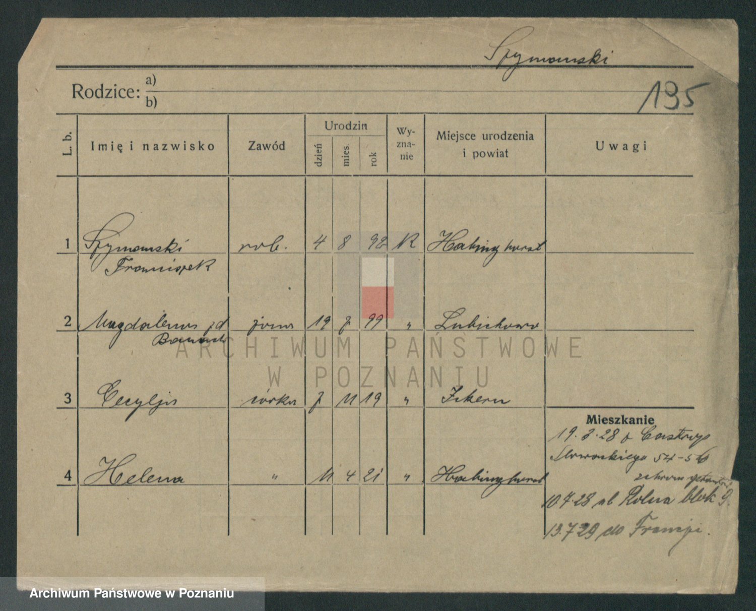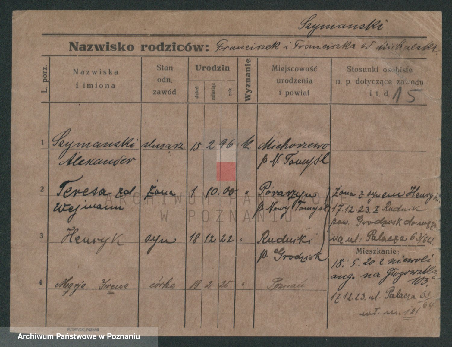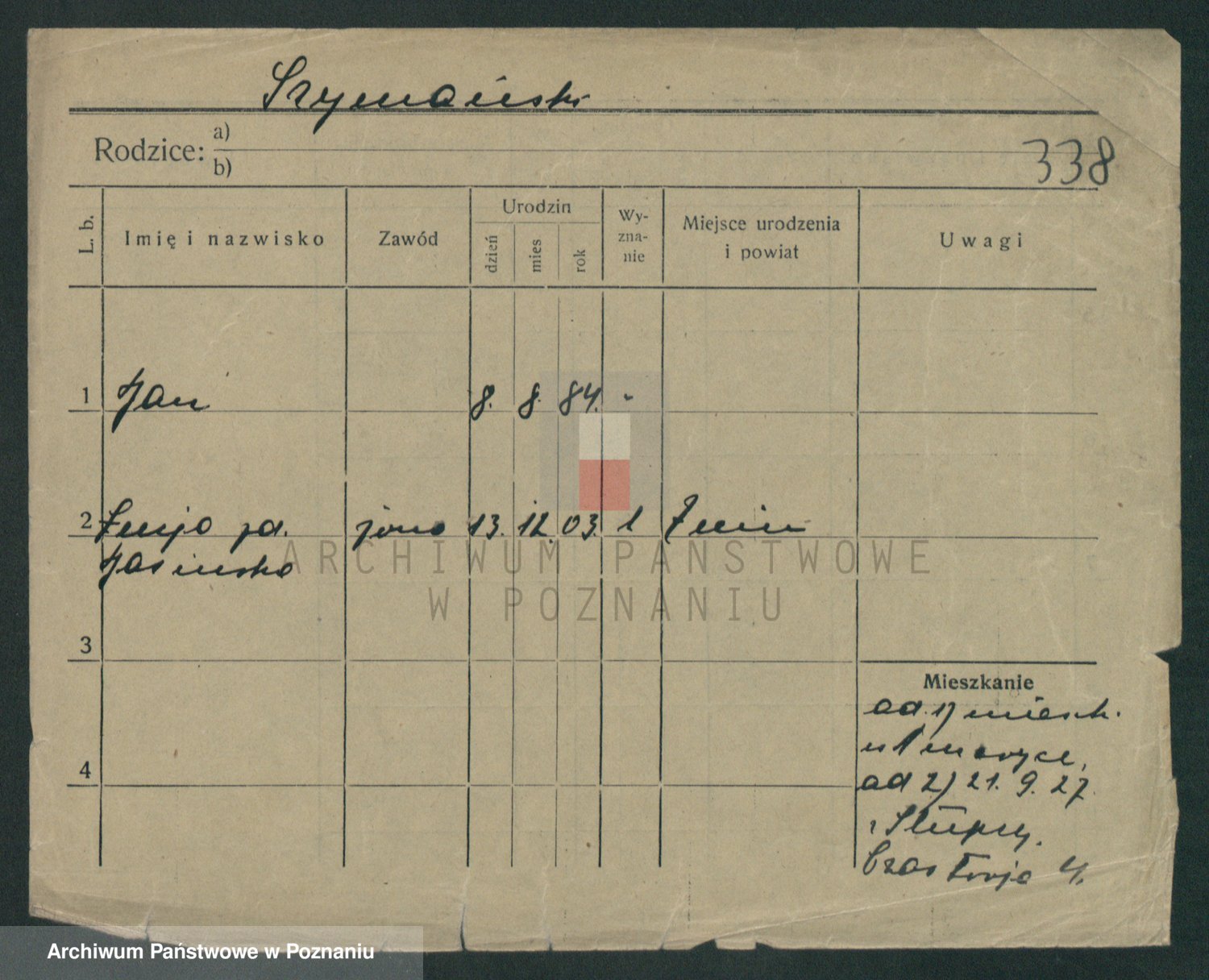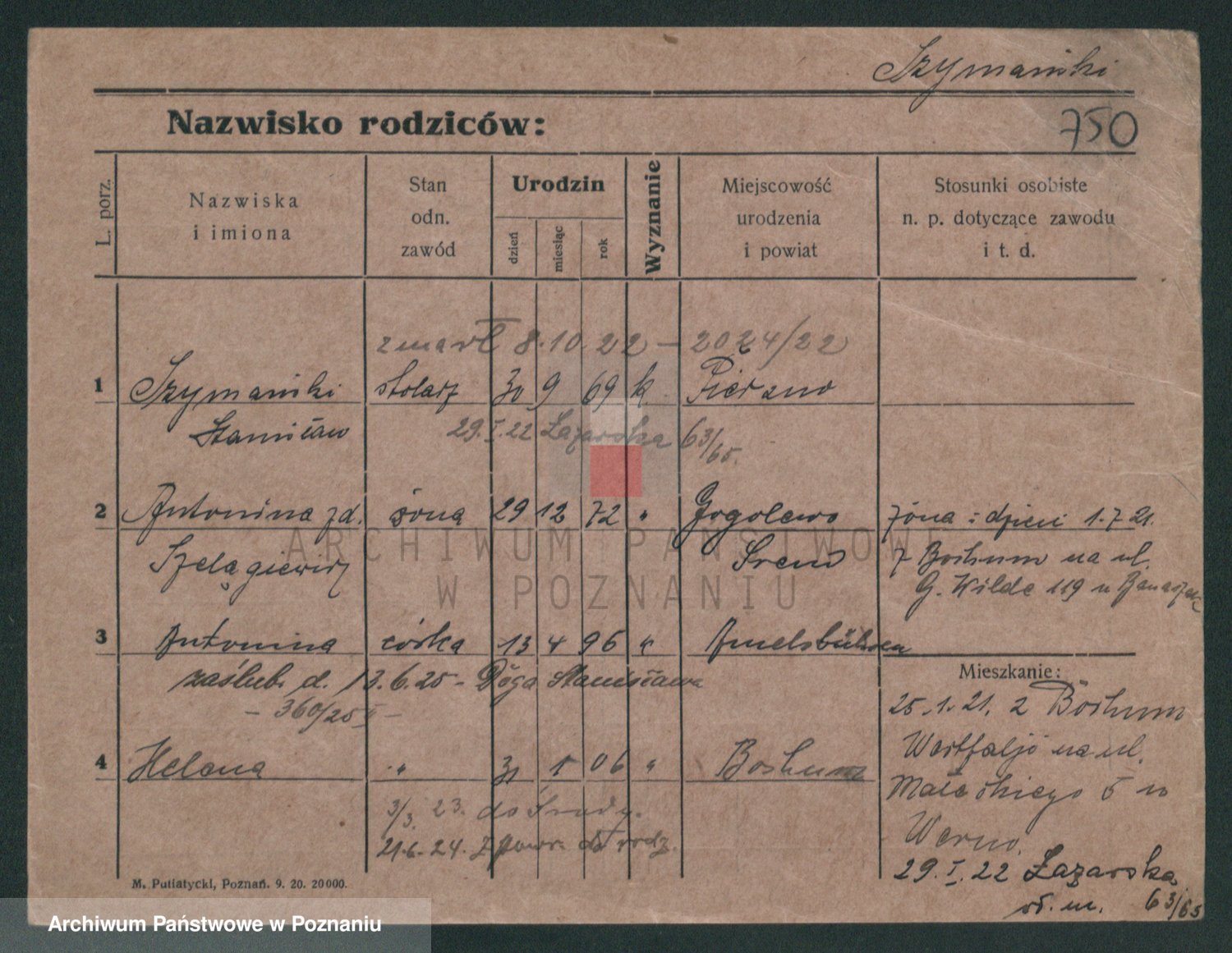 Szymański z d. Jarzyna, brak imienia