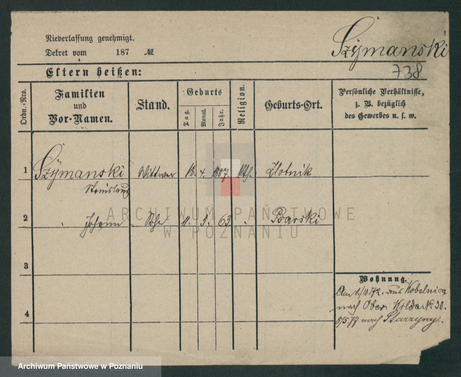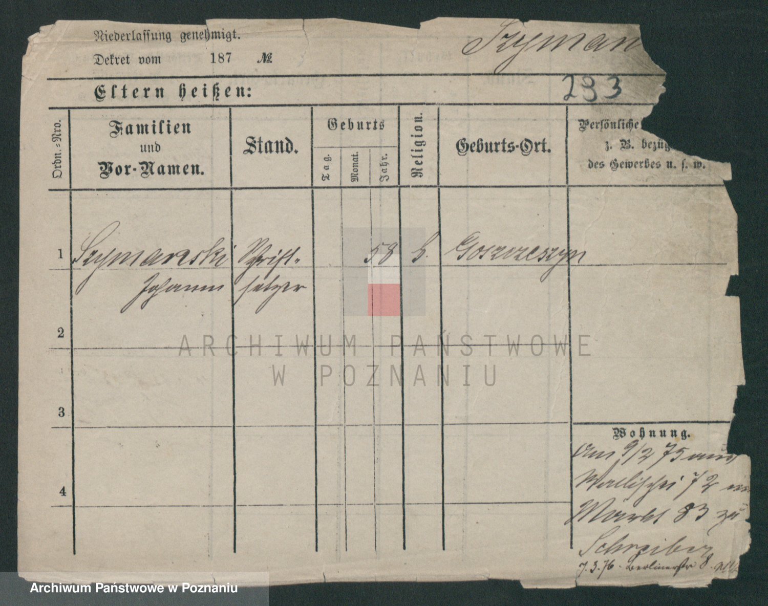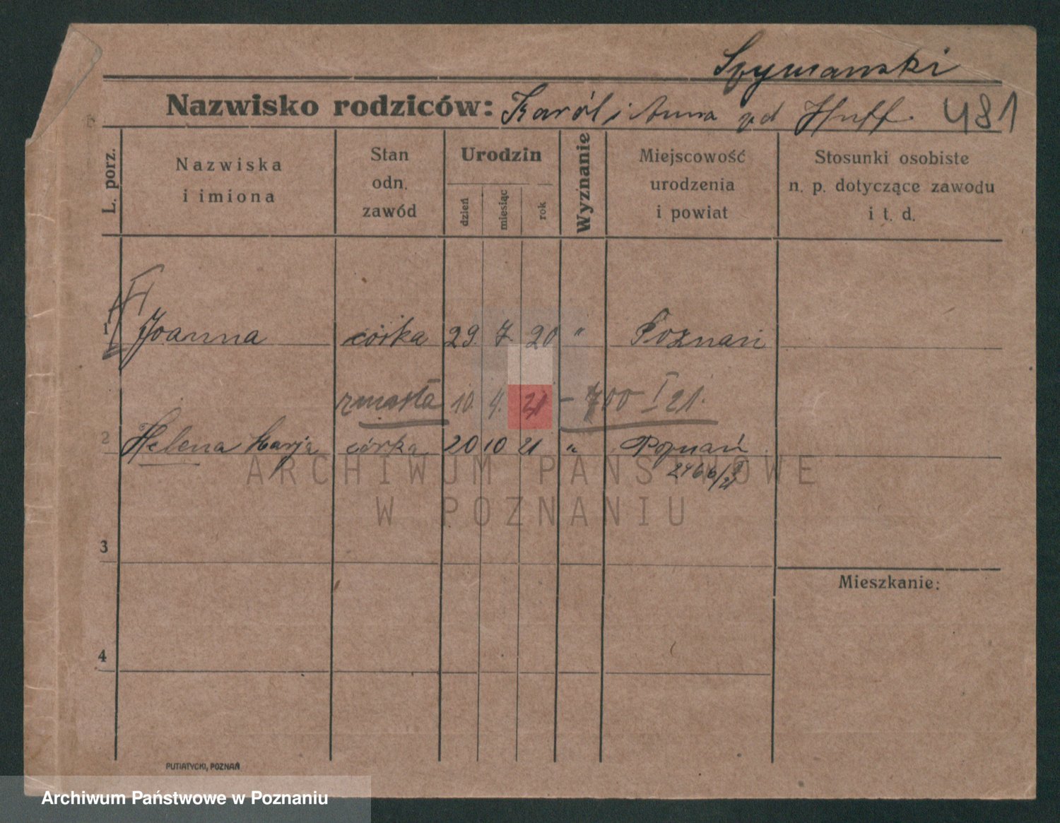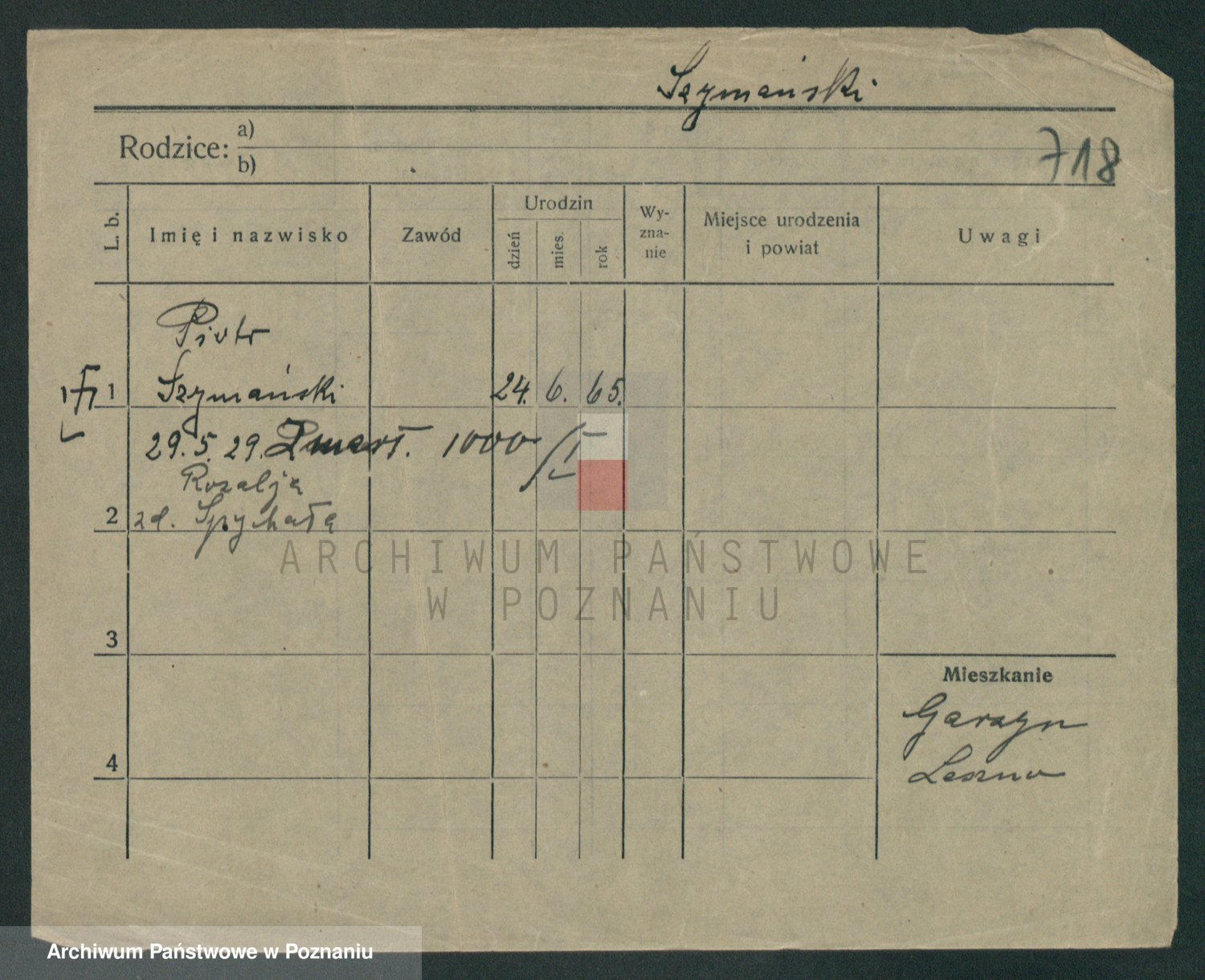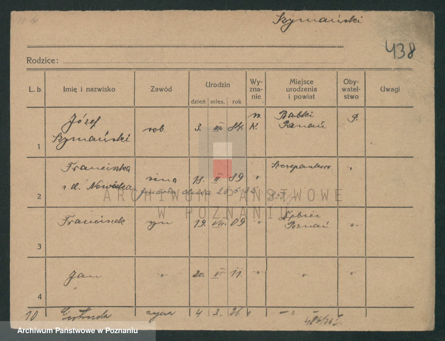 Szymański z d. Jarzyna, brak imienia