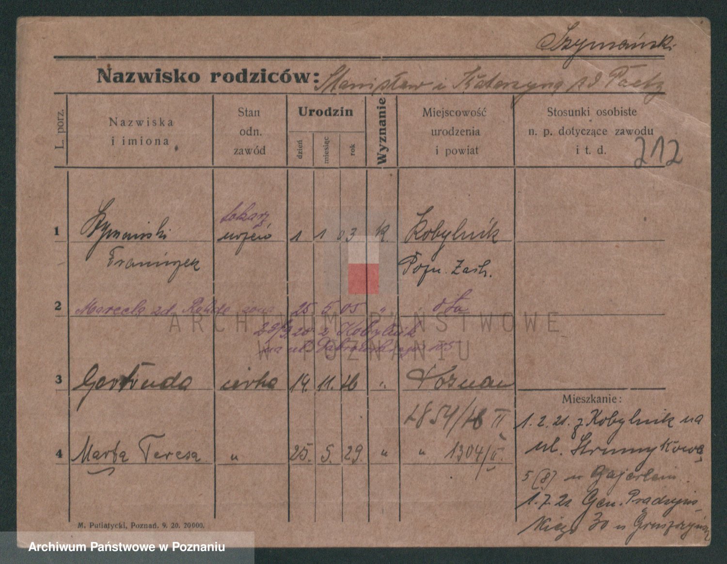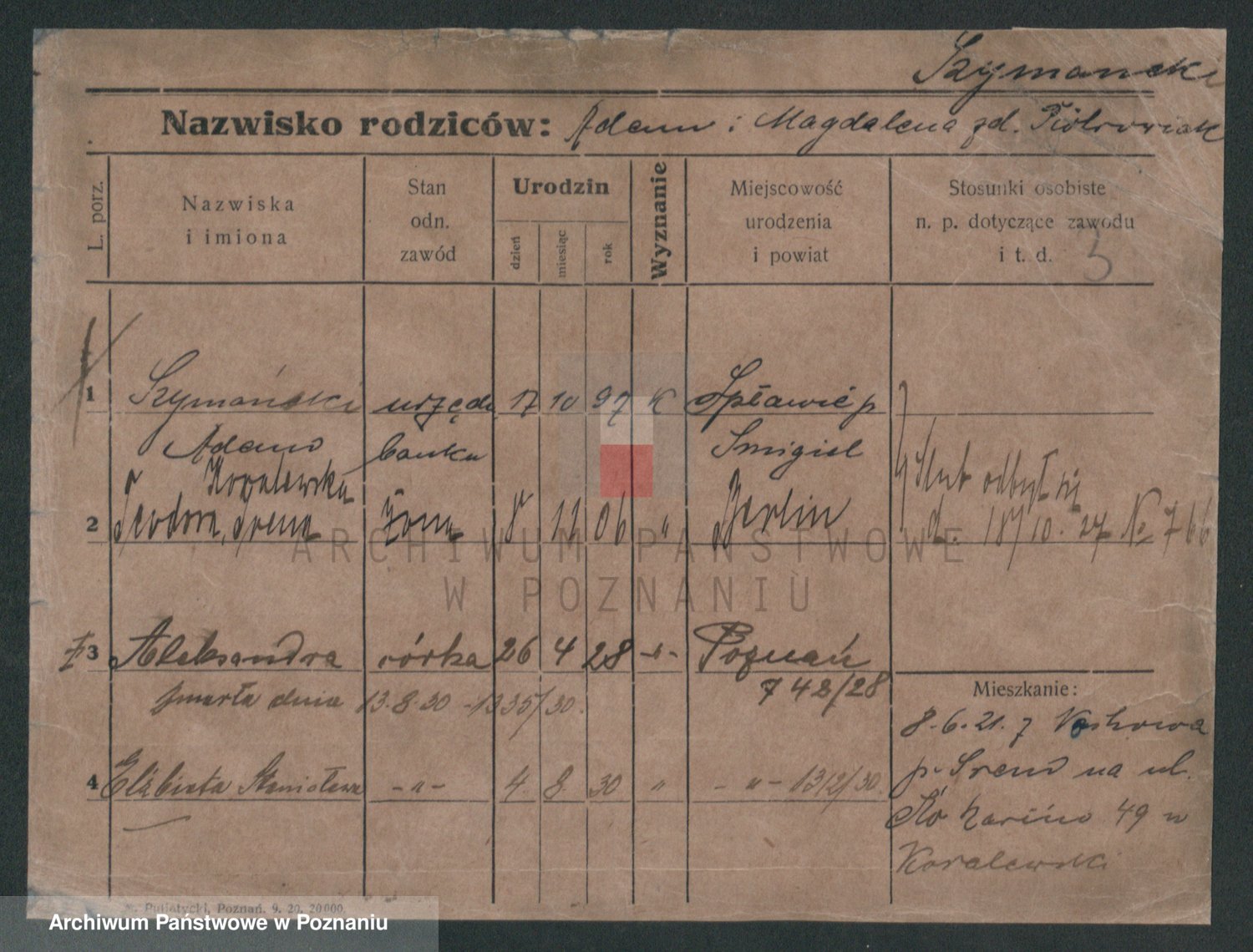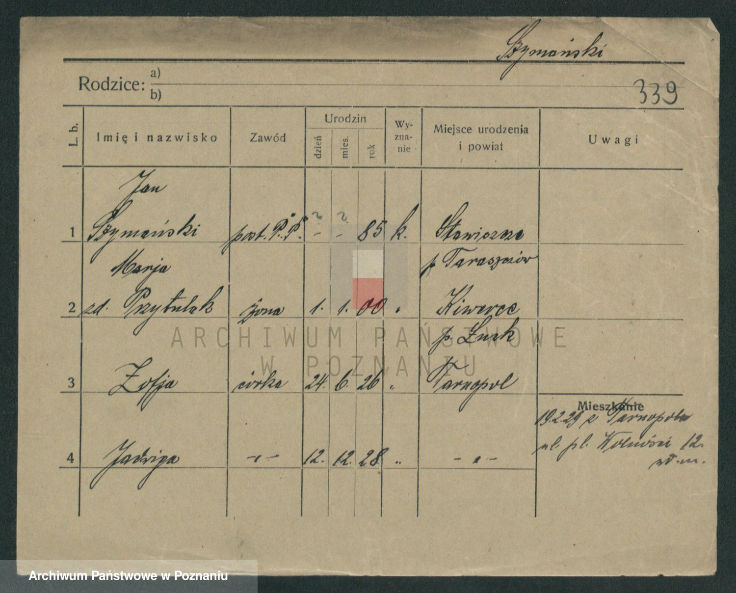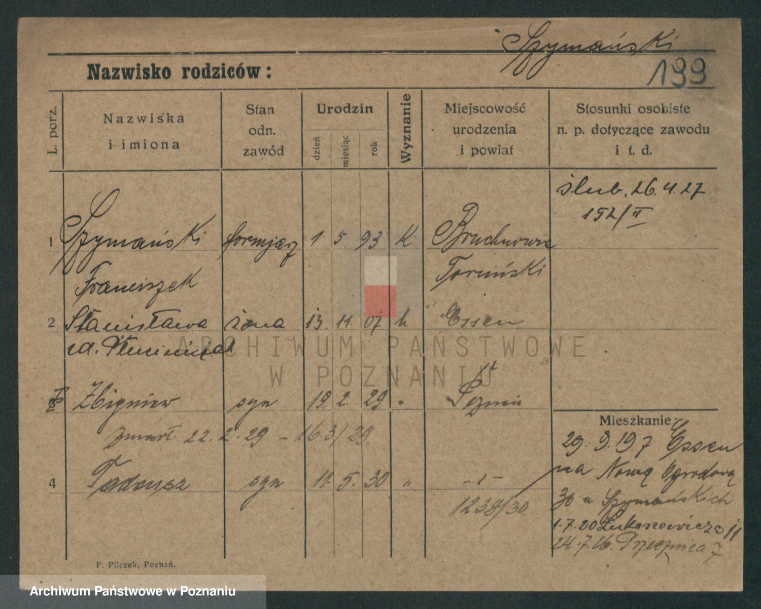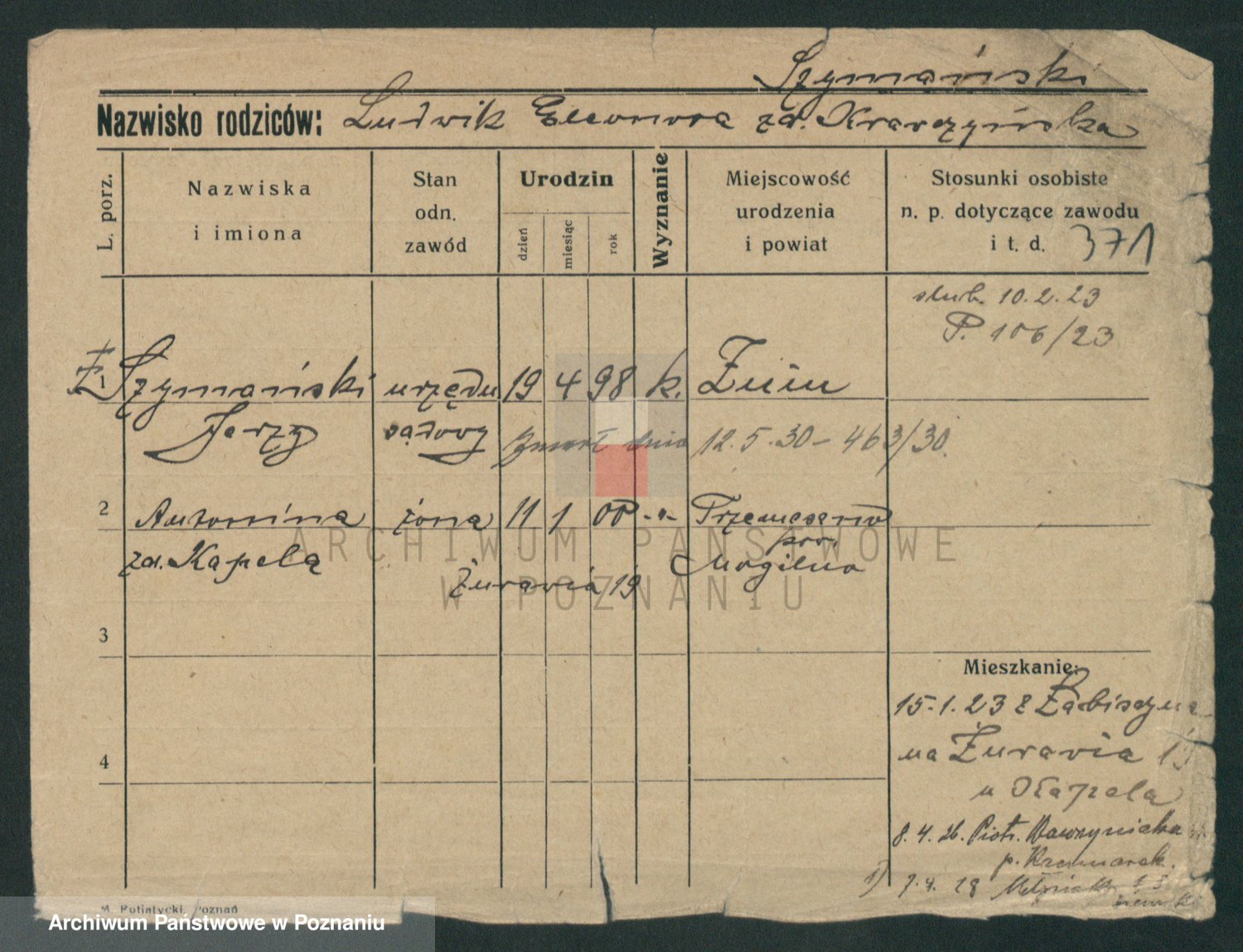 Szymański z d. Jarzyna, brak imienia