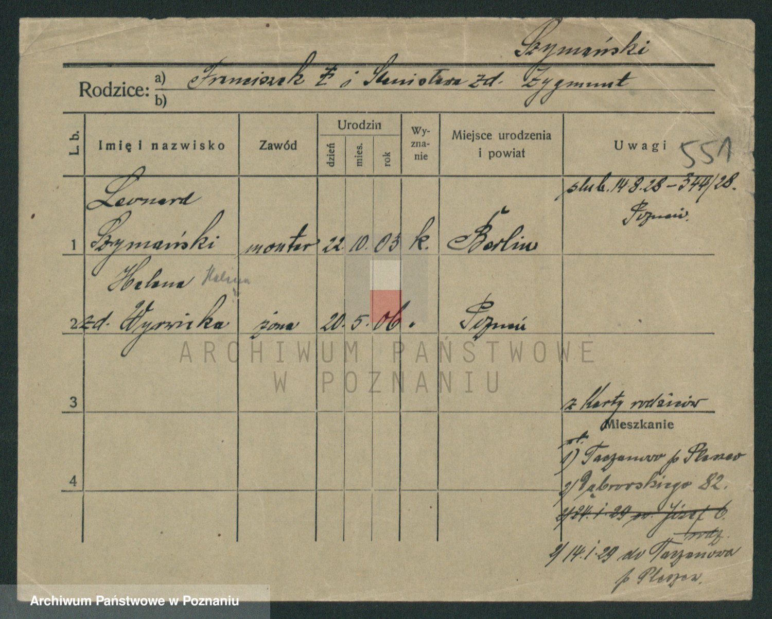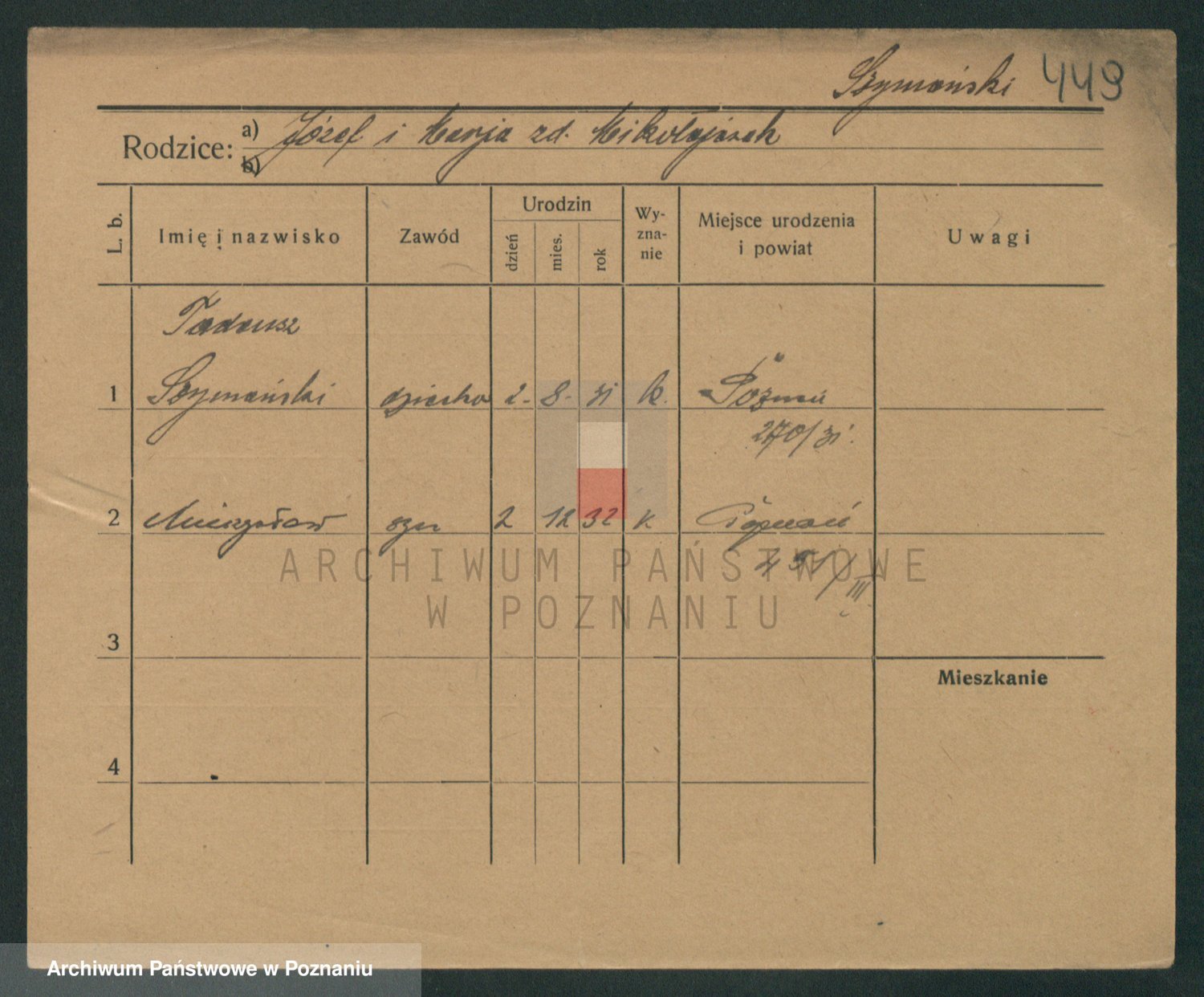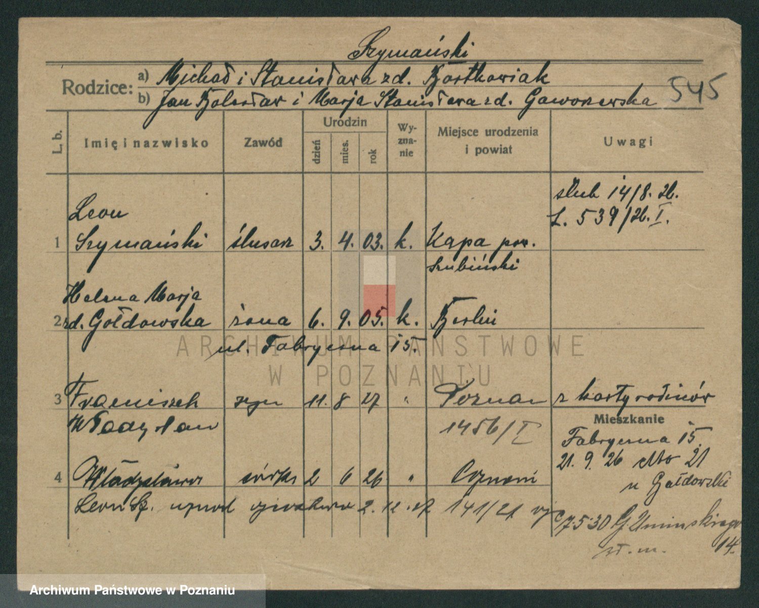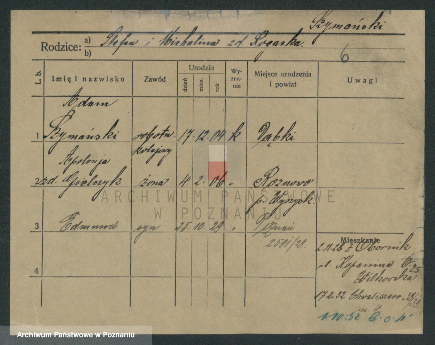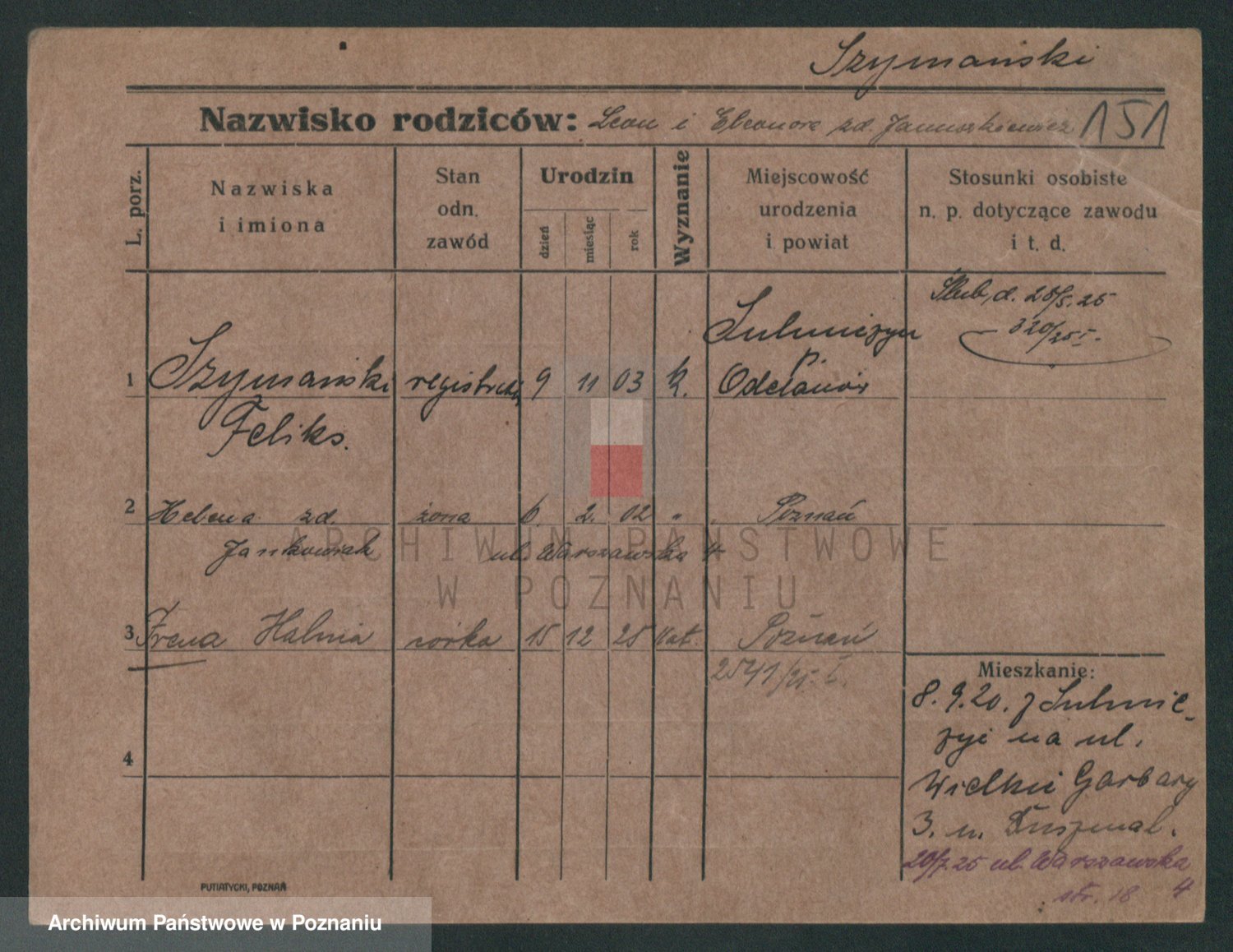 Szymański z d. Jarzyna, brak imienia