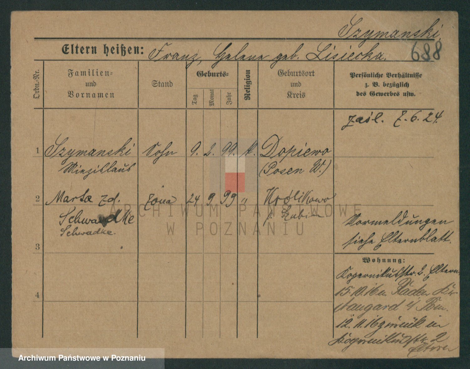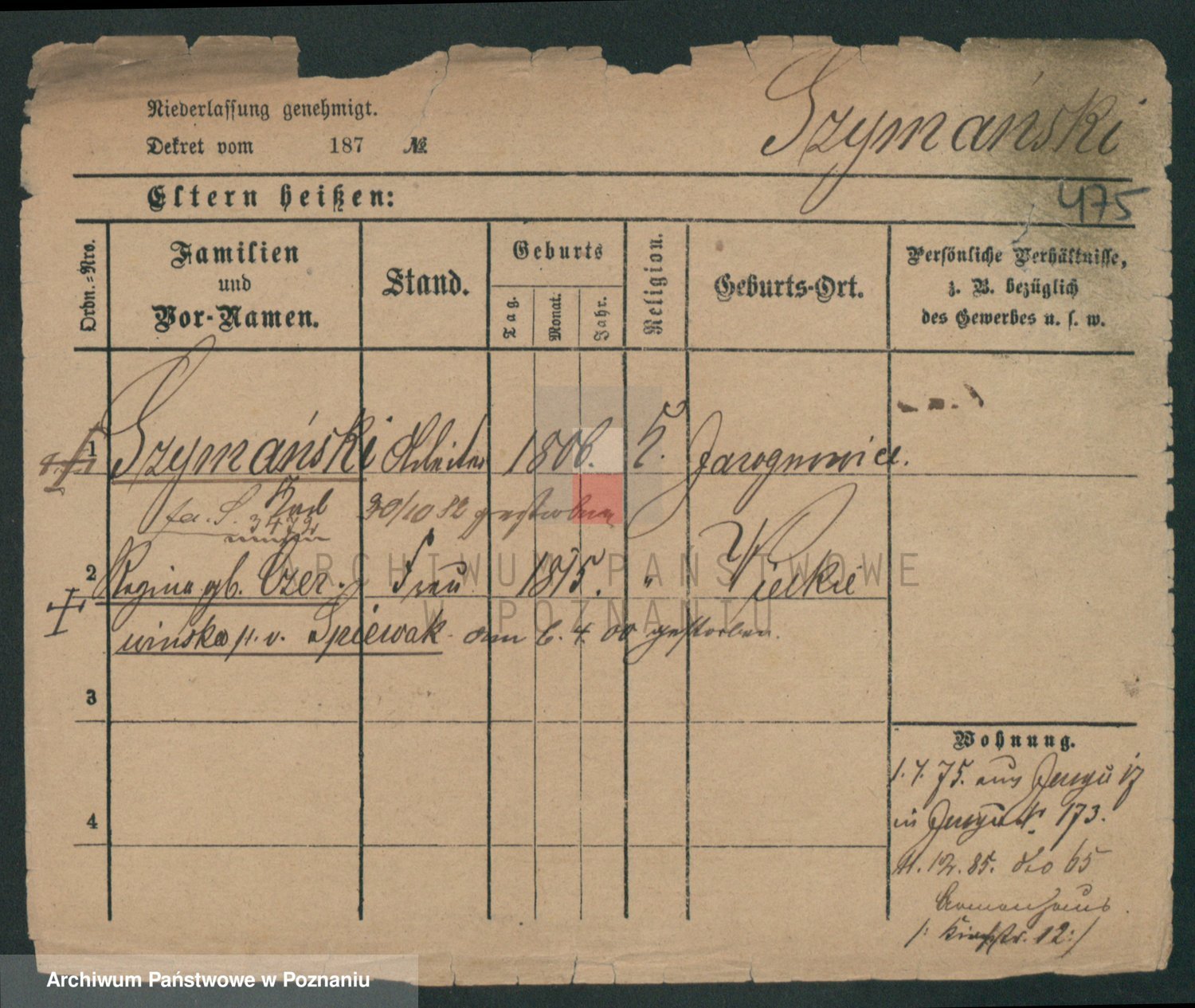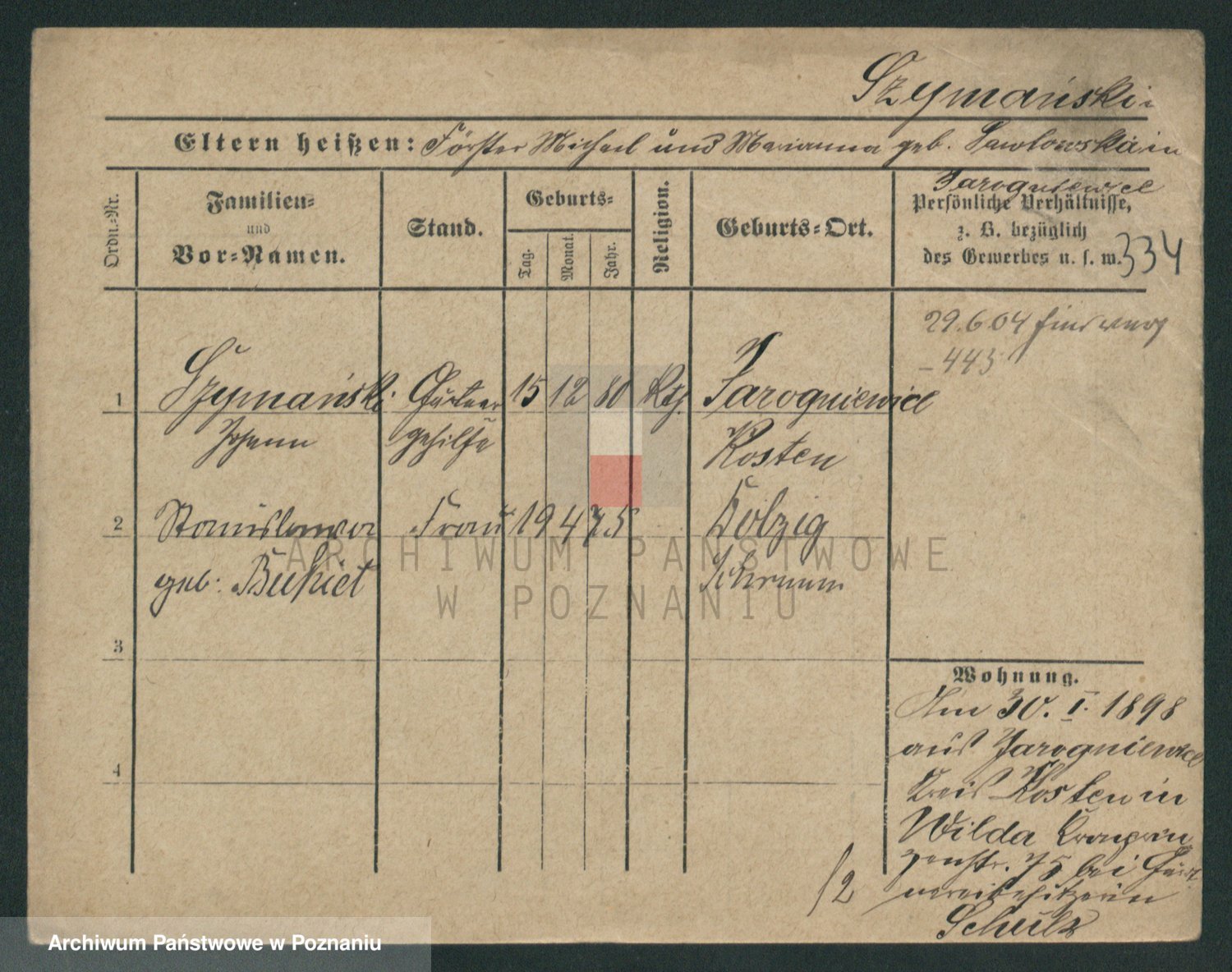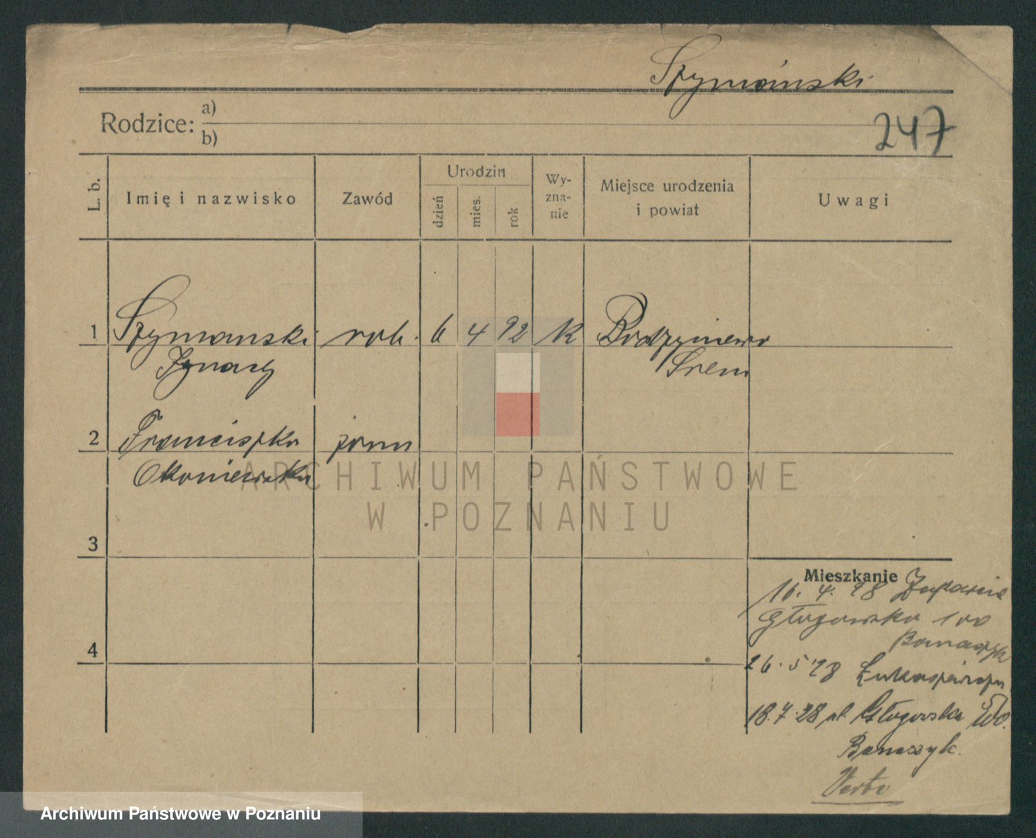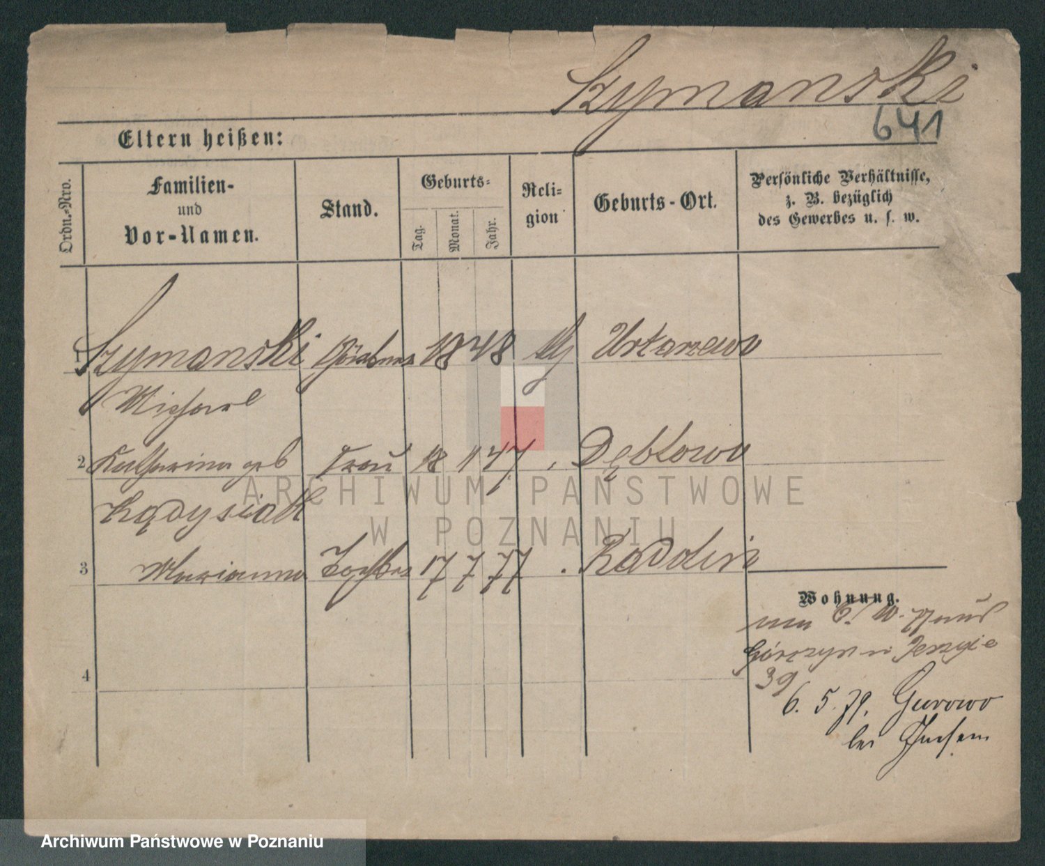 Szymański z d. Jarzyna, brak imienia