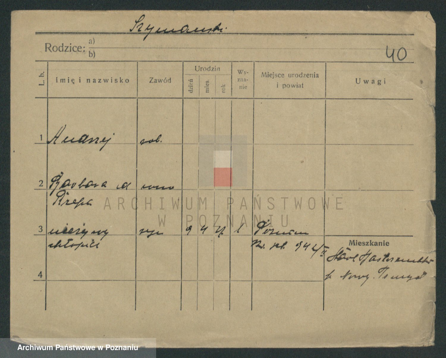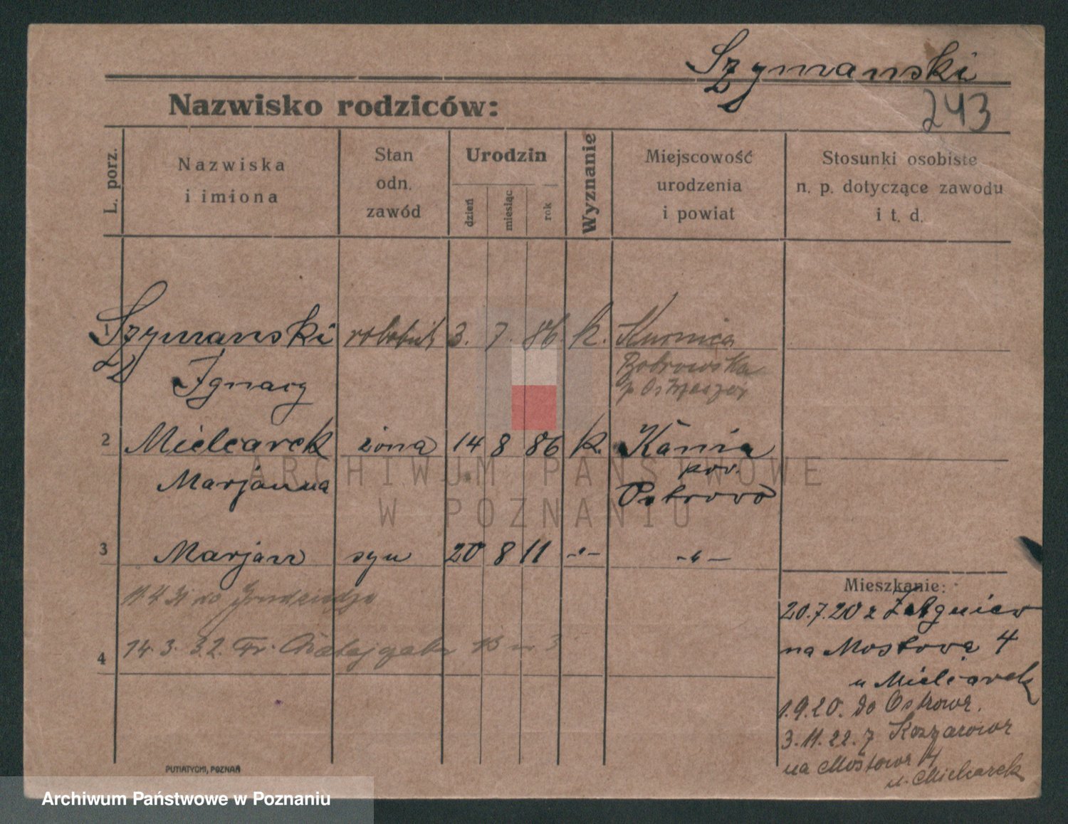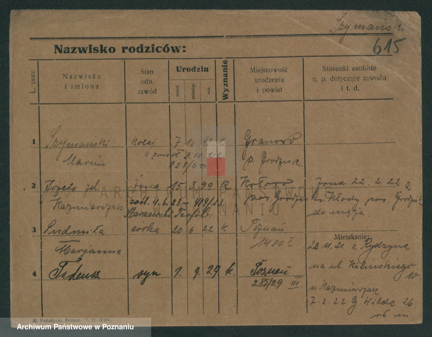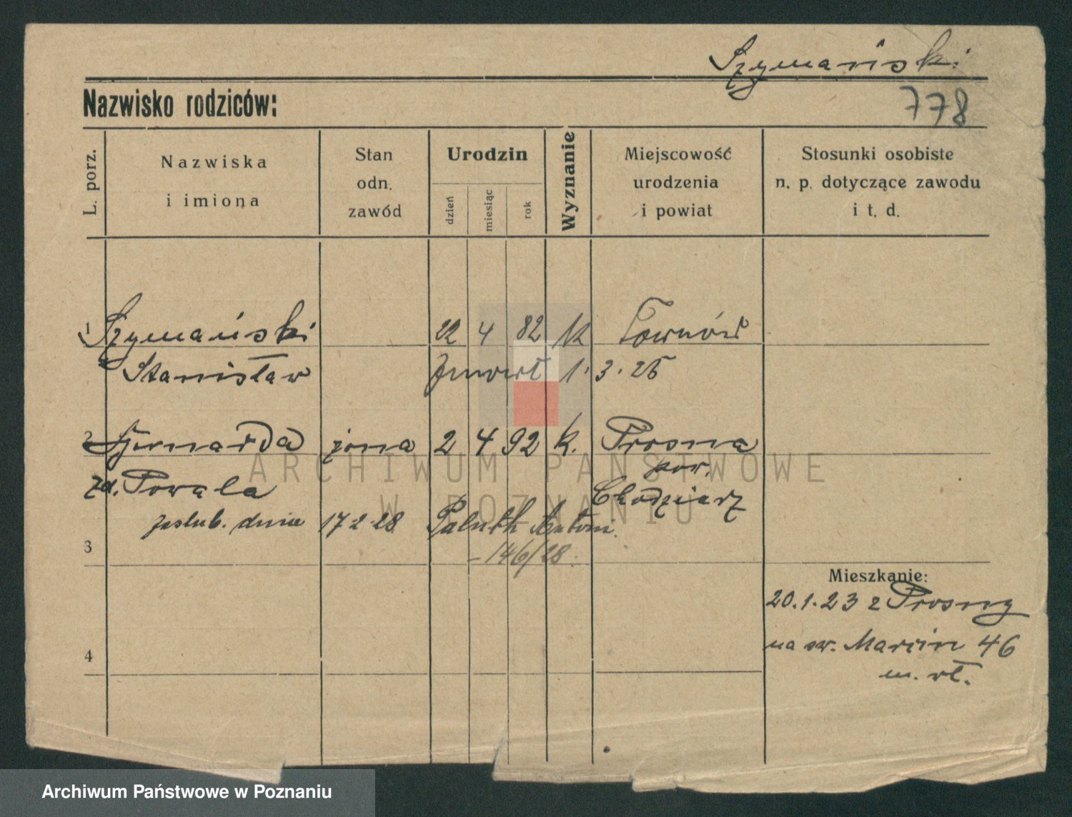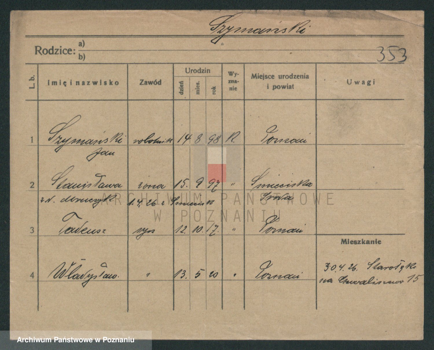 Szymański z d. Jarzyna, brak imienia