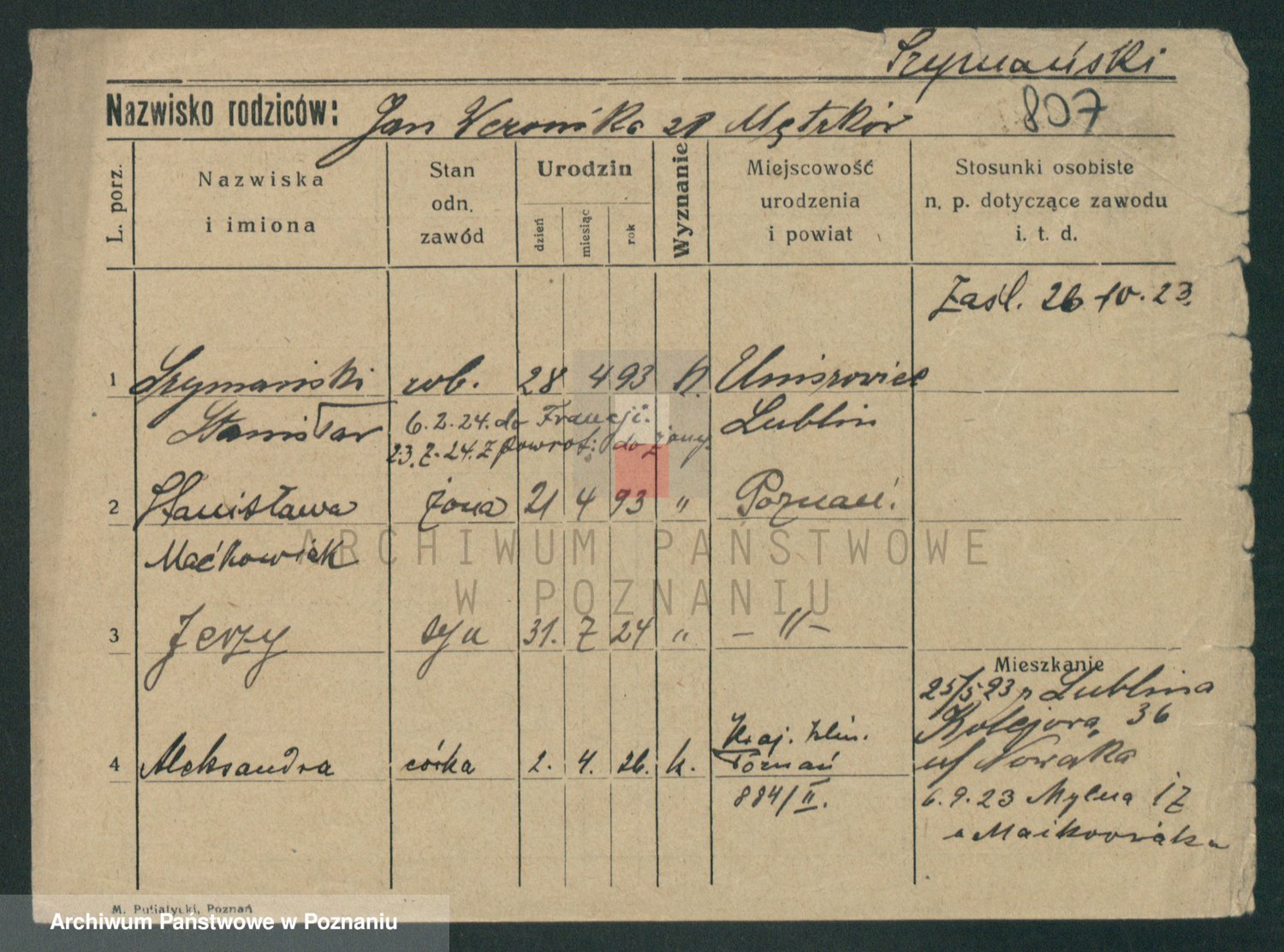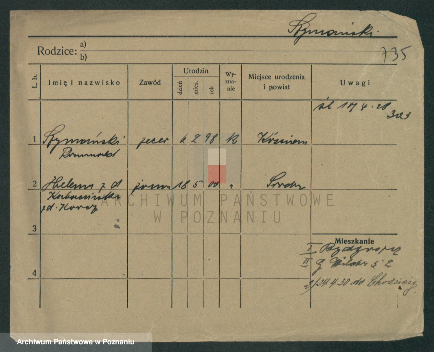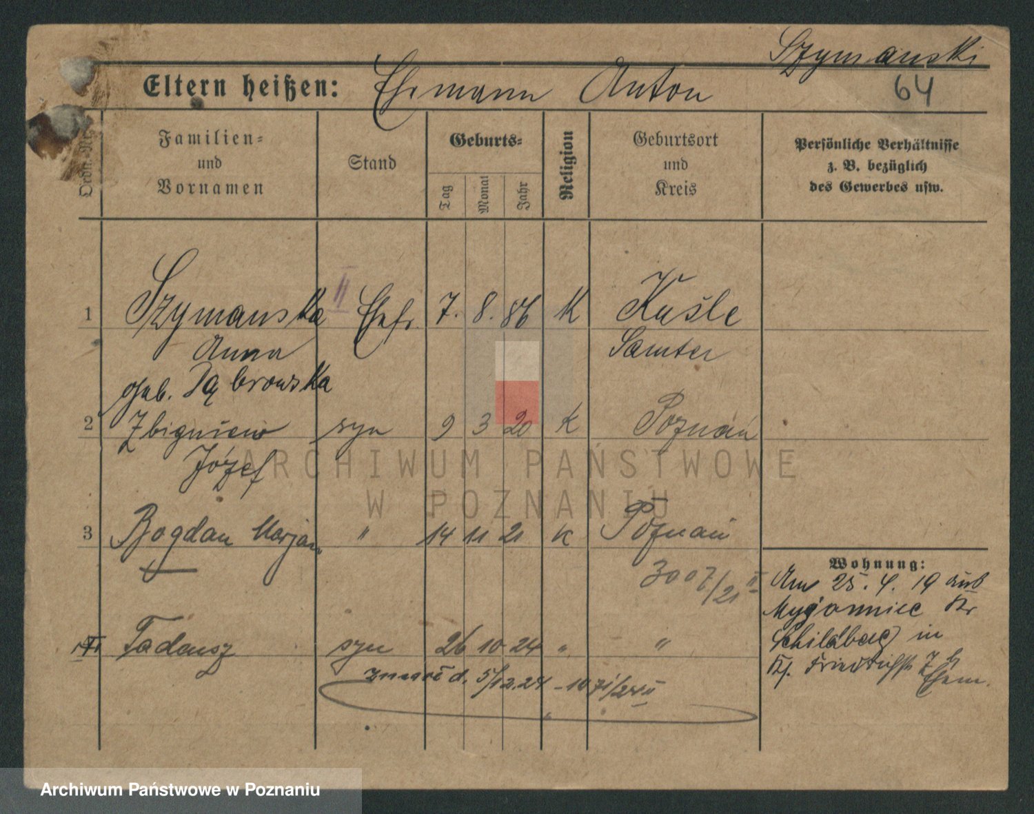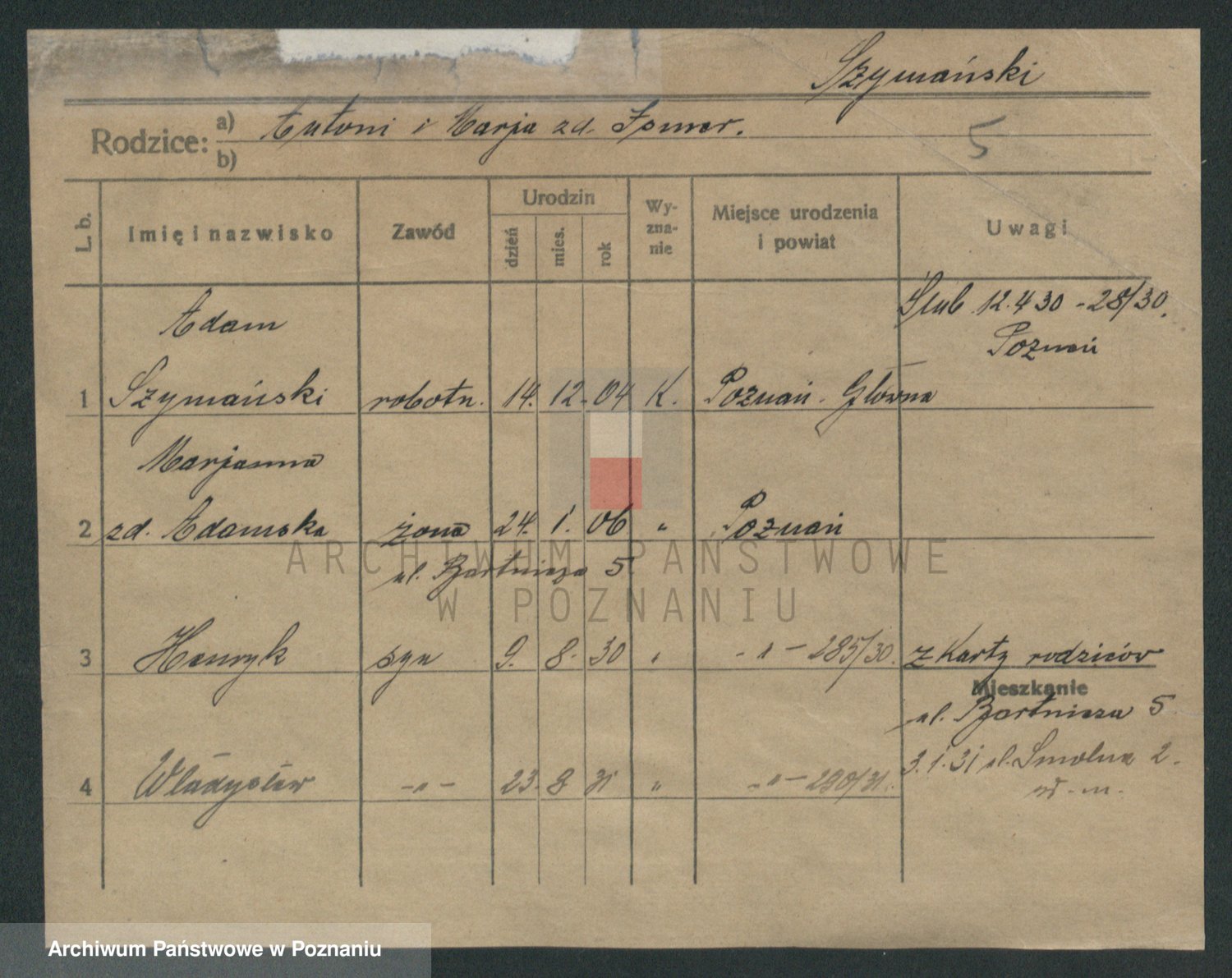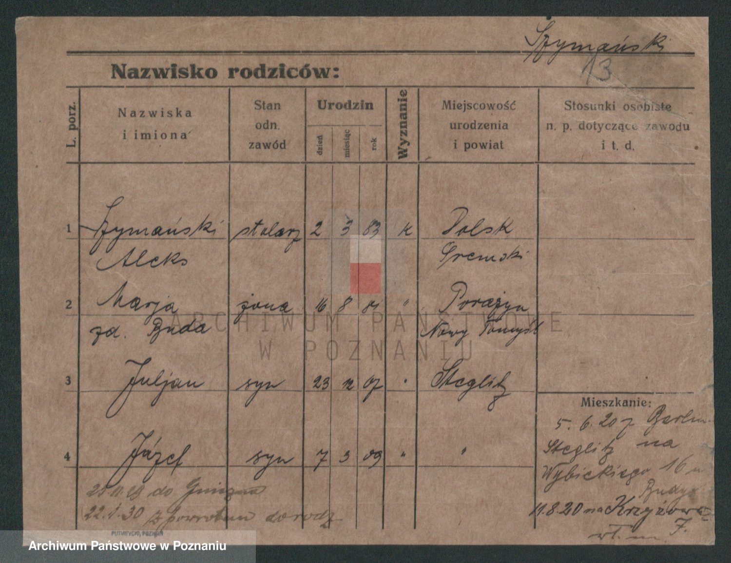 Szymański z d. Jarzyna, brak imienia
