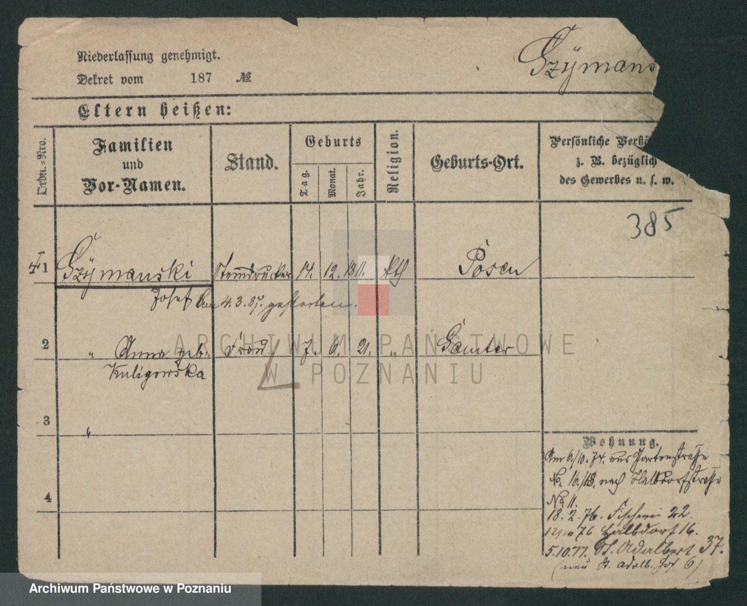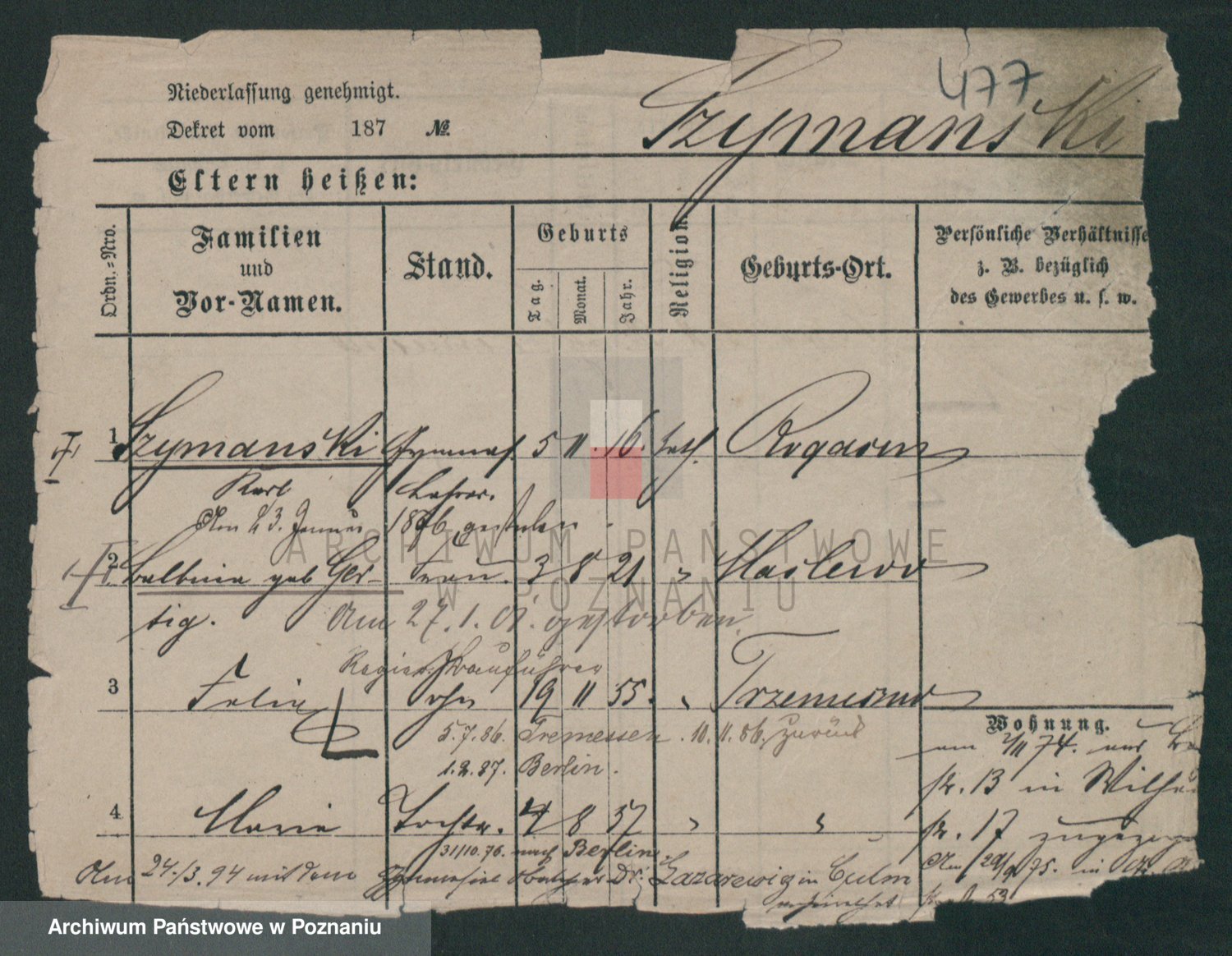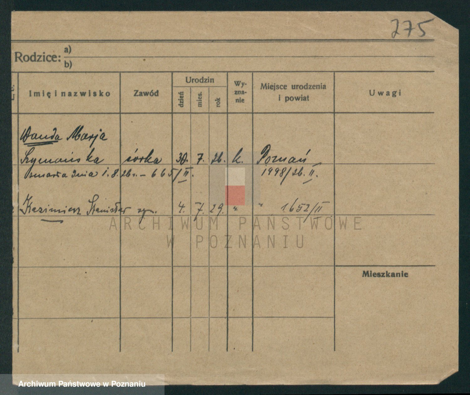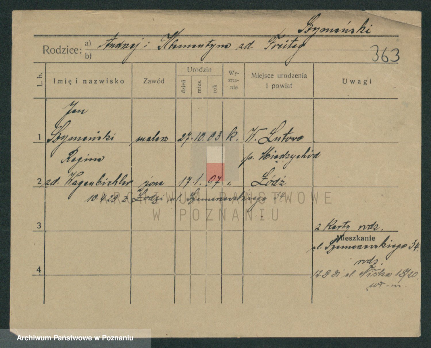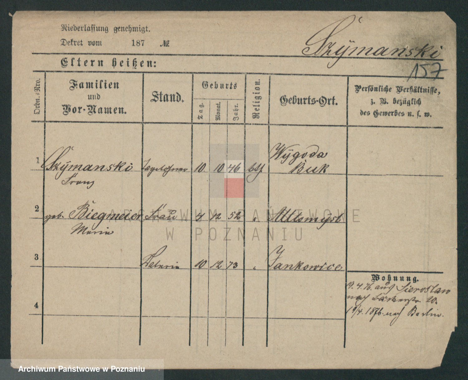 Szymański z d. Jarzyna, brak imienia