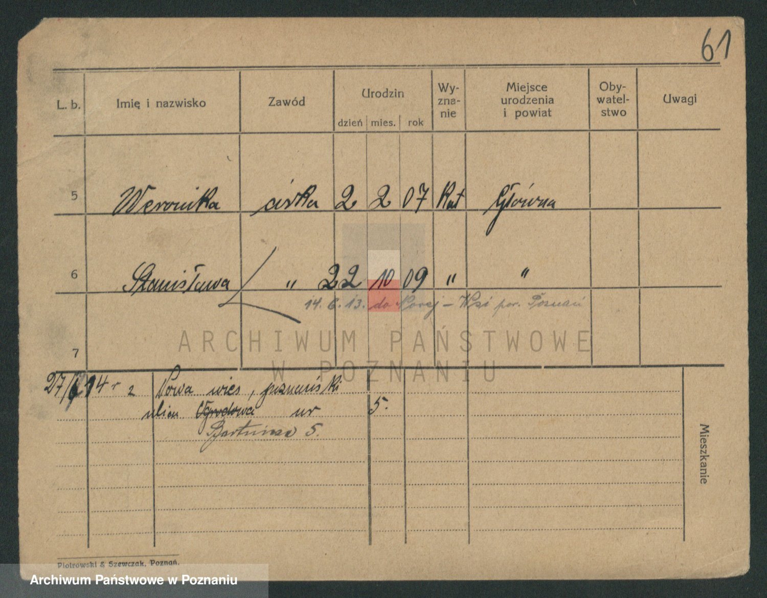 Szymanski z d. Stankowska, Zofja
