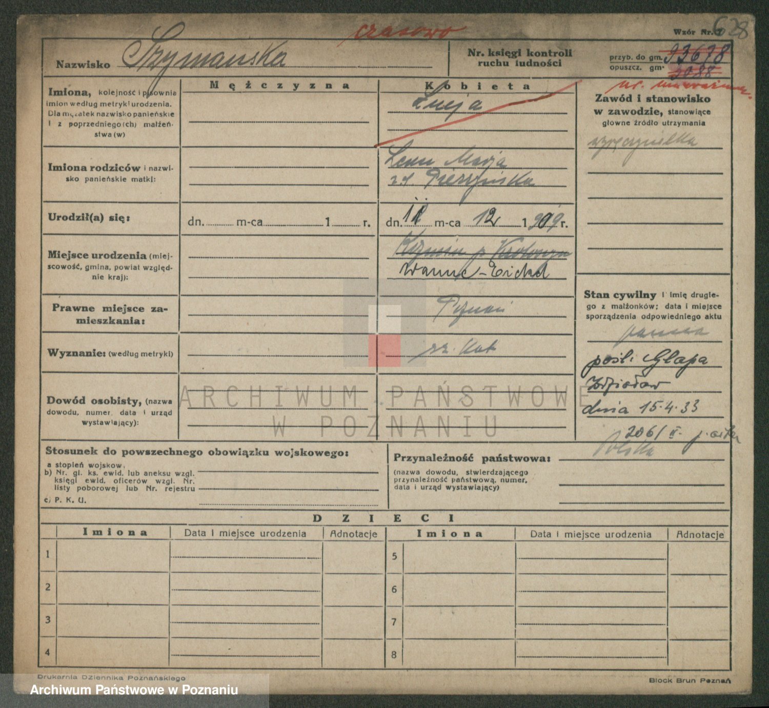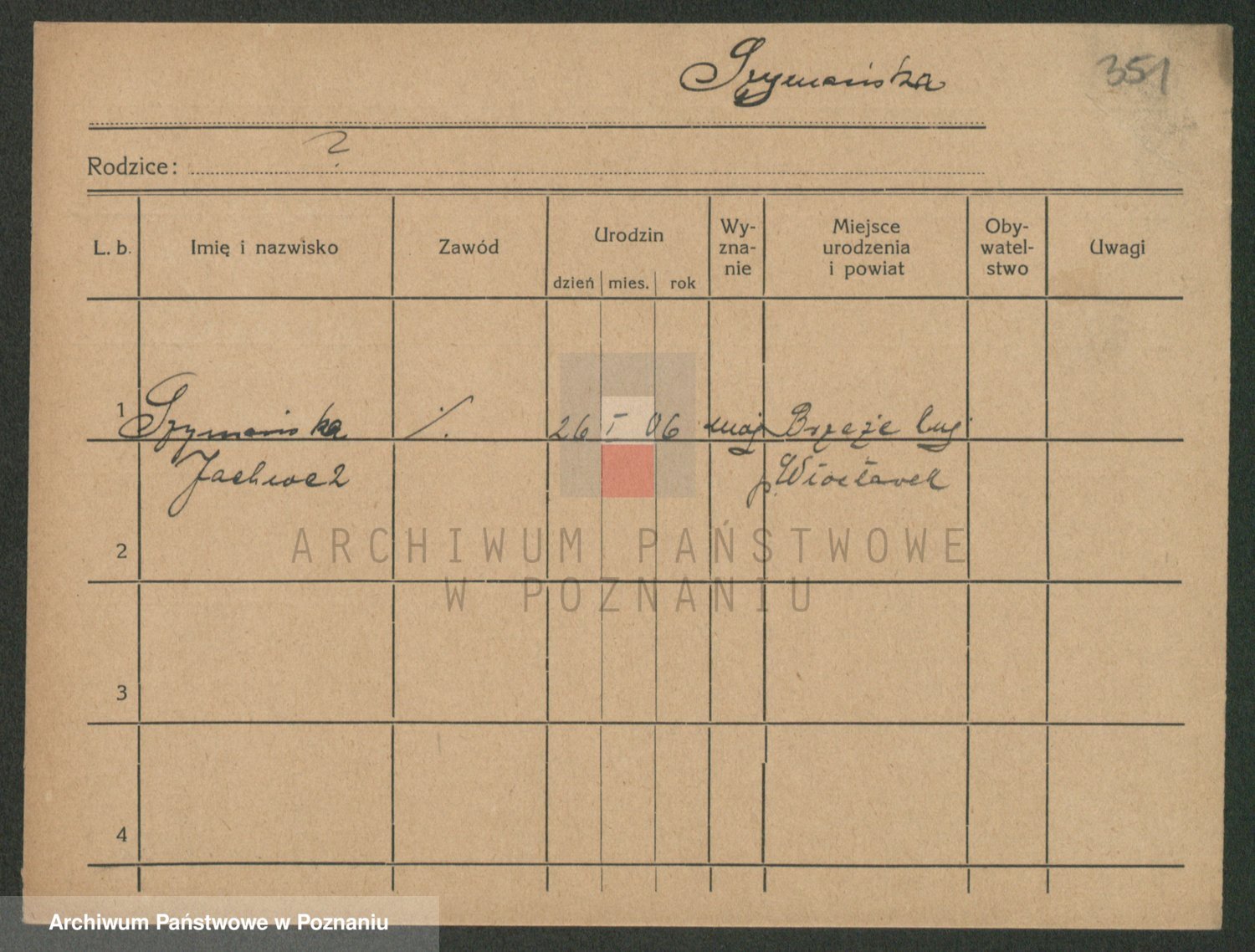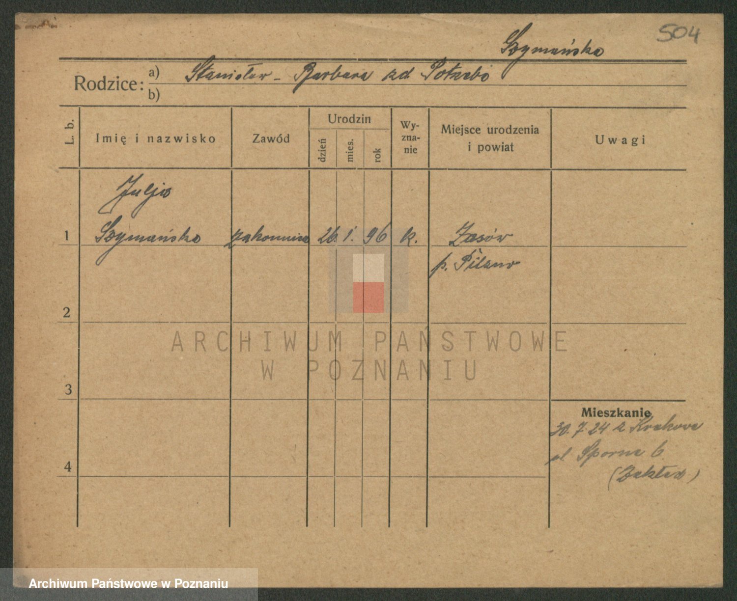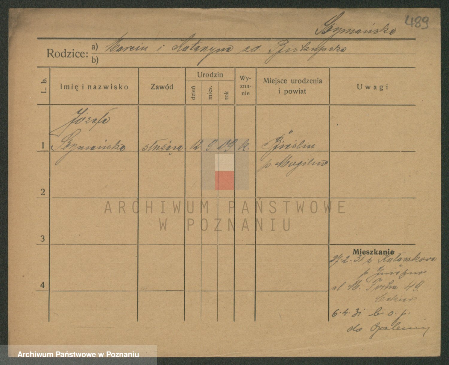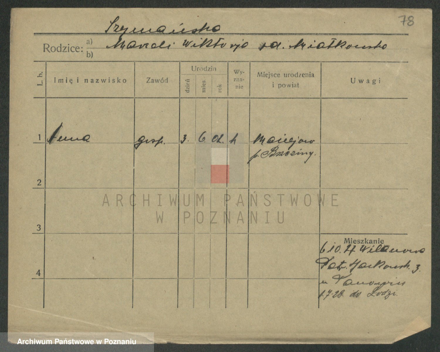 Podgląd karty osobowej dostępny jest po kliknięciu na nazwisko lub ikonkę karty. Można dokonywać powiększenia (ikony na górze) lub przechodzić między kolejnymi skanami (strzałki po bokach).