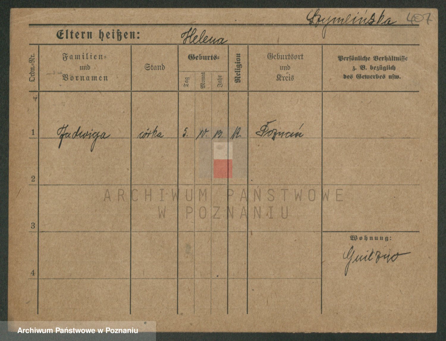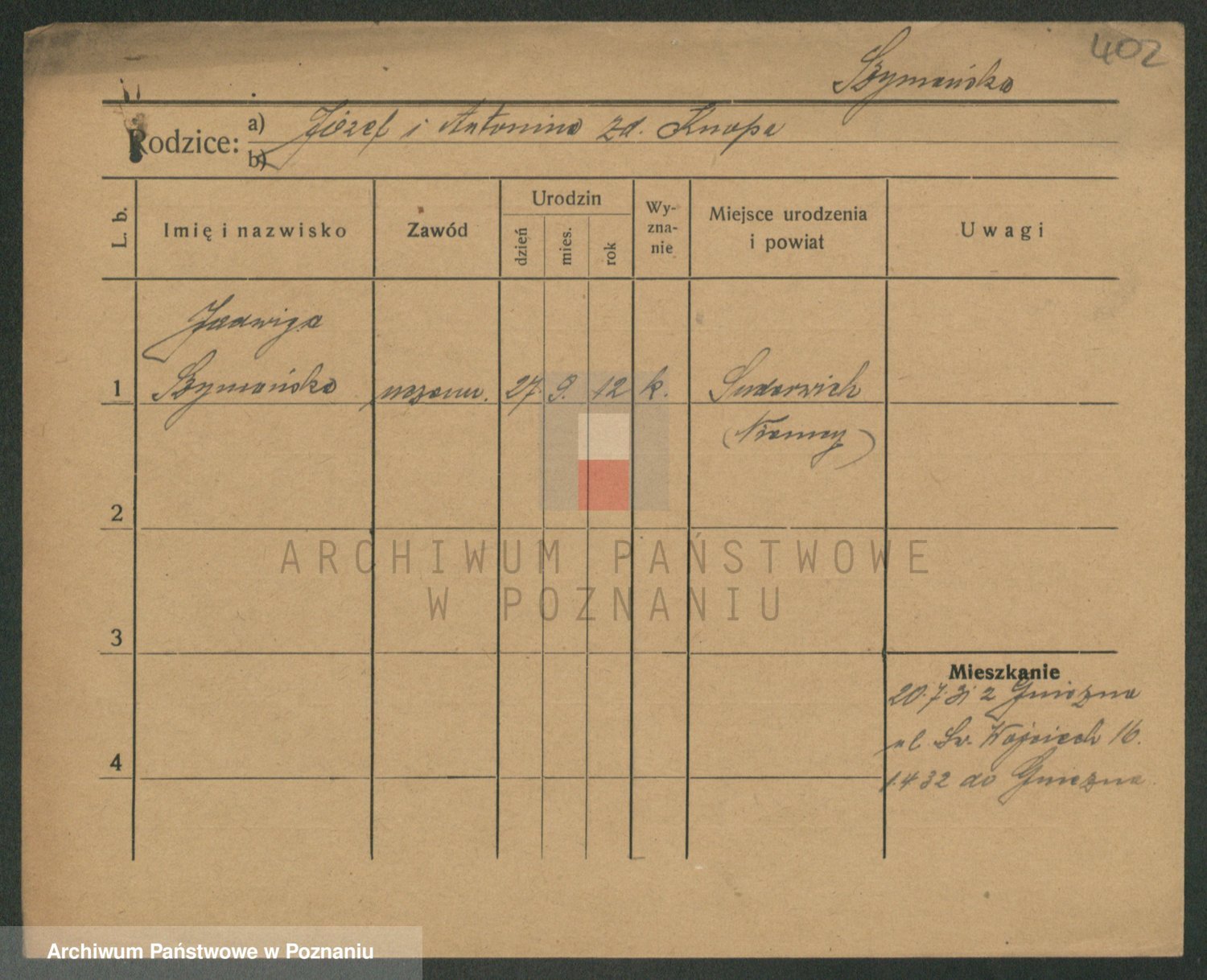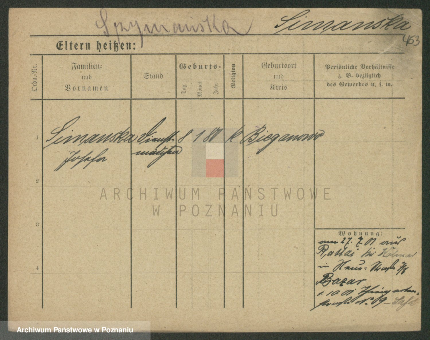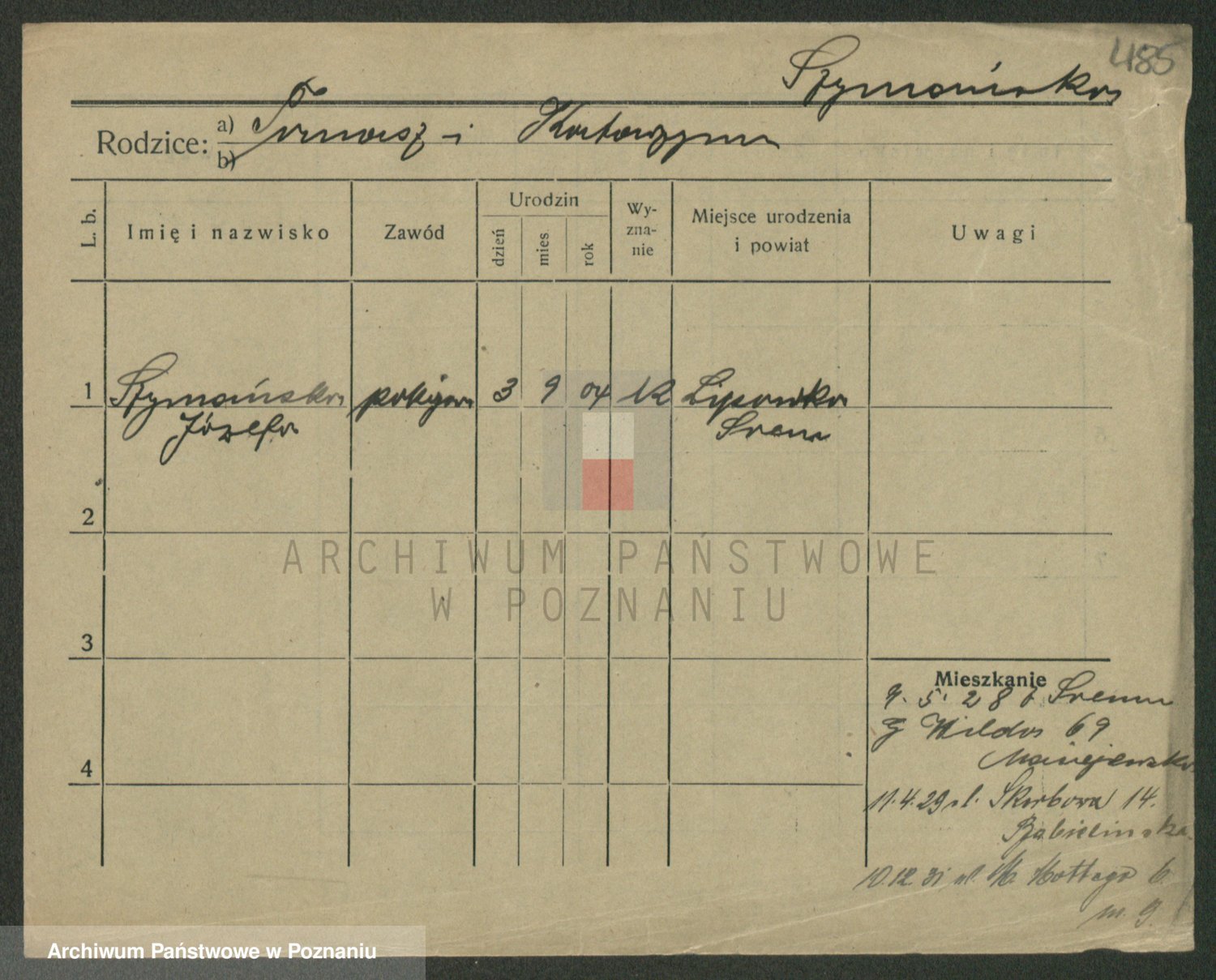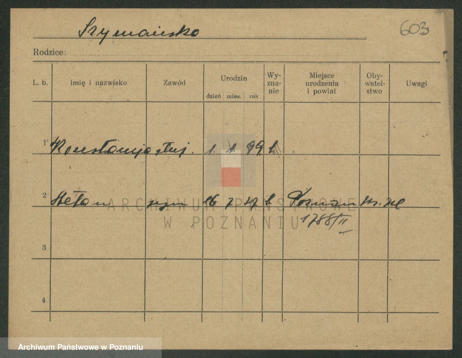 Podgląd karty osobowej dostępny jest po kliknięciu na nazwisko lub ikonkę karty. Można dokonywać powiększenia (ikony na górze) lub przechodzić między kolejnymi skanami (strzałki po bokach).