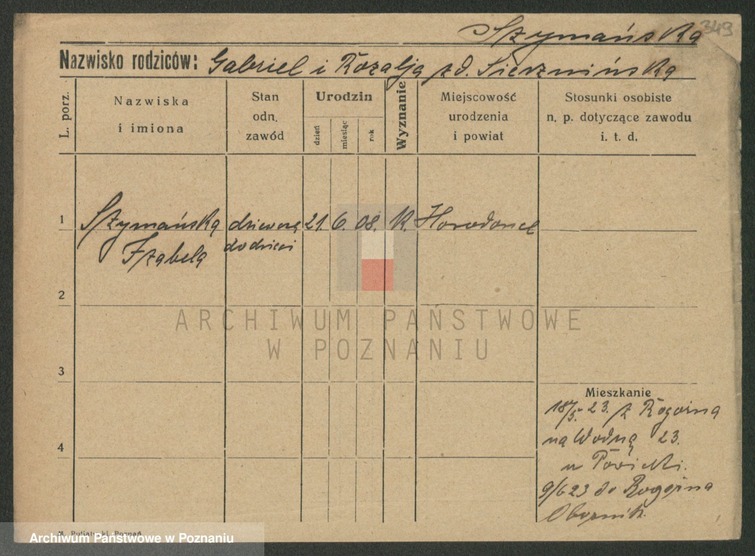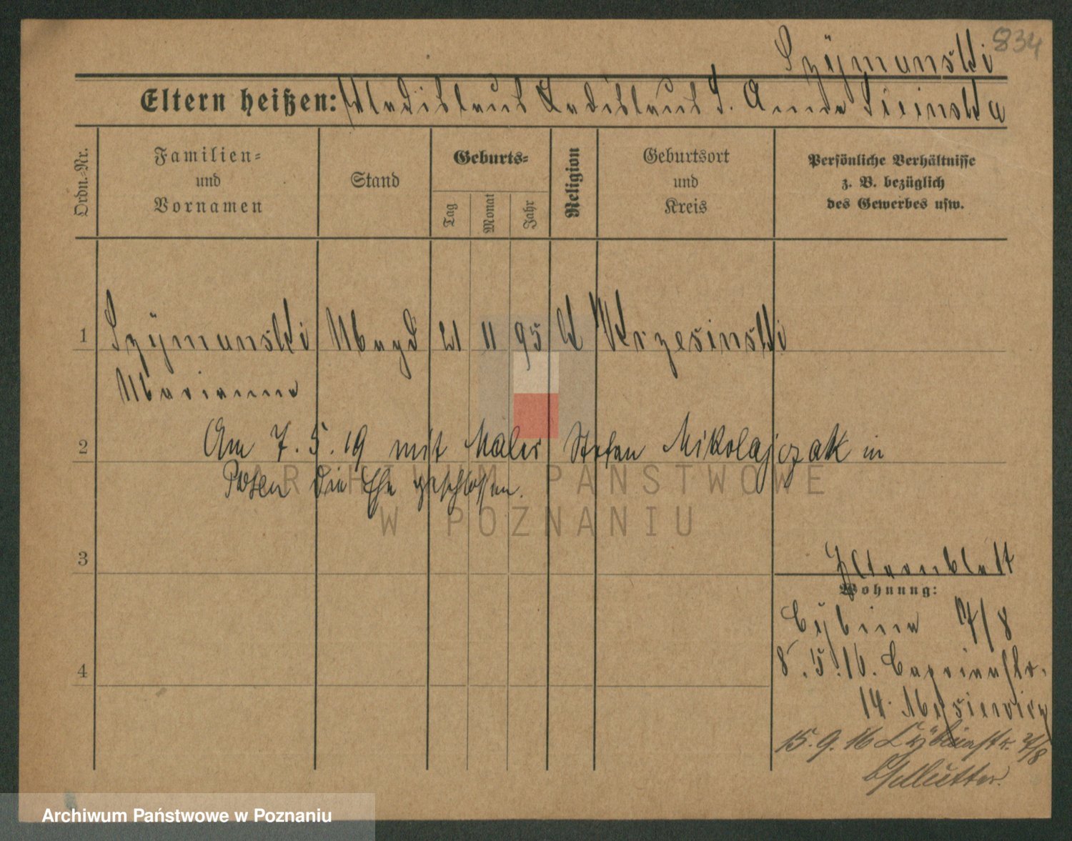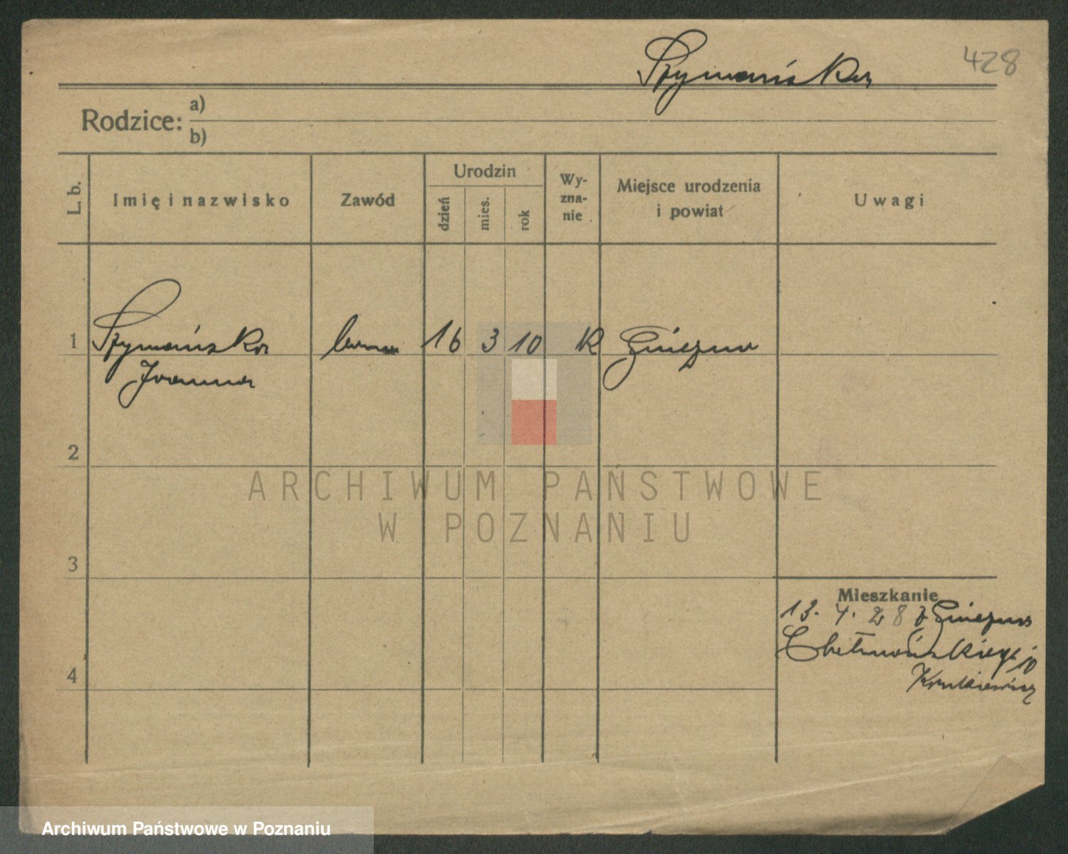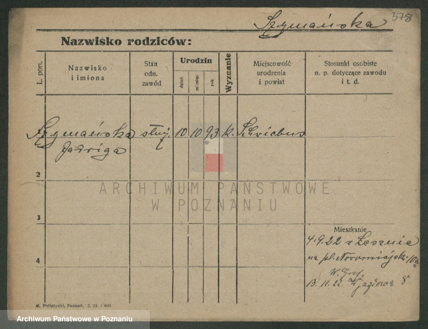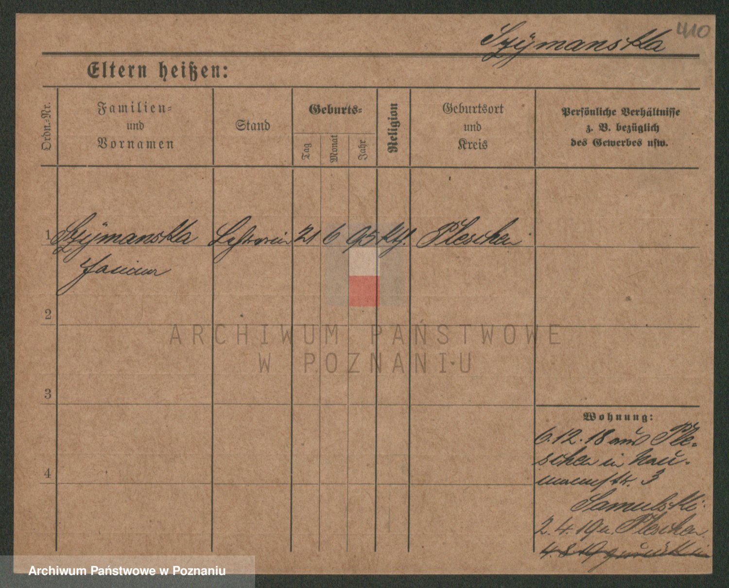 Podgląd karty osobowej dostępny jest po kliknięciu na nazwisko lub ikonkę karty. Można dokonywać powiększenia (ikony na górze) lub przechodzić między kolejnymi skanami (strzałki po bokach).