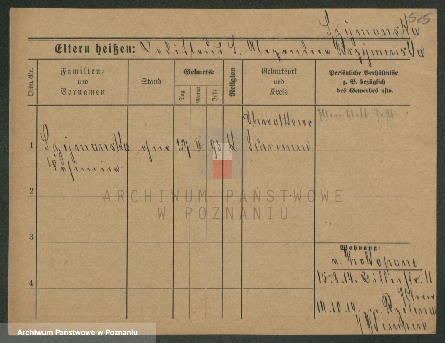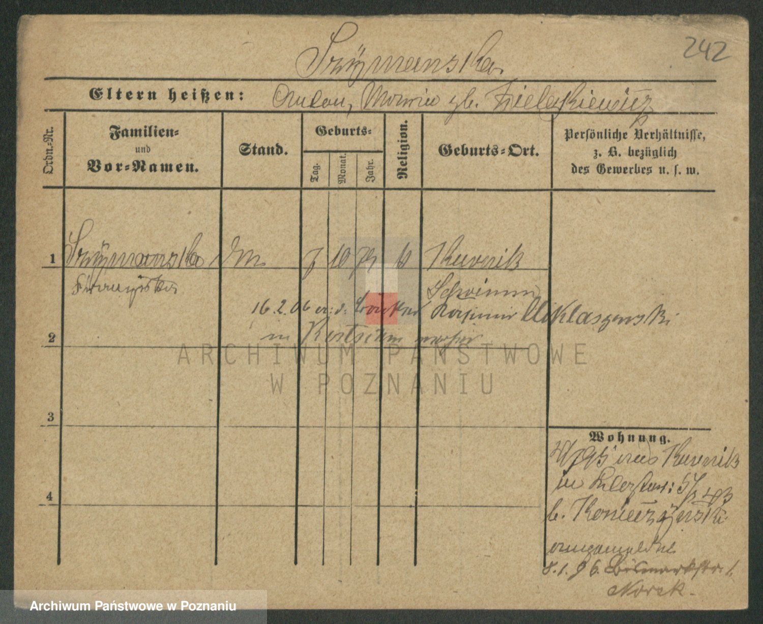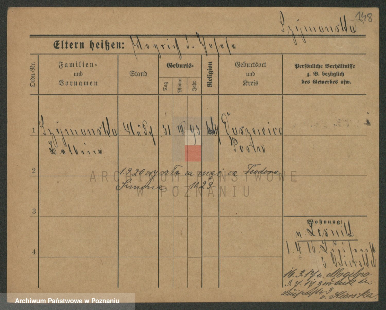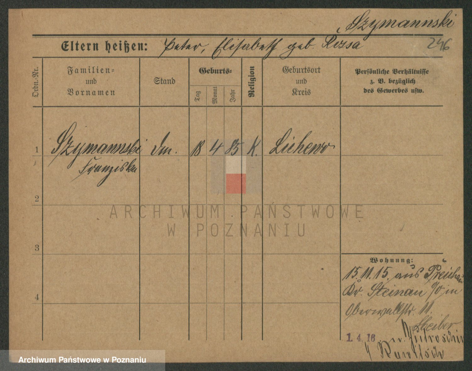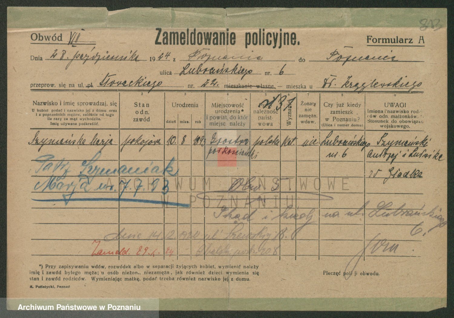 Podgląd karty osobowej dostępny jest po kliknięciu na nazwisko lub ikonkę karty. Można dokonywać powiększenia (ikony na górze) lub przechodzić między kolejnymi skanami (strzałki po bokach).