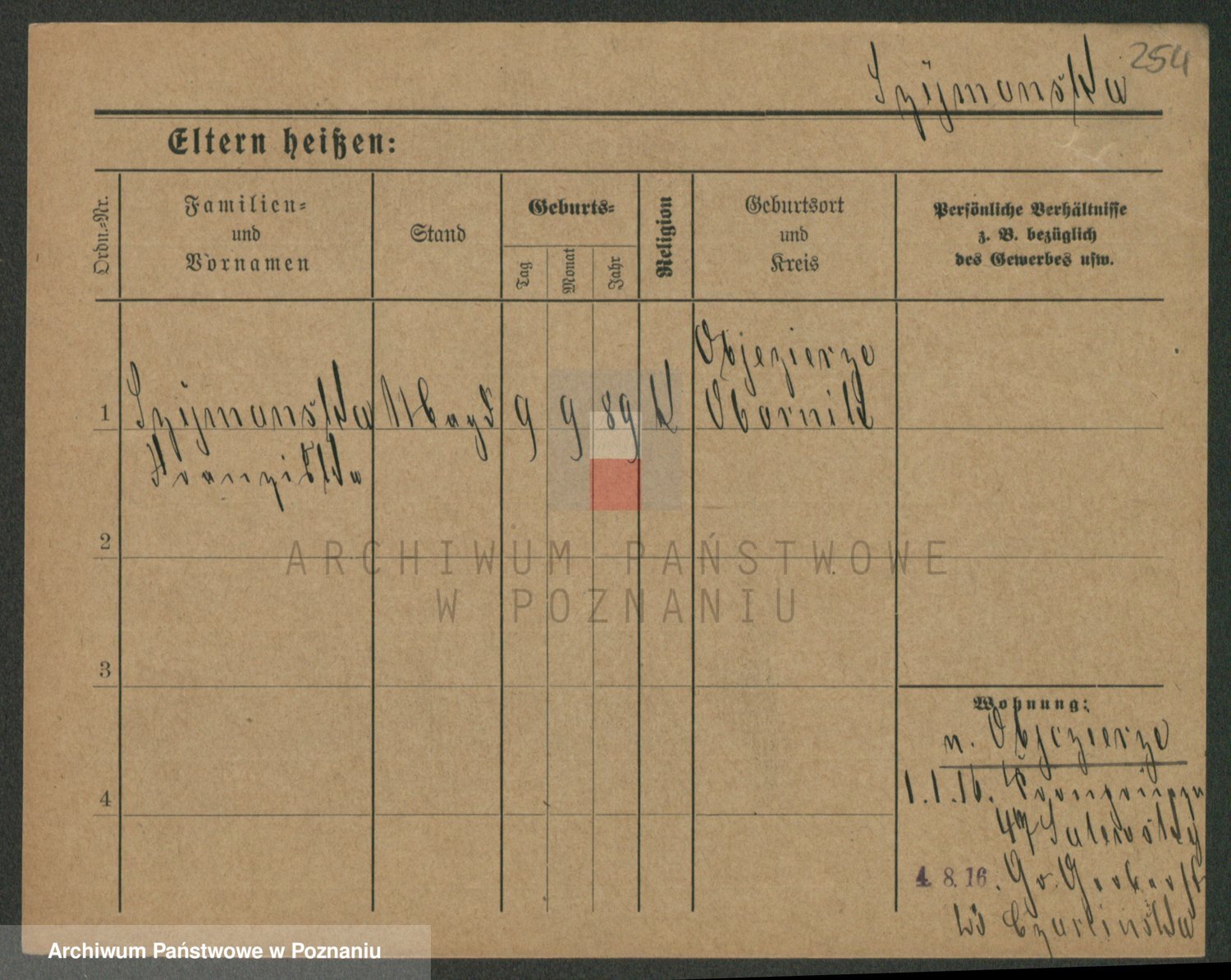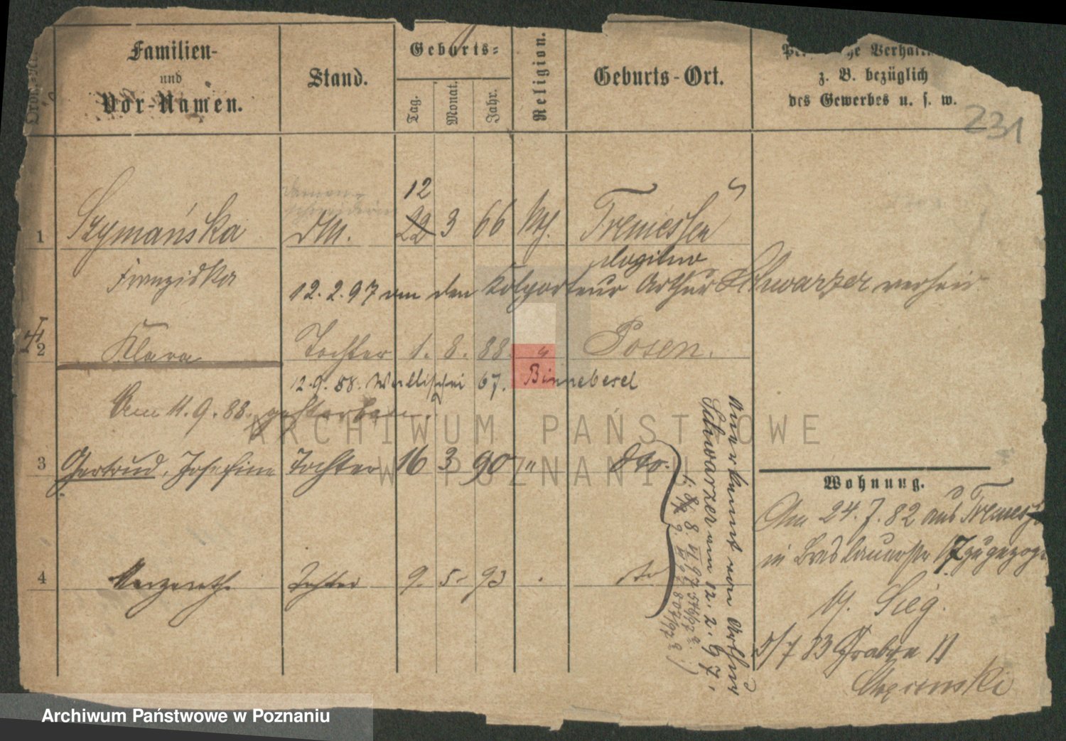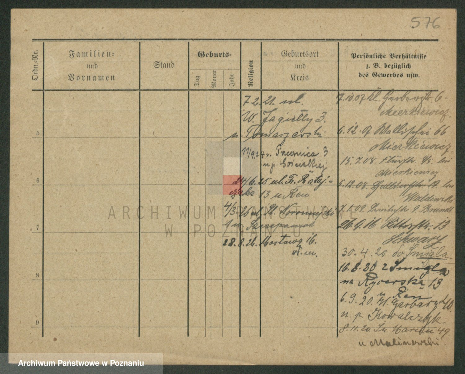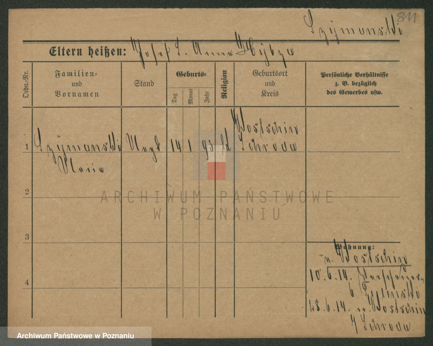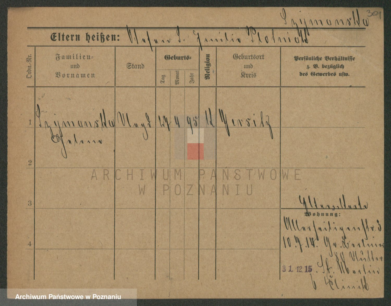 Podgląd karty osobowej dostępny jest po kliknięciu na nazwisko lub ikonkę karty. Można dokonywać powiększenia (ikony na górze) lub przechodzić między kolejnymi skanami (strzałki po bokach).