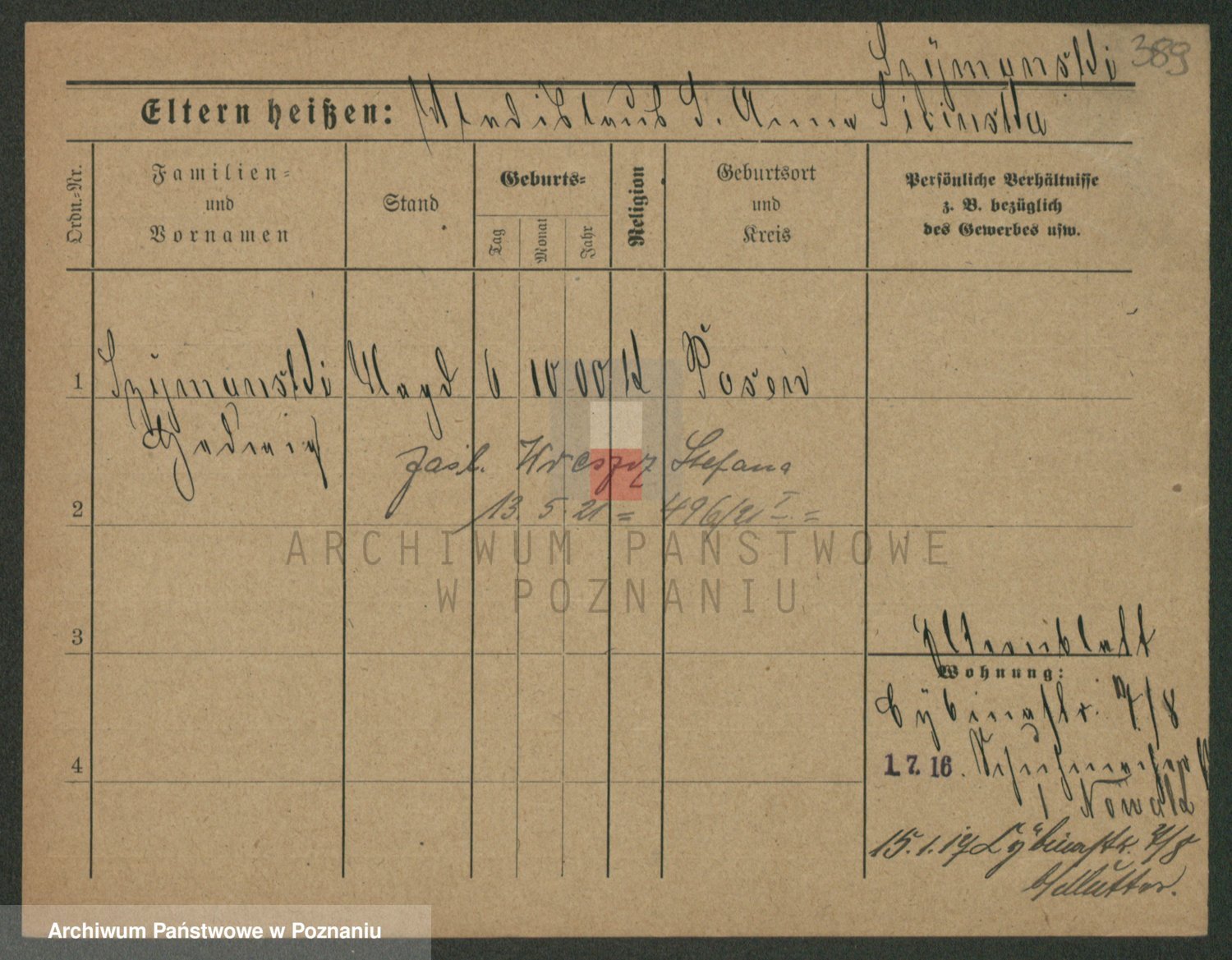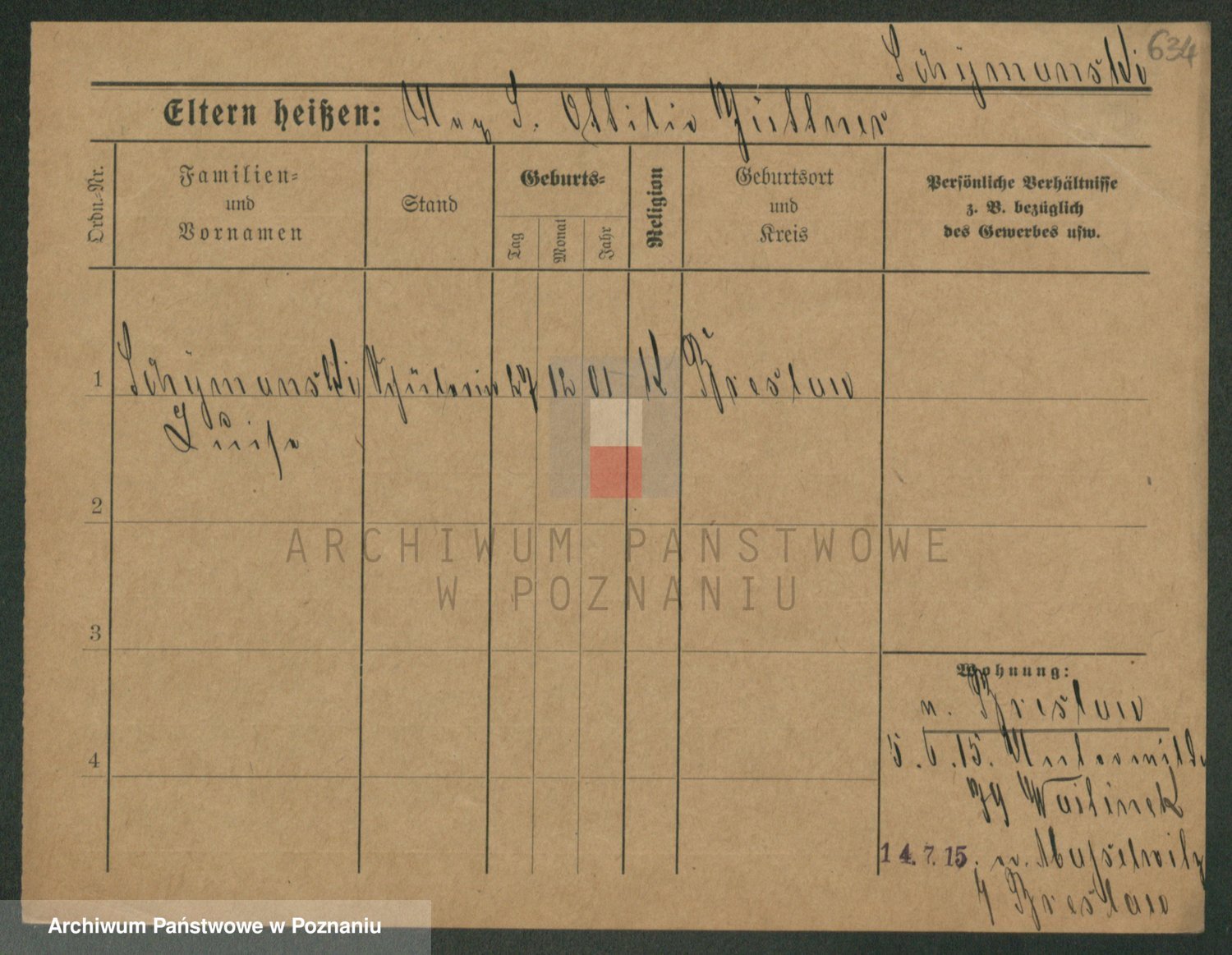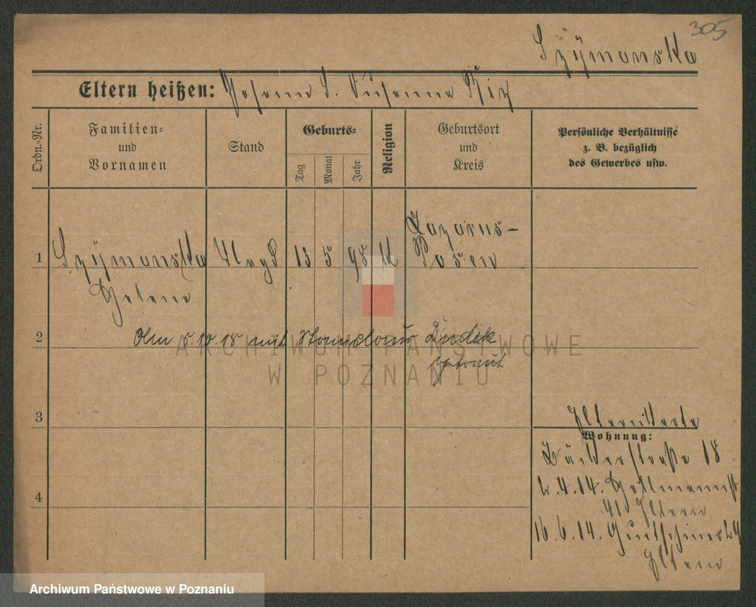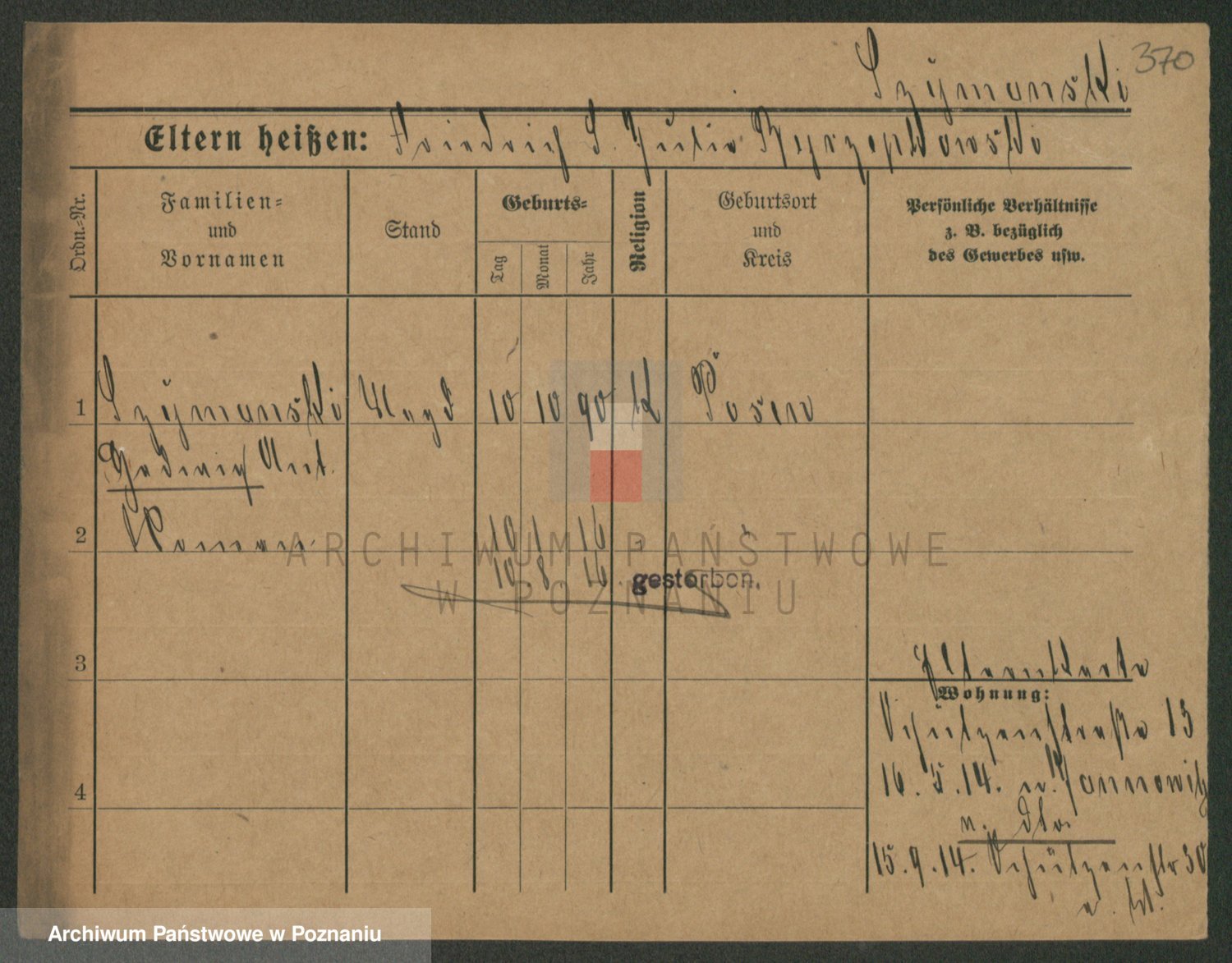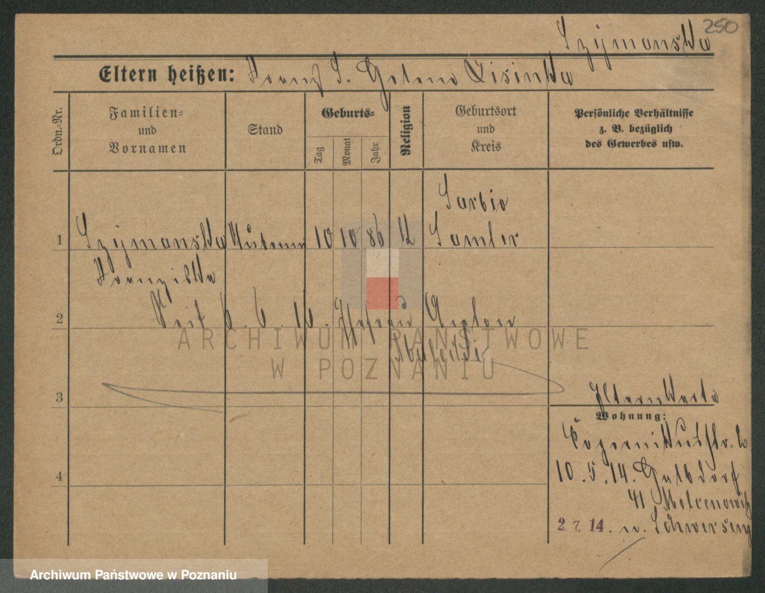 Podgląd karty osobowej dostępny jest po kliknięciu na nazwisko lub ikonkę karty. Można dokonywać powiększenia (ikony na górze) lub przechodzić między kolejnymi skanami (strzałki po bokach).