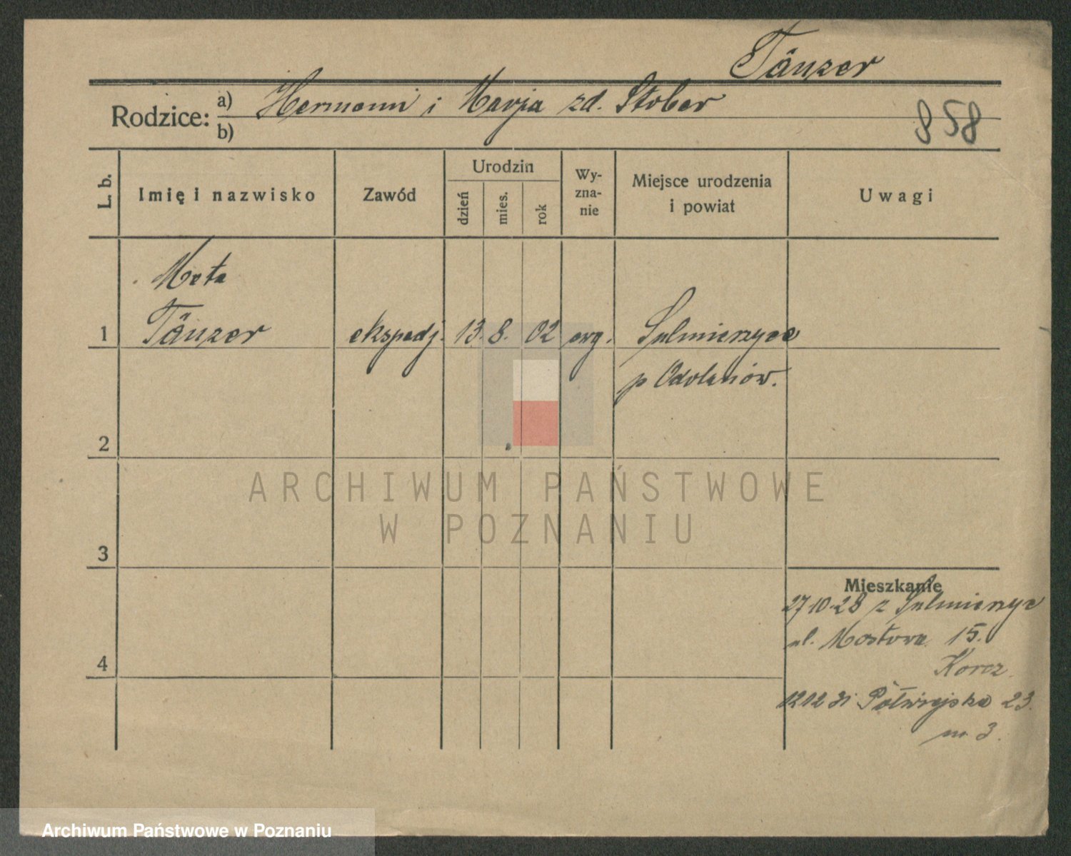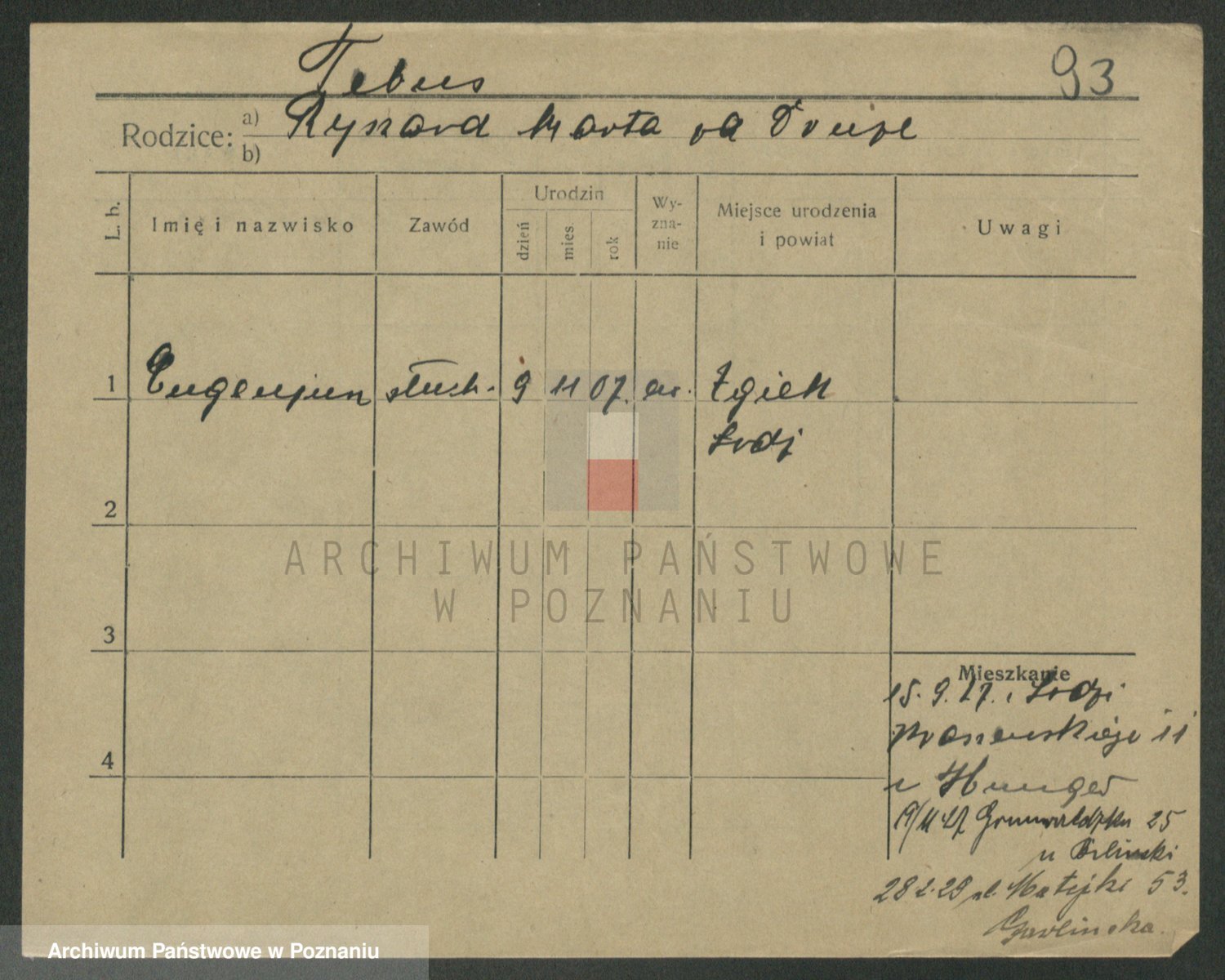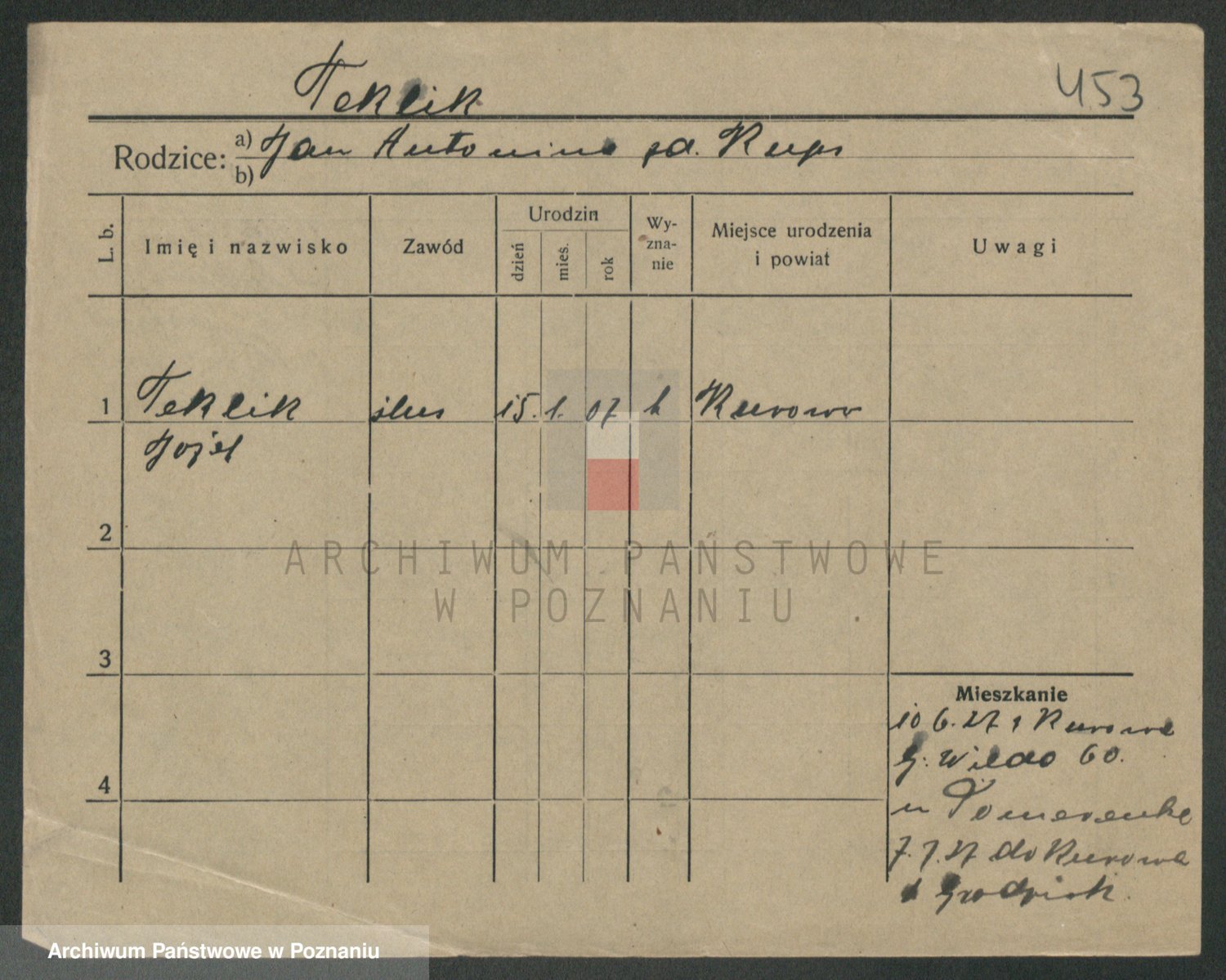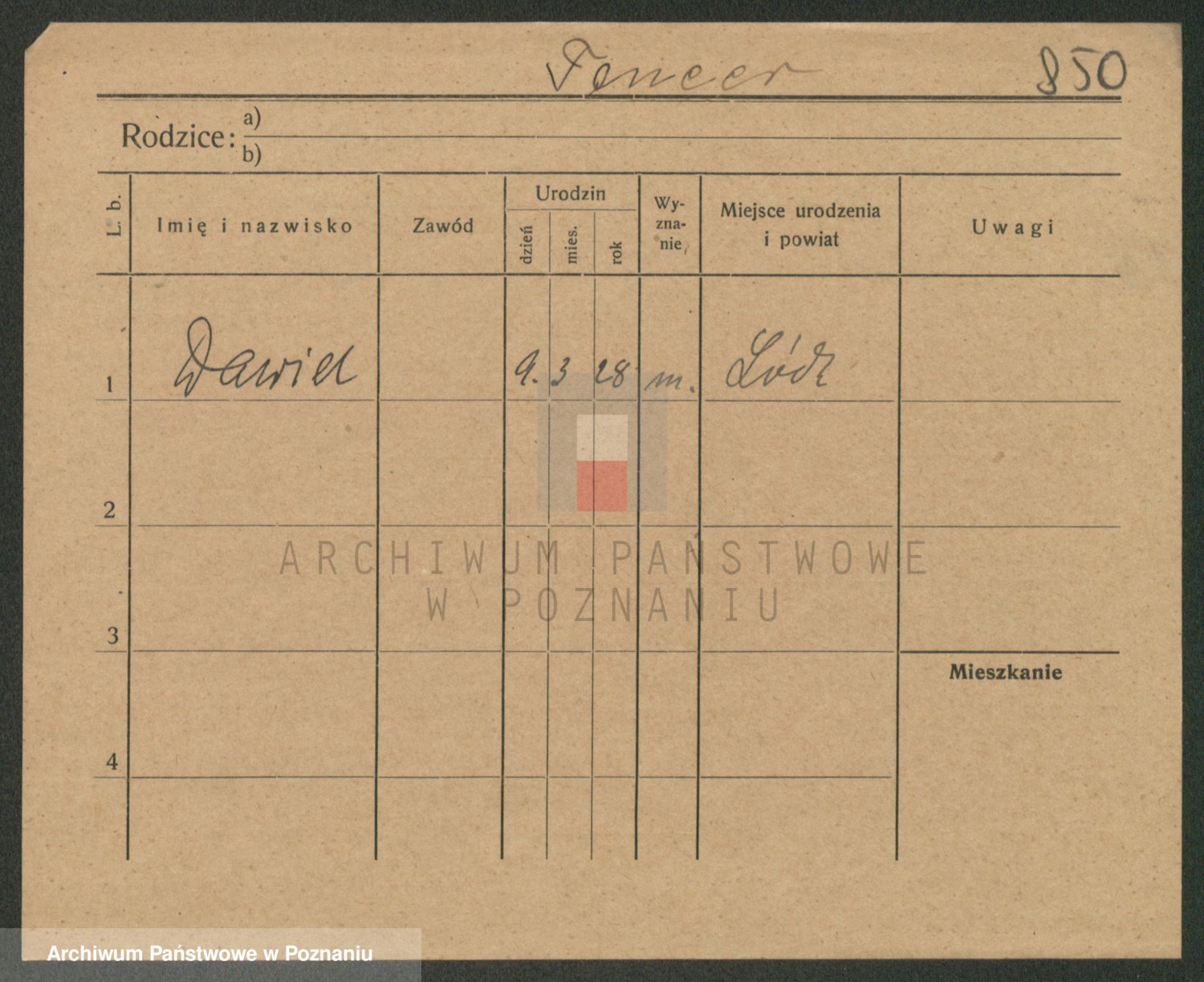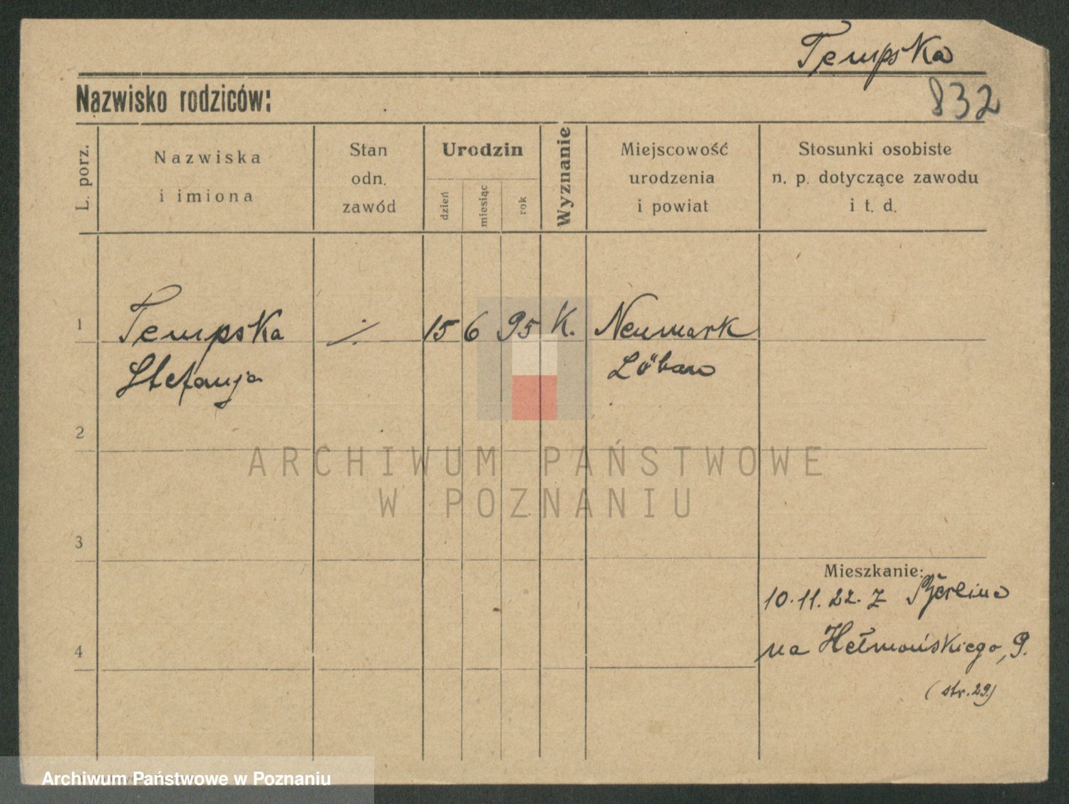 Podgląd karty osobowej dostępny jest po kliknięciu na nazwisko lub ikonkę karty. Można dokonywać powiększenia (ikony na górze) lub przechodzić między kolejnymi skanami (strzałki po bokach).