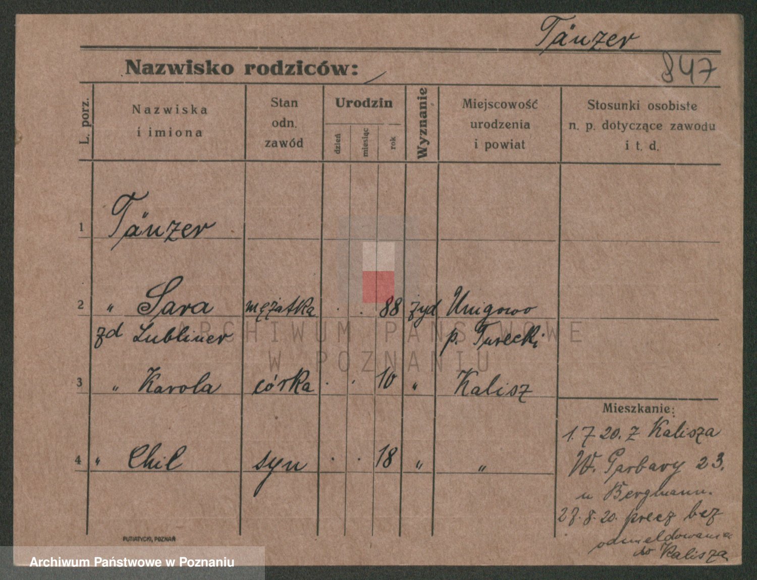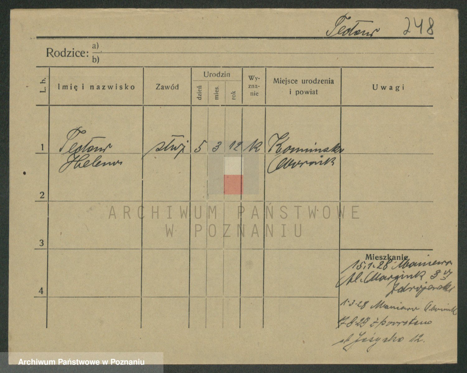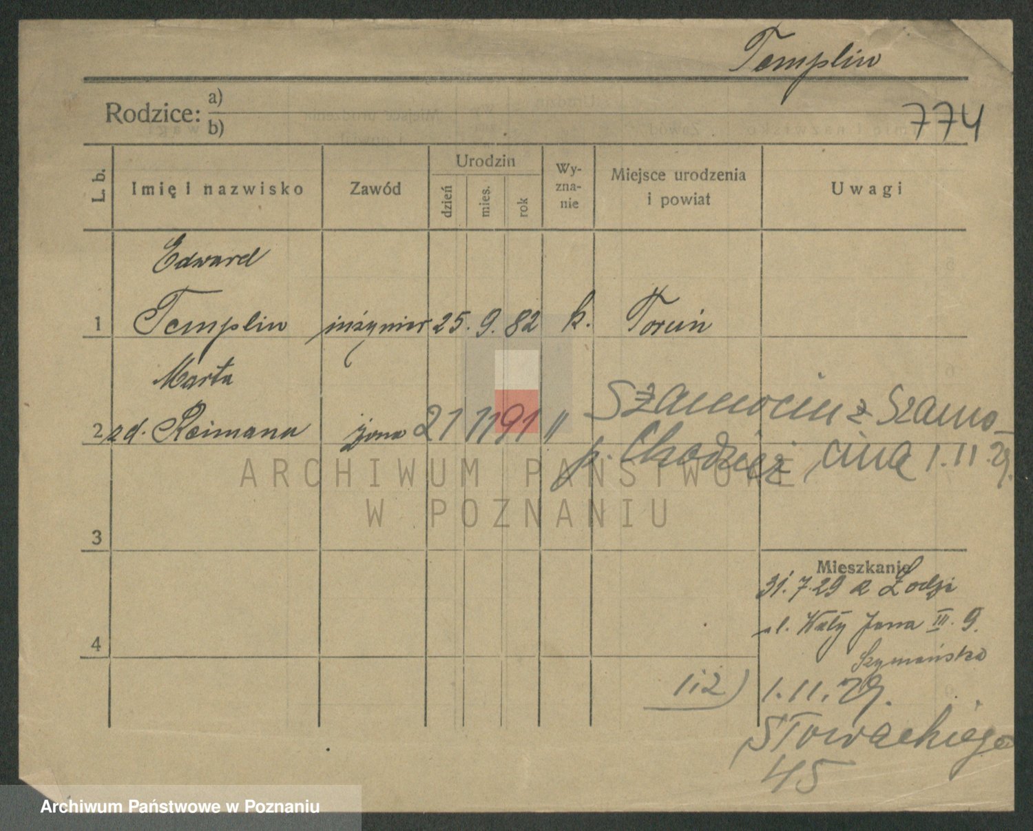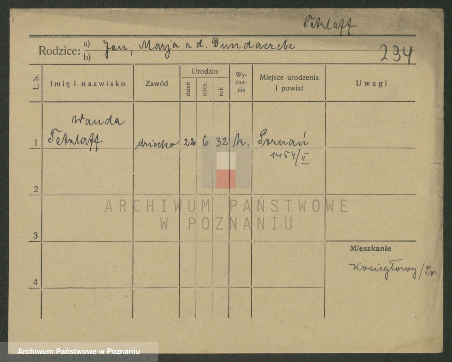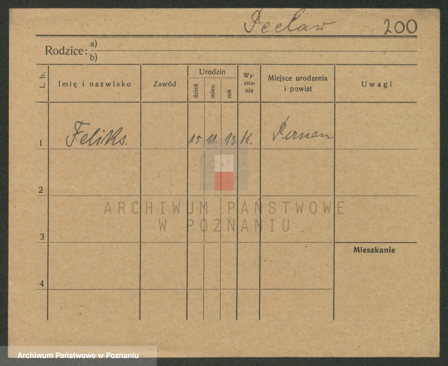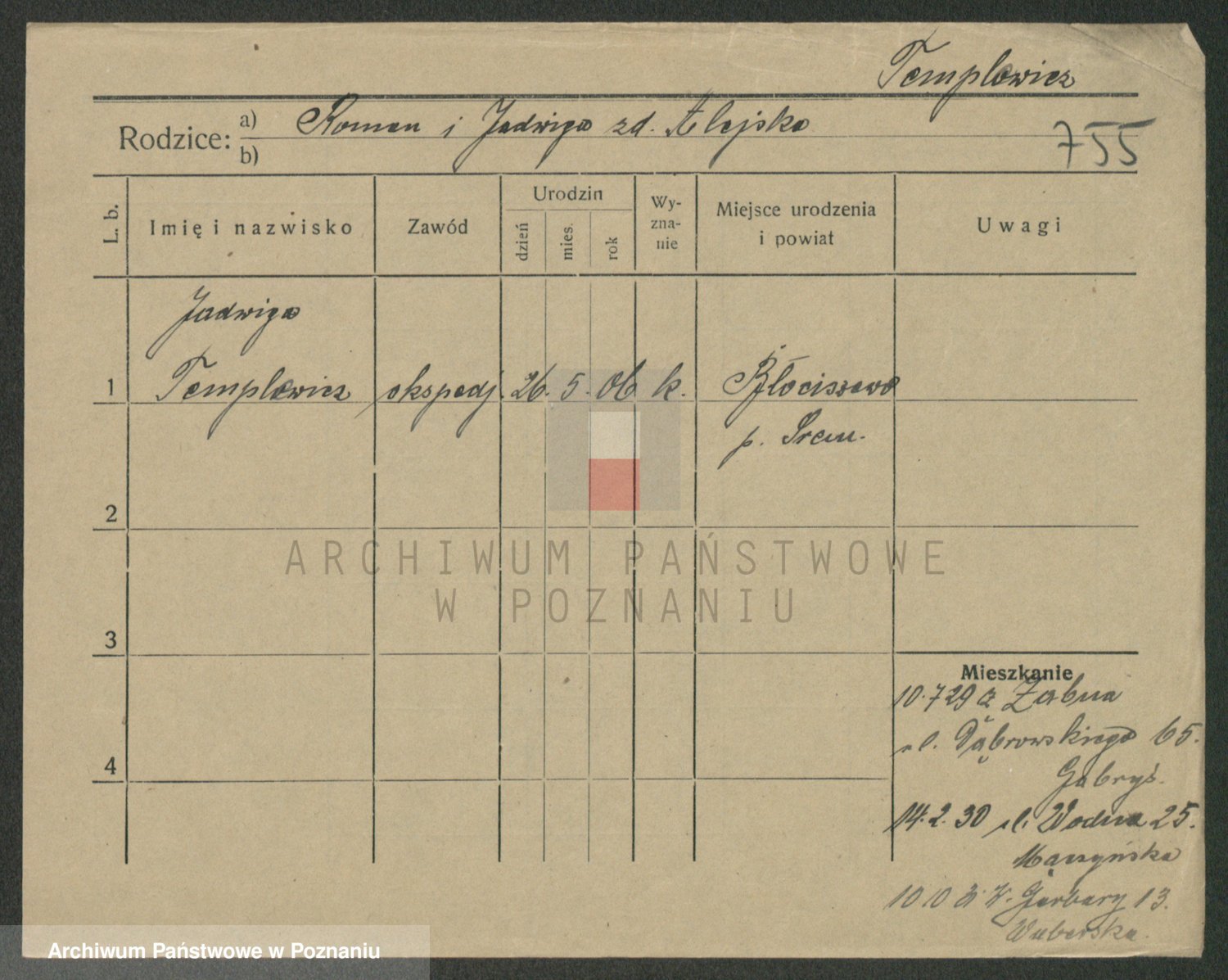 Podgląd karty osobowej dostępny jest po kliknięciu na nazwisko lub ikonkę karty. Można dokonywać powiększenia (ikony na górze) lub przechodzić między kolejnymi skanami (strzałki po bokach).