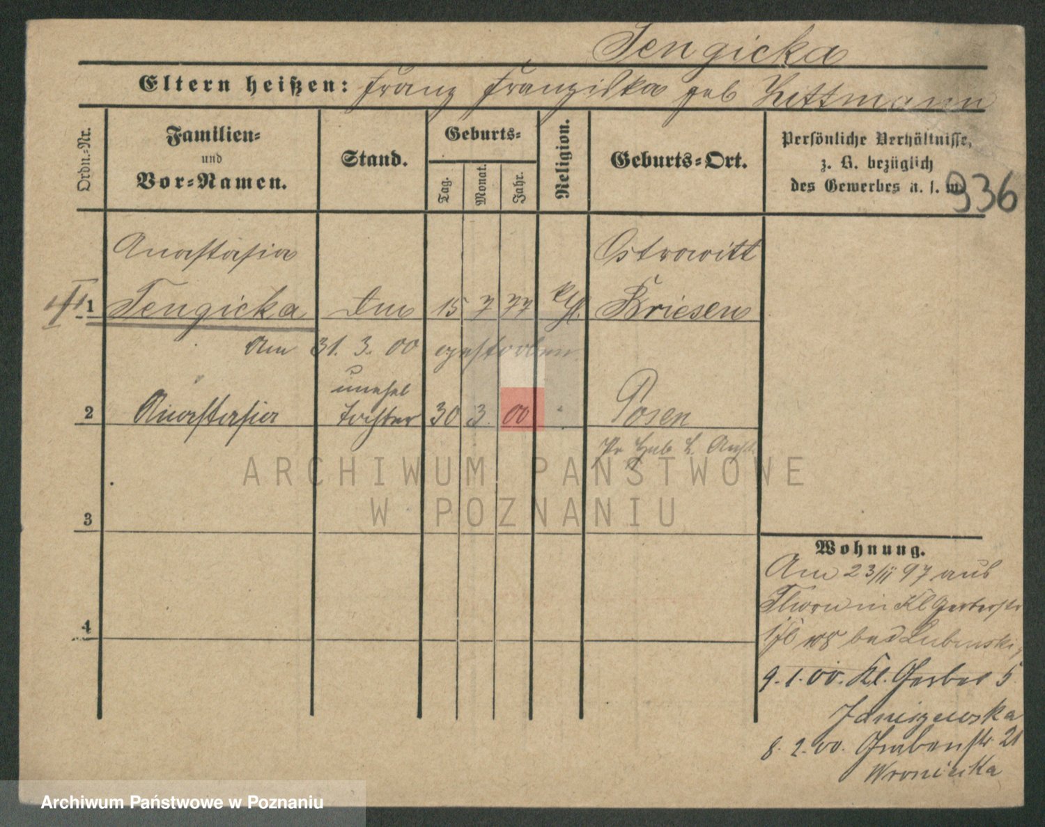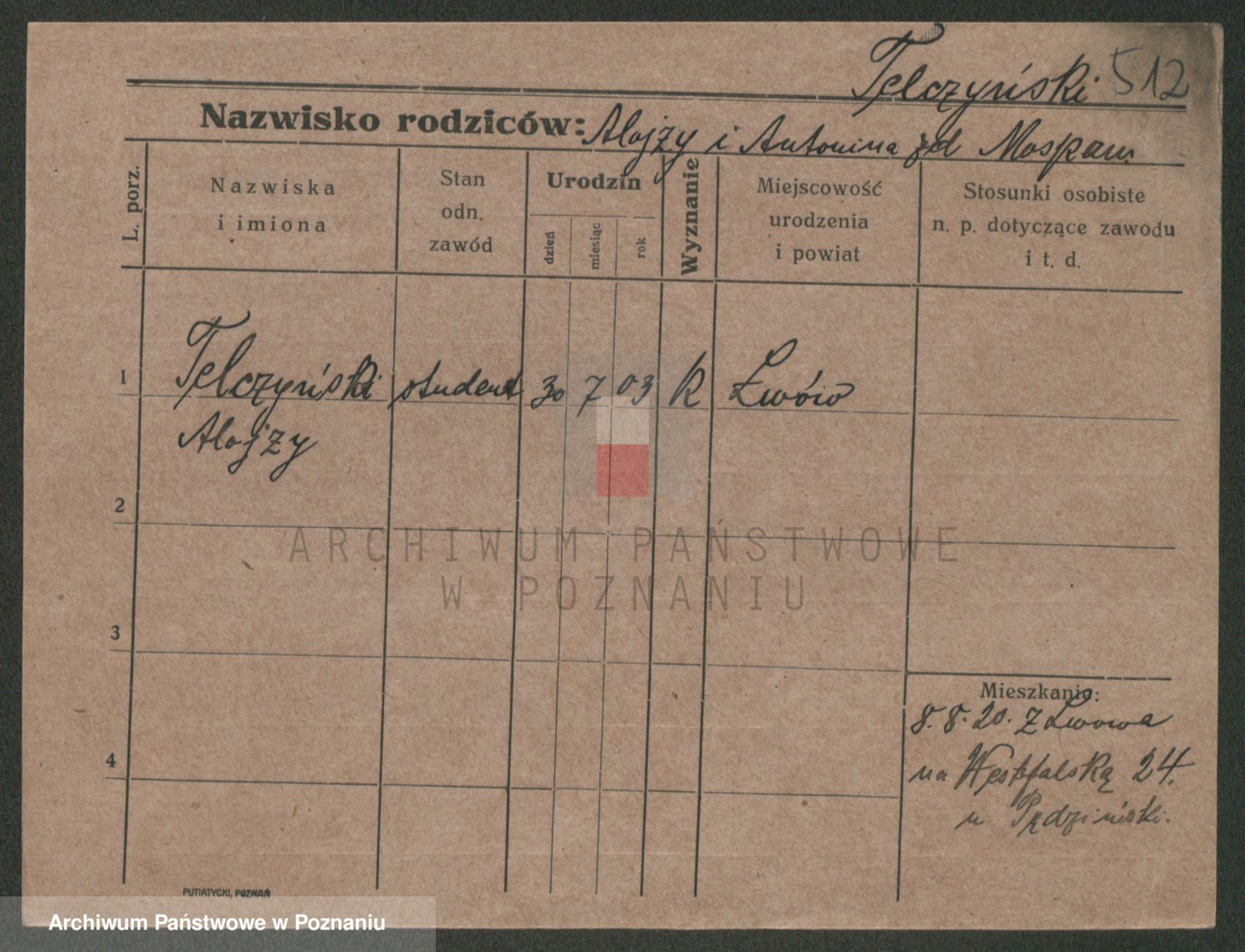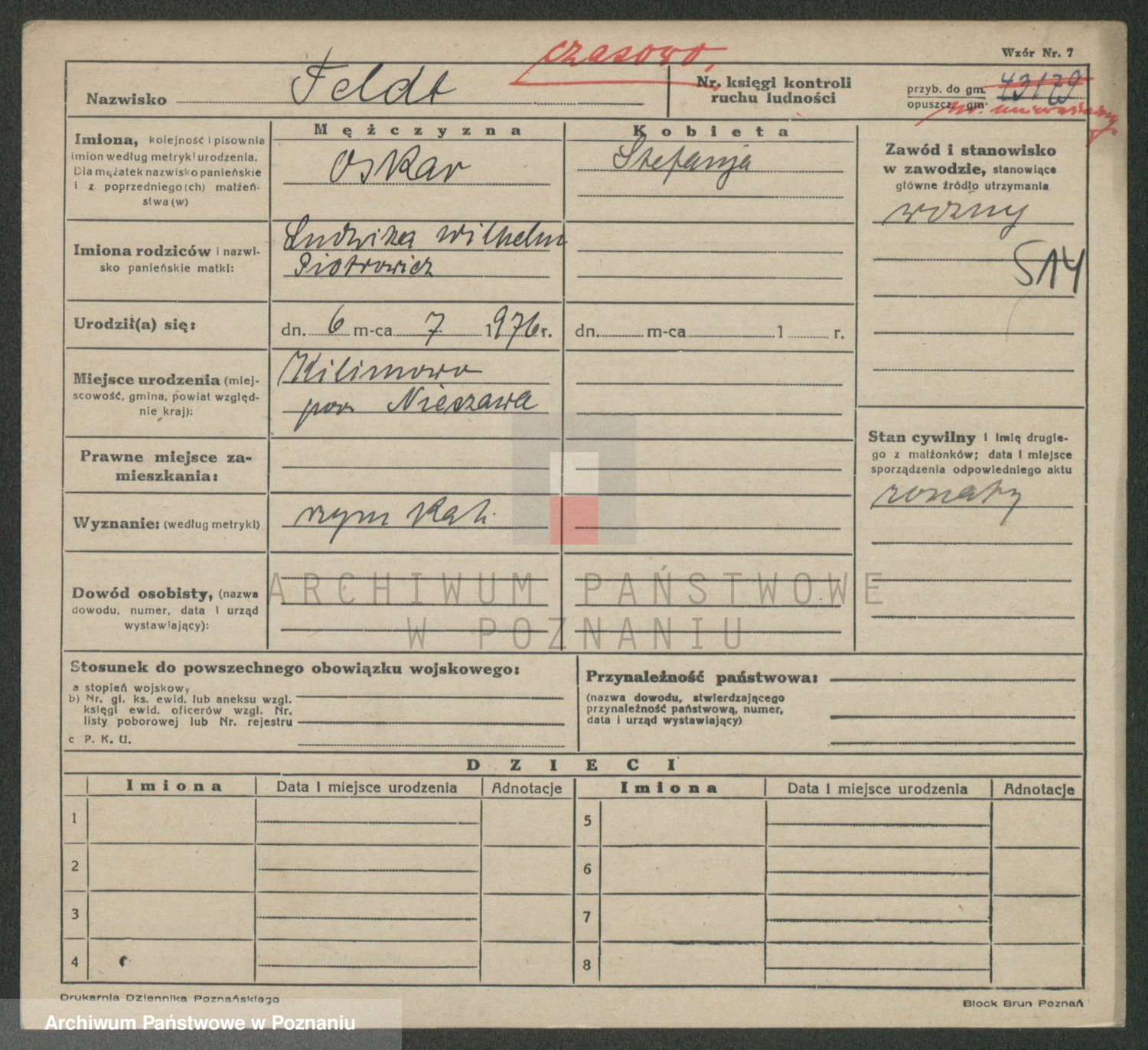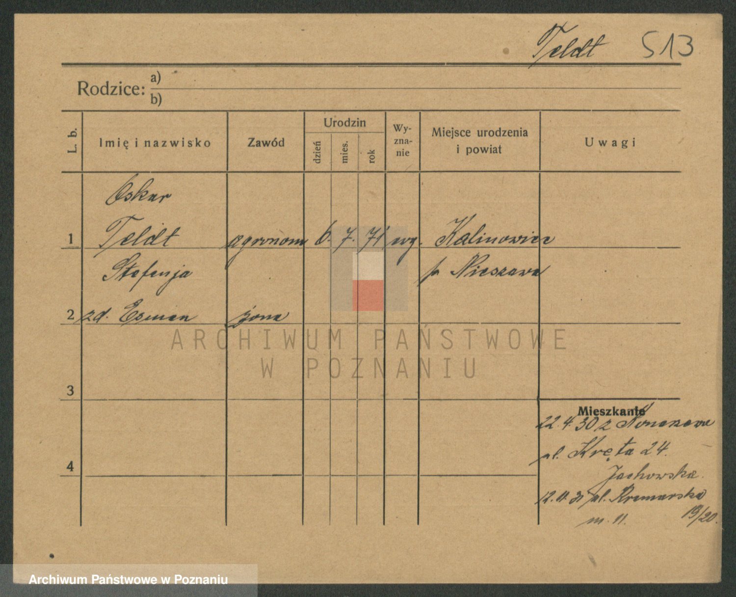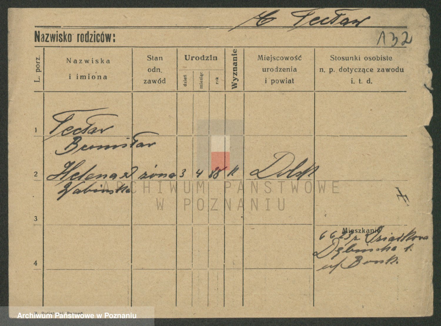 Podgląd karty osobowej dostępny jest po kliknięciu na nazwisko lub ikonkę karty. Można dokonywać powiększenia (ikony na górze) lub przechodzić między kolejnymi skanami (strzałki po bokach).