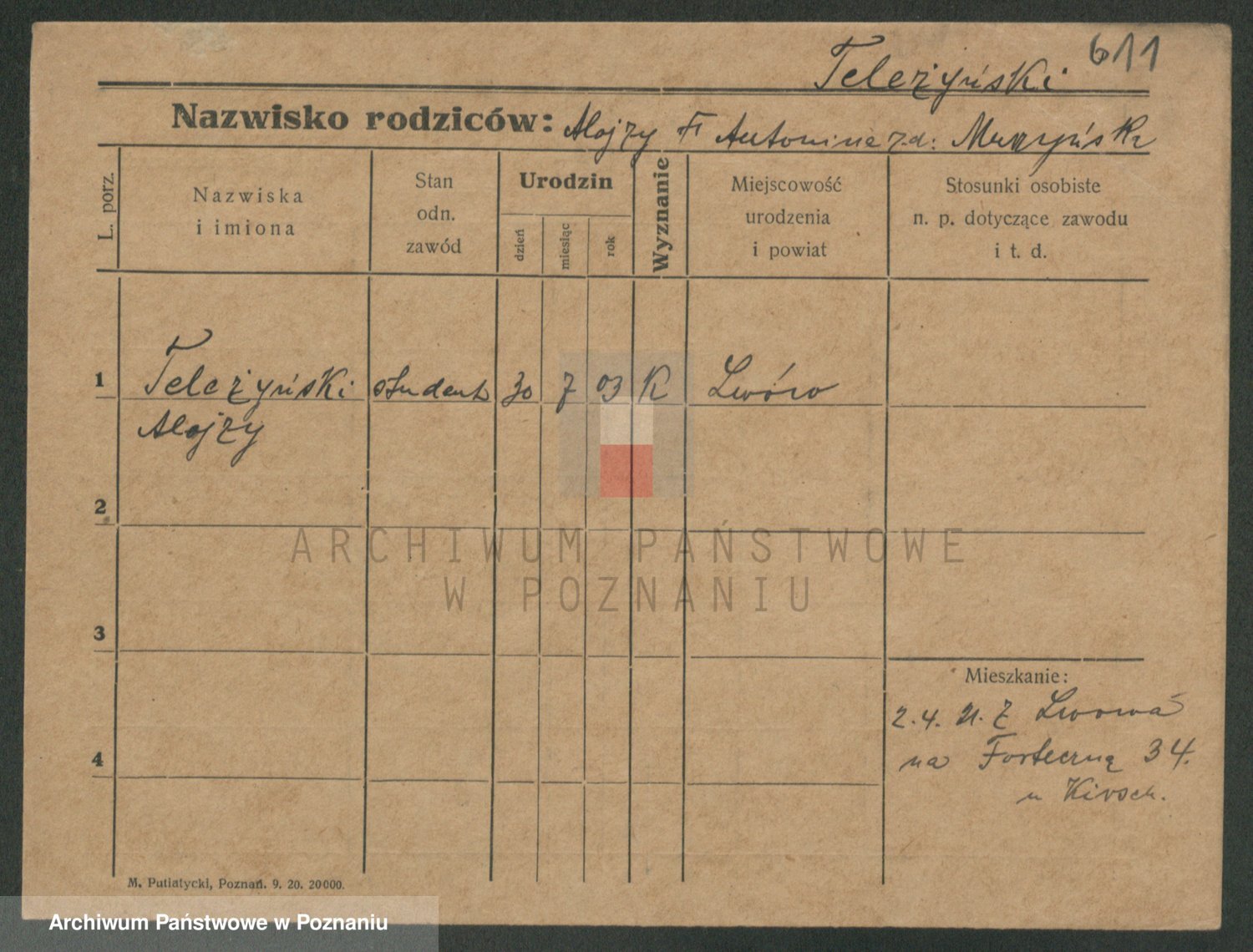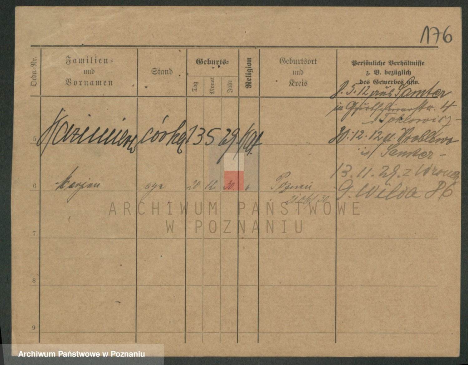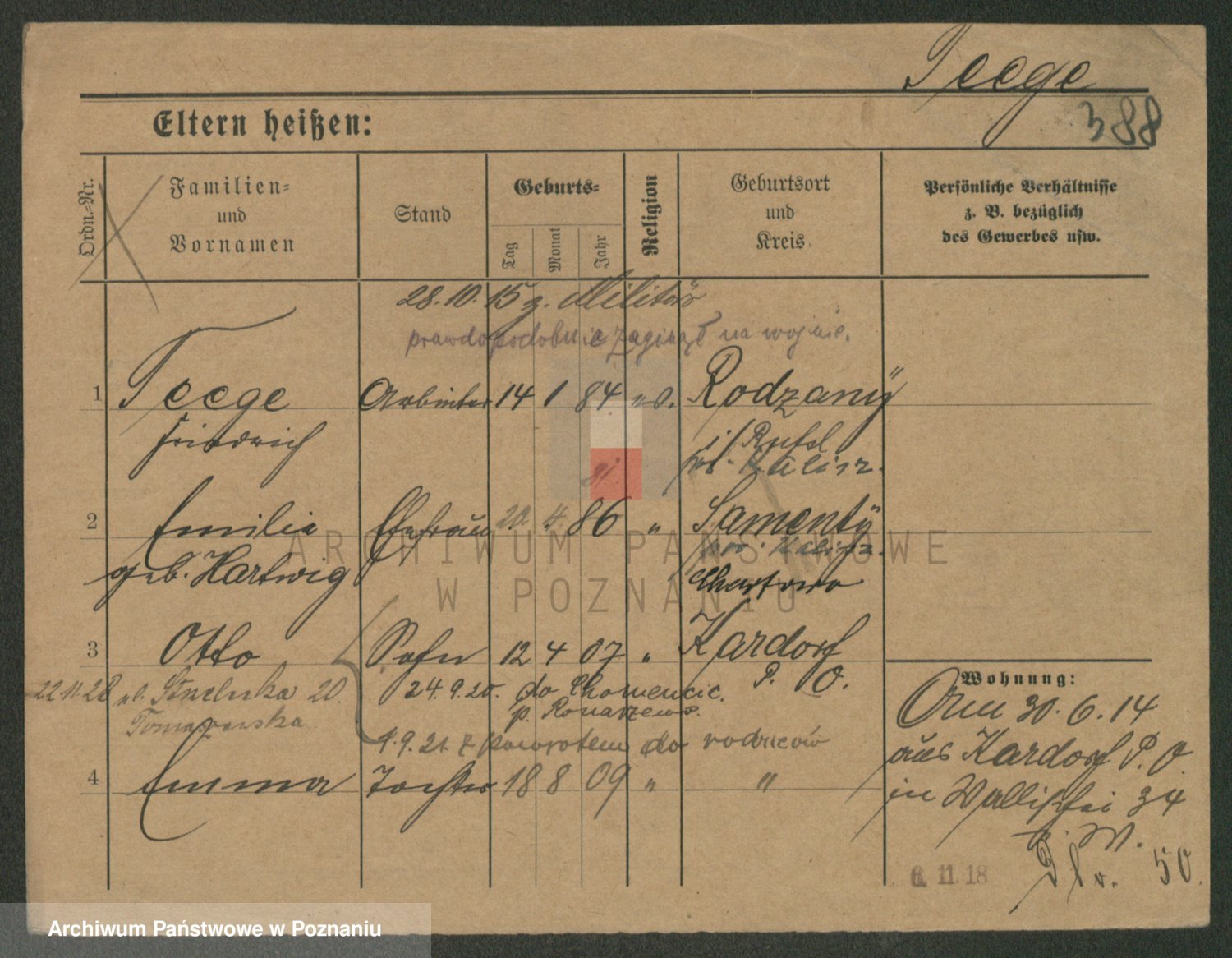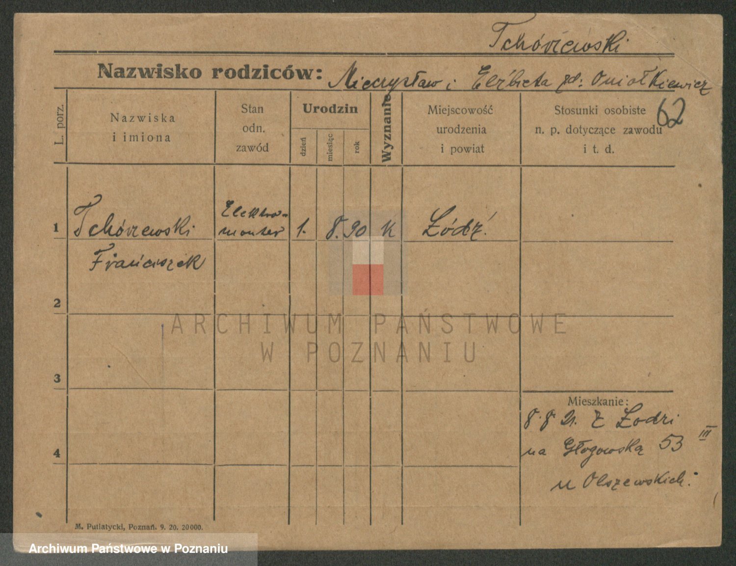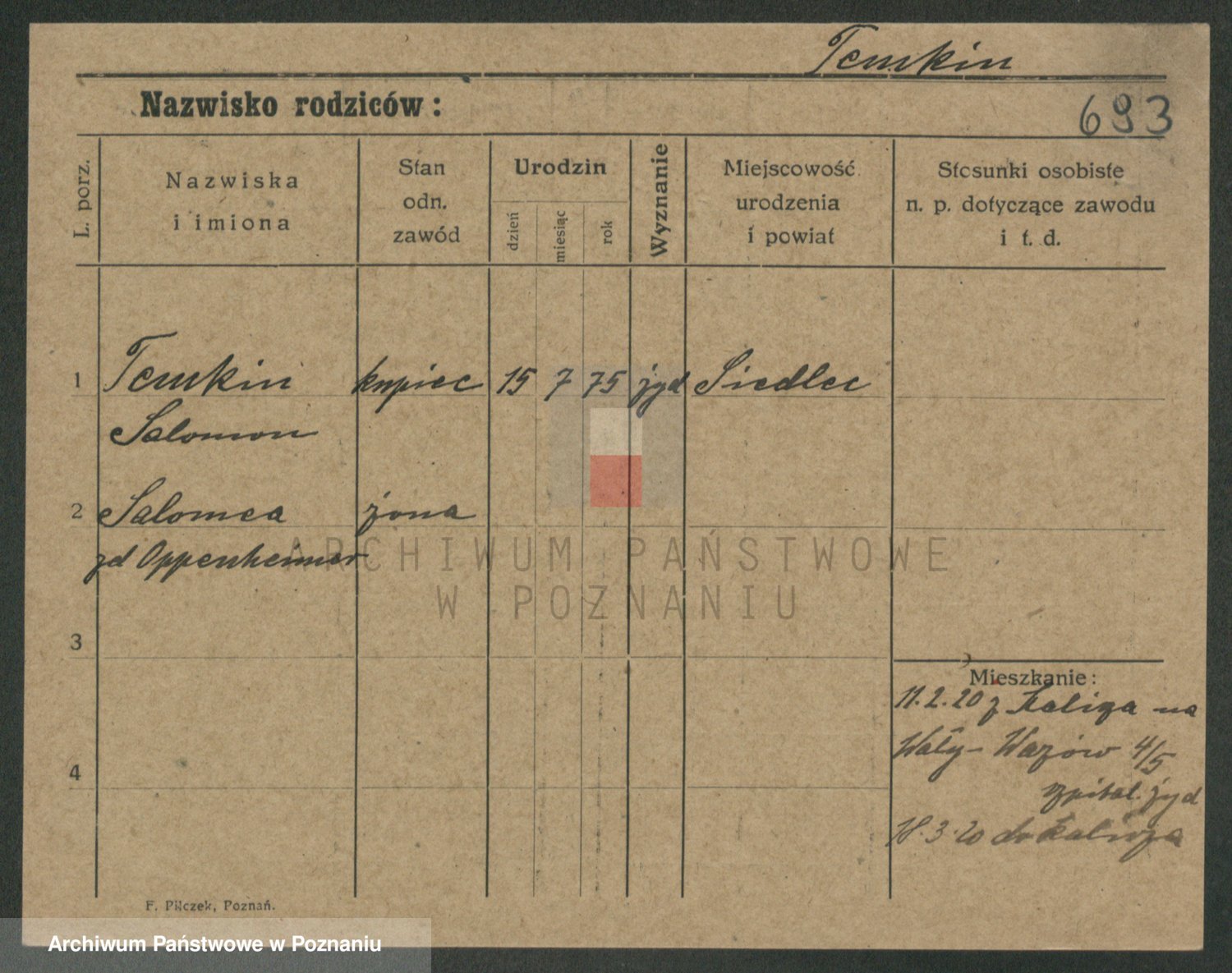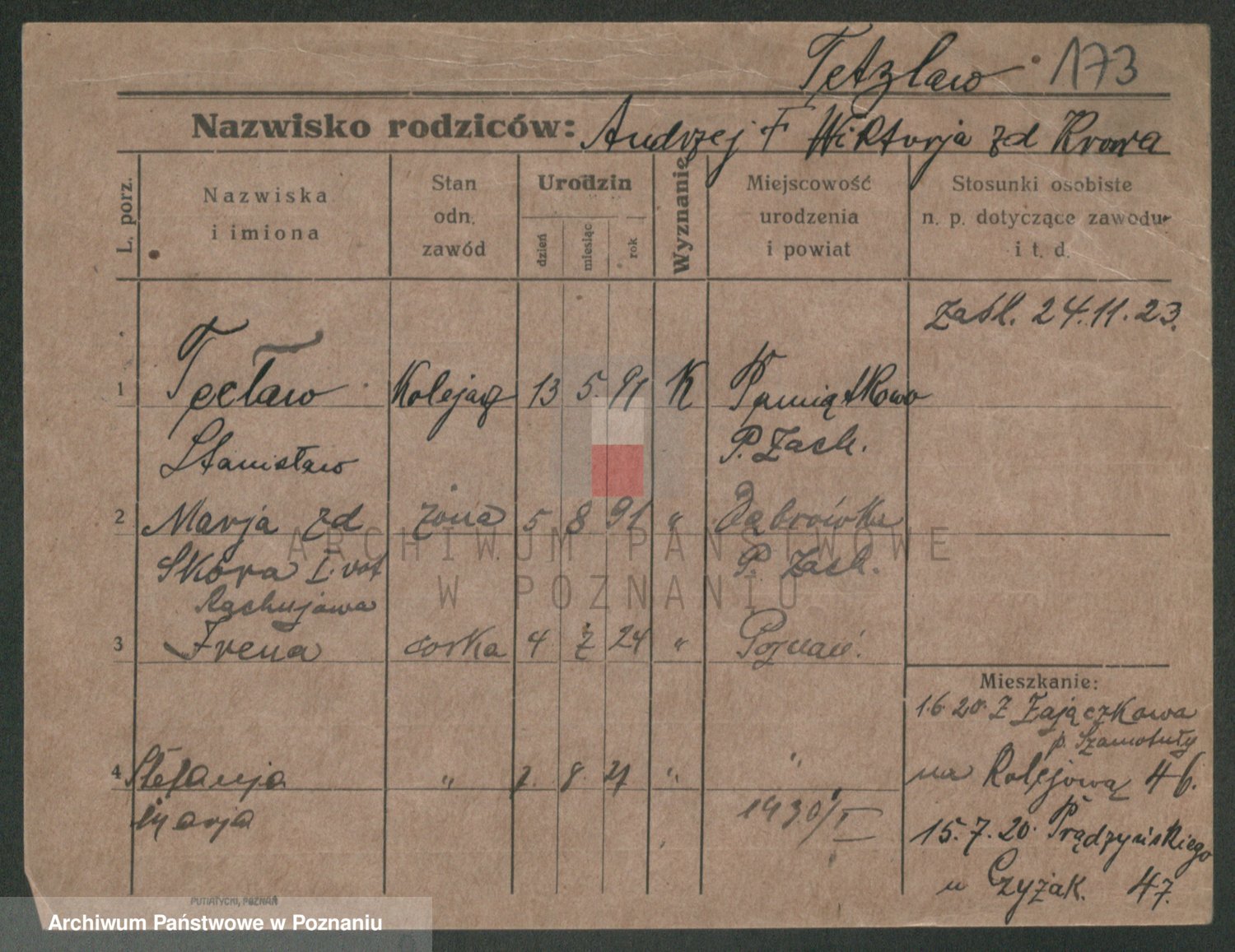 Podgląd karty osobowej dostępny jest po kliknięciu na nazwisko lub ikonkę karty. Można dokonywać powiększenia (ikony na górze) lub przechodzić między kolejnymi skanami (strzałki po bokach).