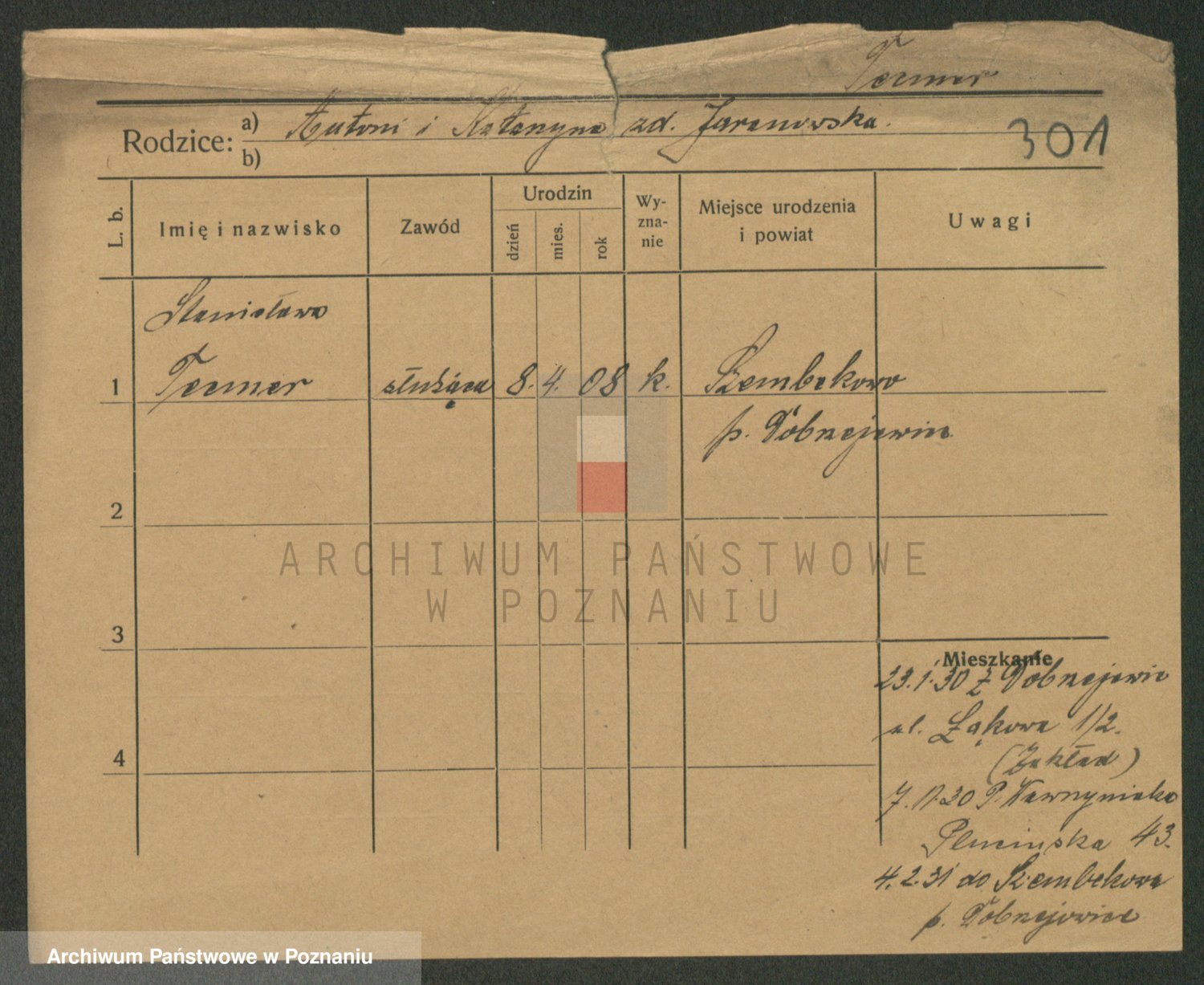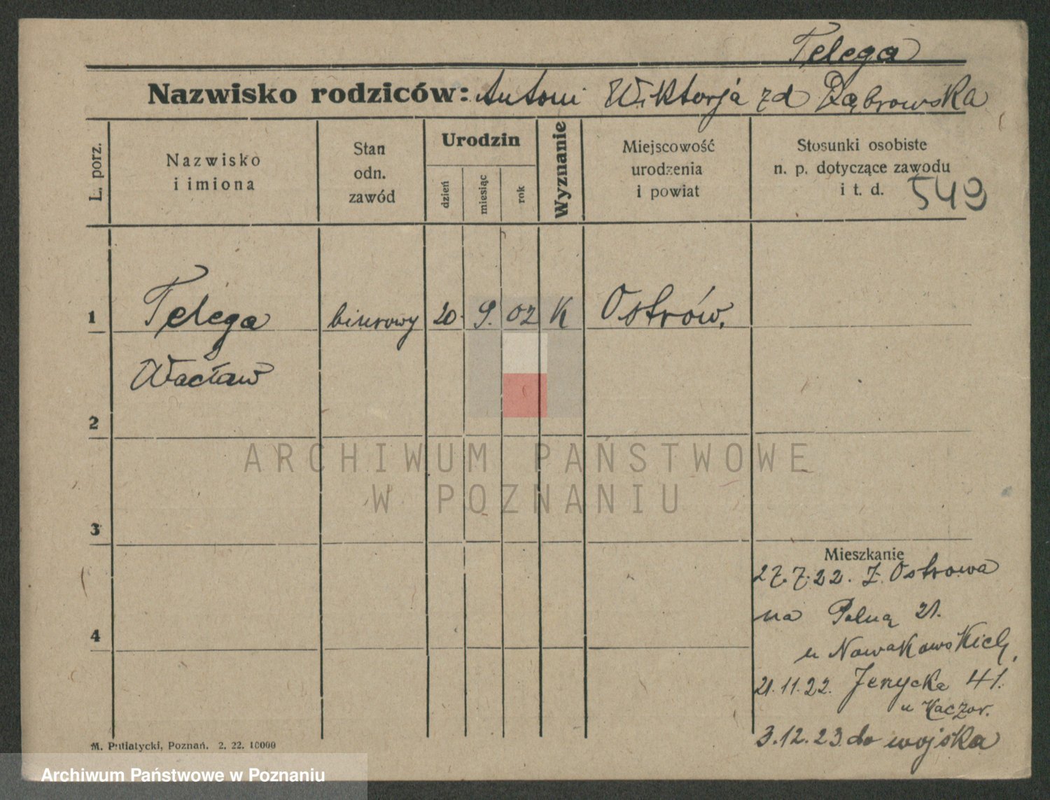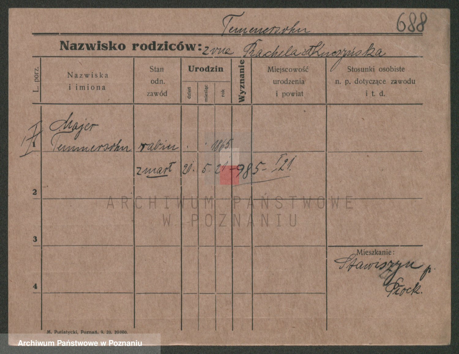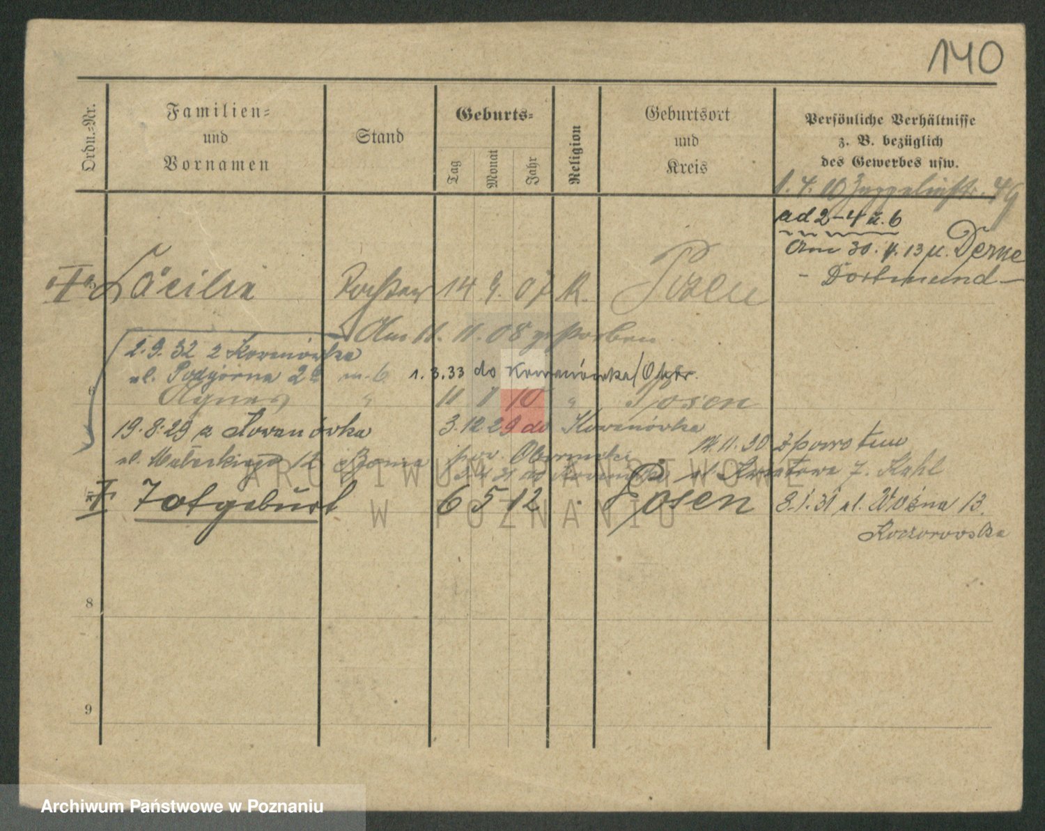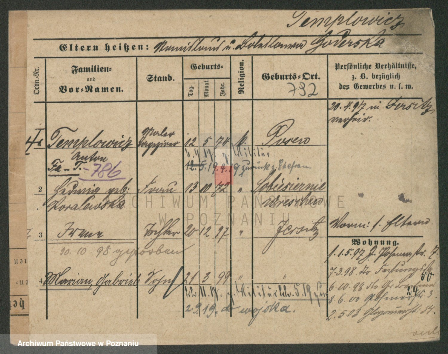 Podgląd karty osobowej dostępny jest po kliknięciu na nazwisko lub ikonkę karty. Można dokonywać powiększenia (ikony na górze) lub przechodzić między kolejnymi skanami (strzałki po bokach).