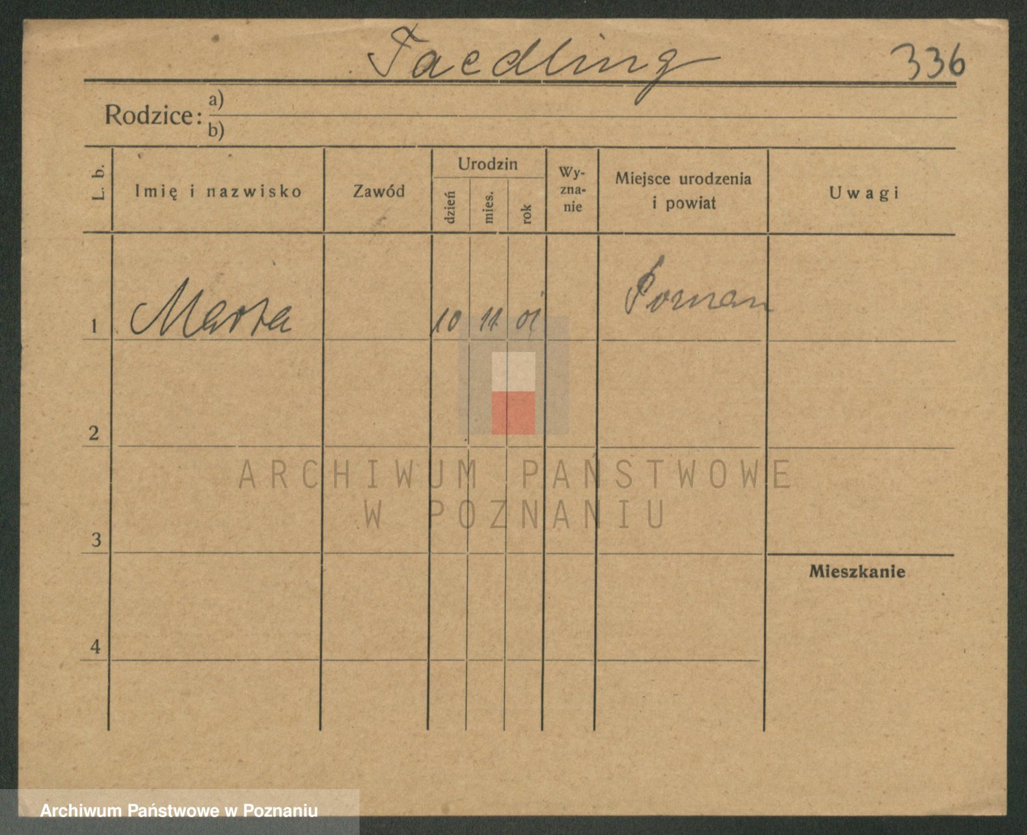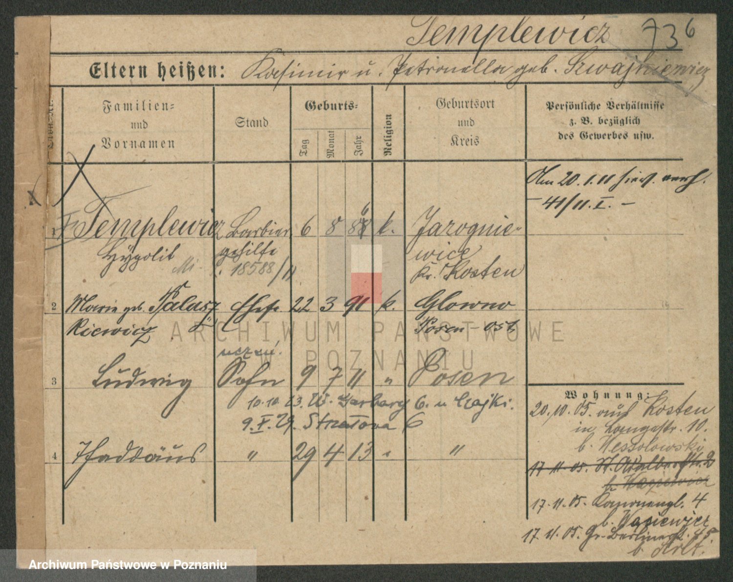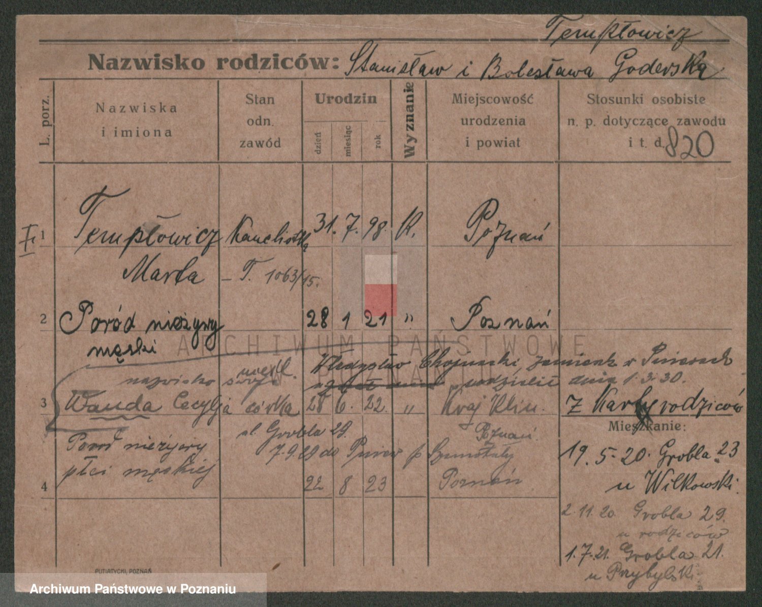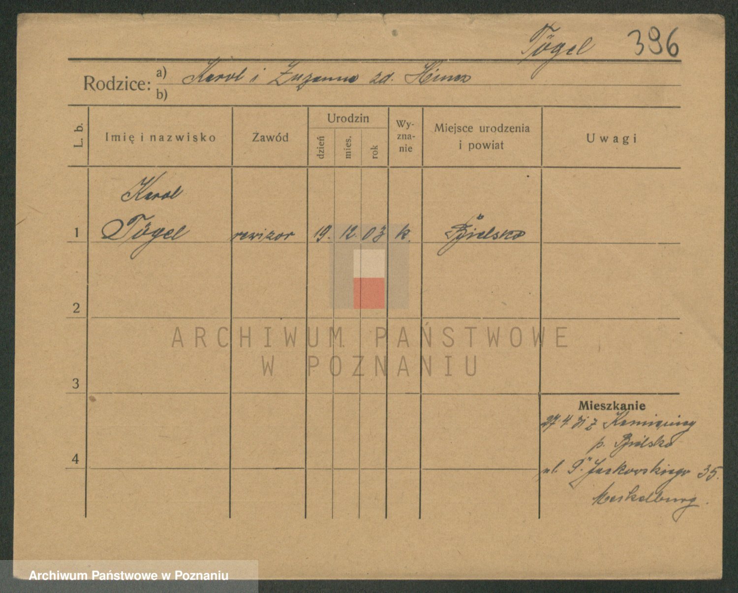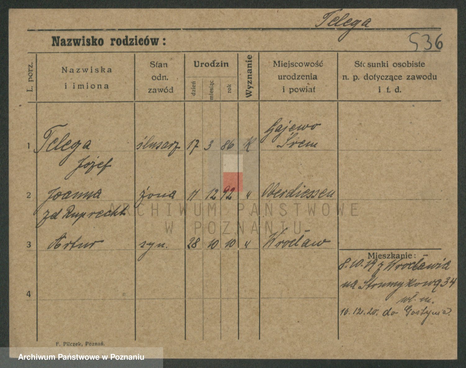 Podgląd karty osobowej dostępny jest po kliknięciu na nazwisko lub ikonkę karty. Można dokonywać powiększenia (ikony na górze) lub przechodzić między kolejnymi skanami (strzałki po bokach).
