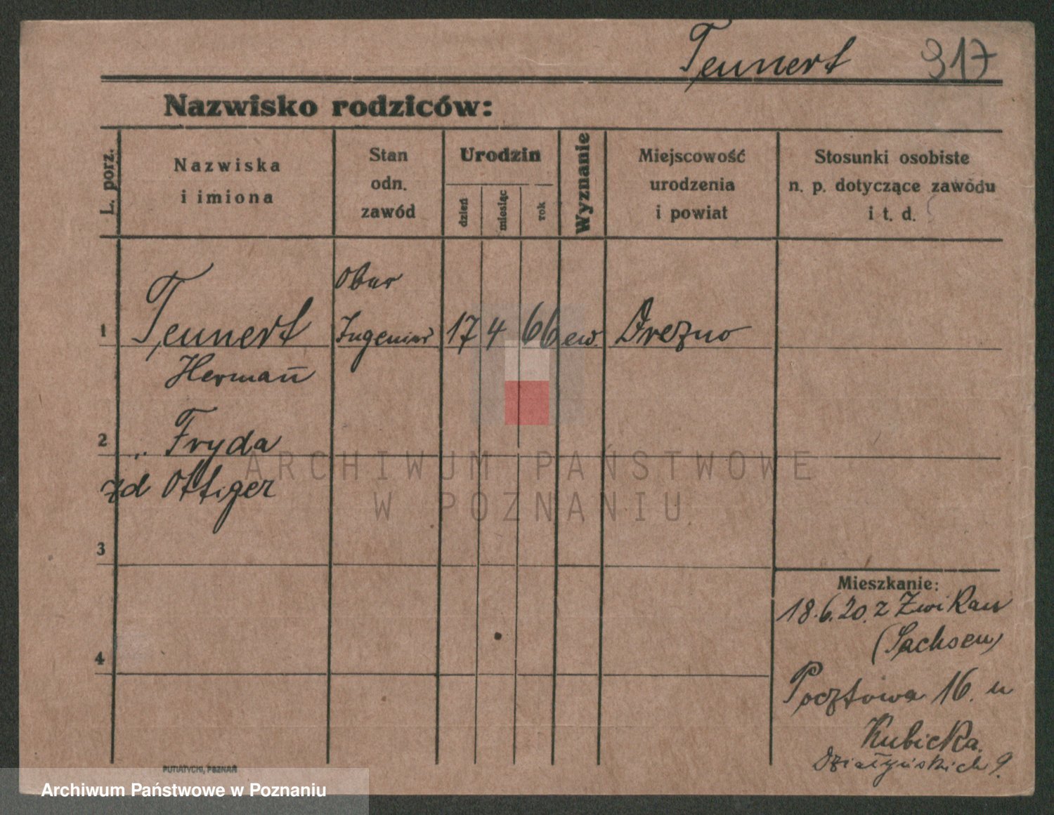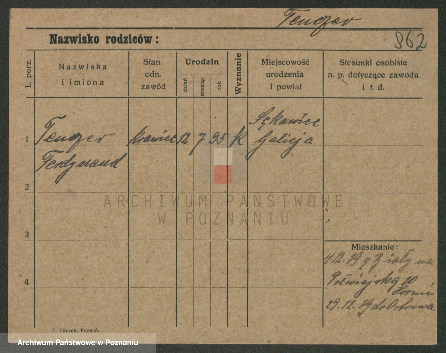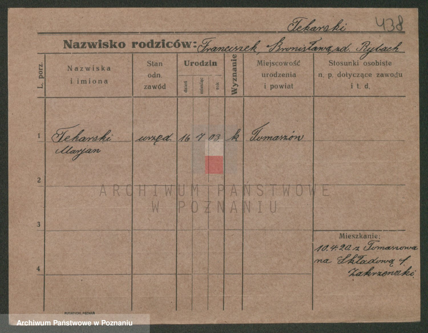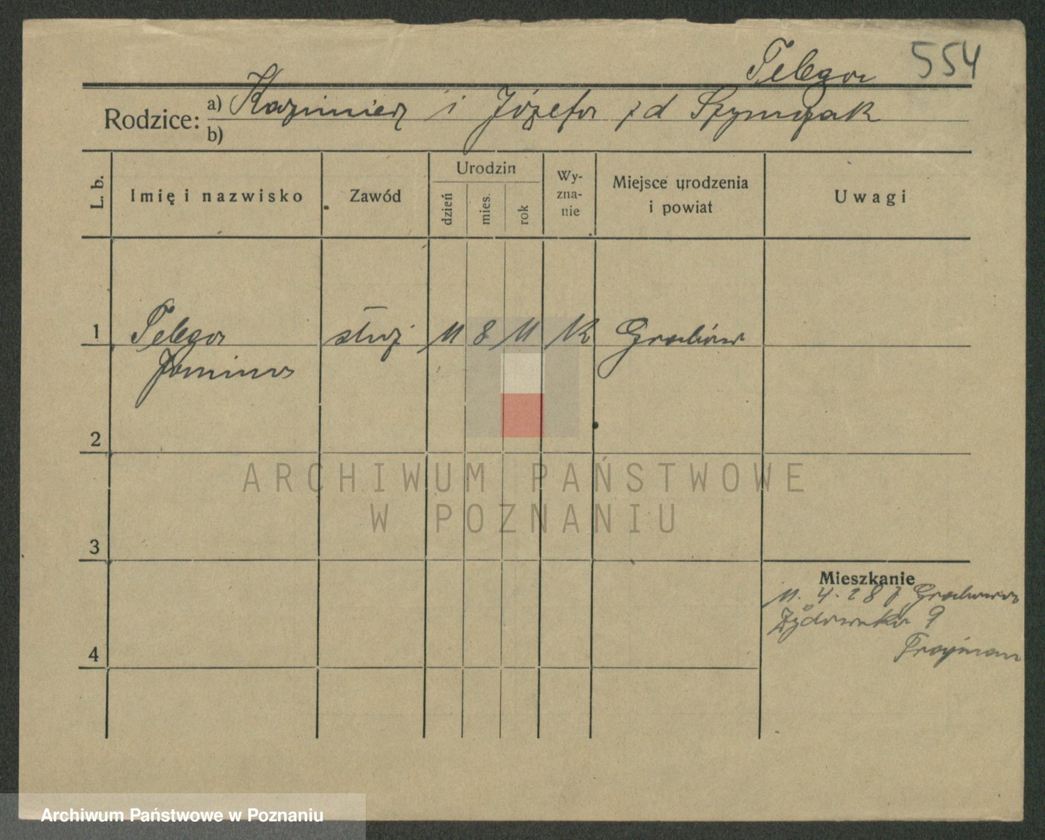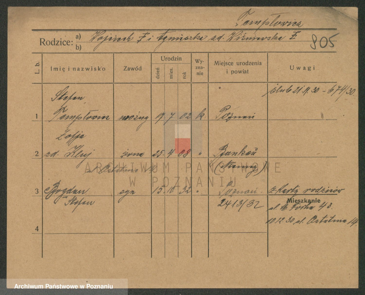 Podgląd karty osobowej dostępny jest po kliknięciu na nazwisko lub ikonkę karty. Można dokonywać powiększenia (ikony na górze) lub przechodzić między kolejnymi skanami (strzałki po bokach).
