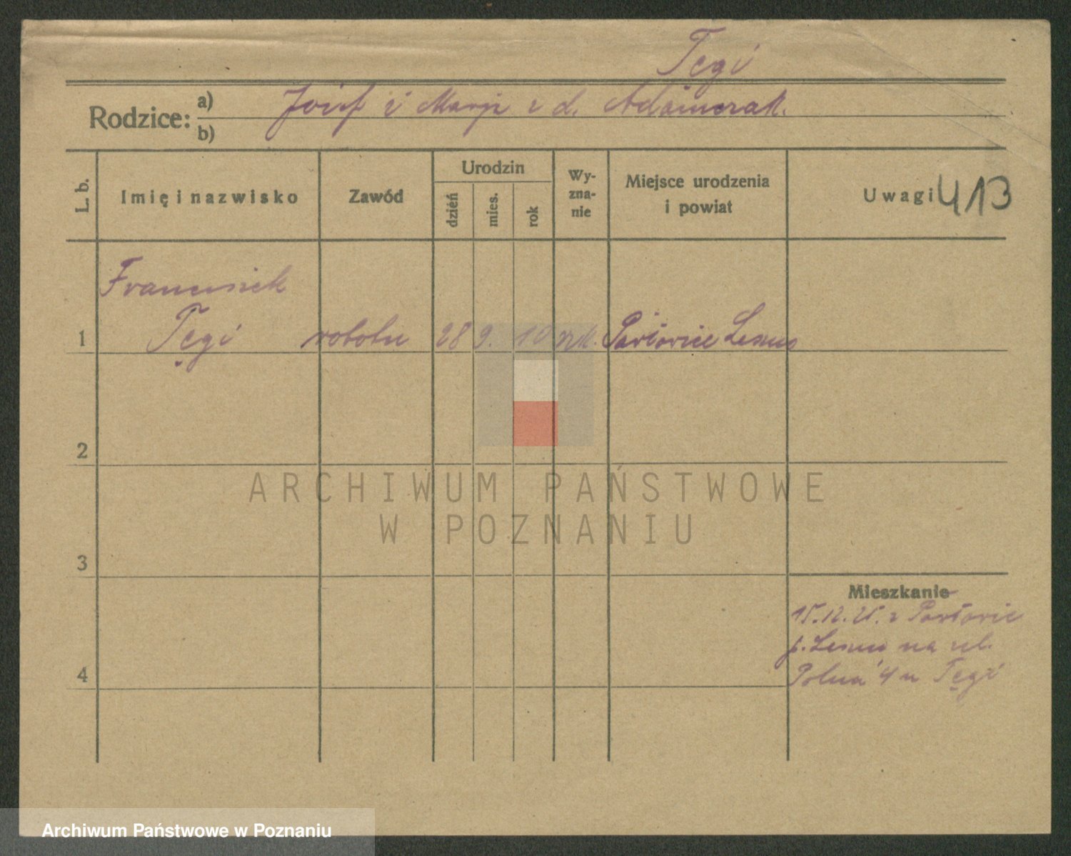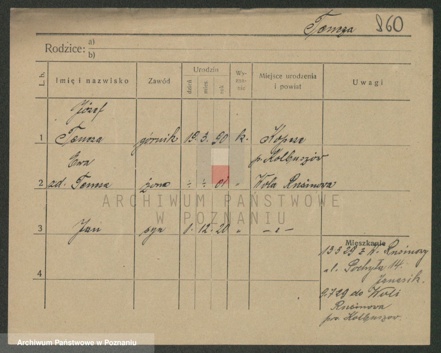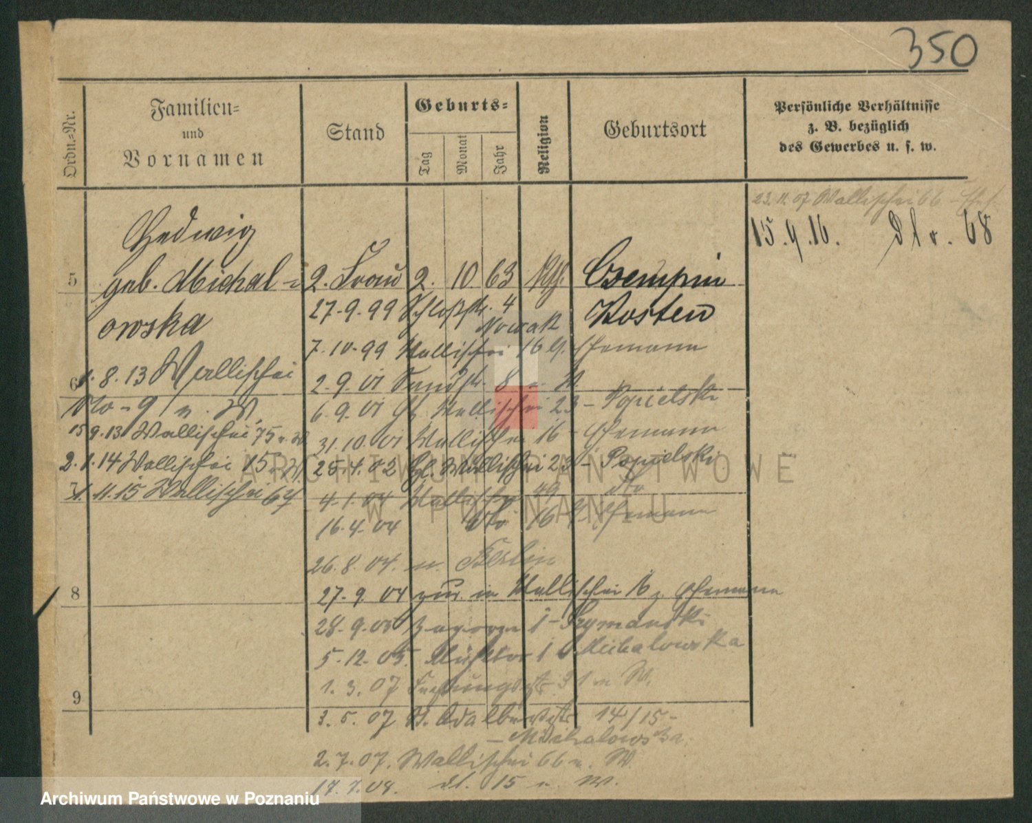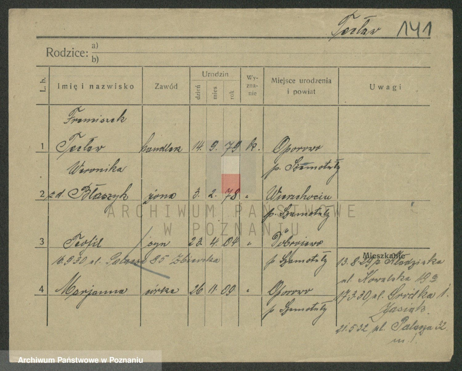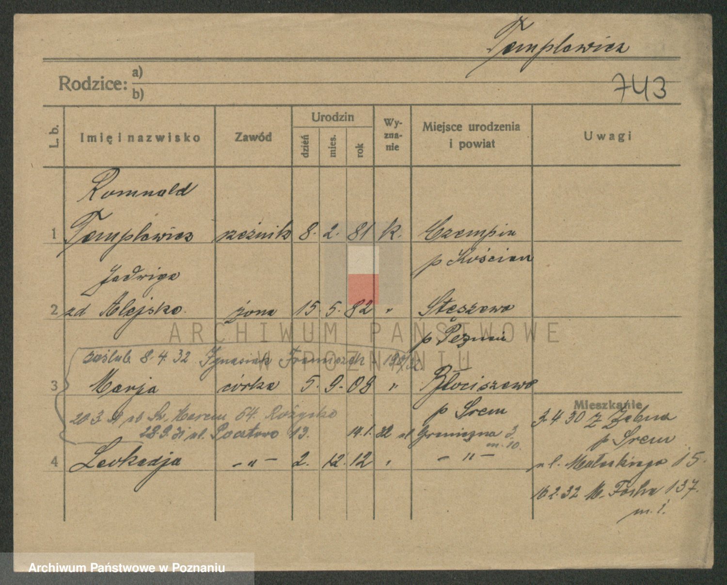 Podgląd karty osobowej dostępny jest po kliknięciu na nazwisko lub ikonkę karty. Można dokonywać powiększenia (ikony na górze) lub przechodzić między kolejnymi skanami (strzałki po bokach).