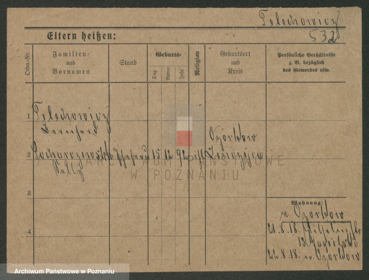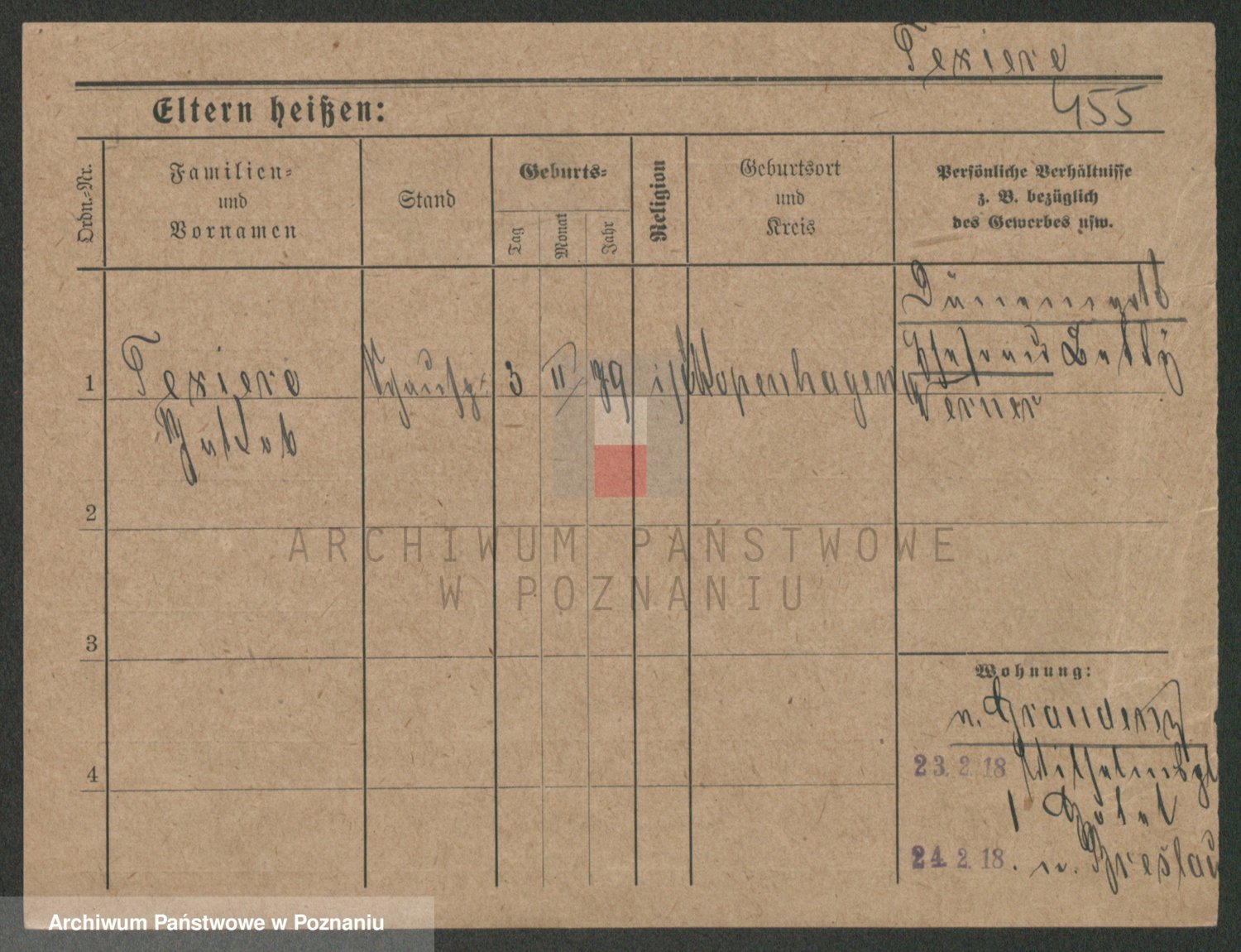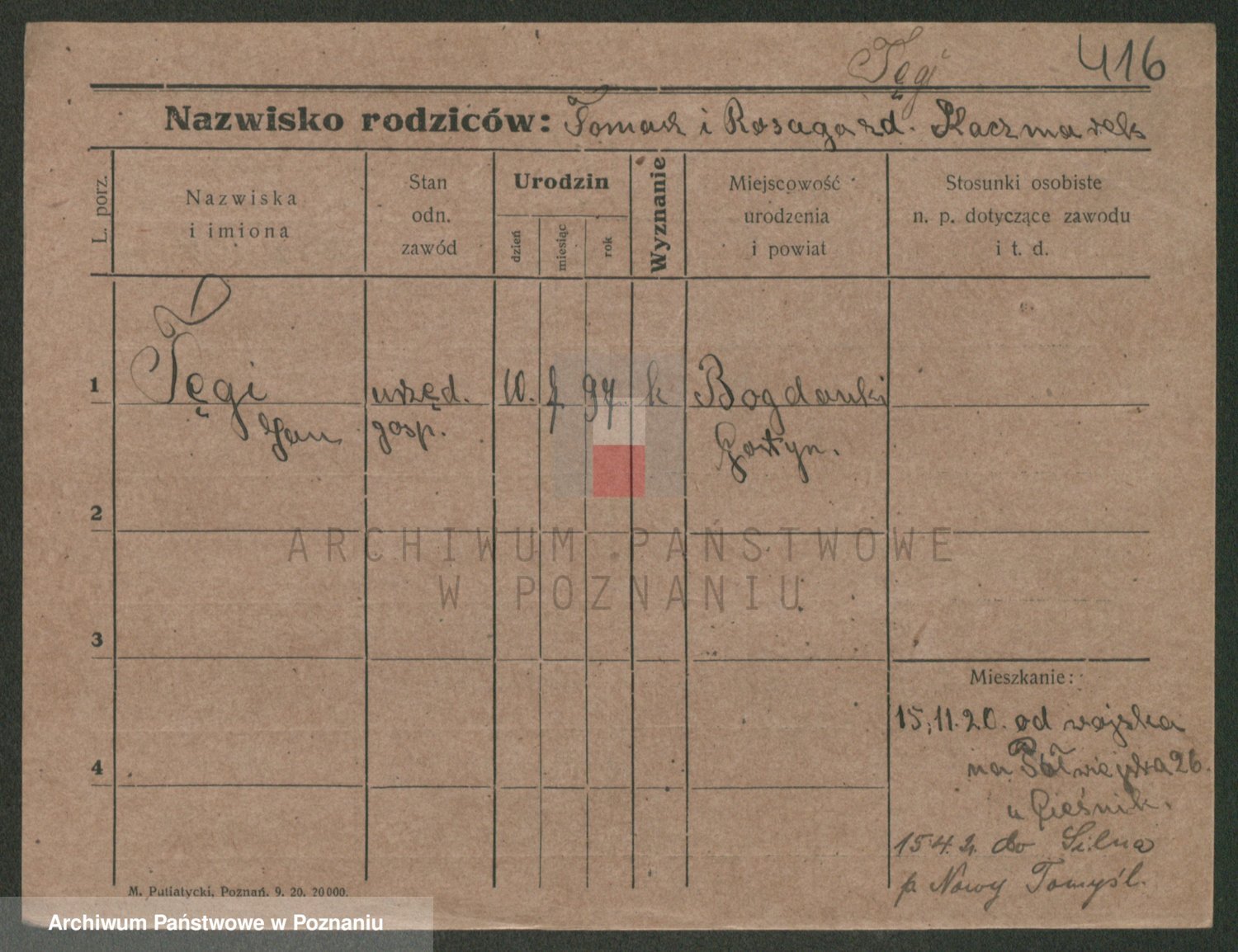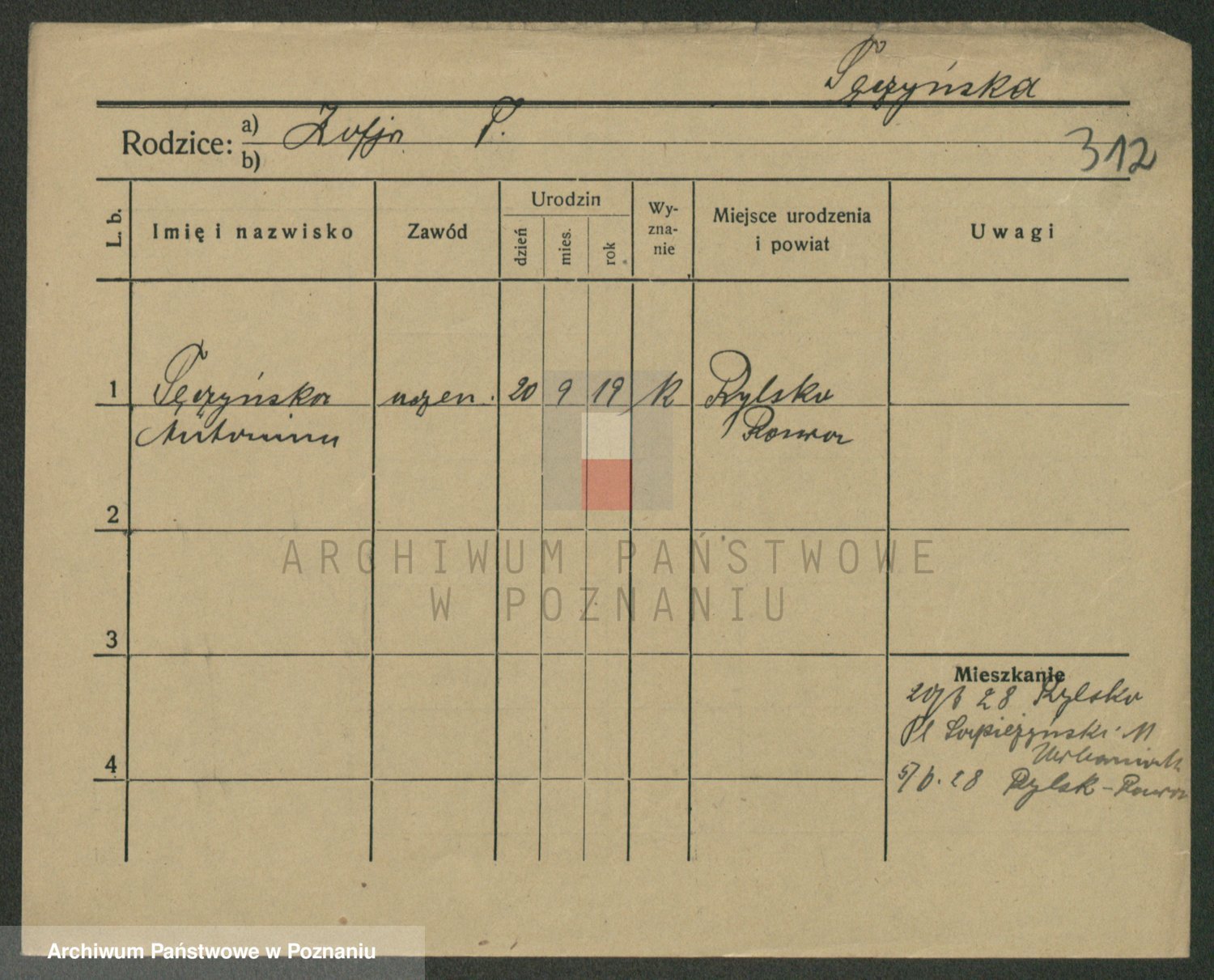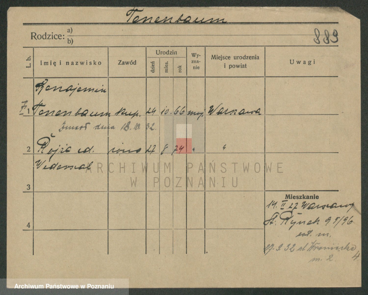 Podgląd karty osobowej dostępny jest po kliknięciu na nazwisko lub ikonkę karty. Można dokonywać powiększenia (ikony na górze) lub przechodzić między kolejnymi skanami (strzałki po bokach).