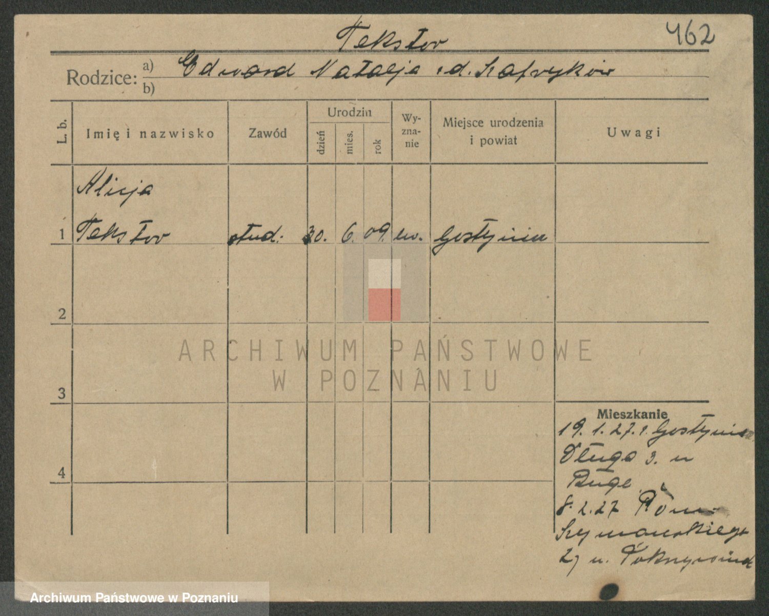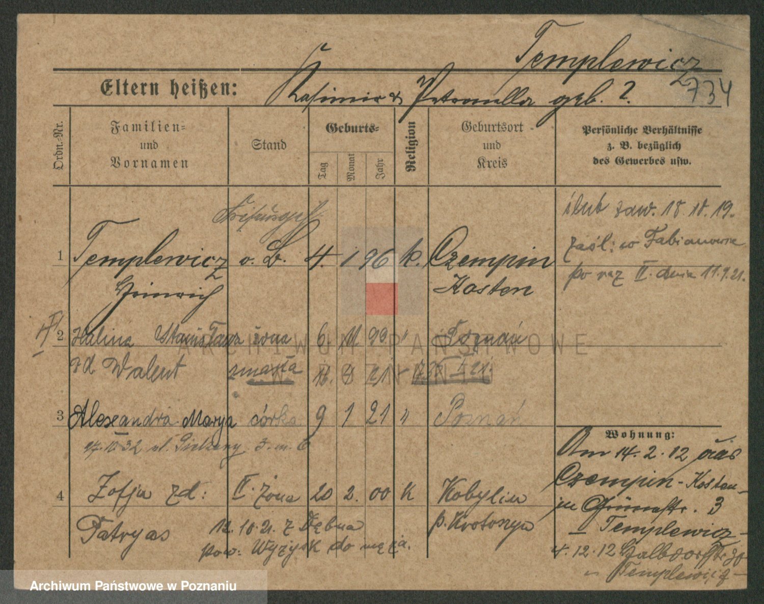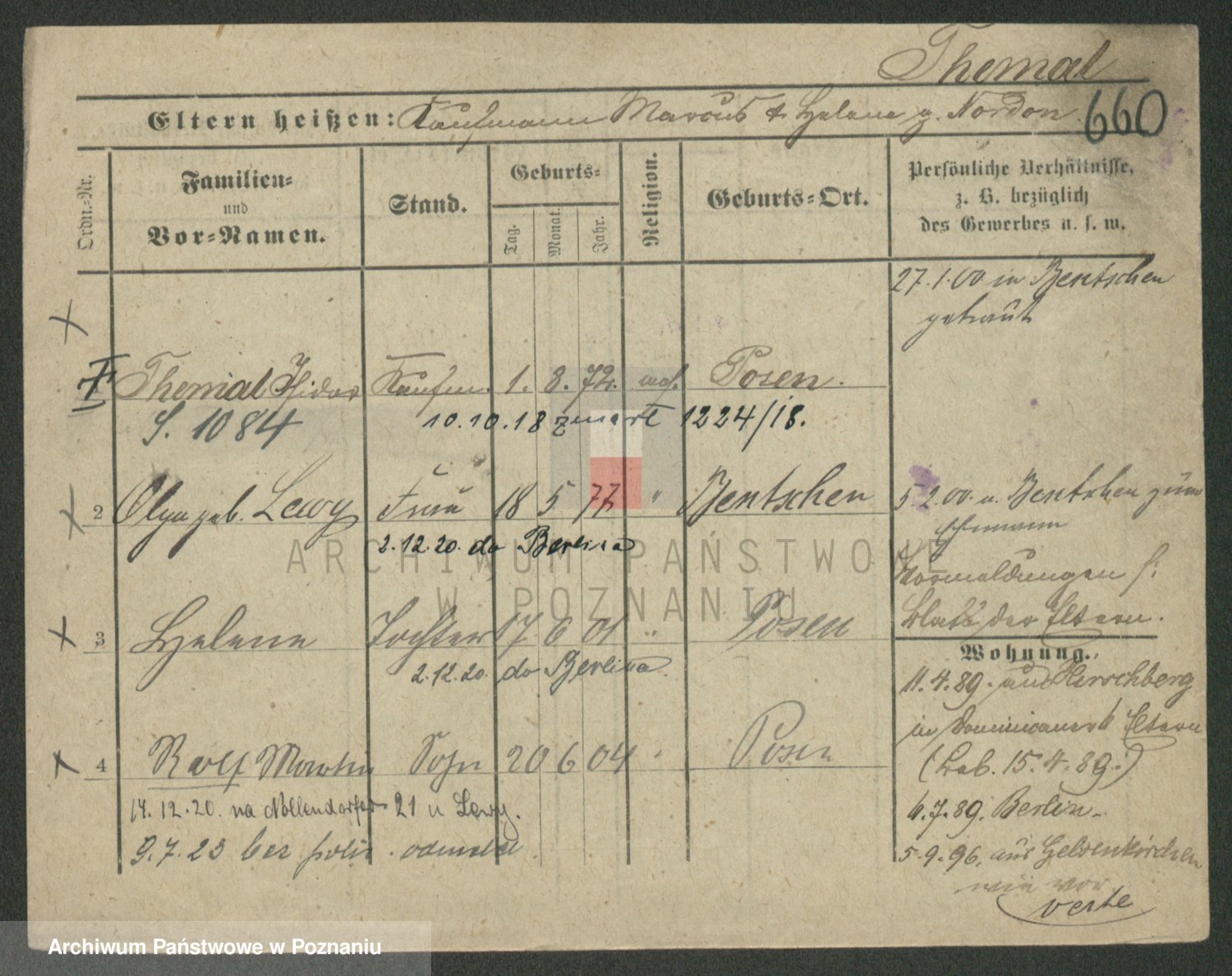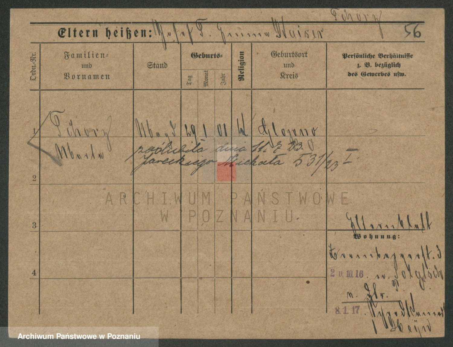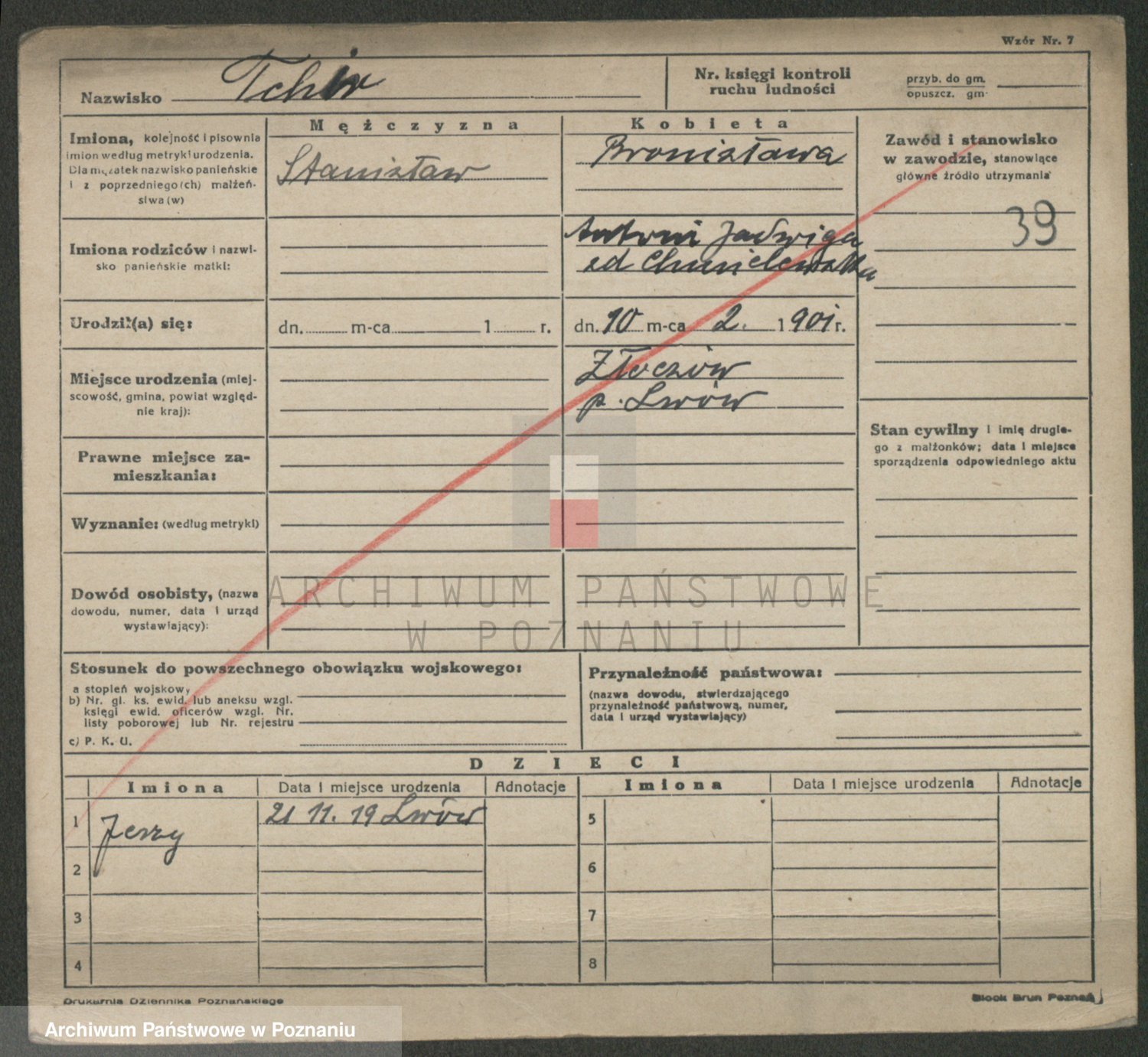 Podgląd karty osobowej dostępny jest po kliknięciu na nazwisko lub ikonkę karty. Można dokonywać powiększenia (ikony na górze) lub przechodzić między kolejnymi skanami (strzałki po bokach).