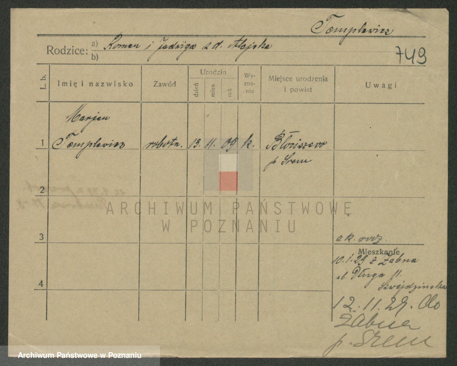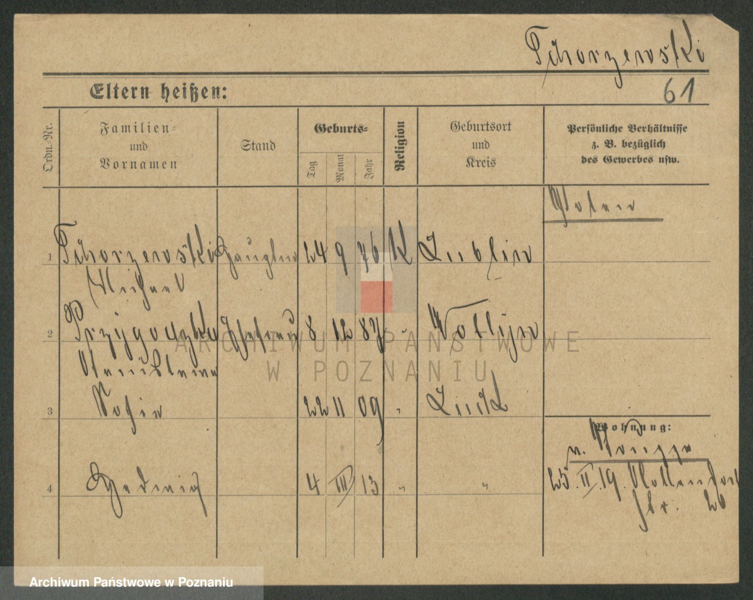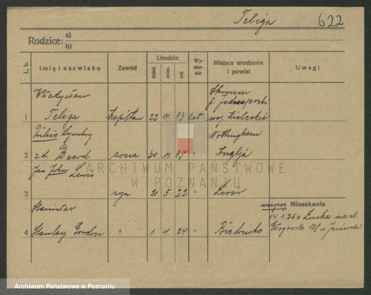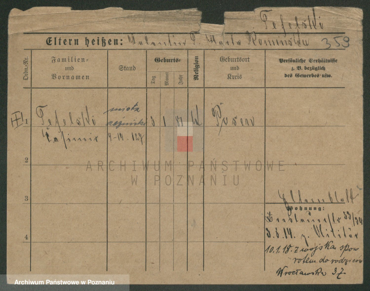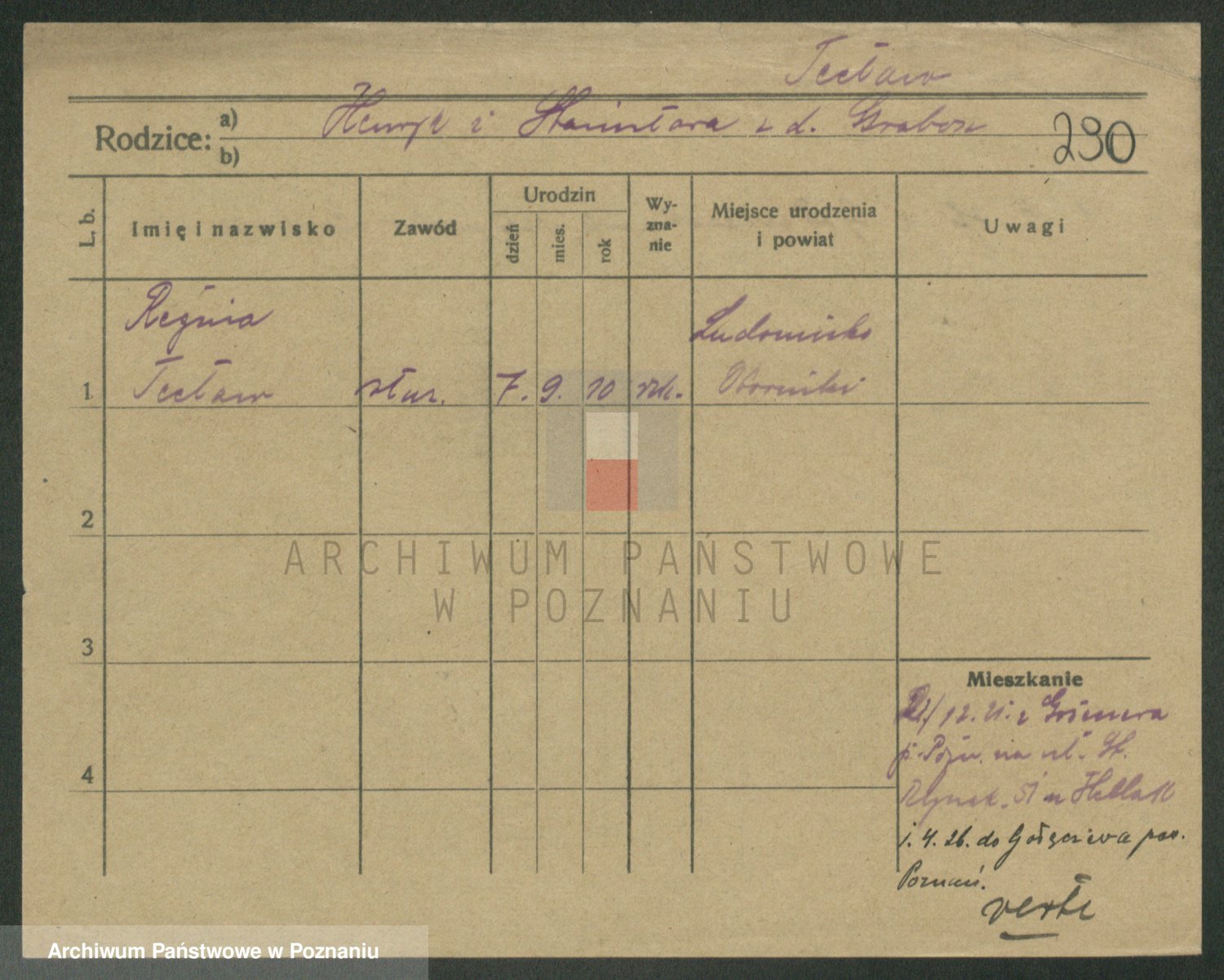 Podgląd karty osobowej dostępny jest po kliknięciu na nazwisko lub ikonkę karty. Można dokonywać powiększenia (ikony na górze) lub przechodzić między kolejnymi skanami (strzałki po bokach).