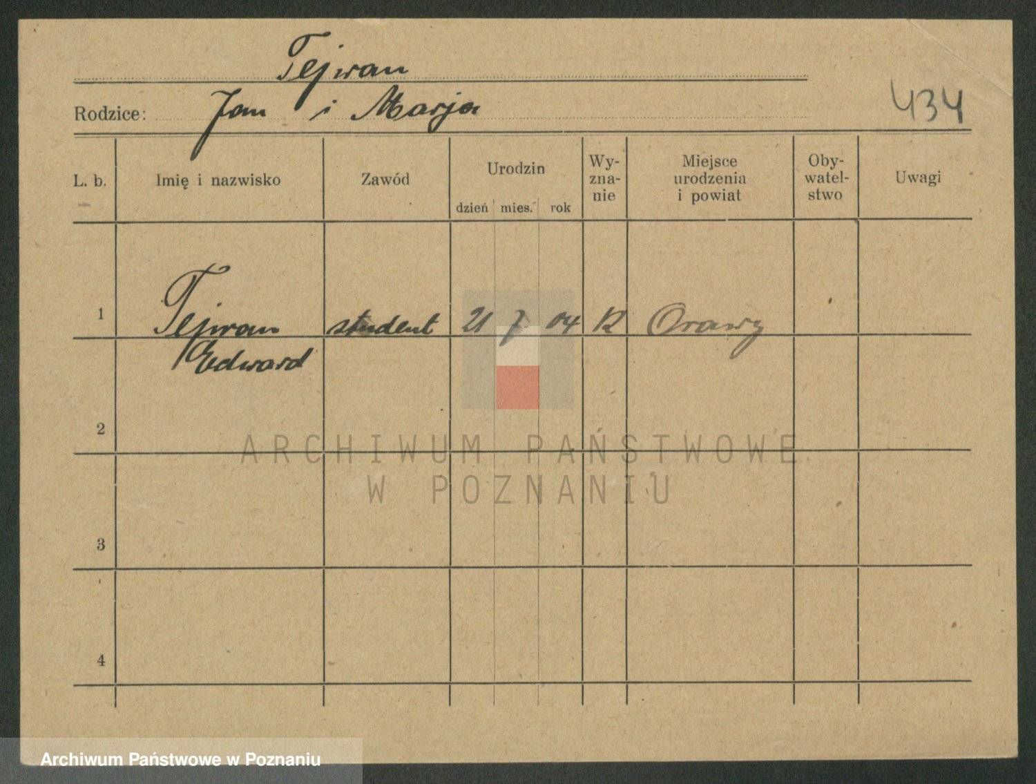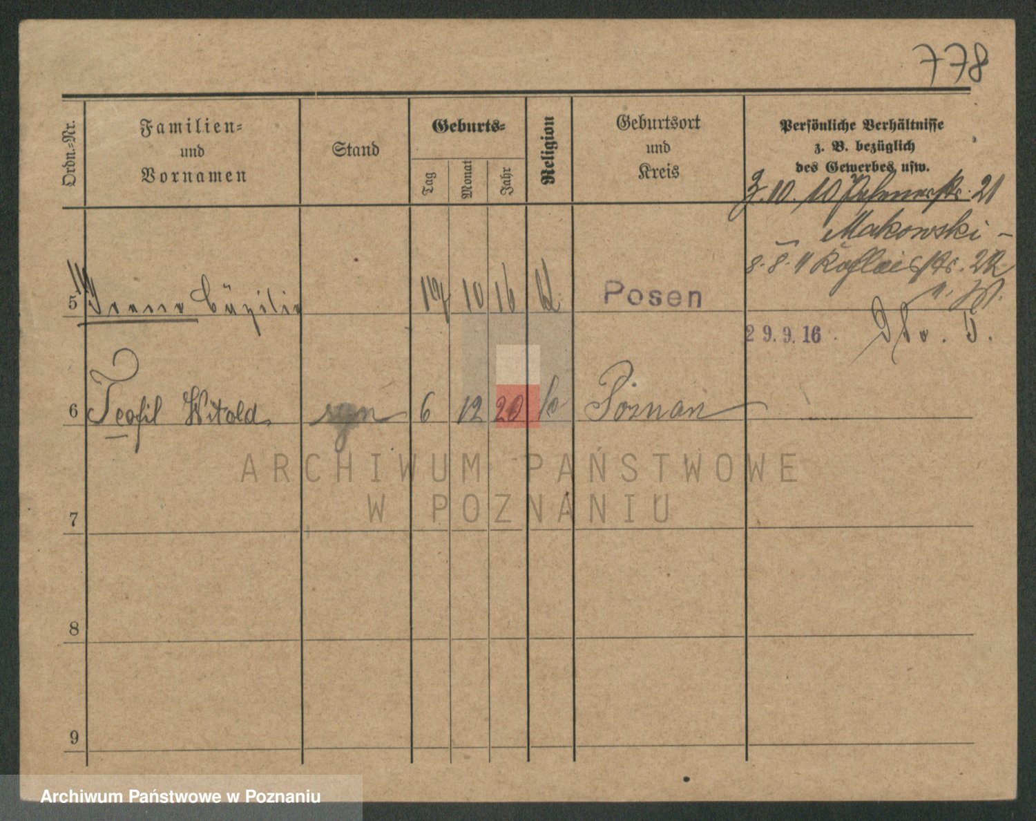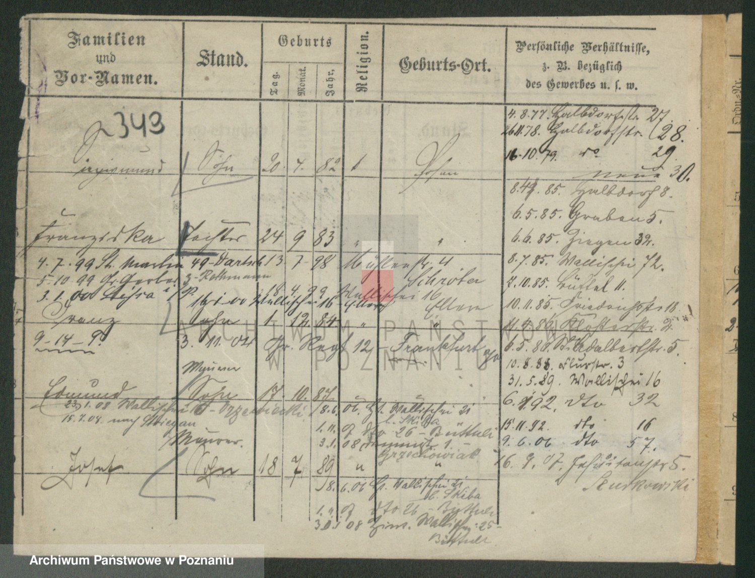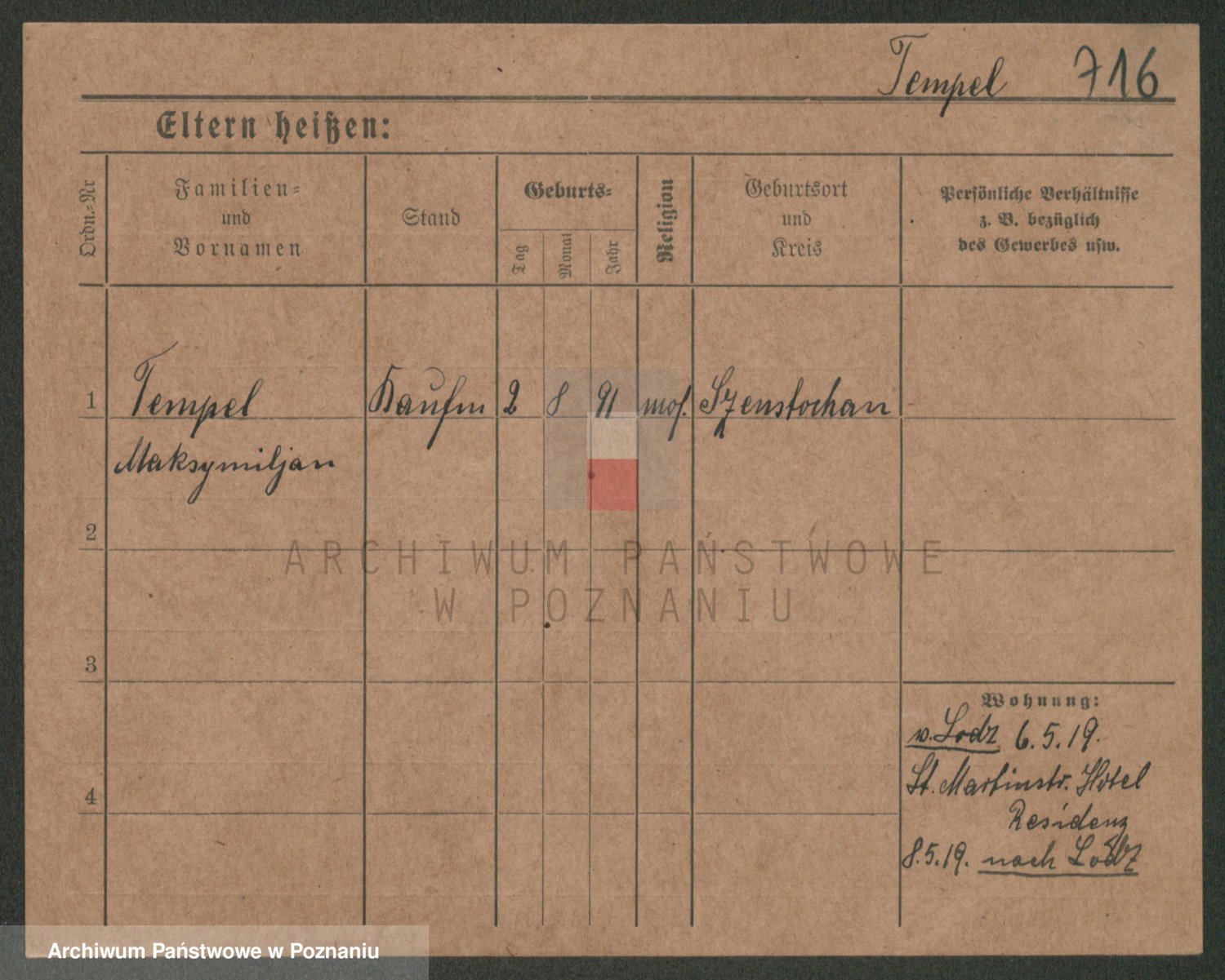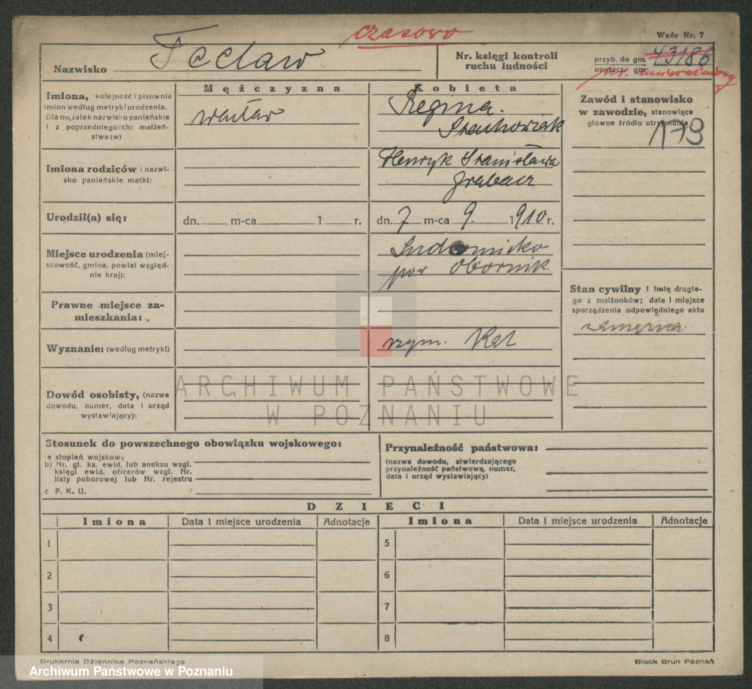 Podgląd karty osobowej dostępny jest po kliknięciu na nazwisko lub ikonkę karty. Można dokonywać powiększenia (ikony na górze) lub przechodzić między kolejnymi skanami (strzałki po bokach).