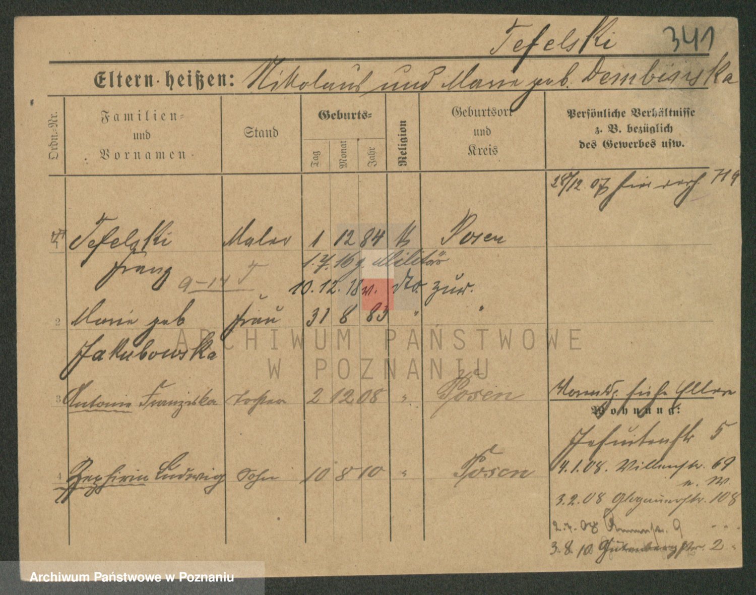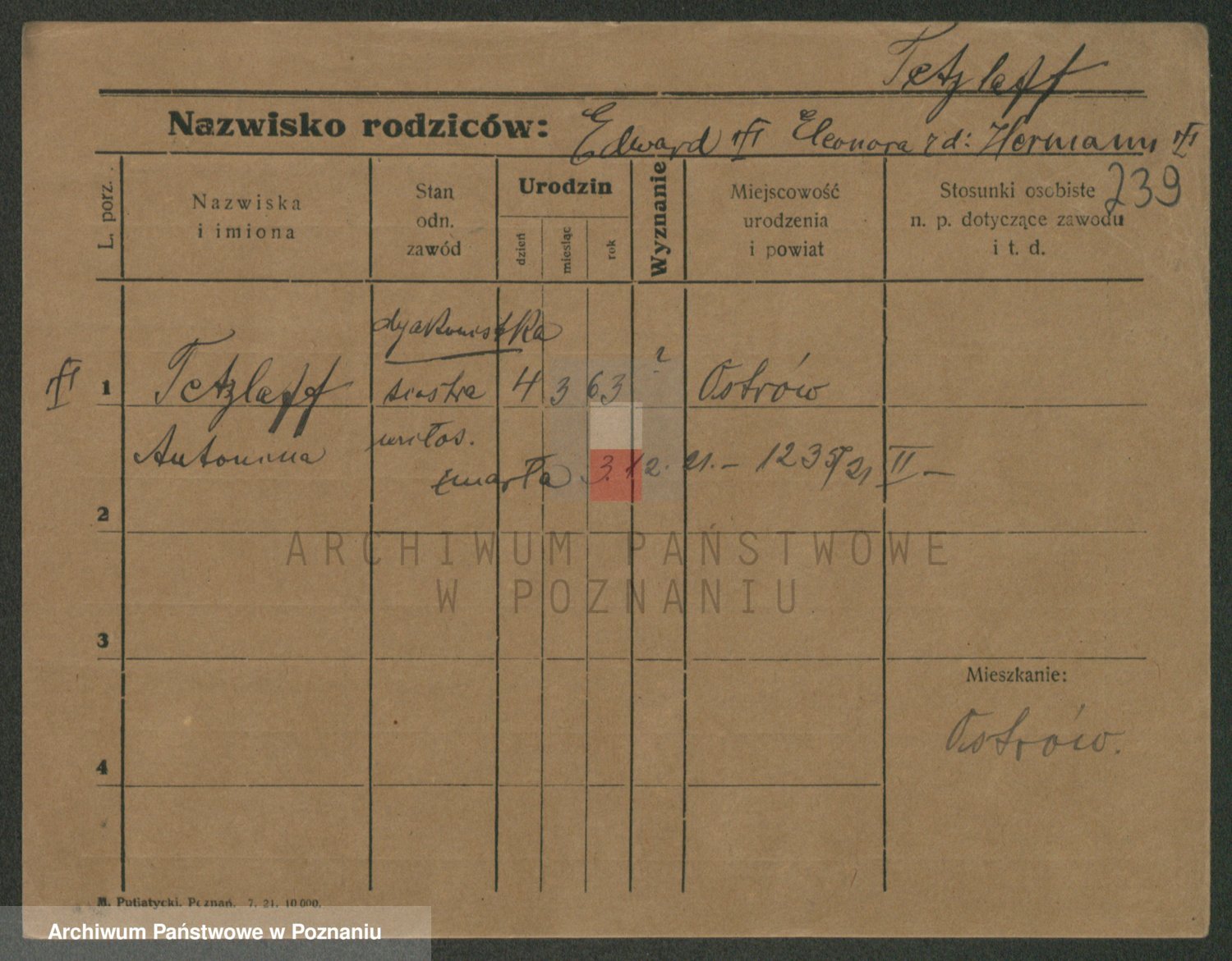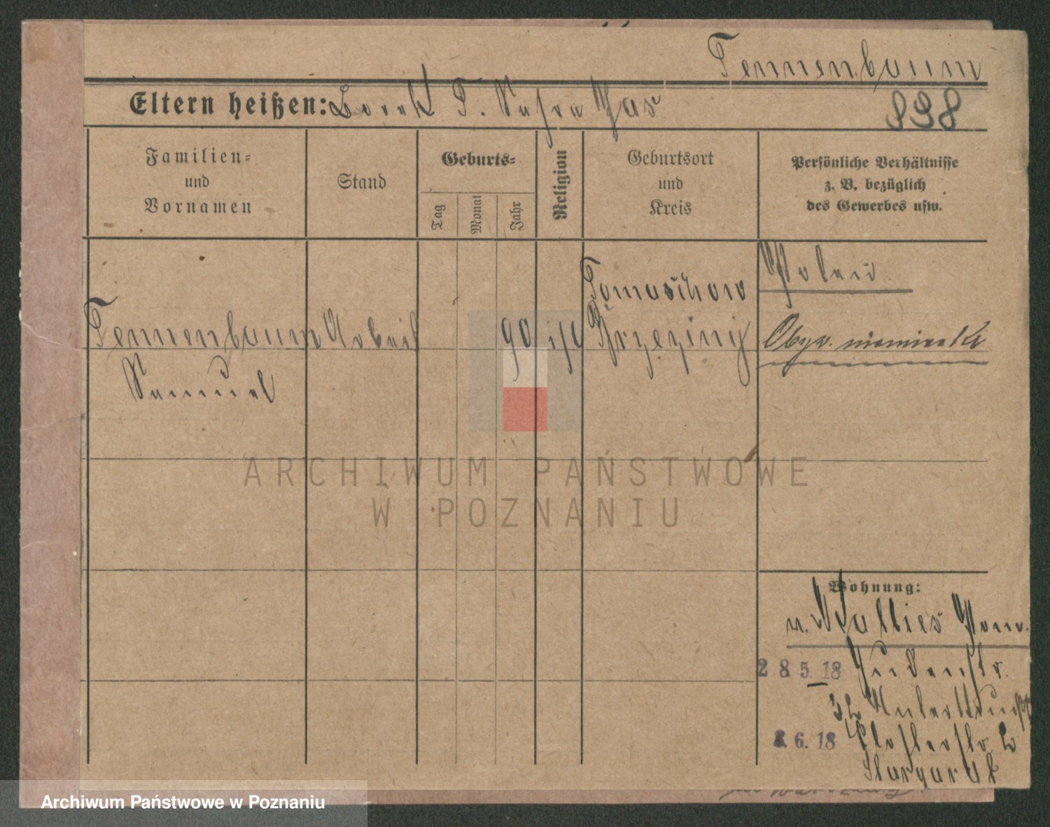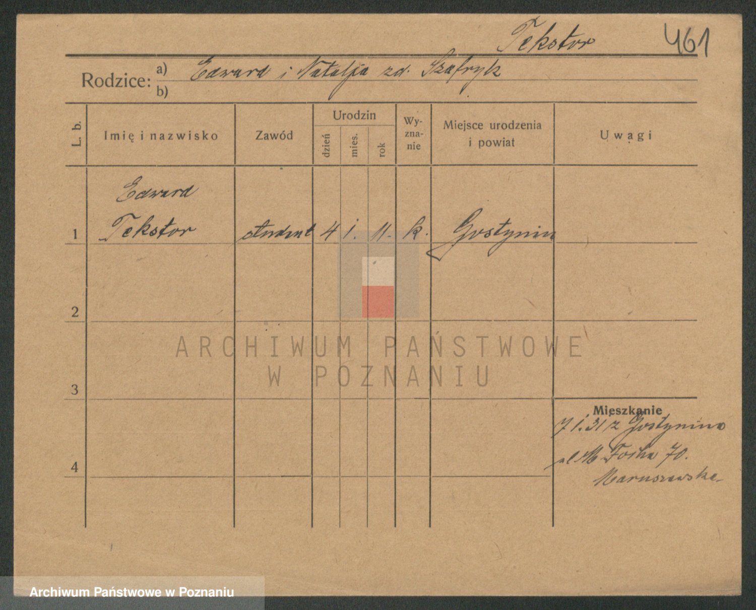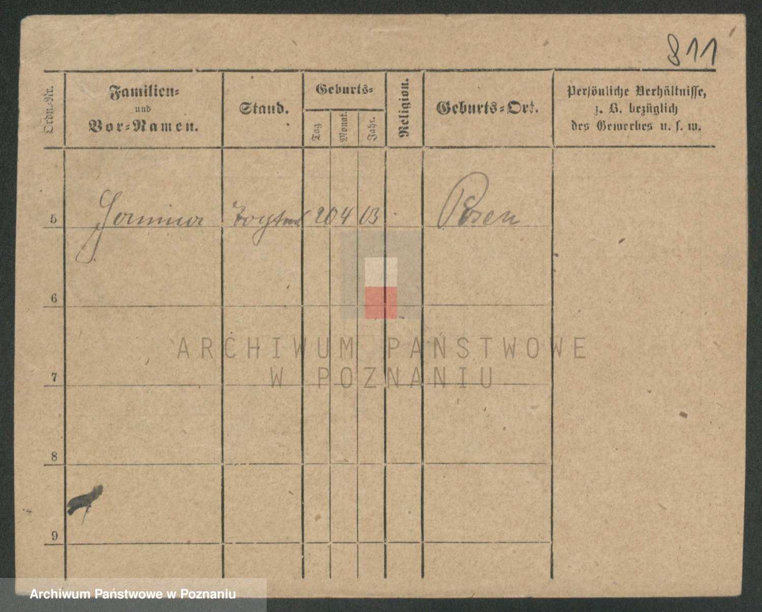 Podgląd karty osobowej dostępny jest po kliknięciu na nazwisko lub ikonkę karty. Można dokonywać powiększenia (ikony na górze) lub przechodzić między kolejnymi skanami (strzałki po bokach).