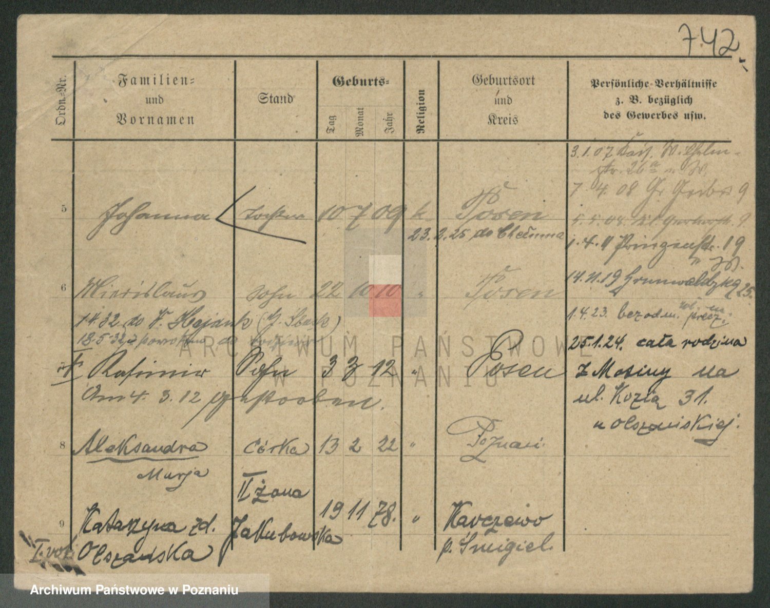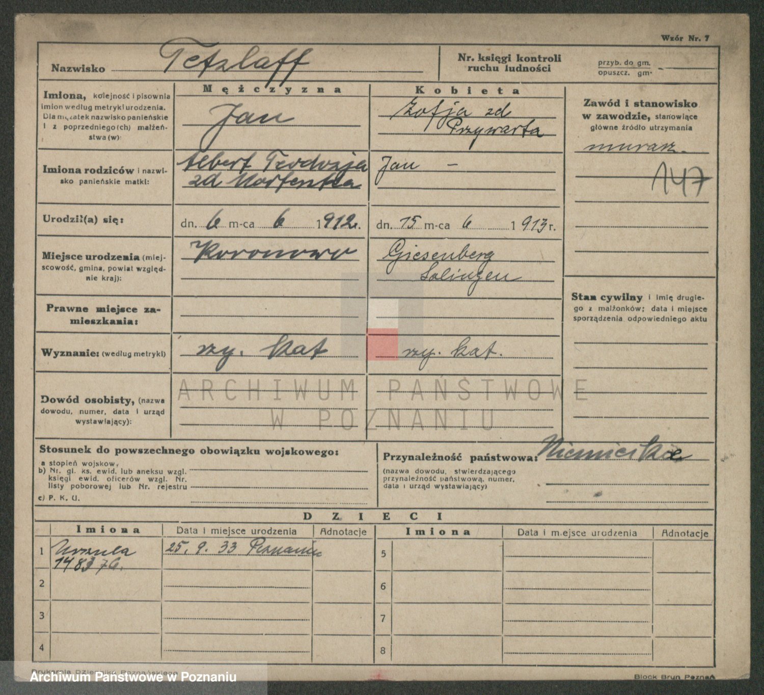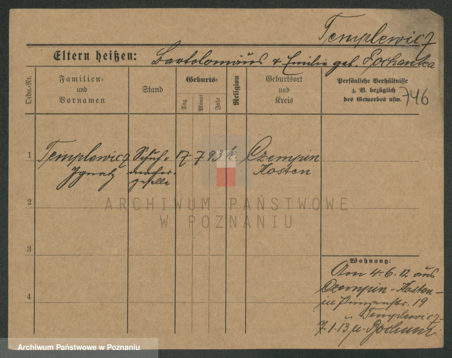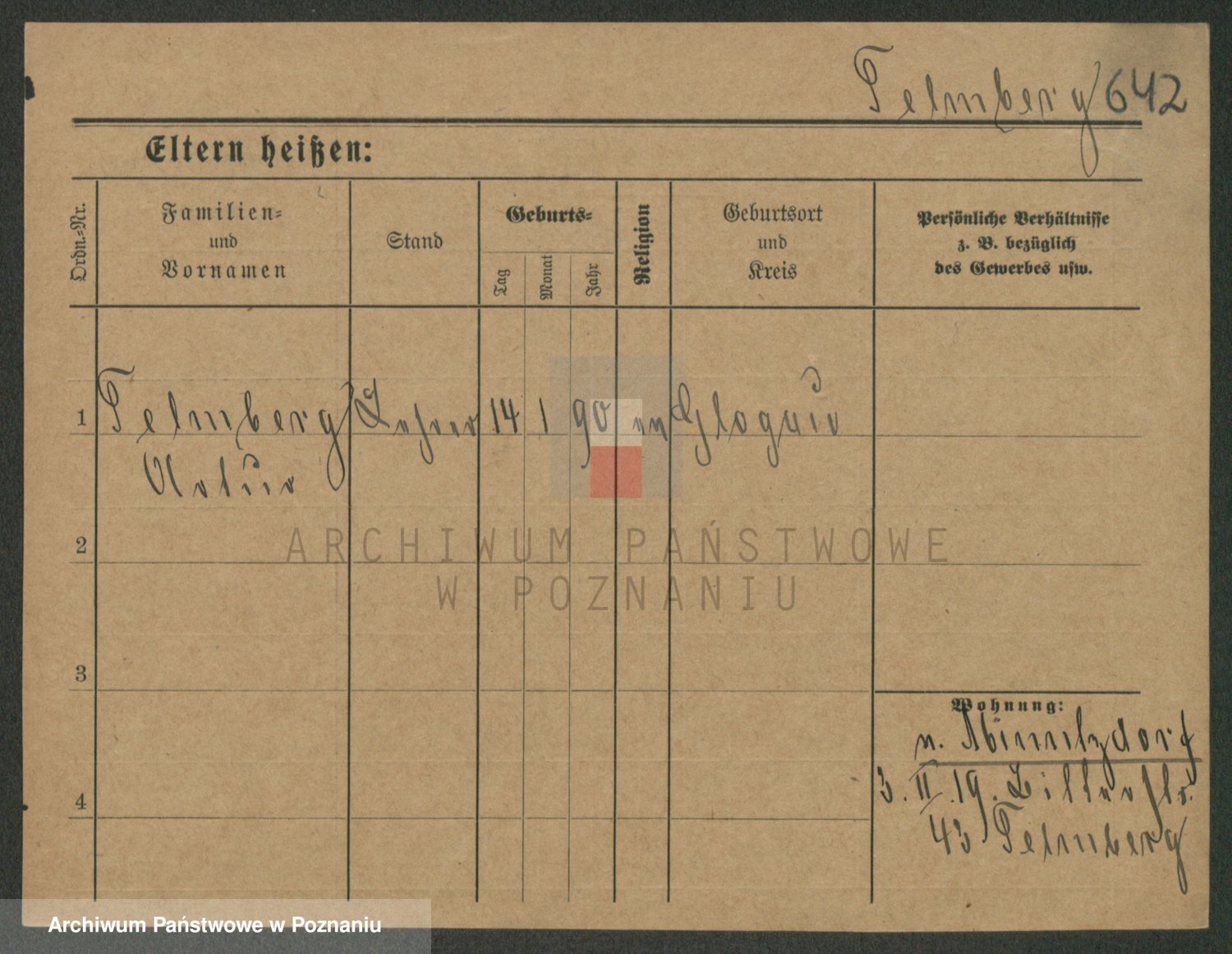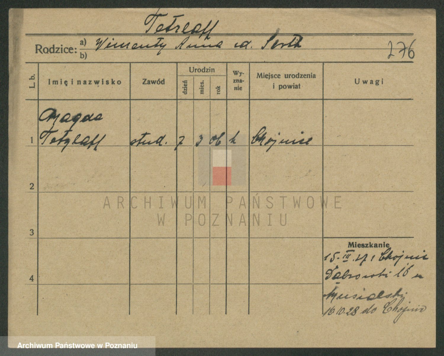 Podgląd karty osobowej dostępny jest po kliknięciu na nazwisko lub ikonkę karty. Można dokonywać powiększenia (ikony na górze) lub przechodzić między kolejnymi skanami (strzałki po bokach).