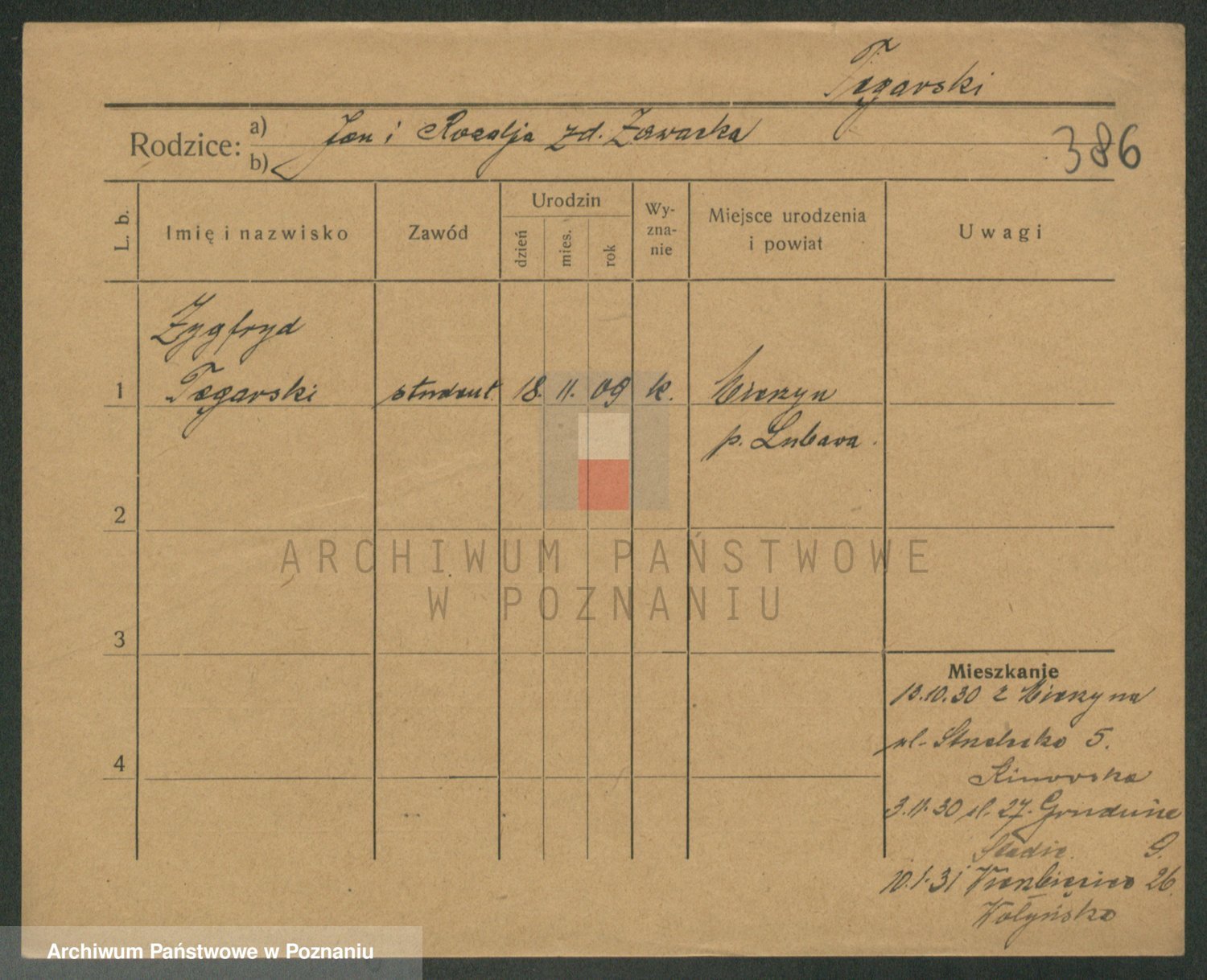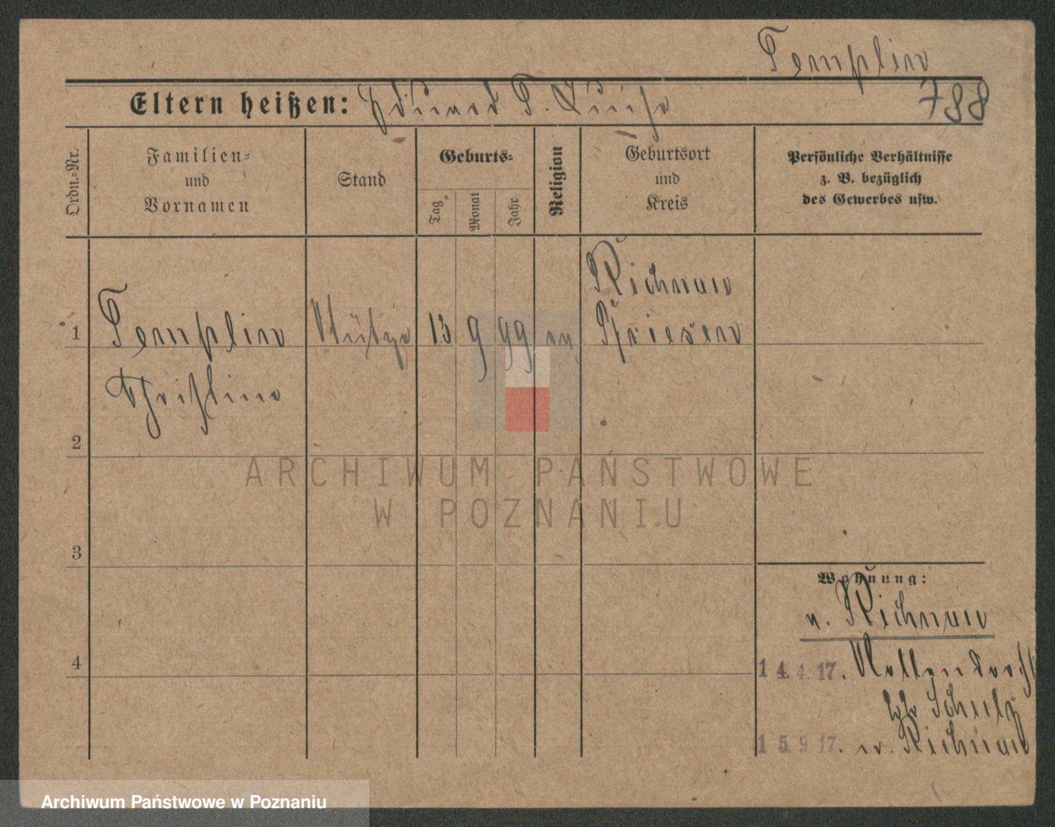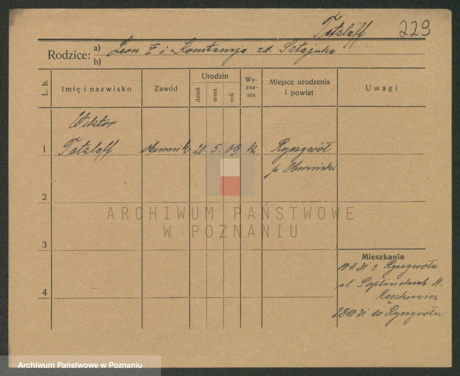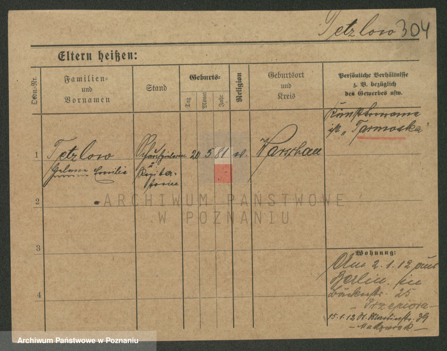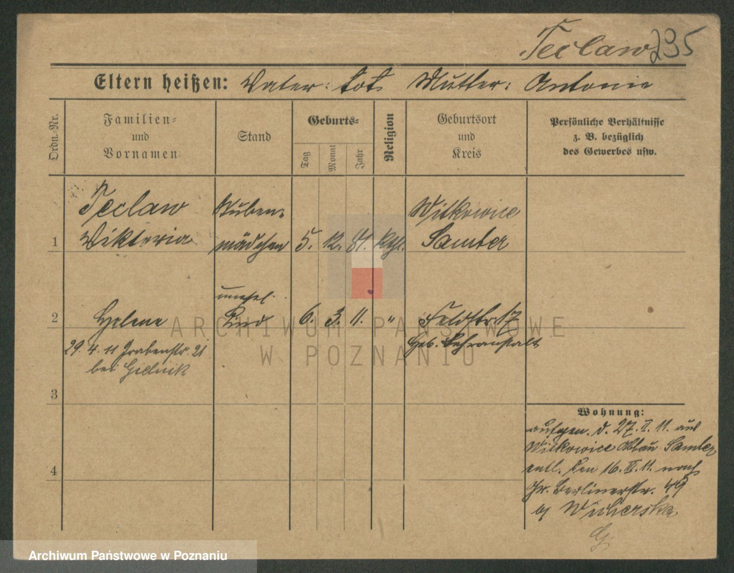 Podgląd karty osobowej dostępny jest po kliknięciu na nazwisko lub ikonkę karty. Można dokonywać powiększenia (ikony na górze) lub przechodzić między kolejnymi skanami (strzałki po bokach).